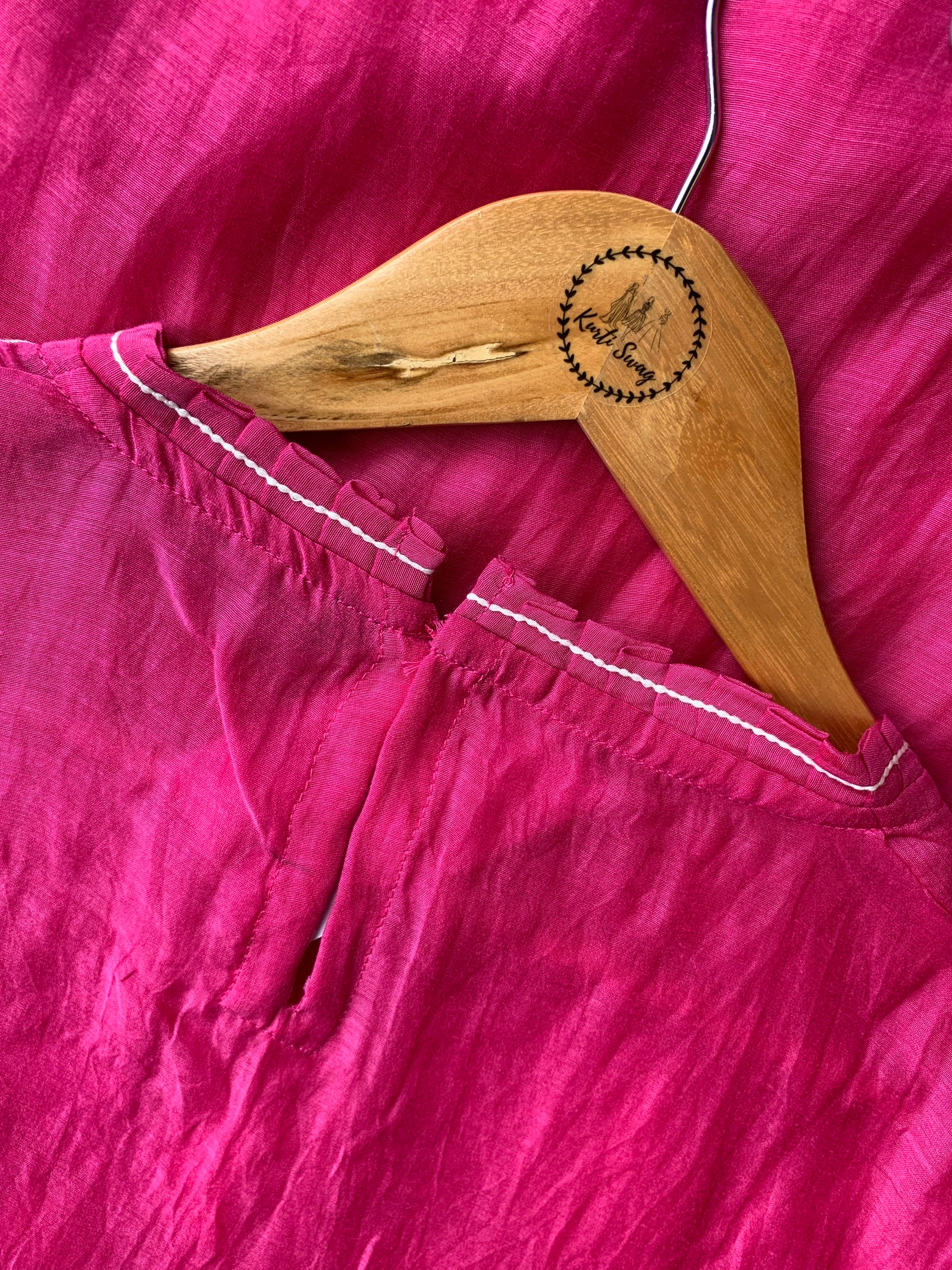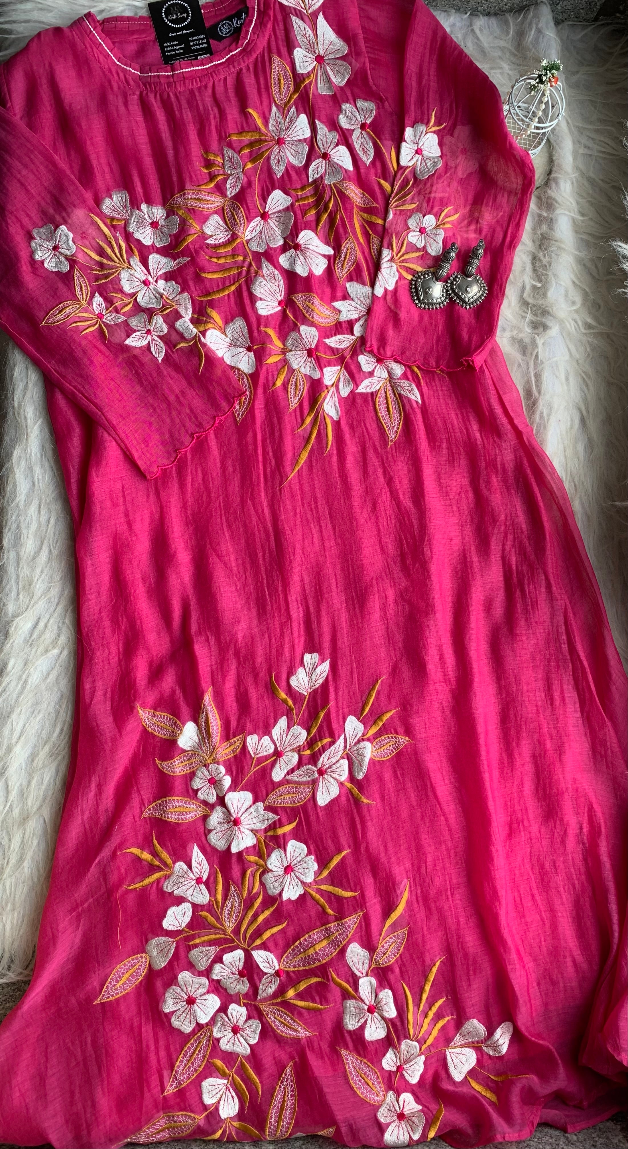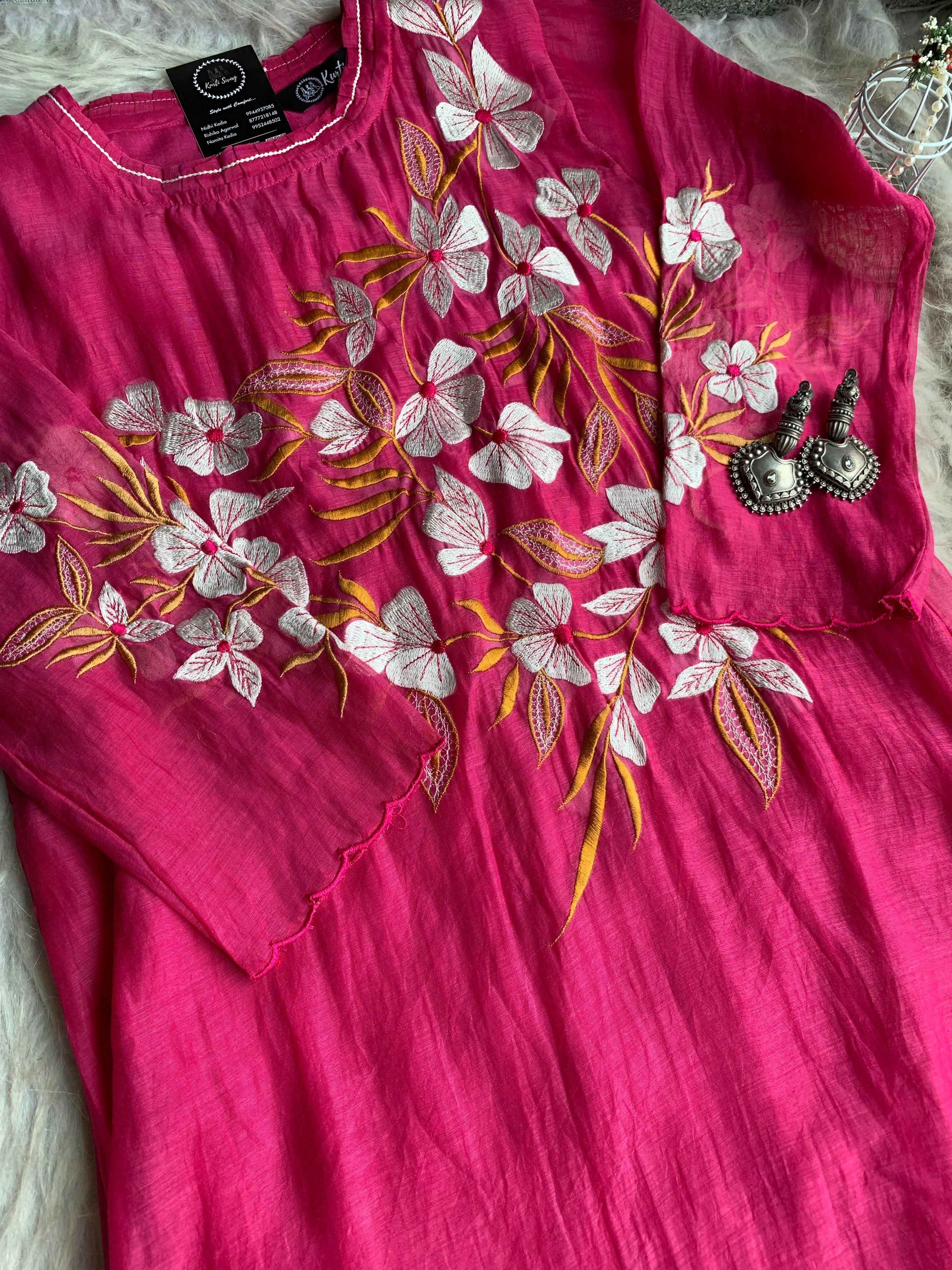 ✅ Premium Mul Chanderi Kurti With Thread Embroidery On The Yoke Of The Kurti
