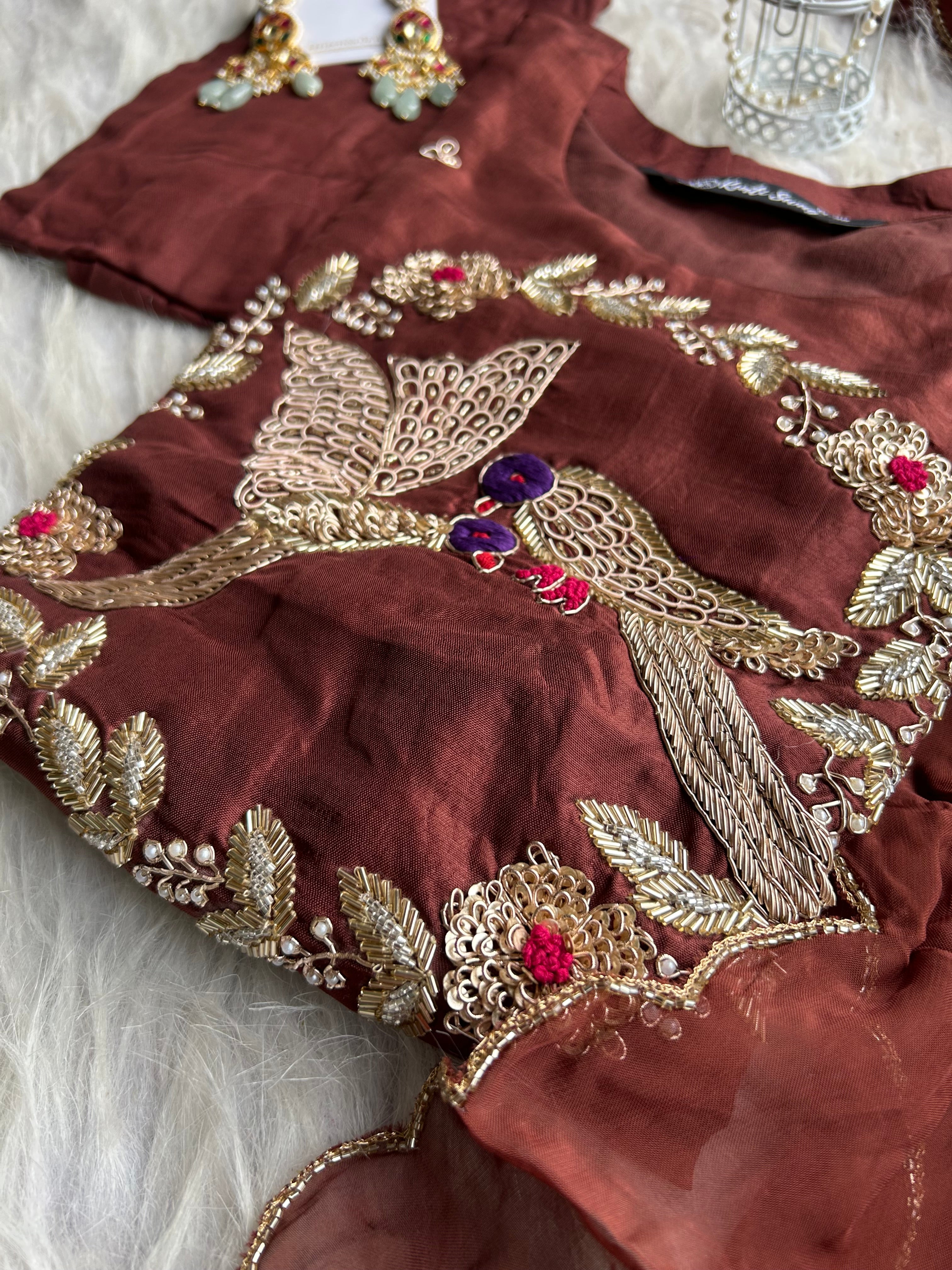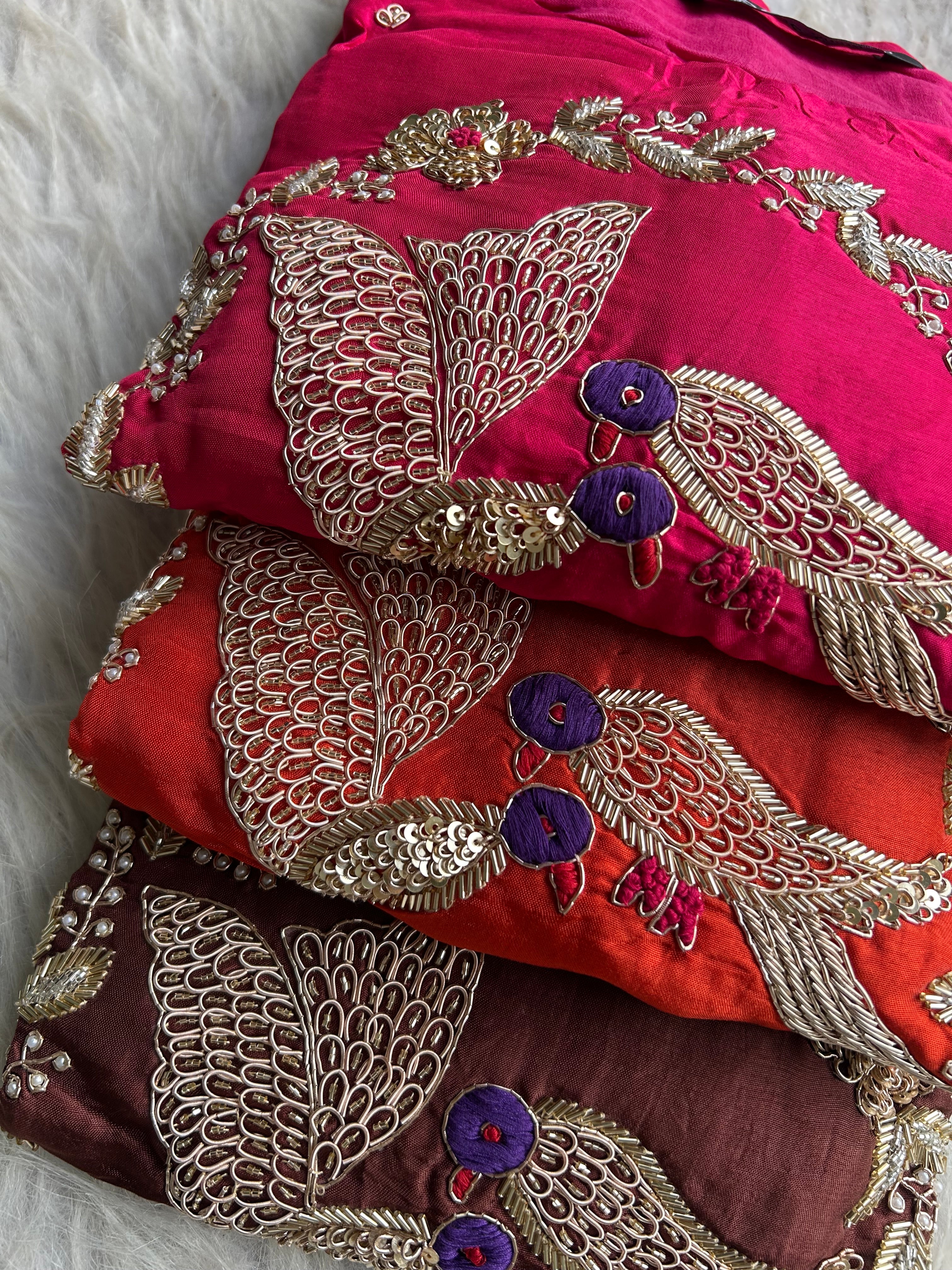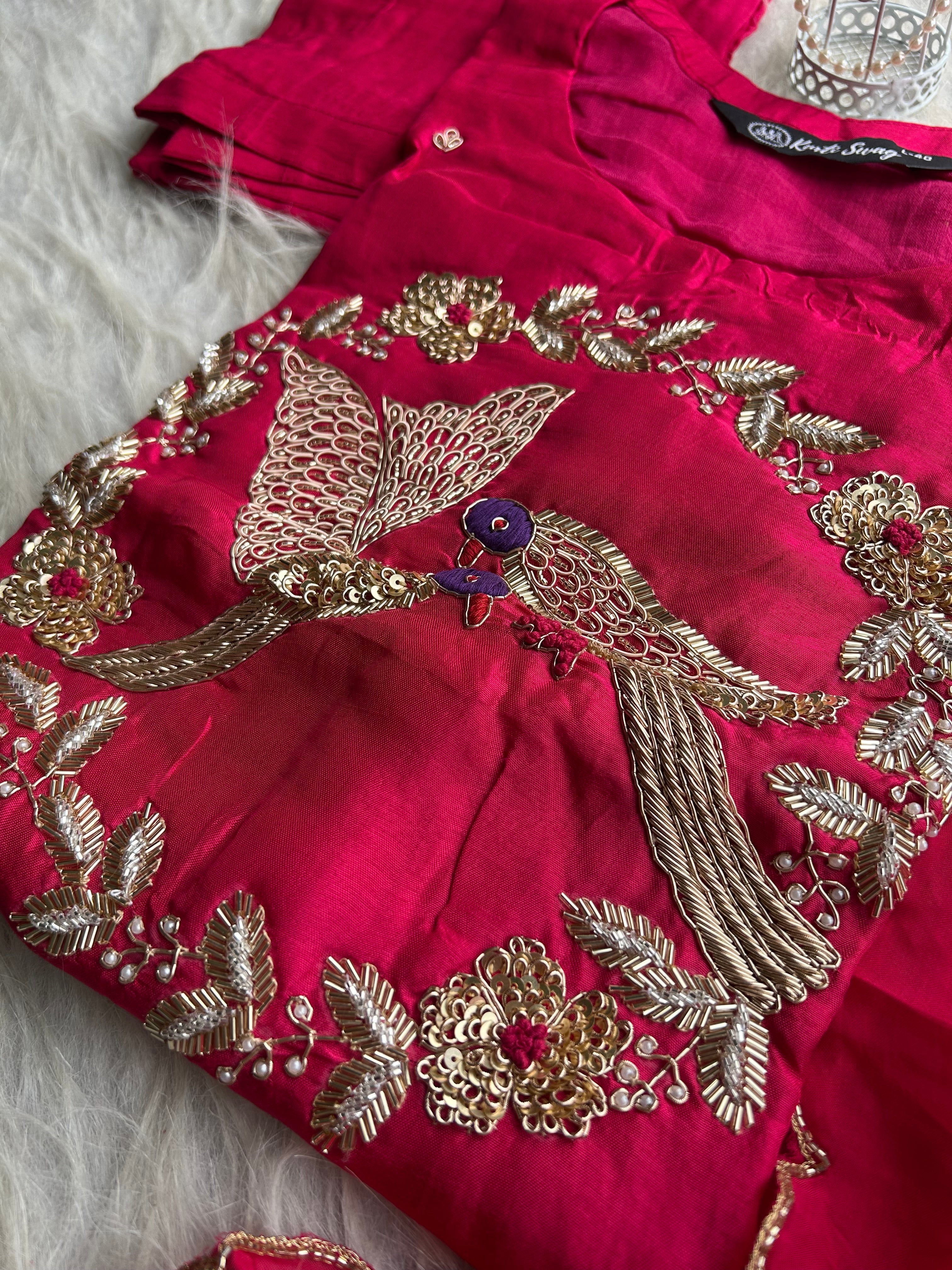 ✅ Premium Dola Silk Kurti With Zardosi & Dabka Handwork On The Yoke Of The Kurti .