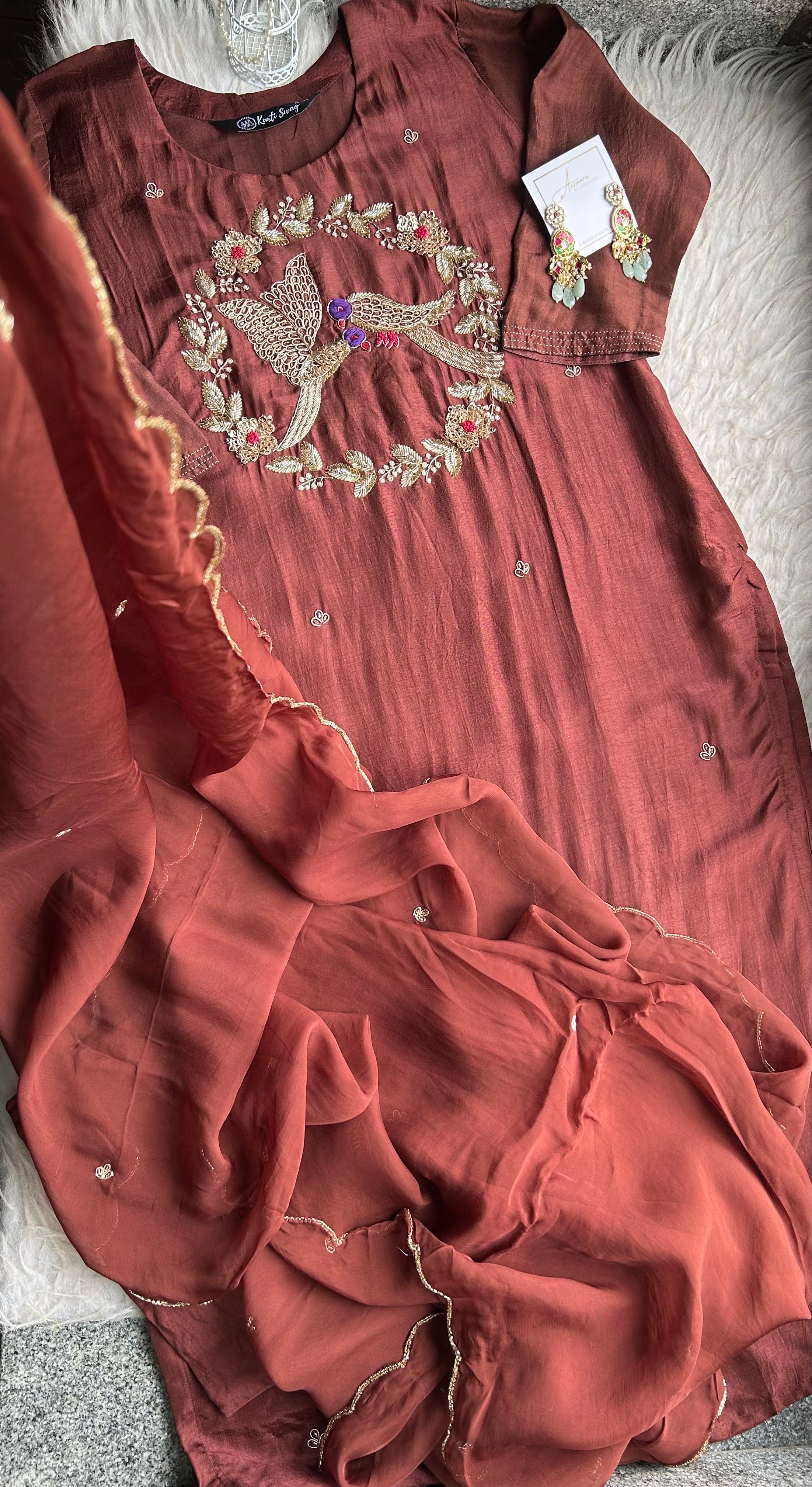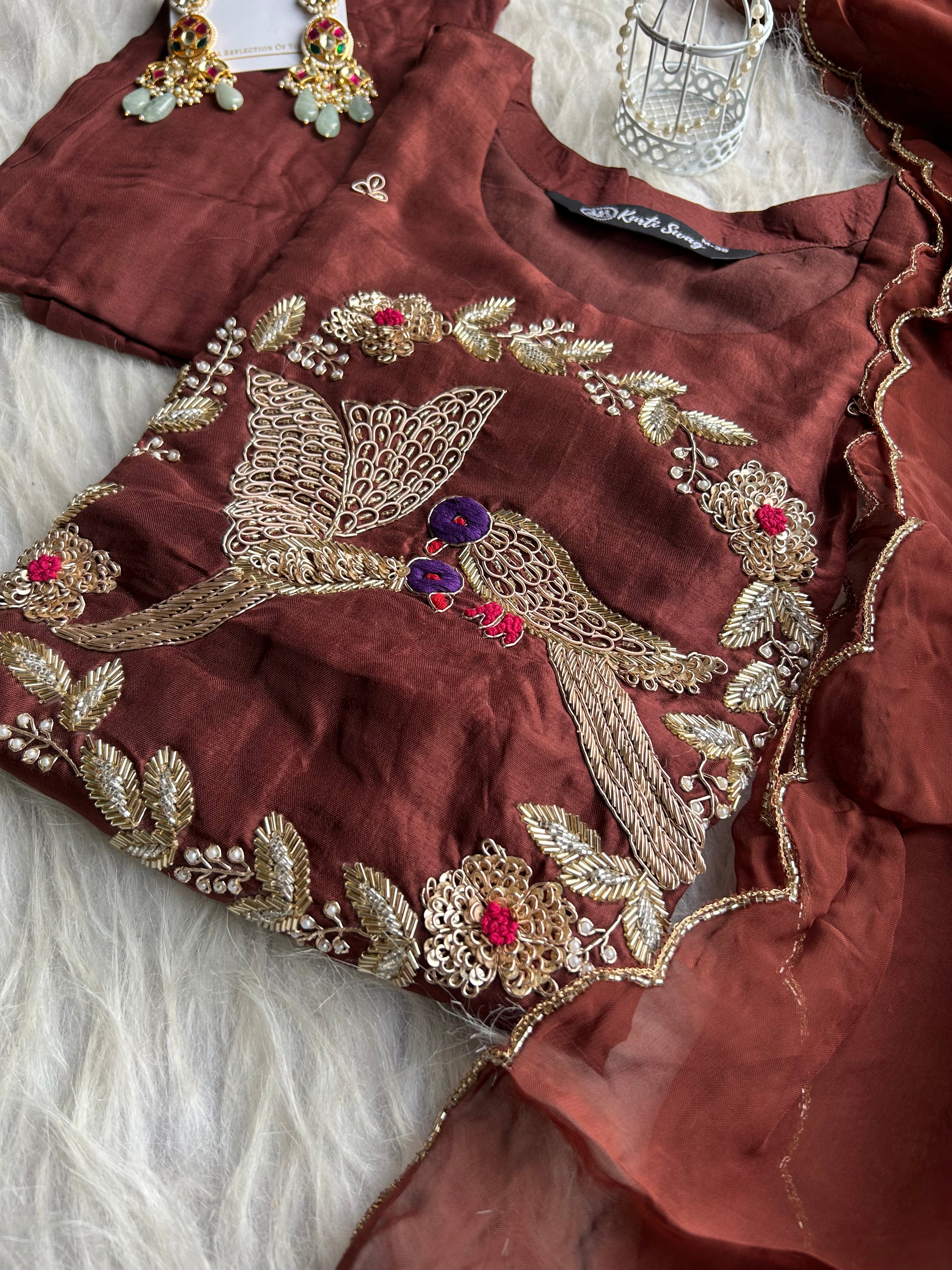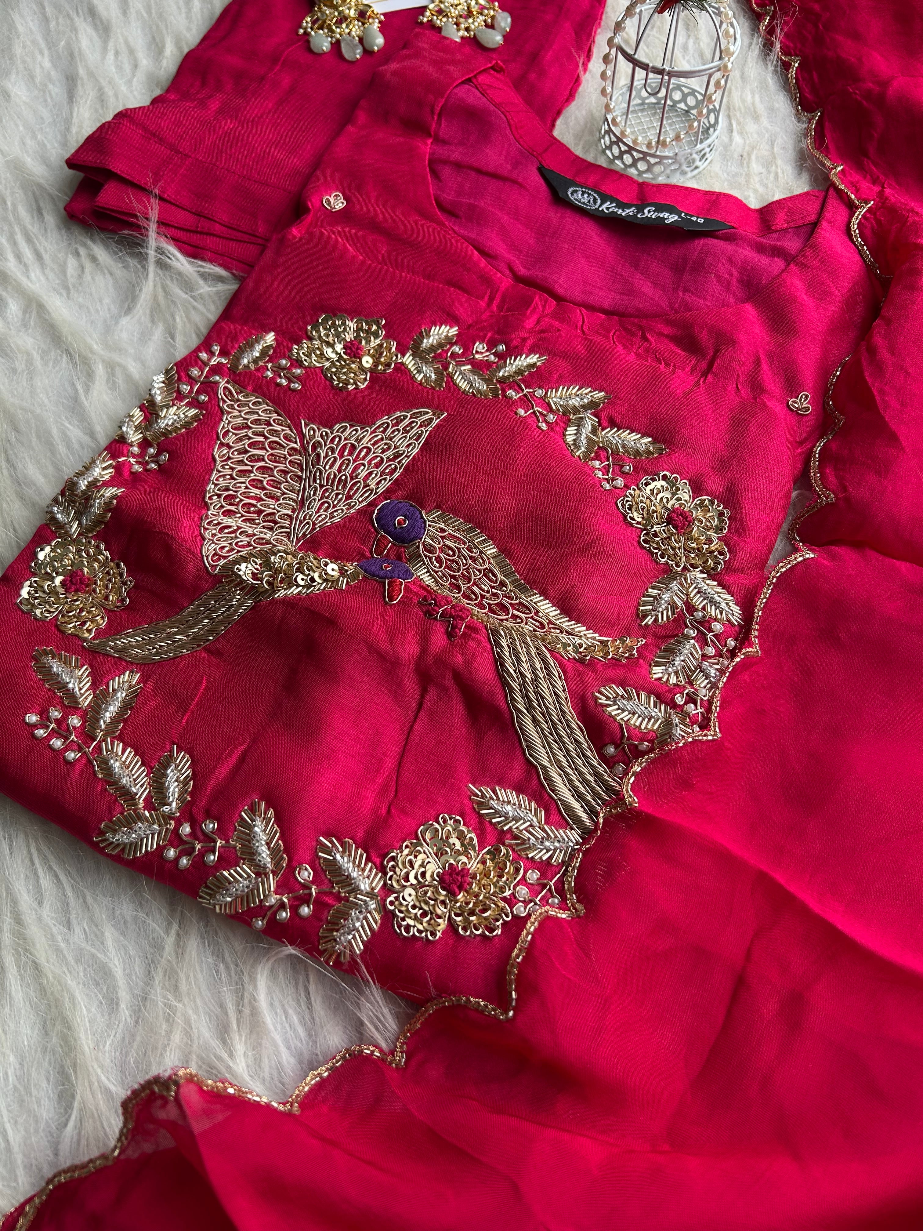 ✅ Premium Dola Silk Kurti With Zardosi & Dabka Handwork On The Yoke Of The Kurti .