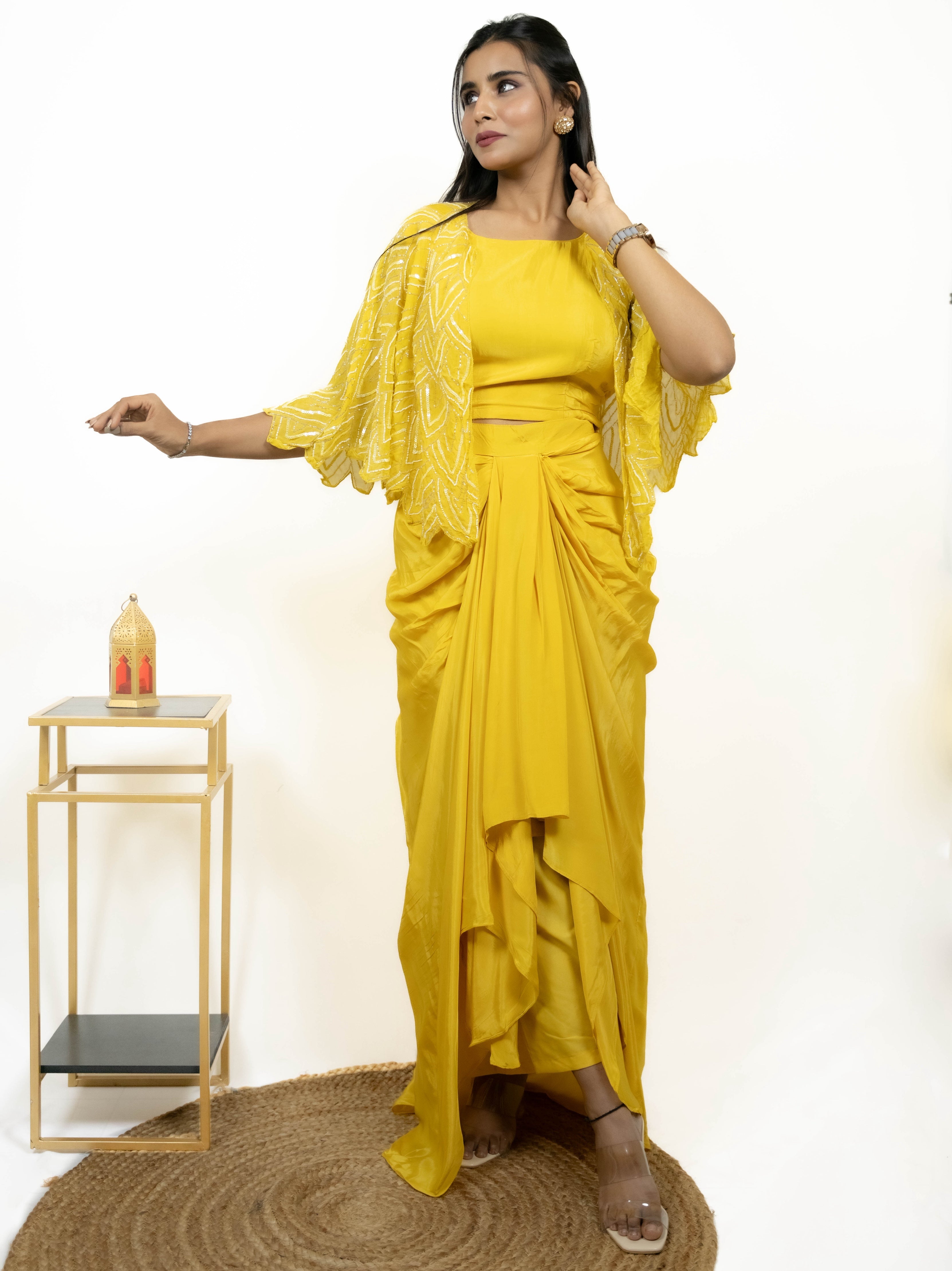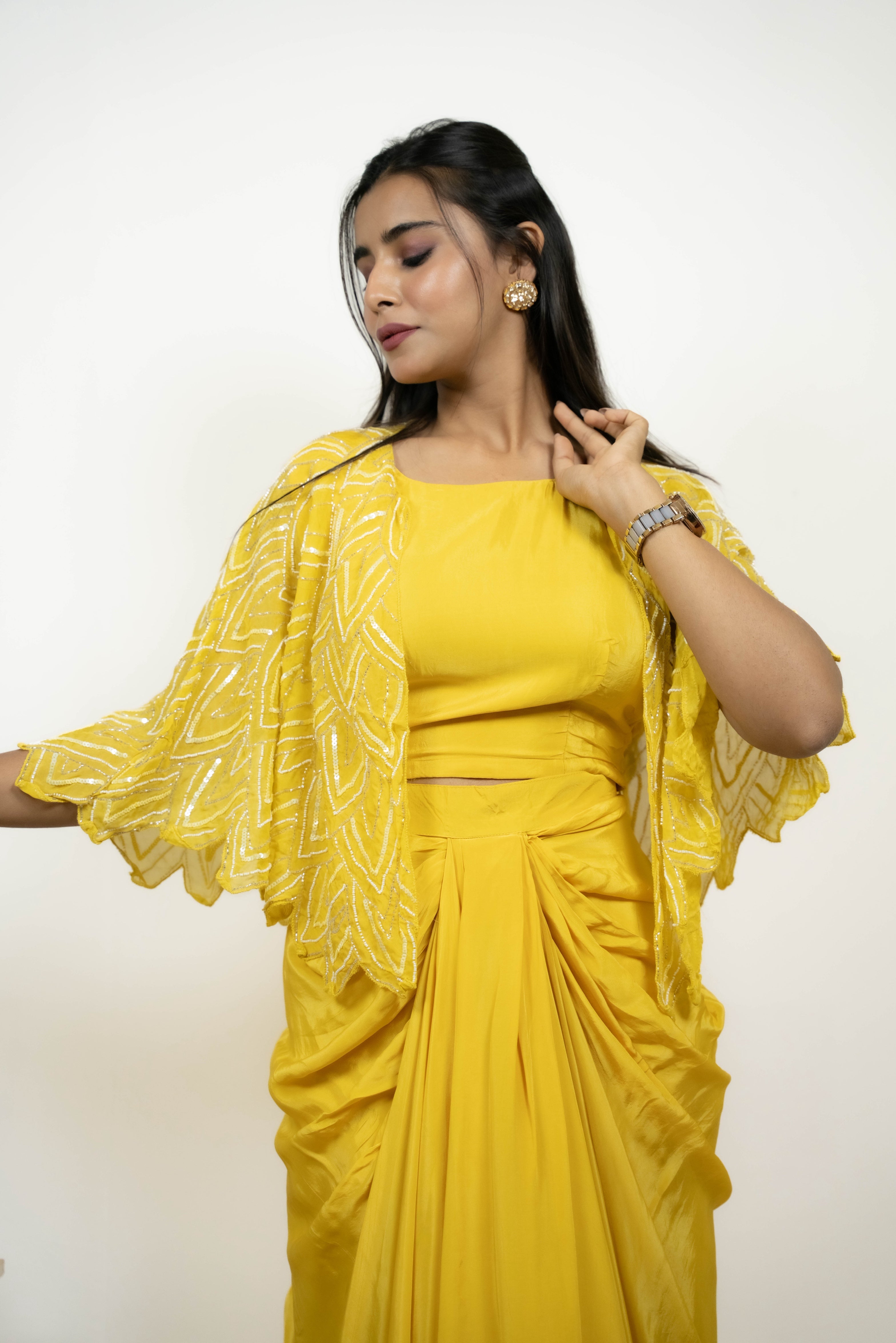 “SHARVARI” Indowestern Drape Skirt And Crop Top ✨💕