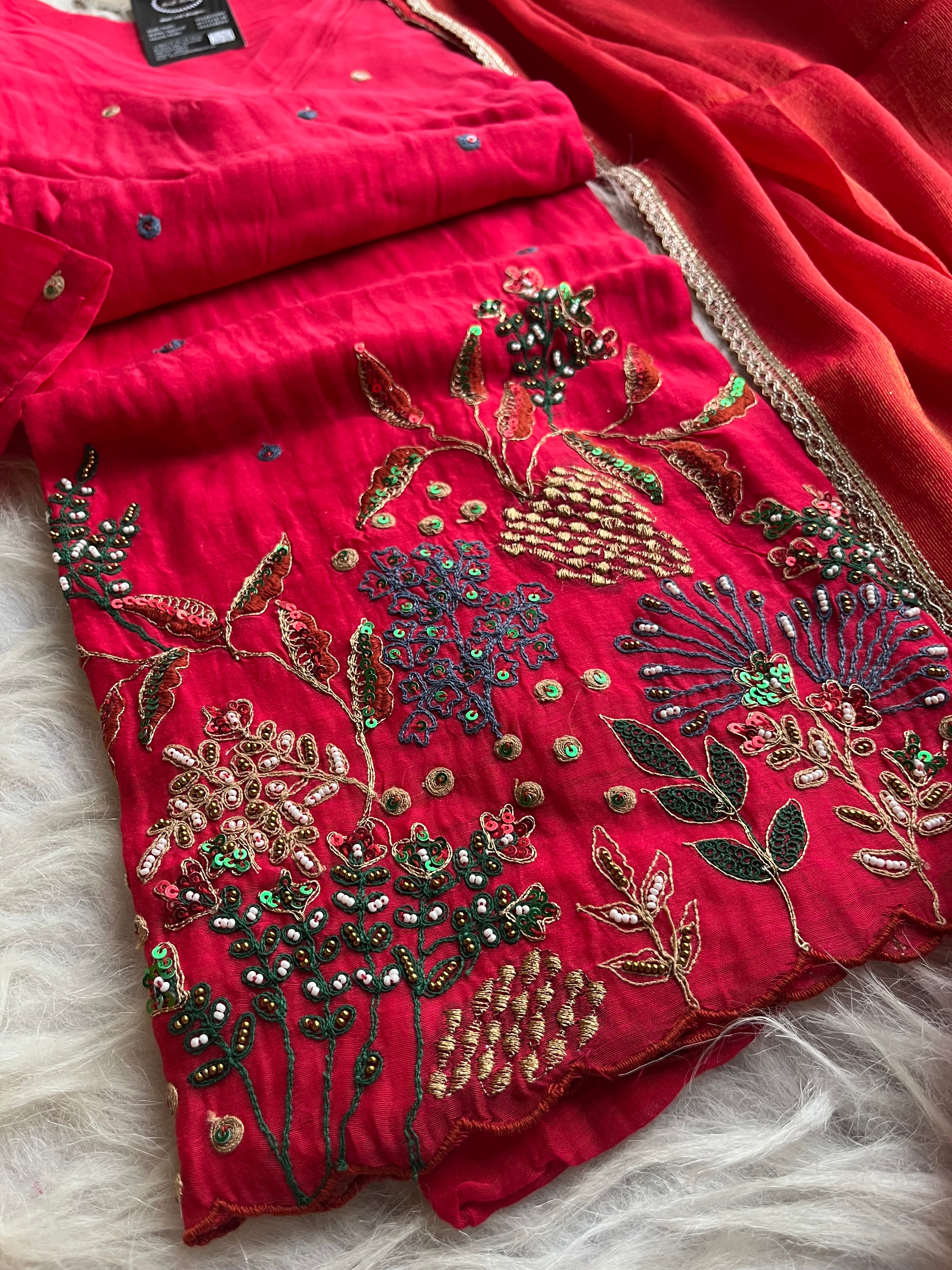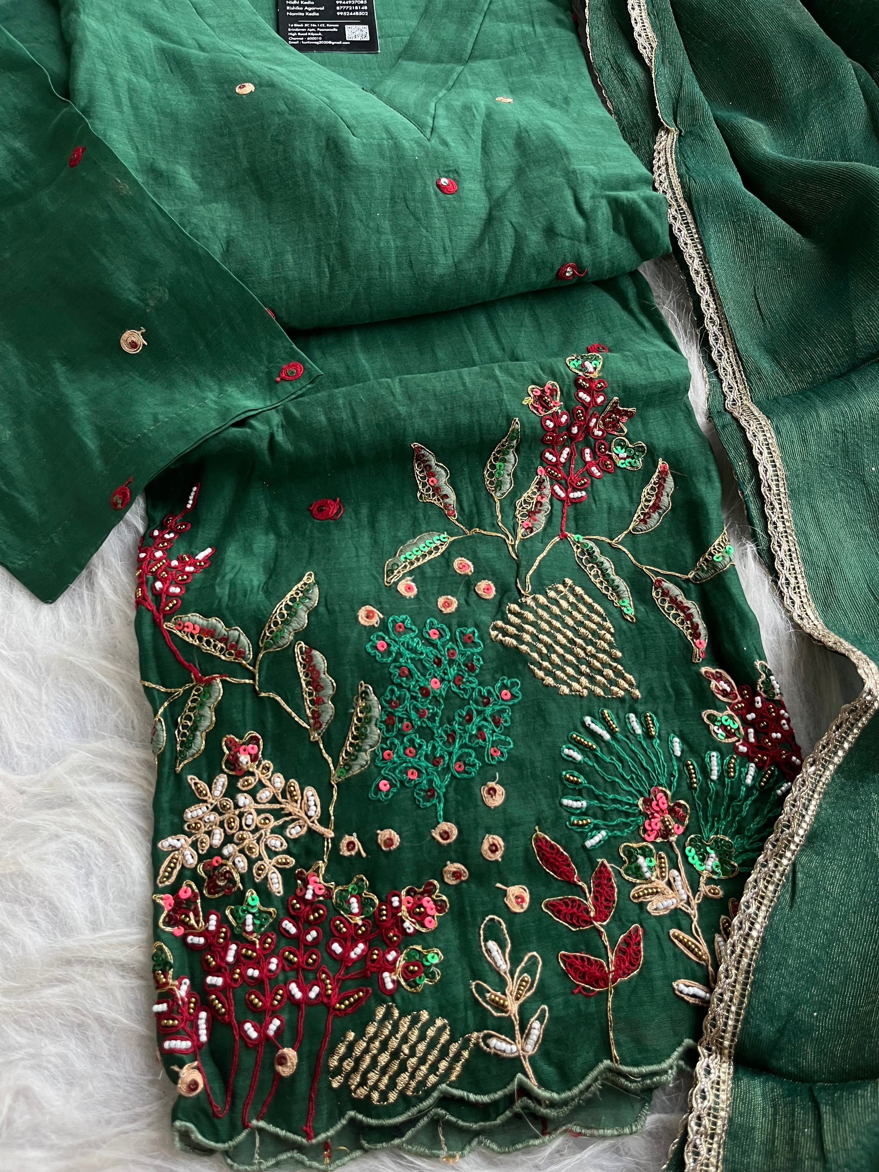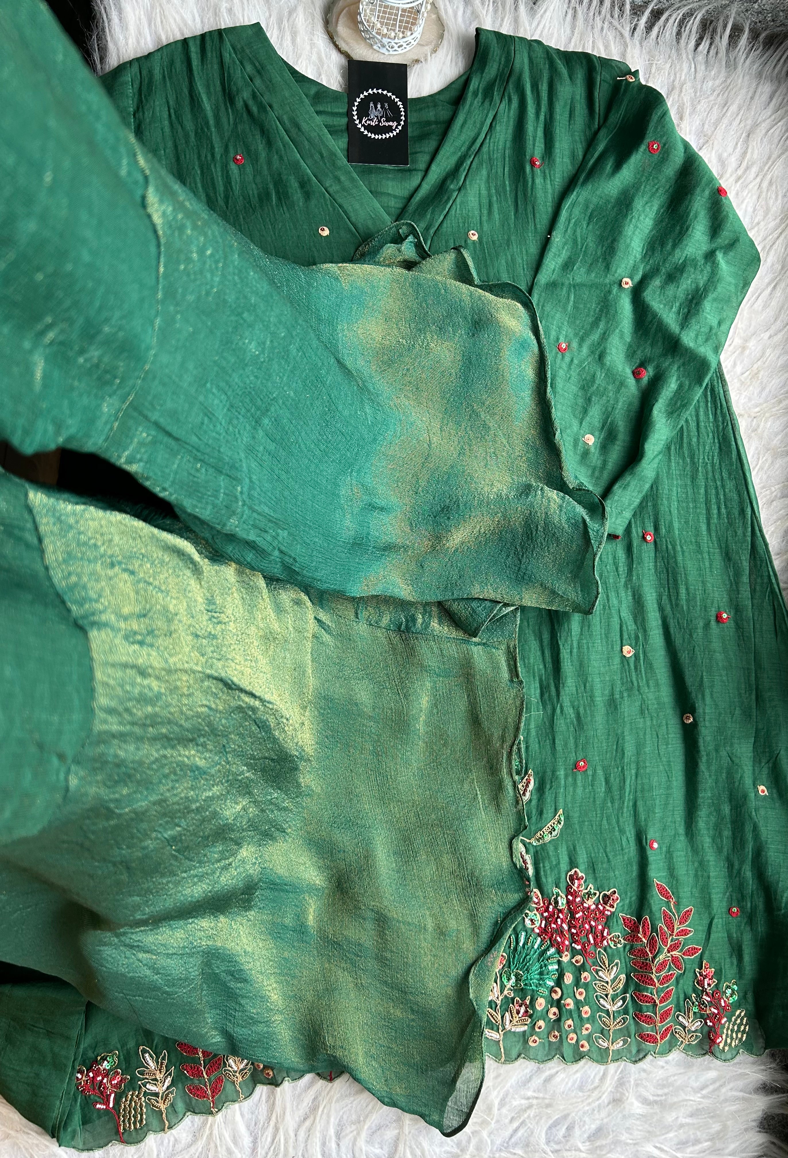 ✅ Premium Mul Chanderi Short Kurti With Exclusive Zardosi , Sequence And dabka Work On The Daaman Of The Kurta