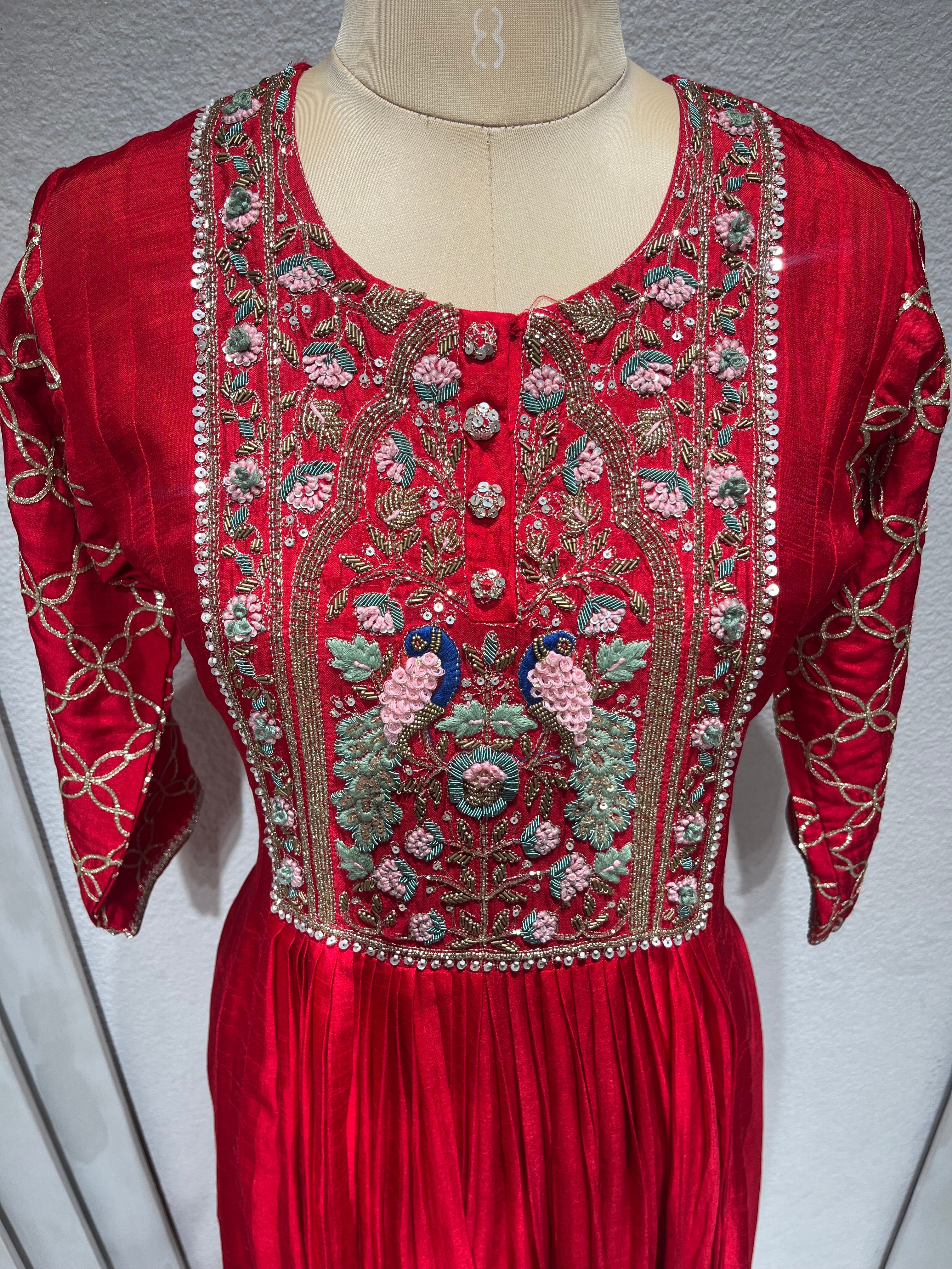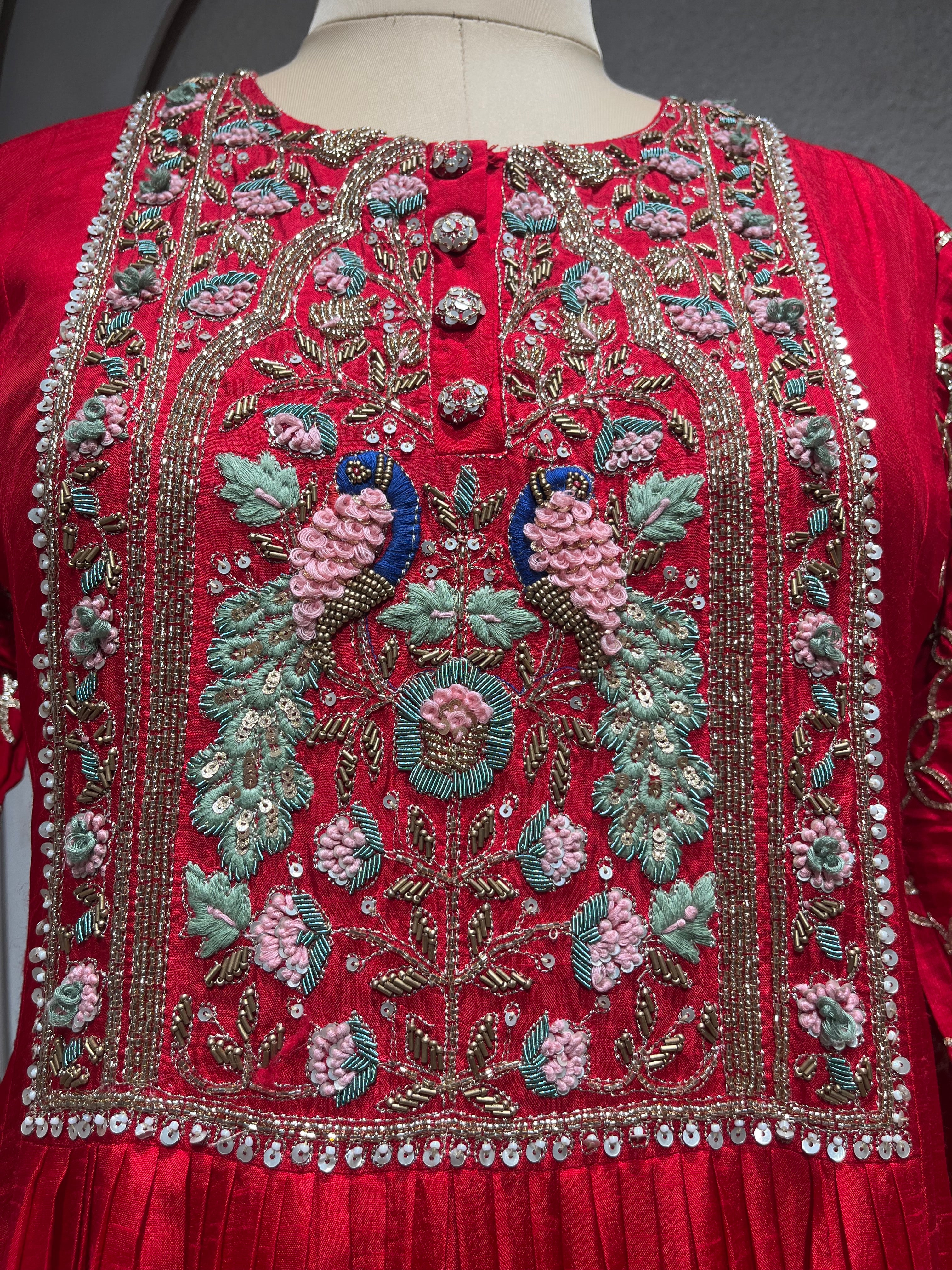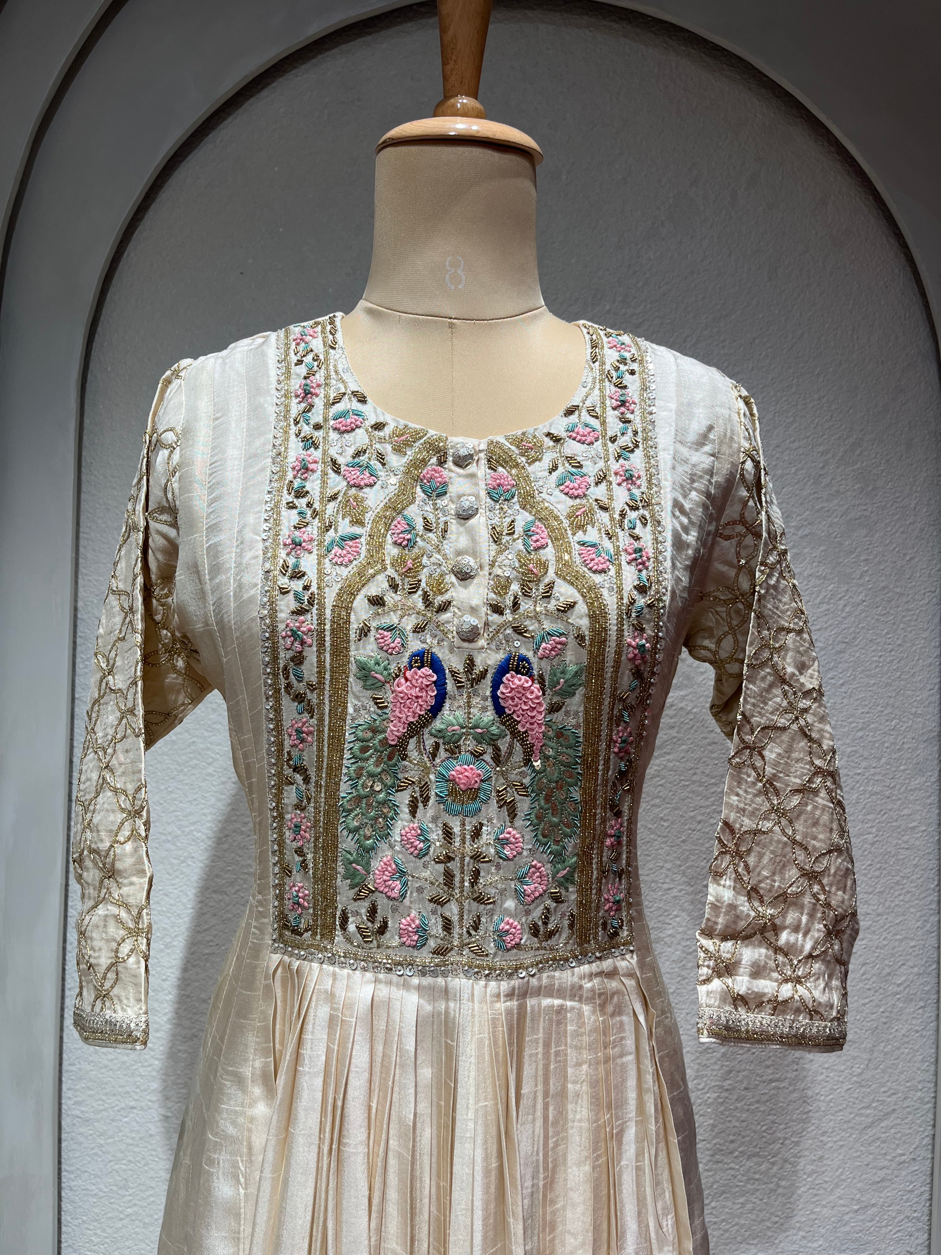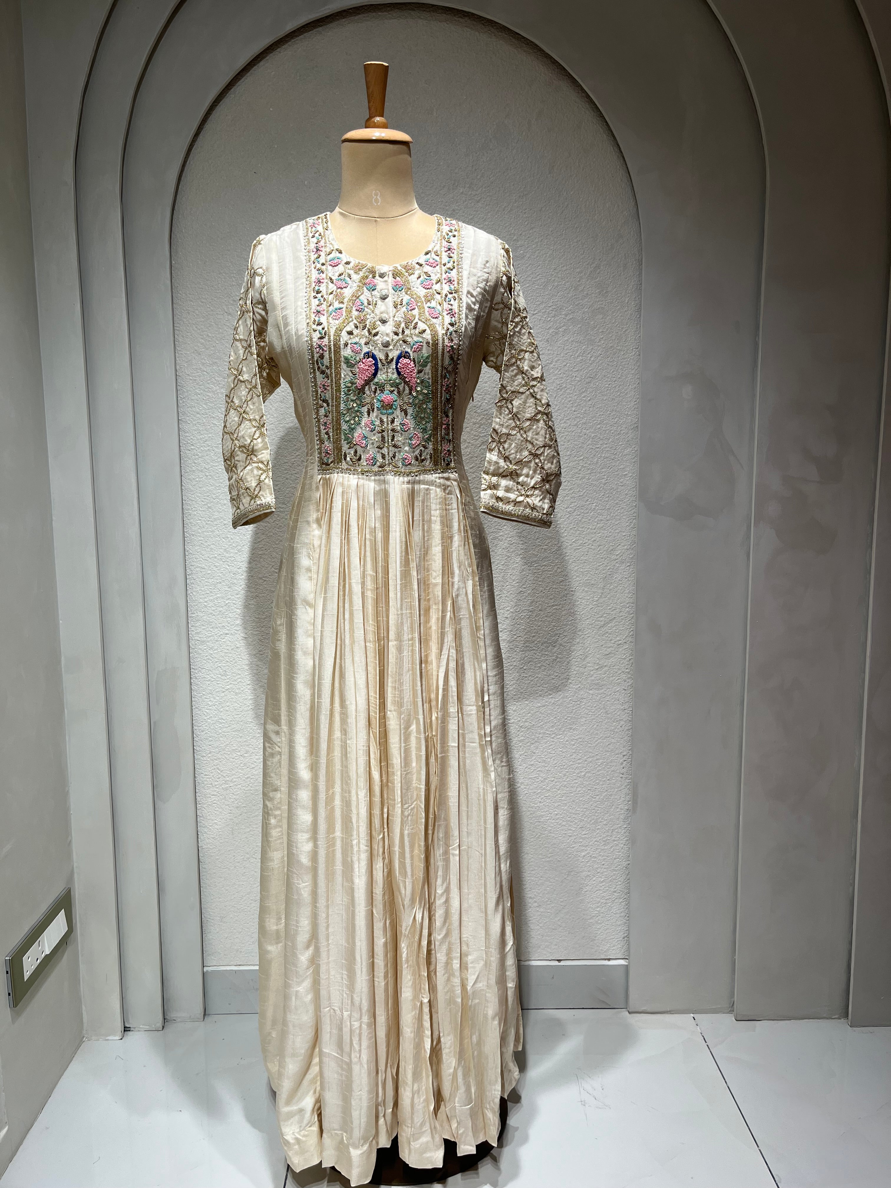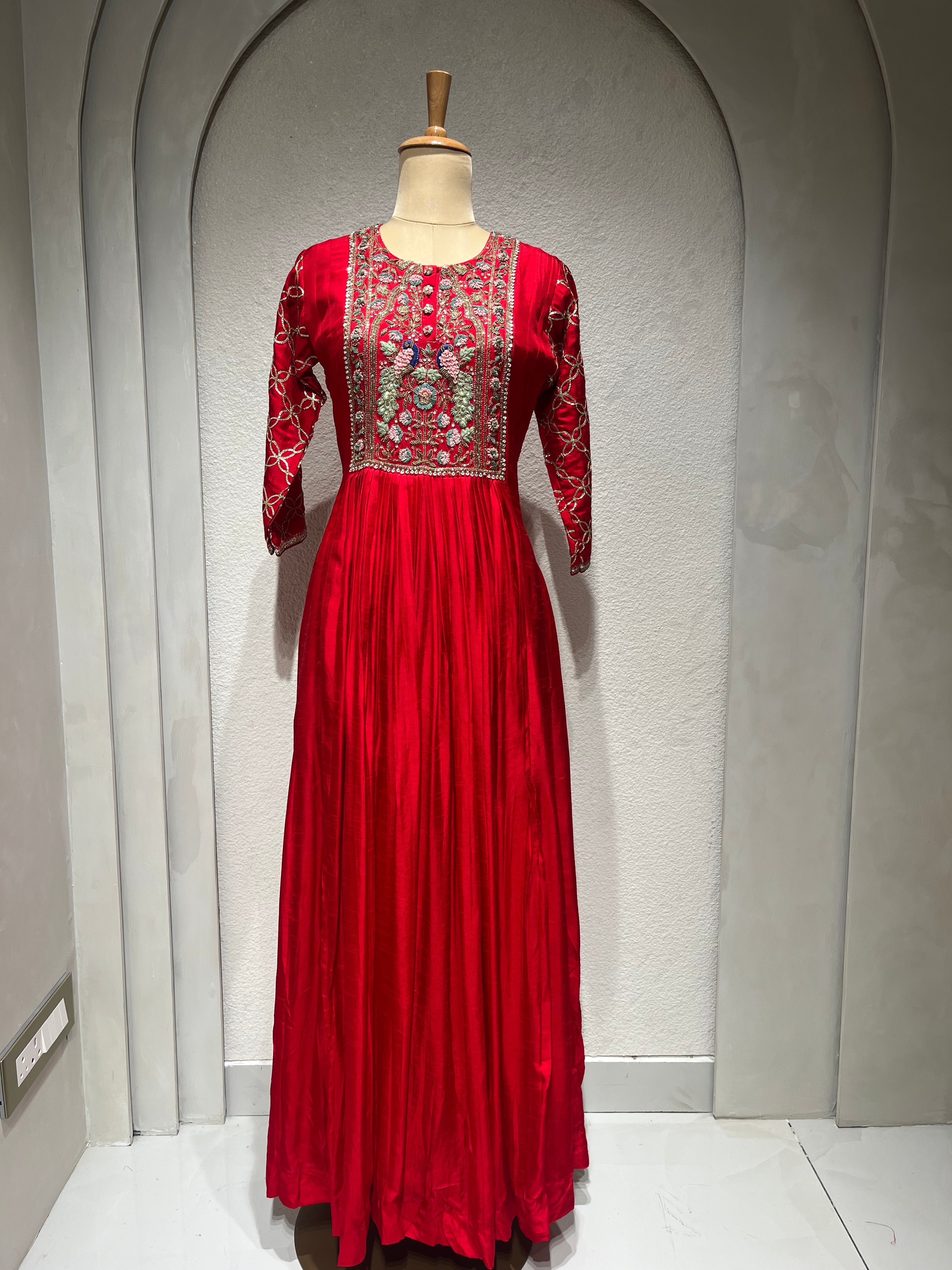 ✅ Premium Dola Silk gown with Premium Dabka zardosi hand embroidery on the yoke.