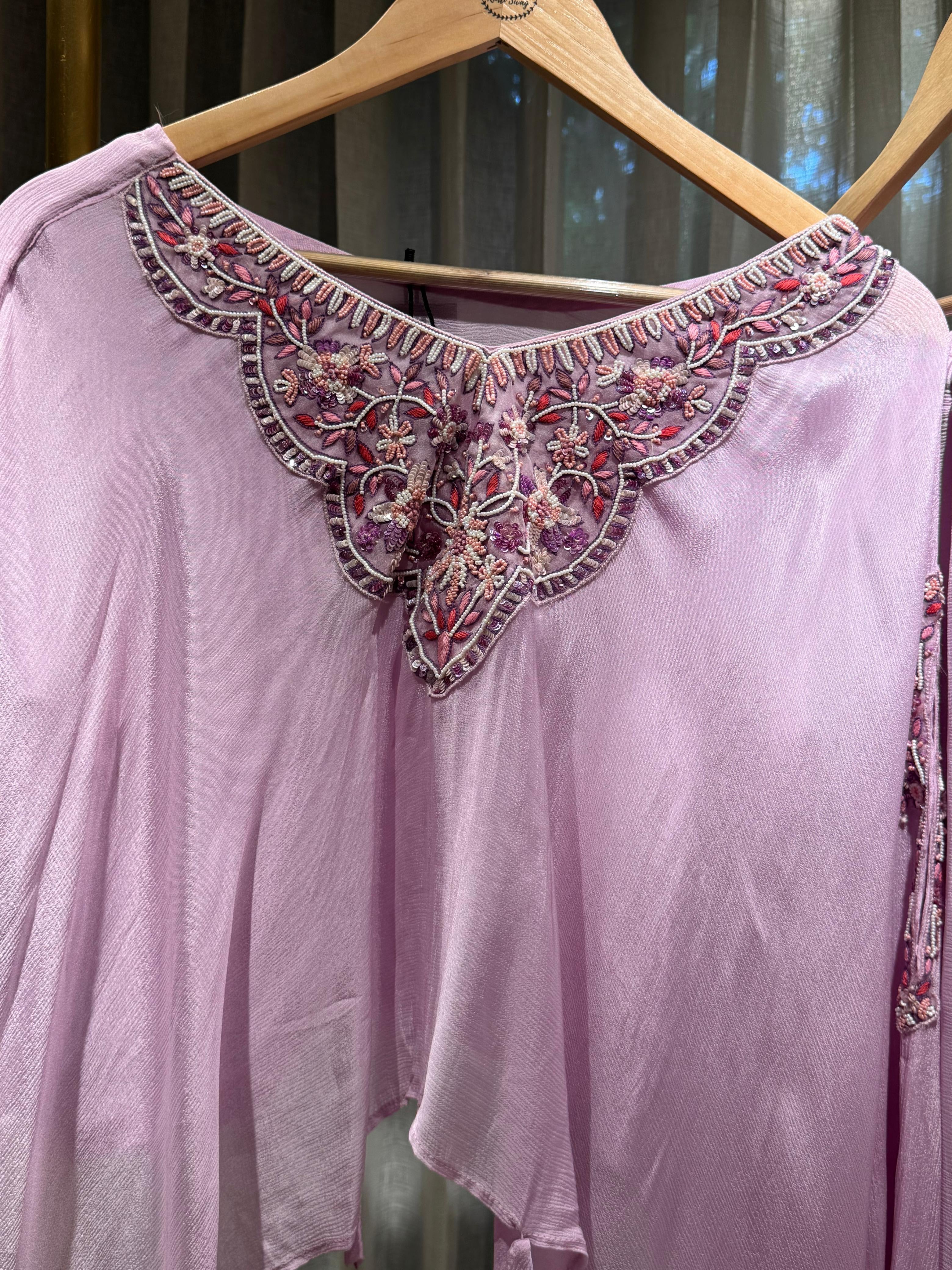 ✅ Chinnon Silk Top With Intricatate Beads, Thread & Sequence Handwork On The Yoke