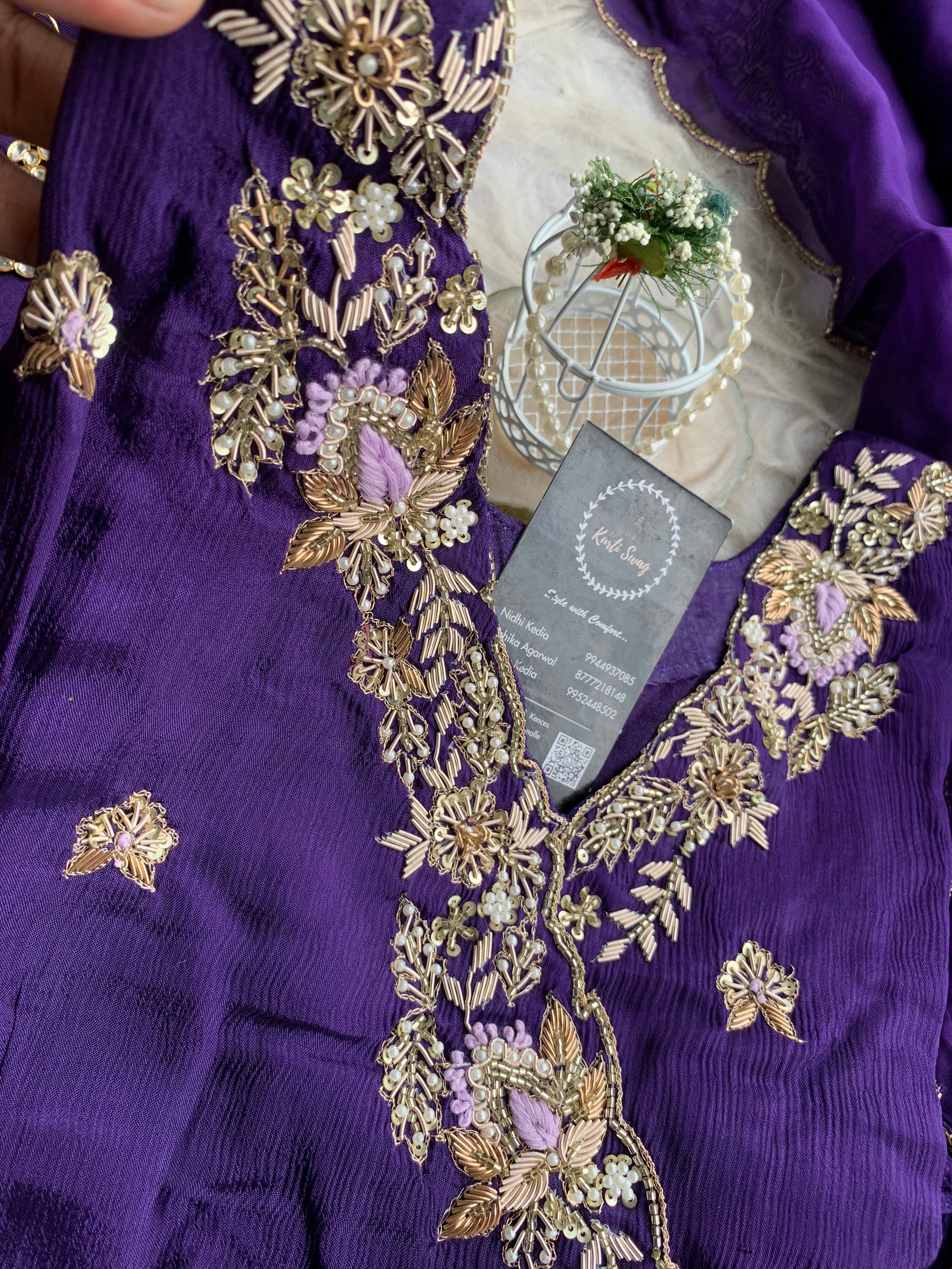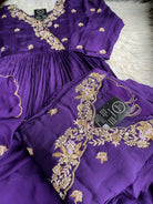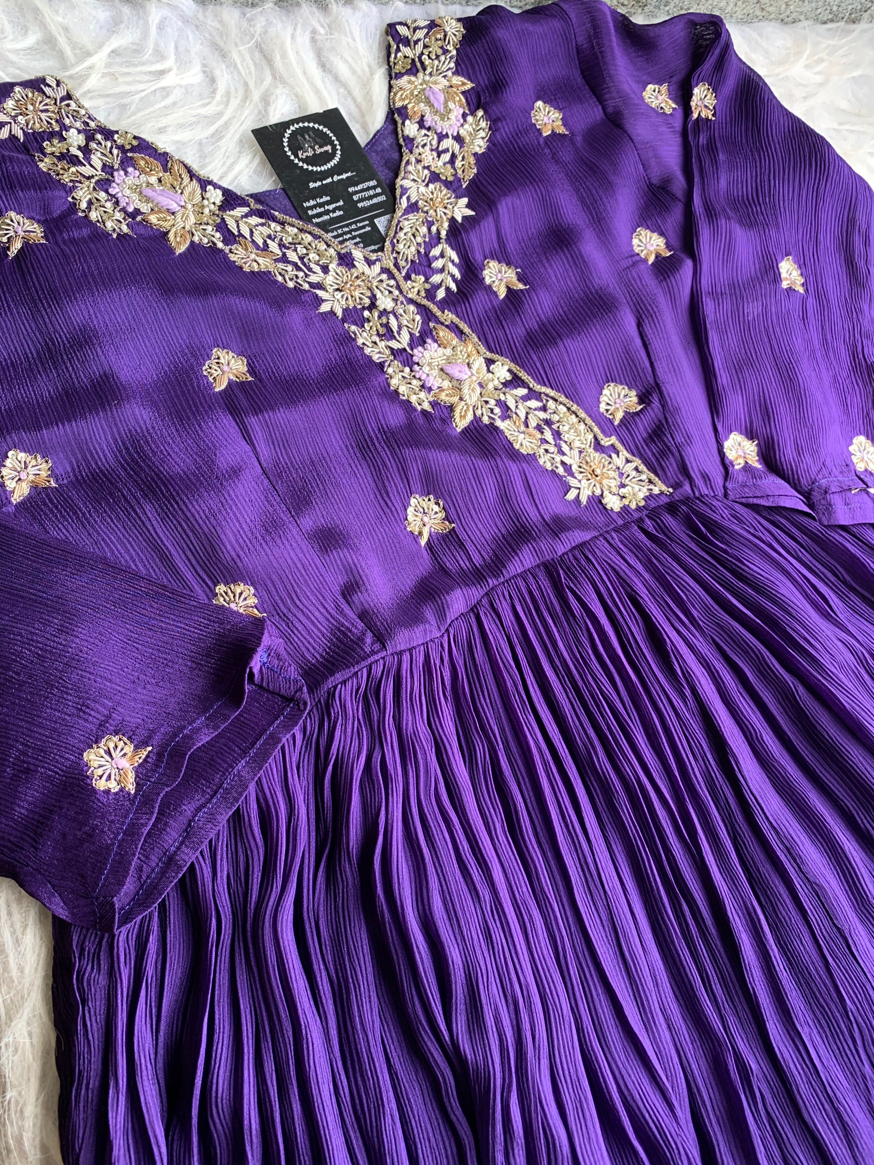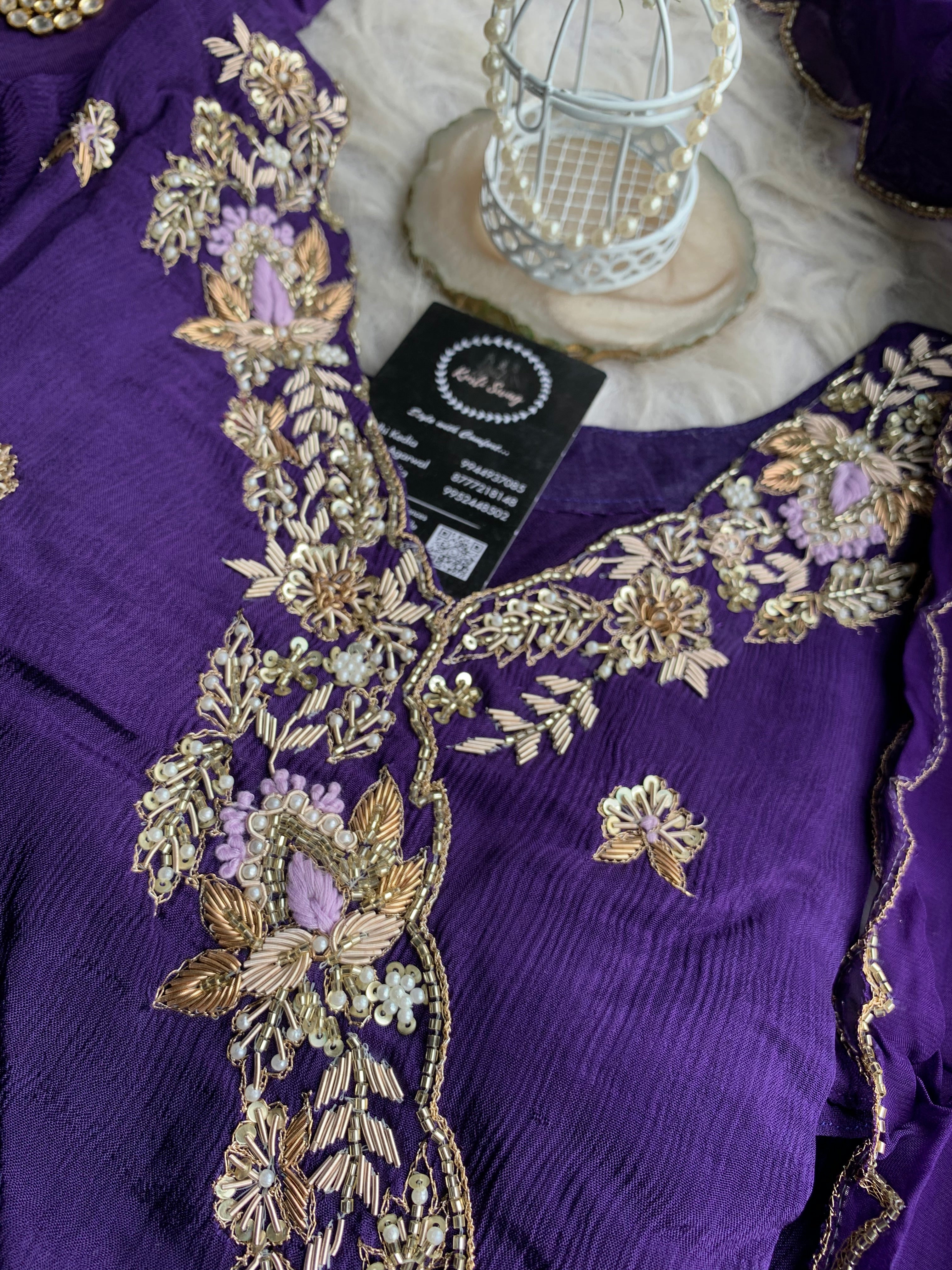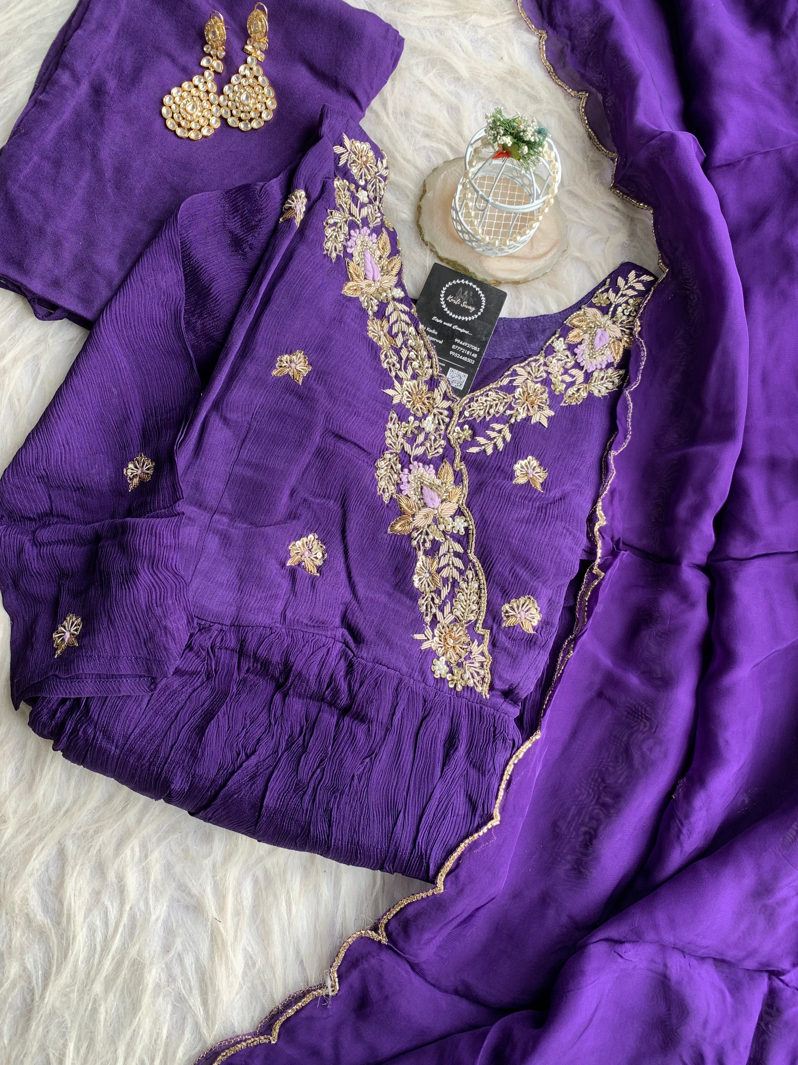 ✅ Premium Chinnon Silk Gown With Zardosi Hand Embroidery On The Yoke.