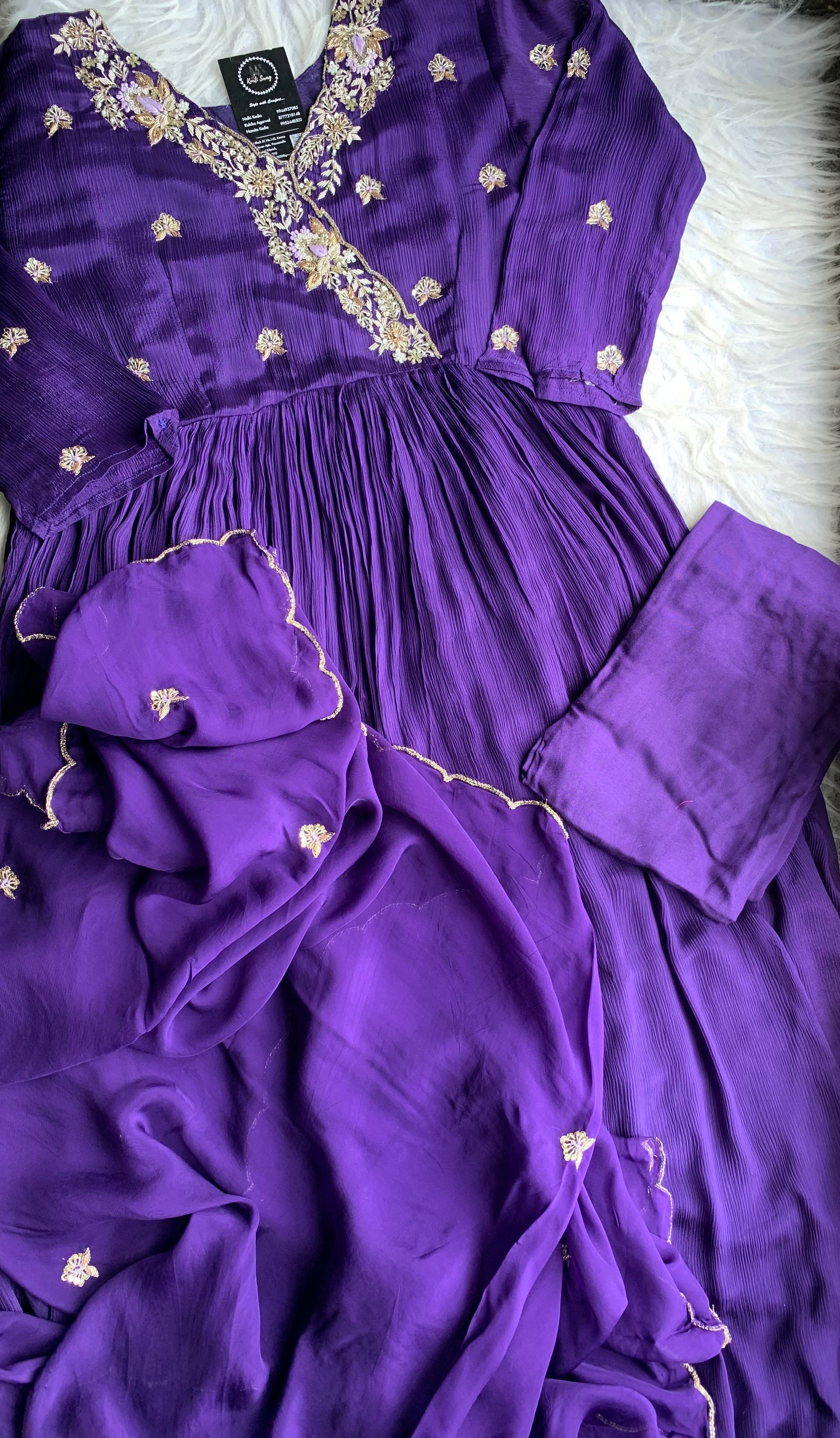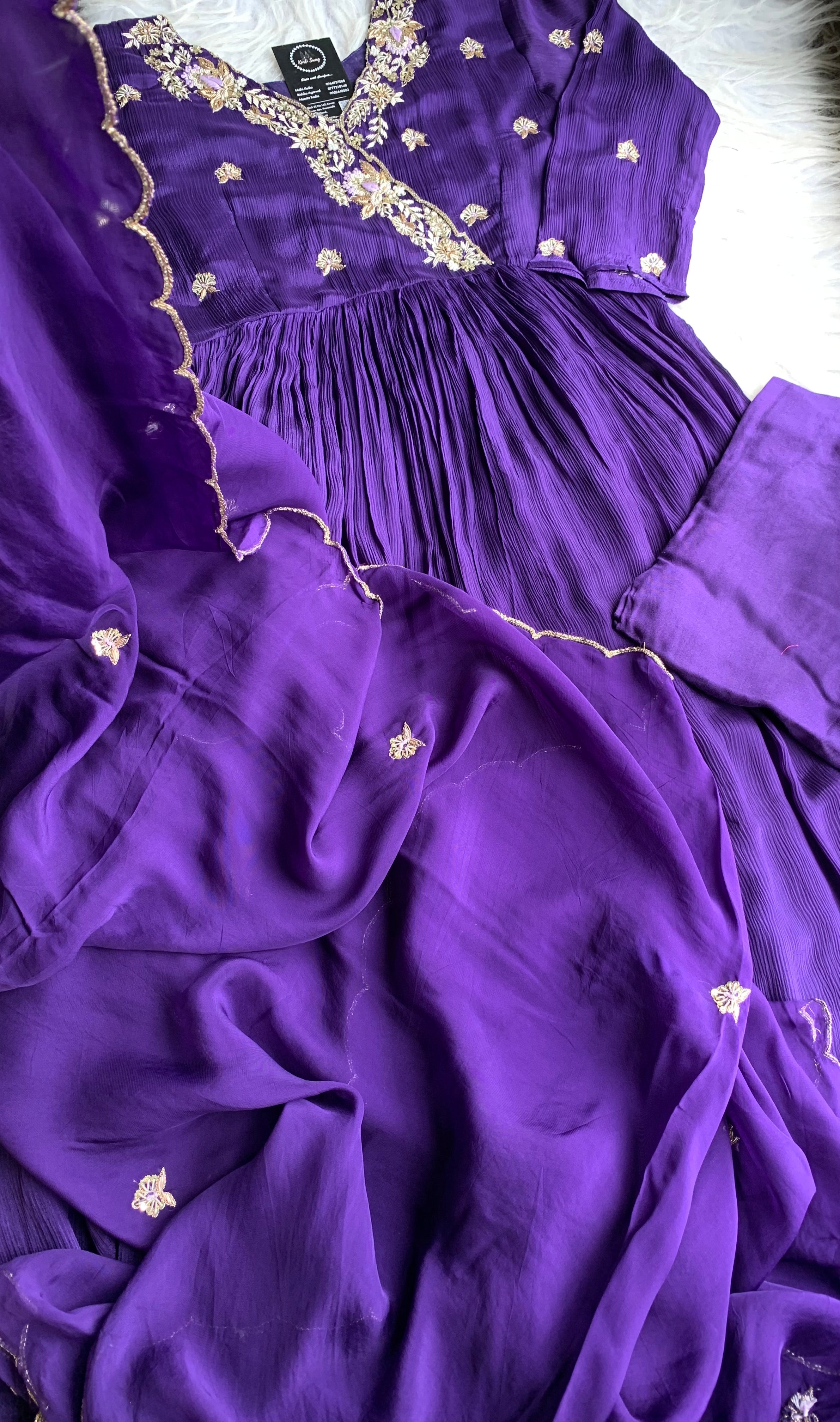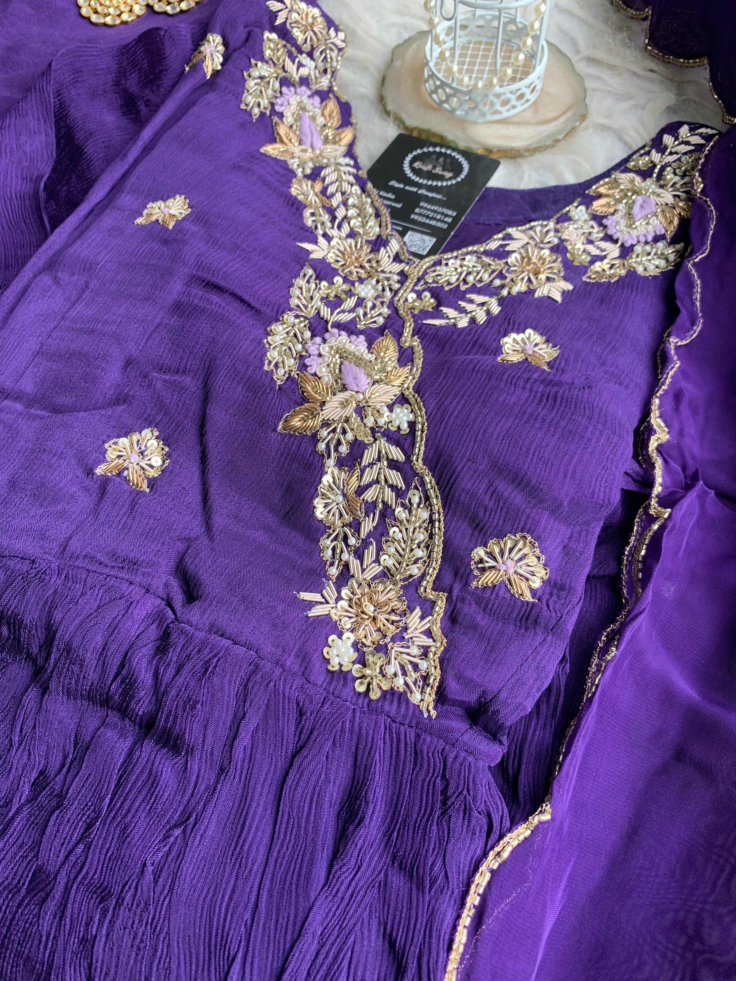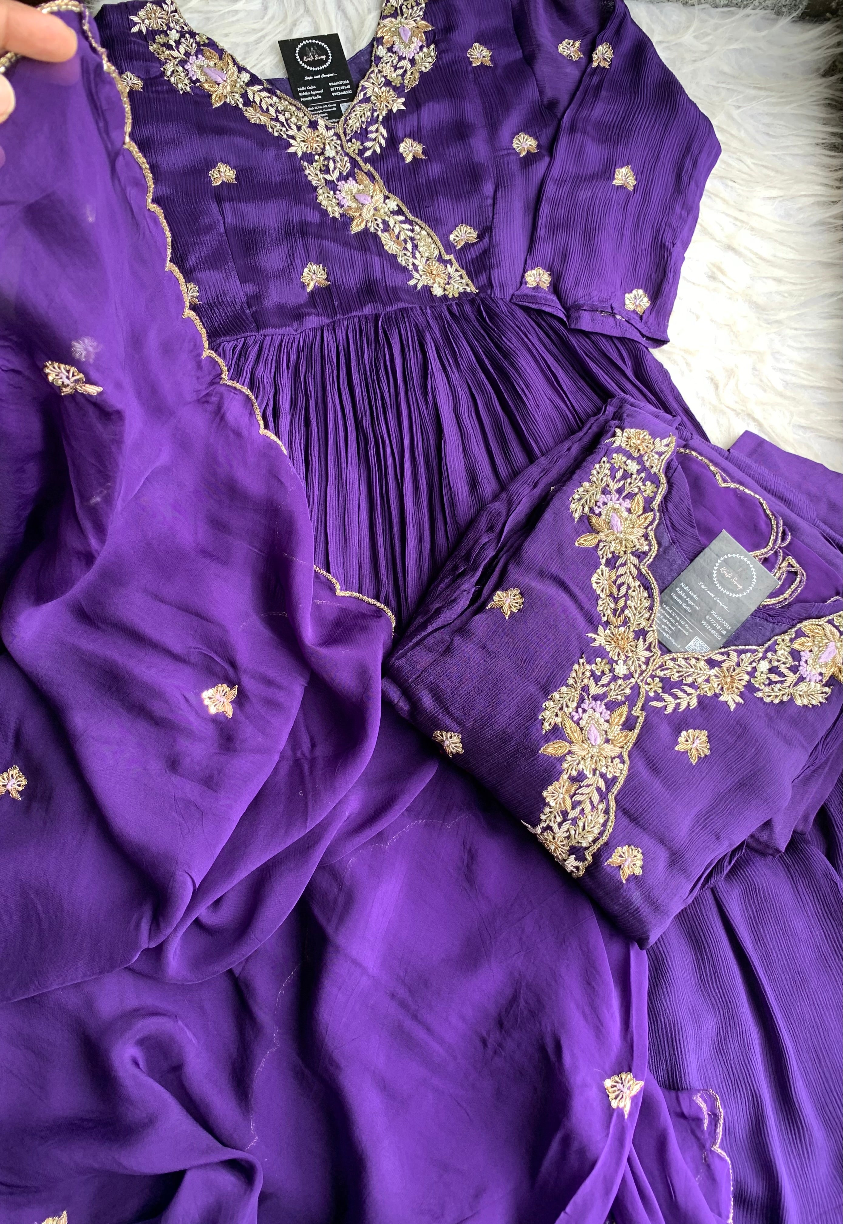 ✅ Premium Chinnon Silk Gown With Zardosi Hand Embroidery On The Yoke.