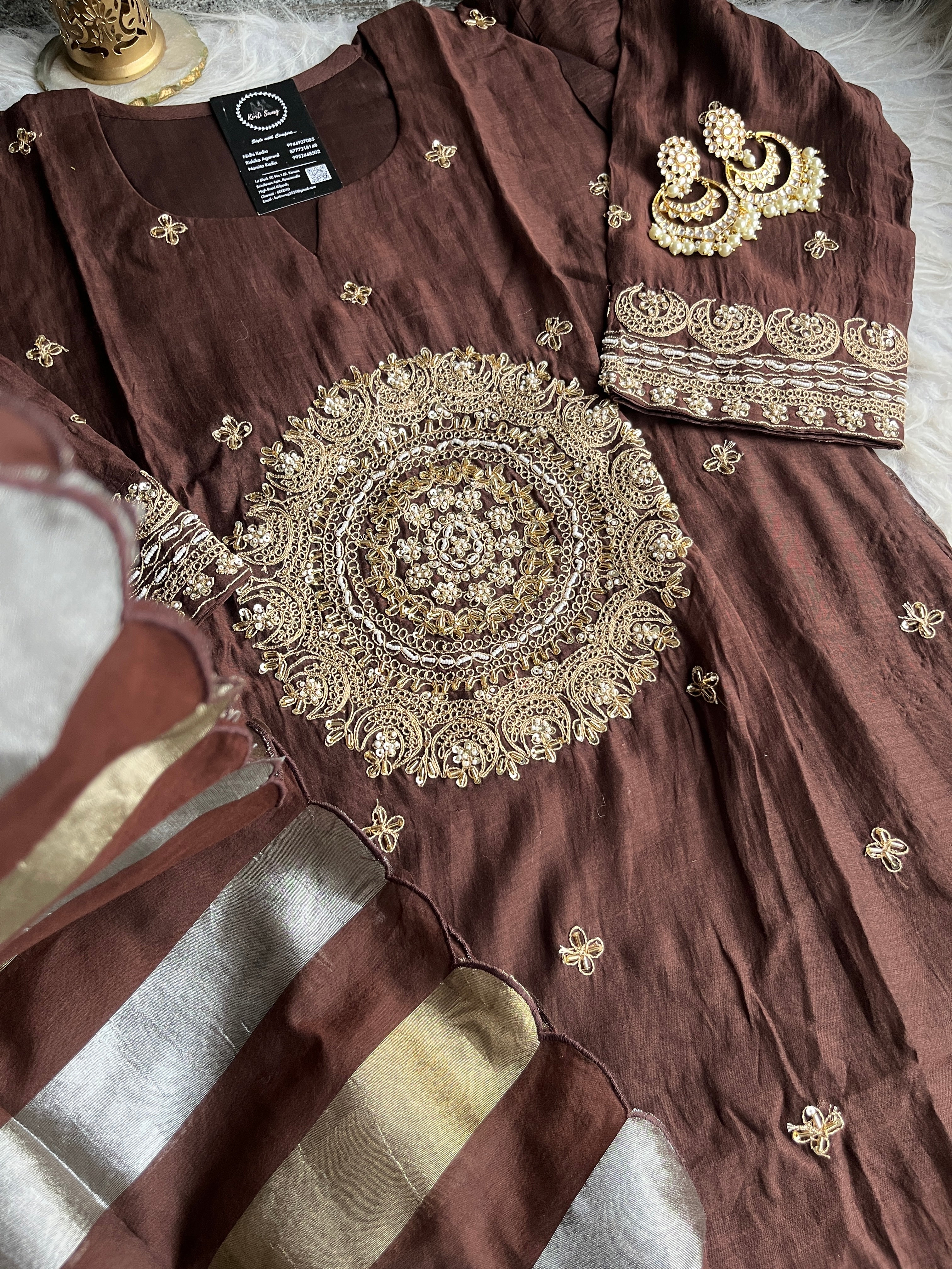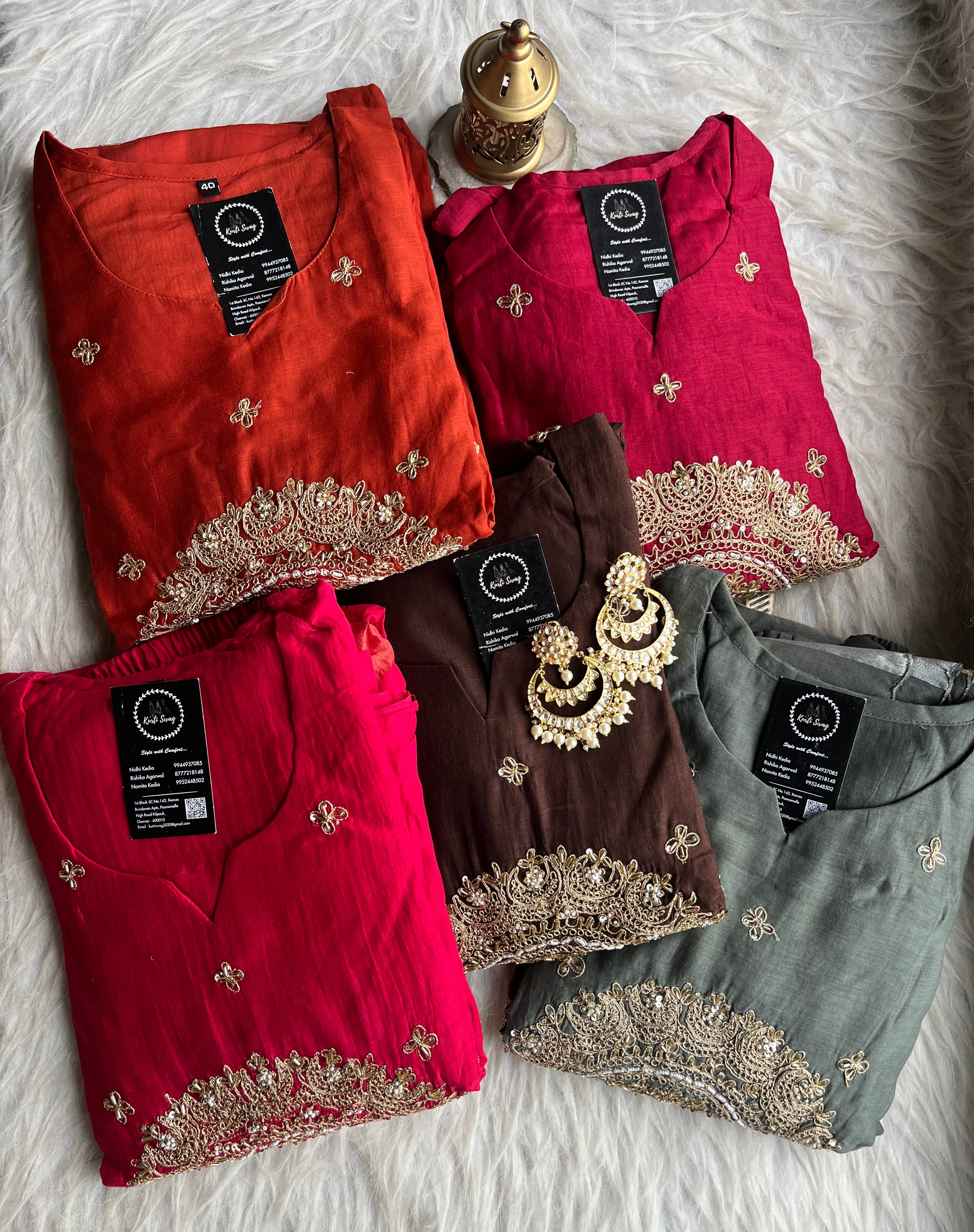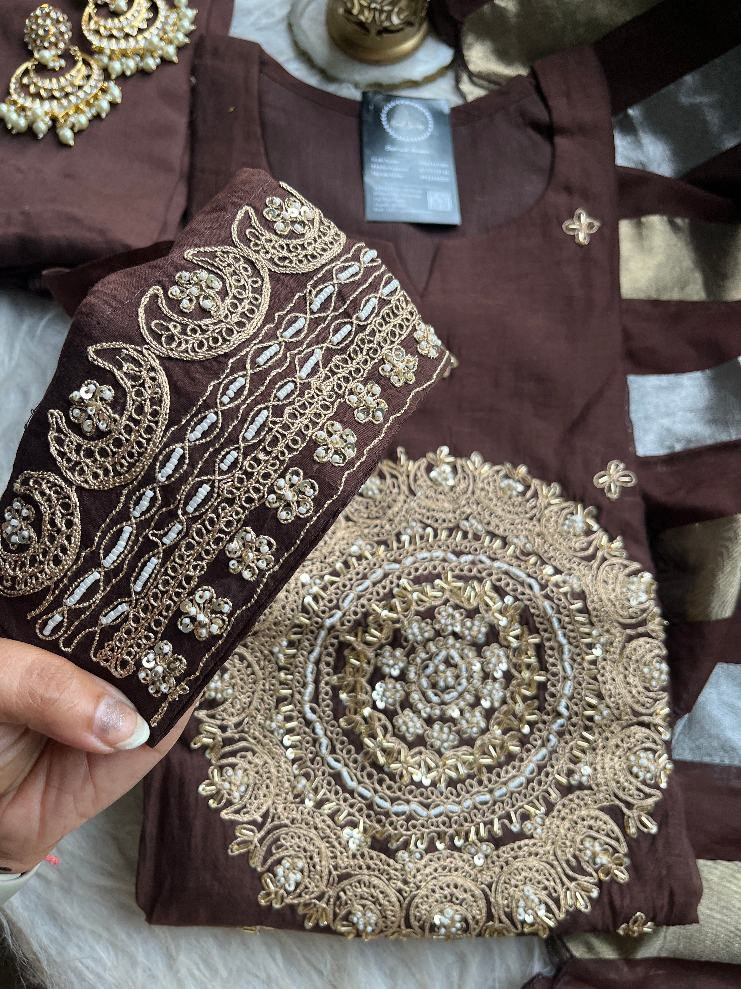 ✅Super Premium Mul Chanderi Dress With golden Zari Hand Embroidery Handwork On The Yoke