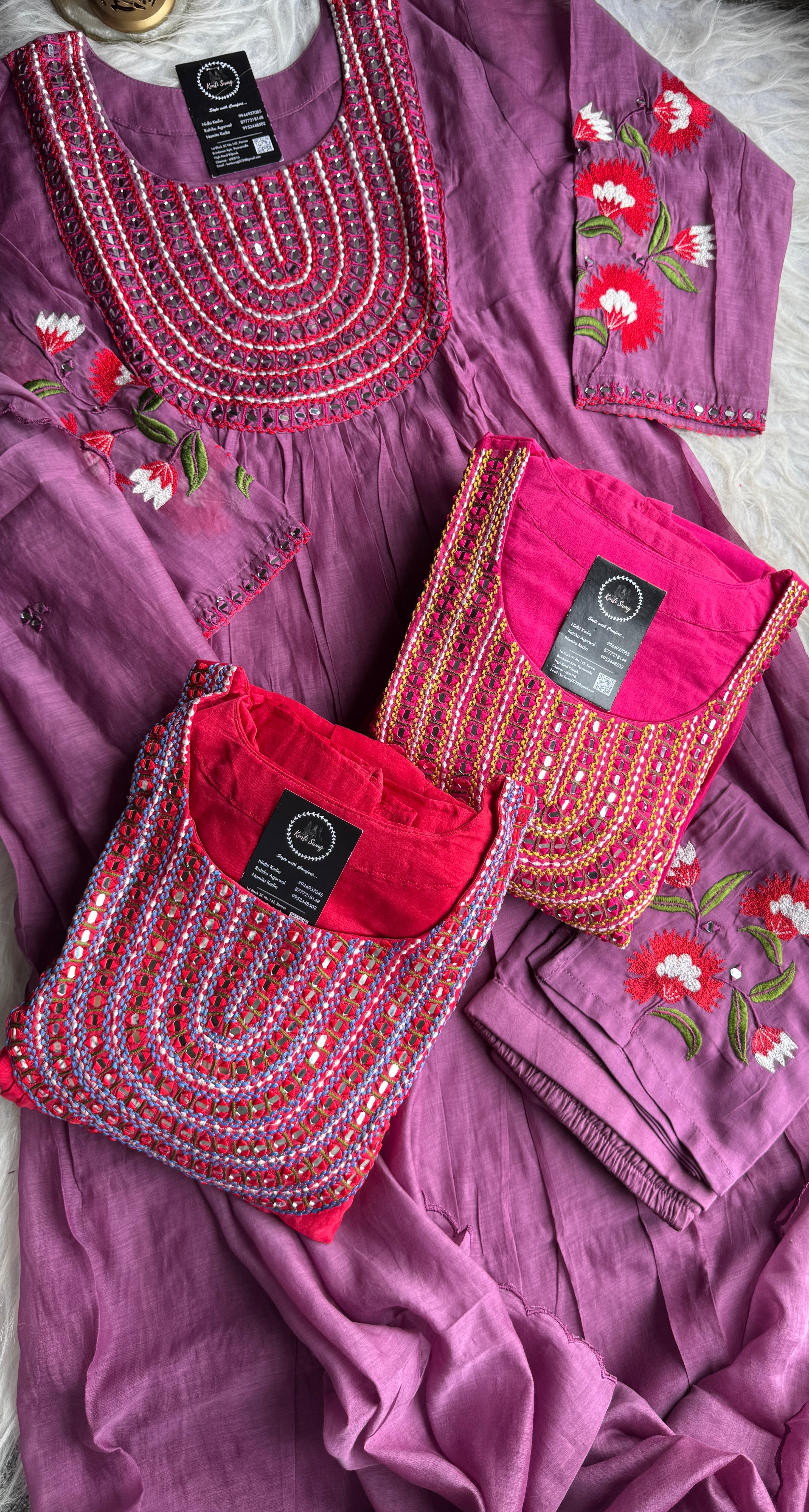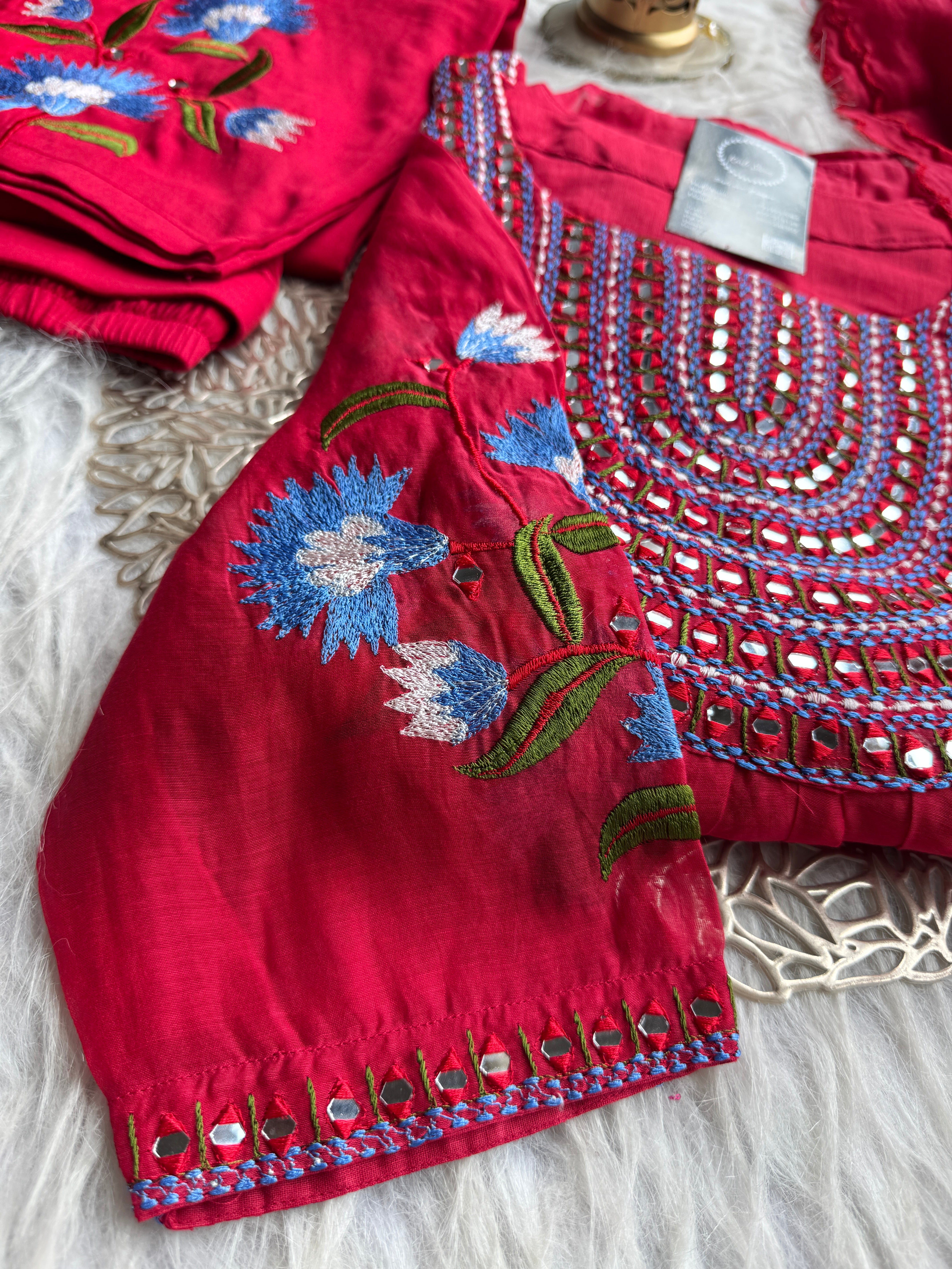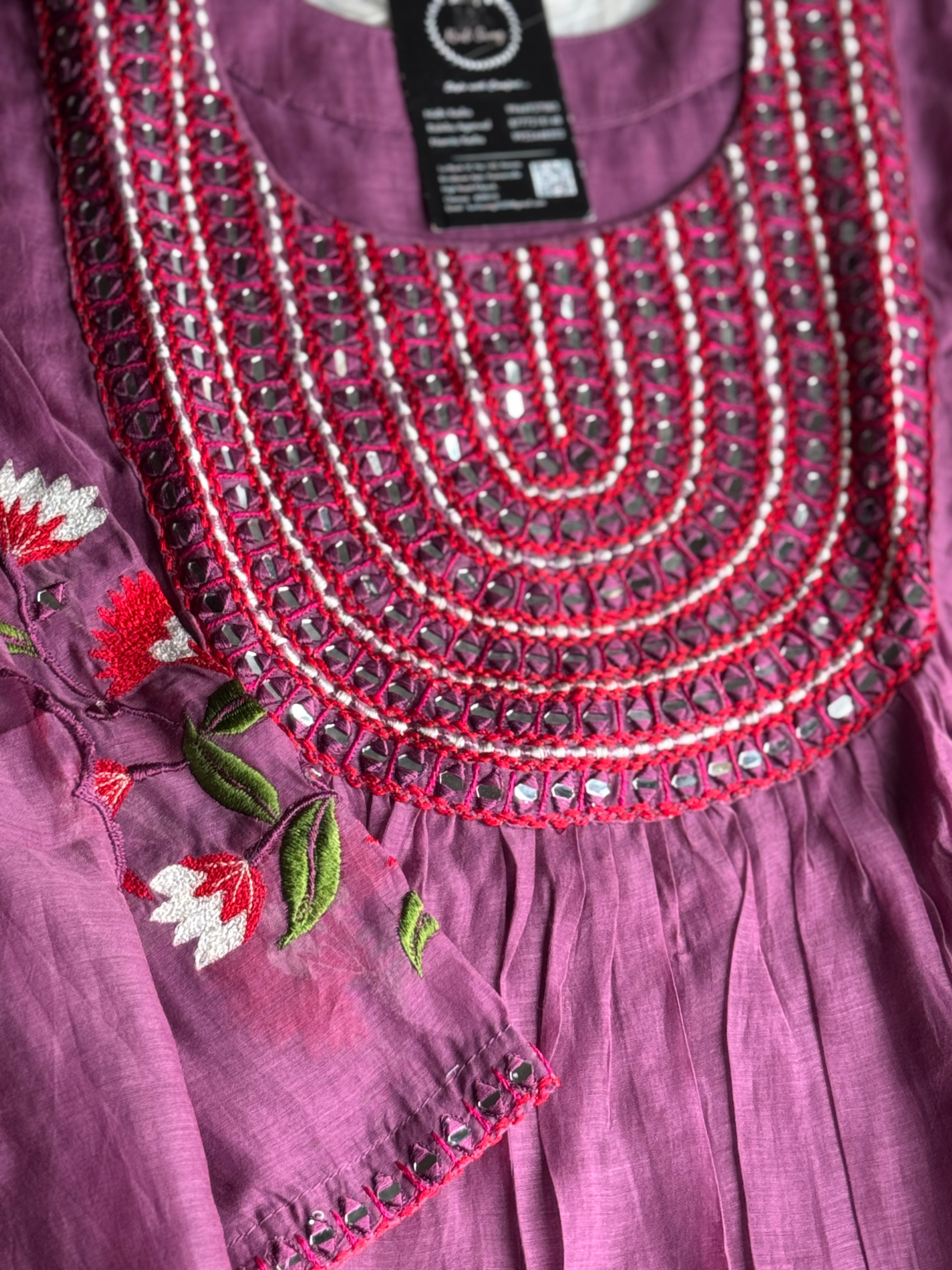✅ Premium Mul Chanderi Kurti With Mirror Handwork On The Yoke