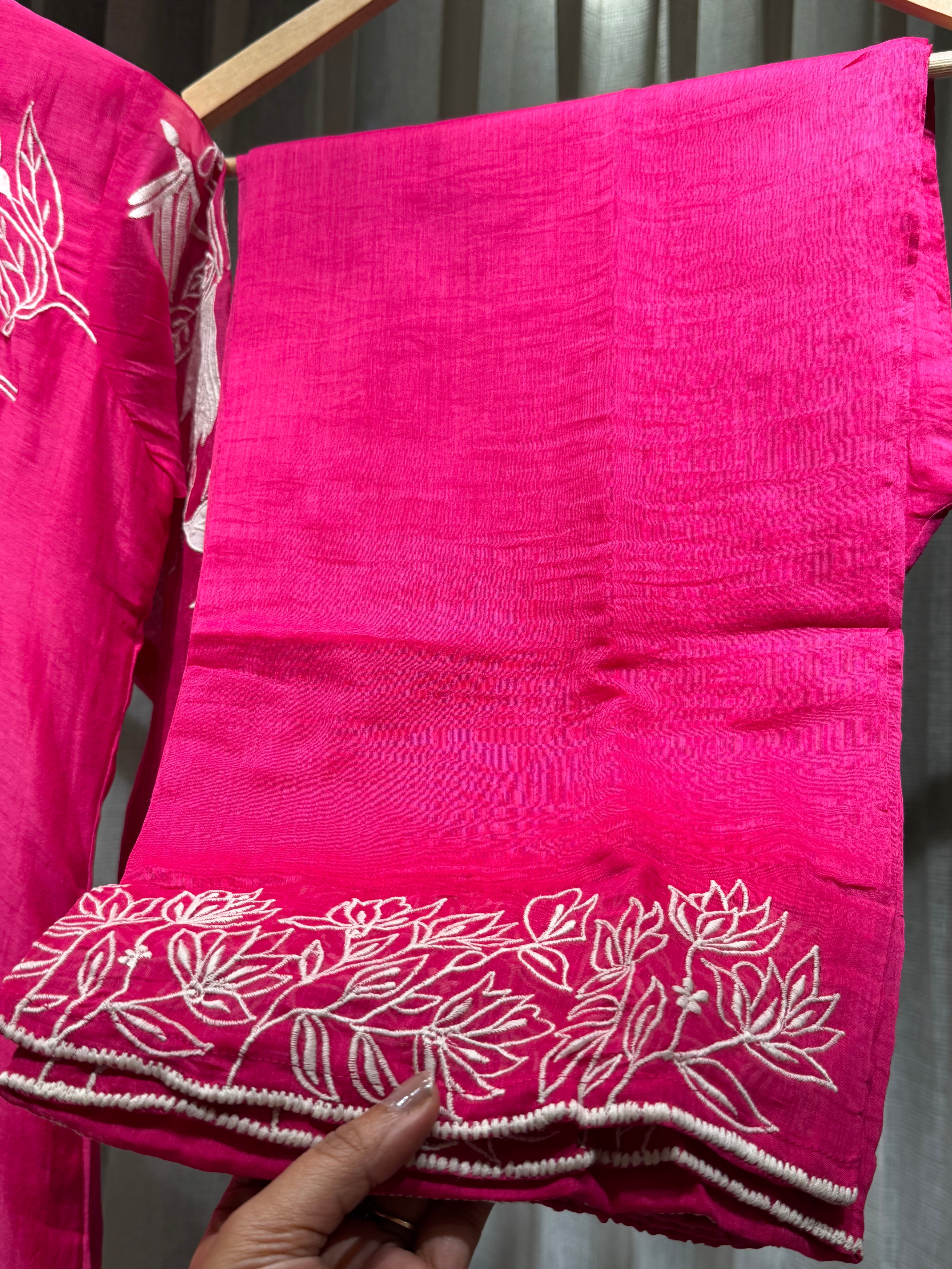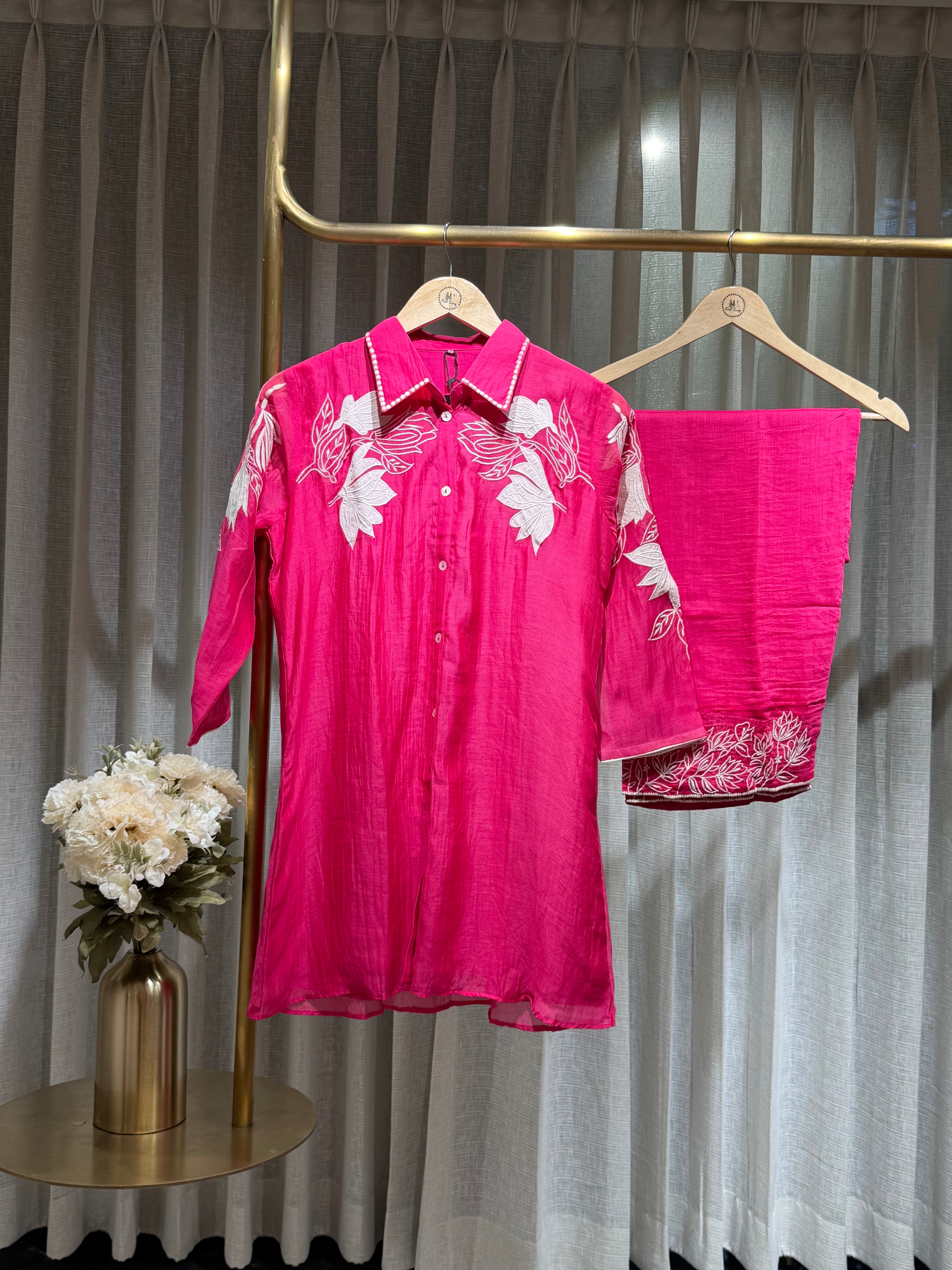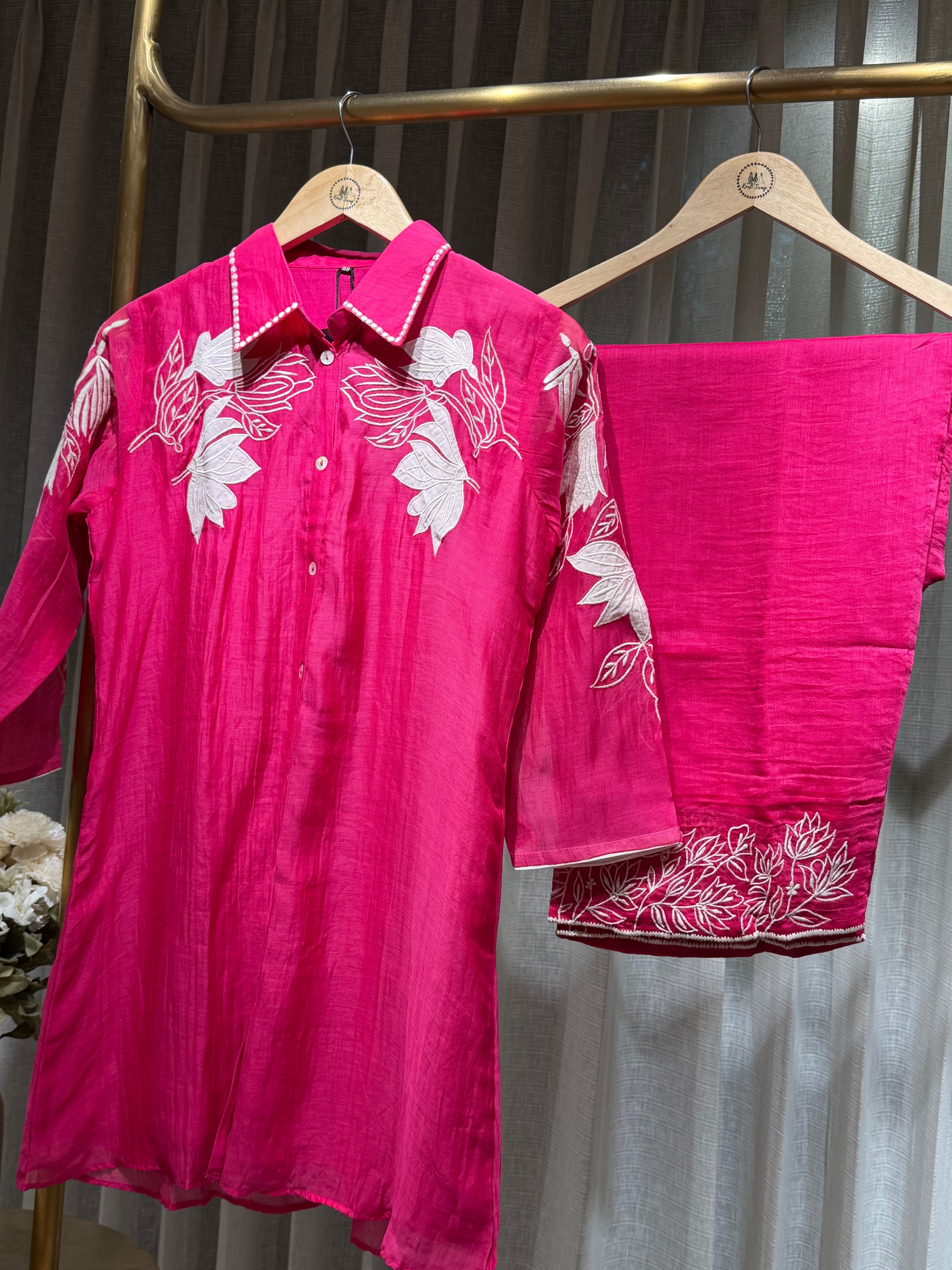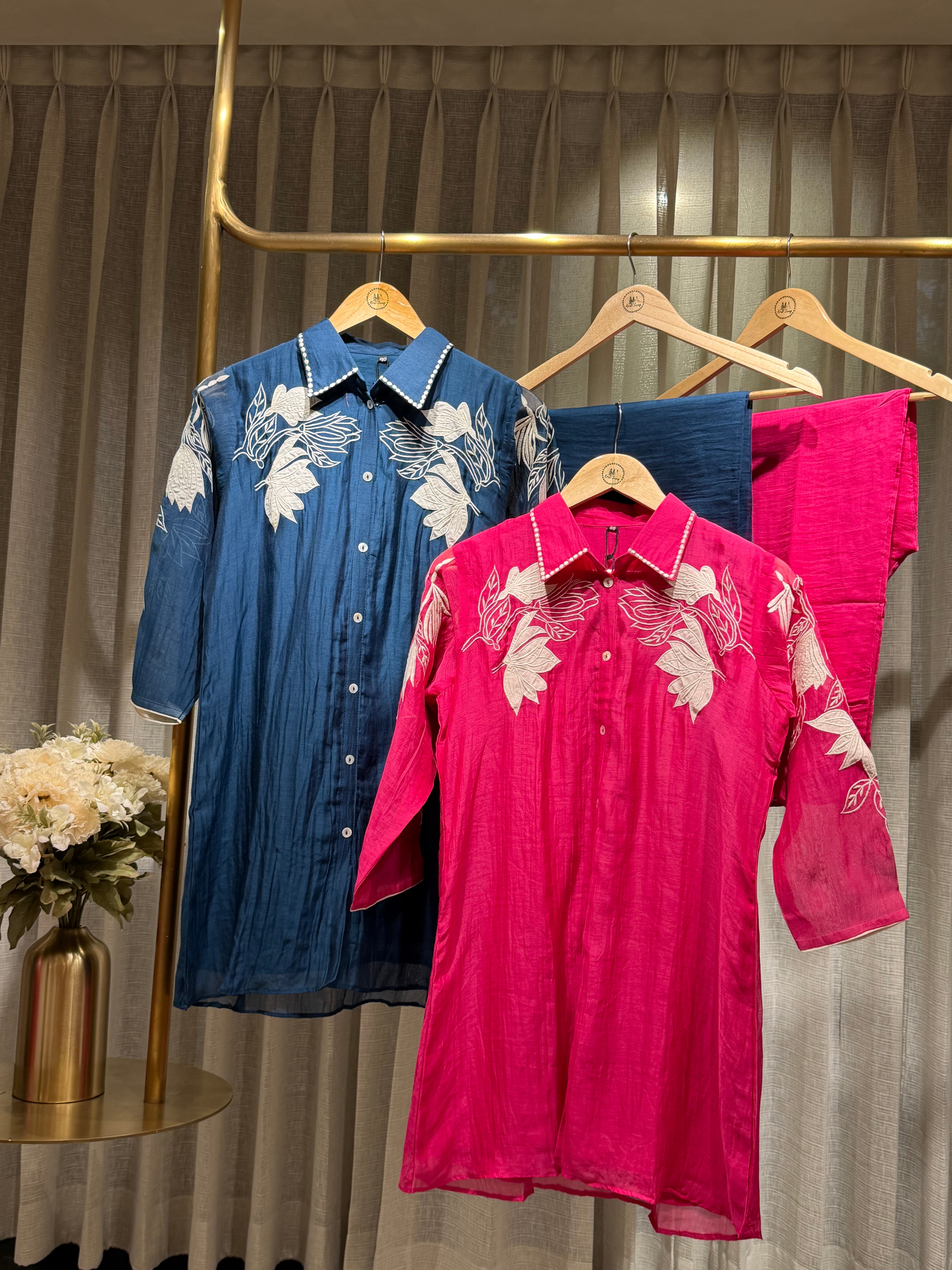 ✅ Mul Chanderi Coord Set with Applique Work detailing On The Top .