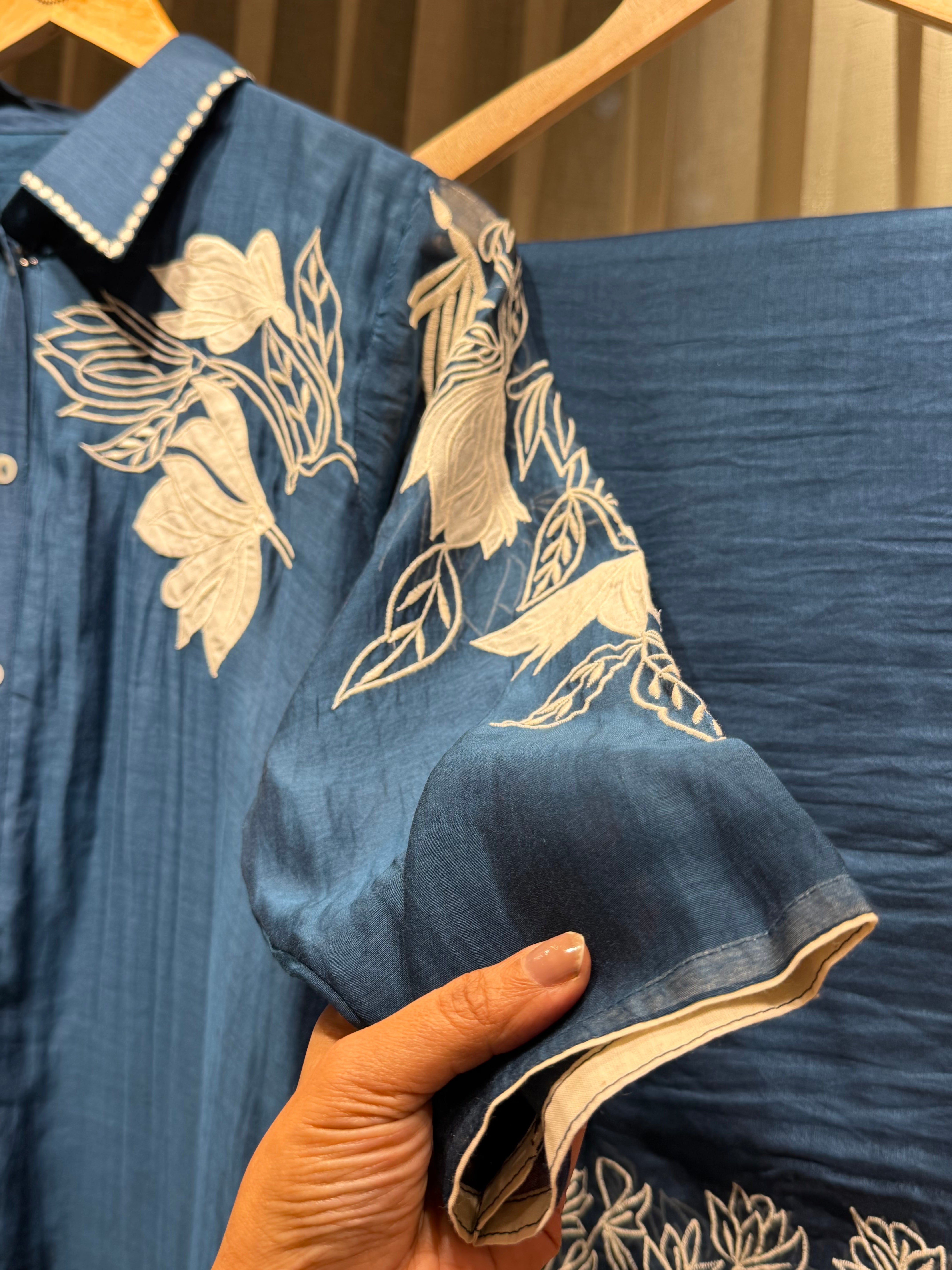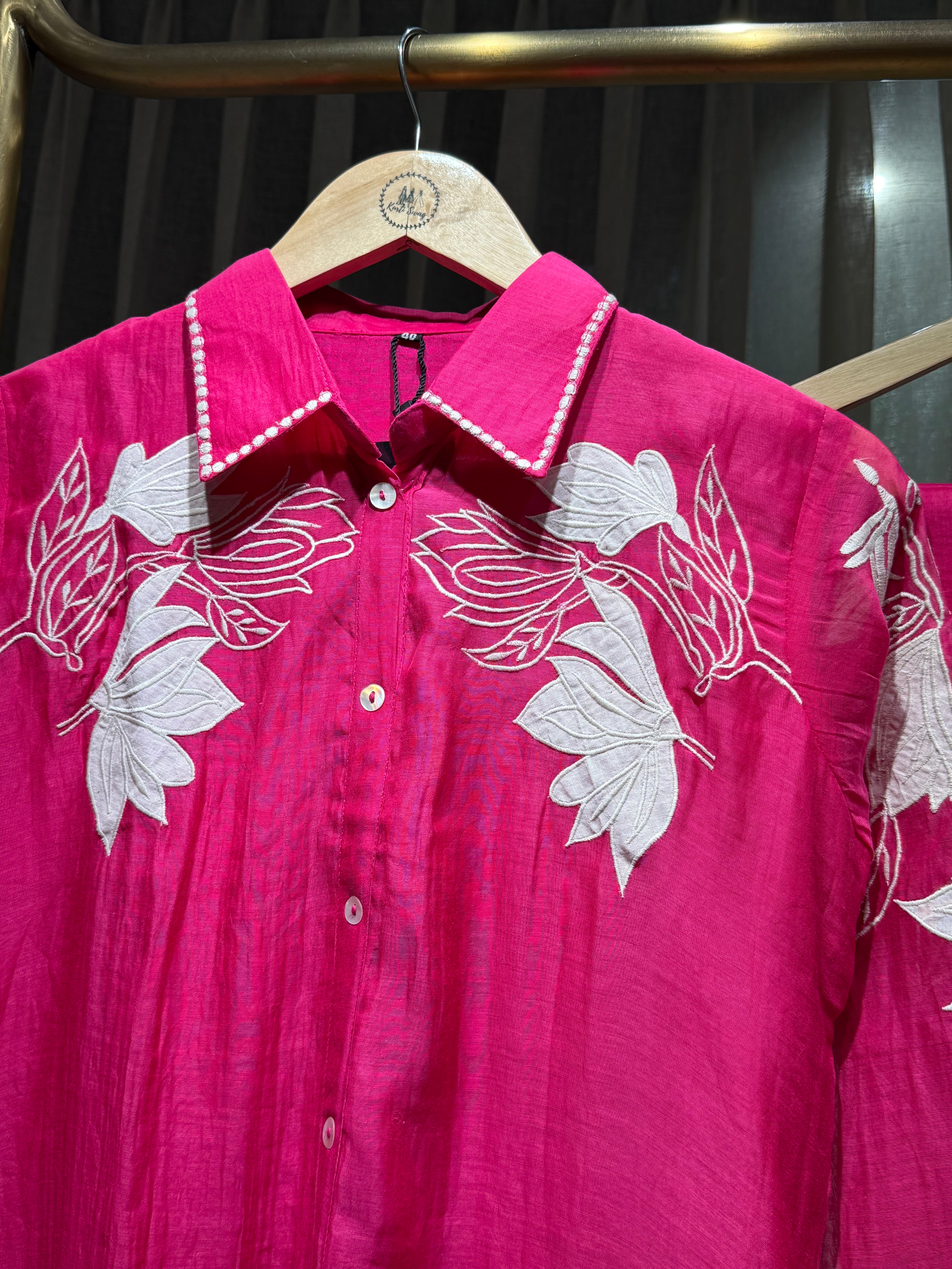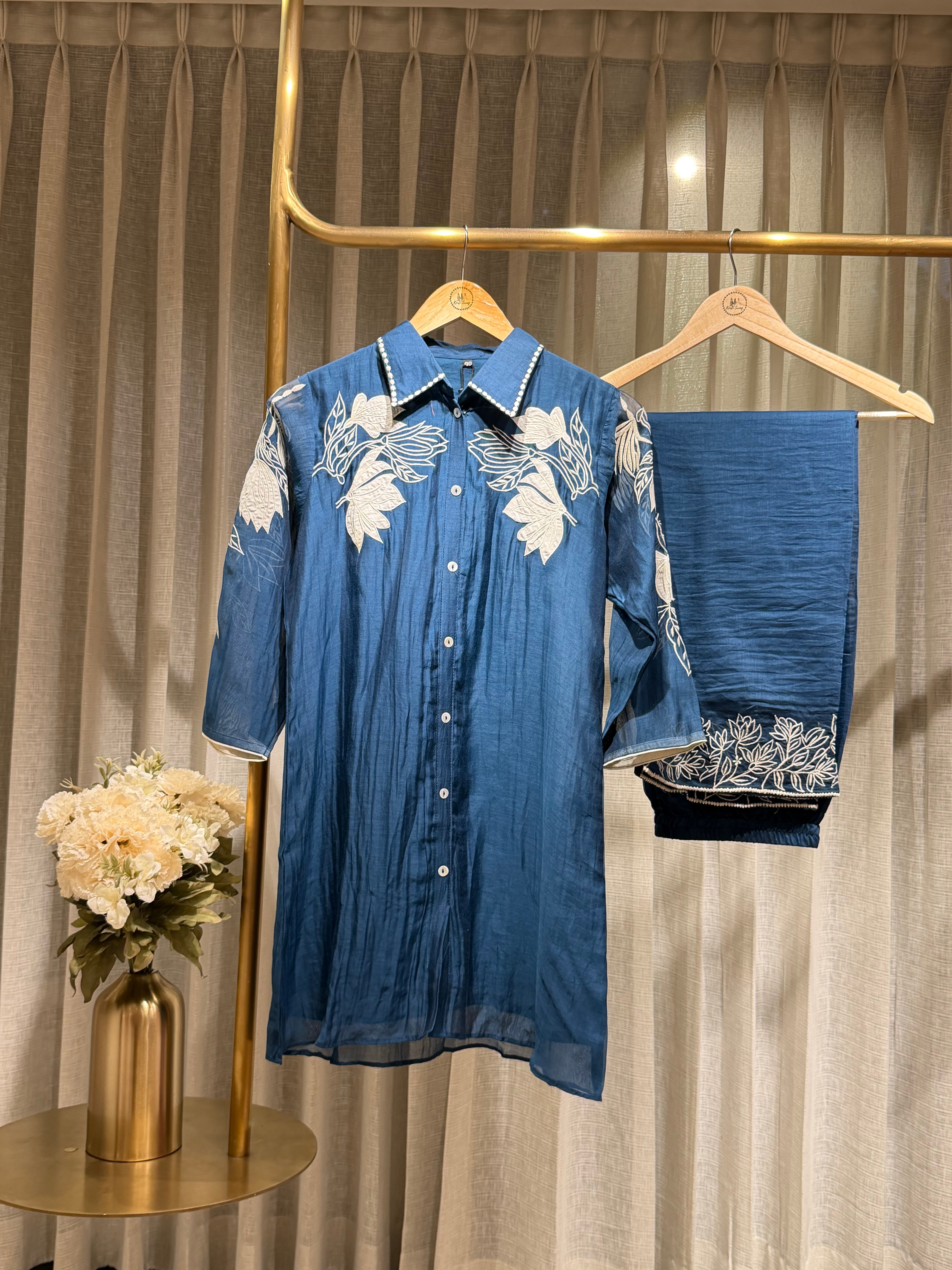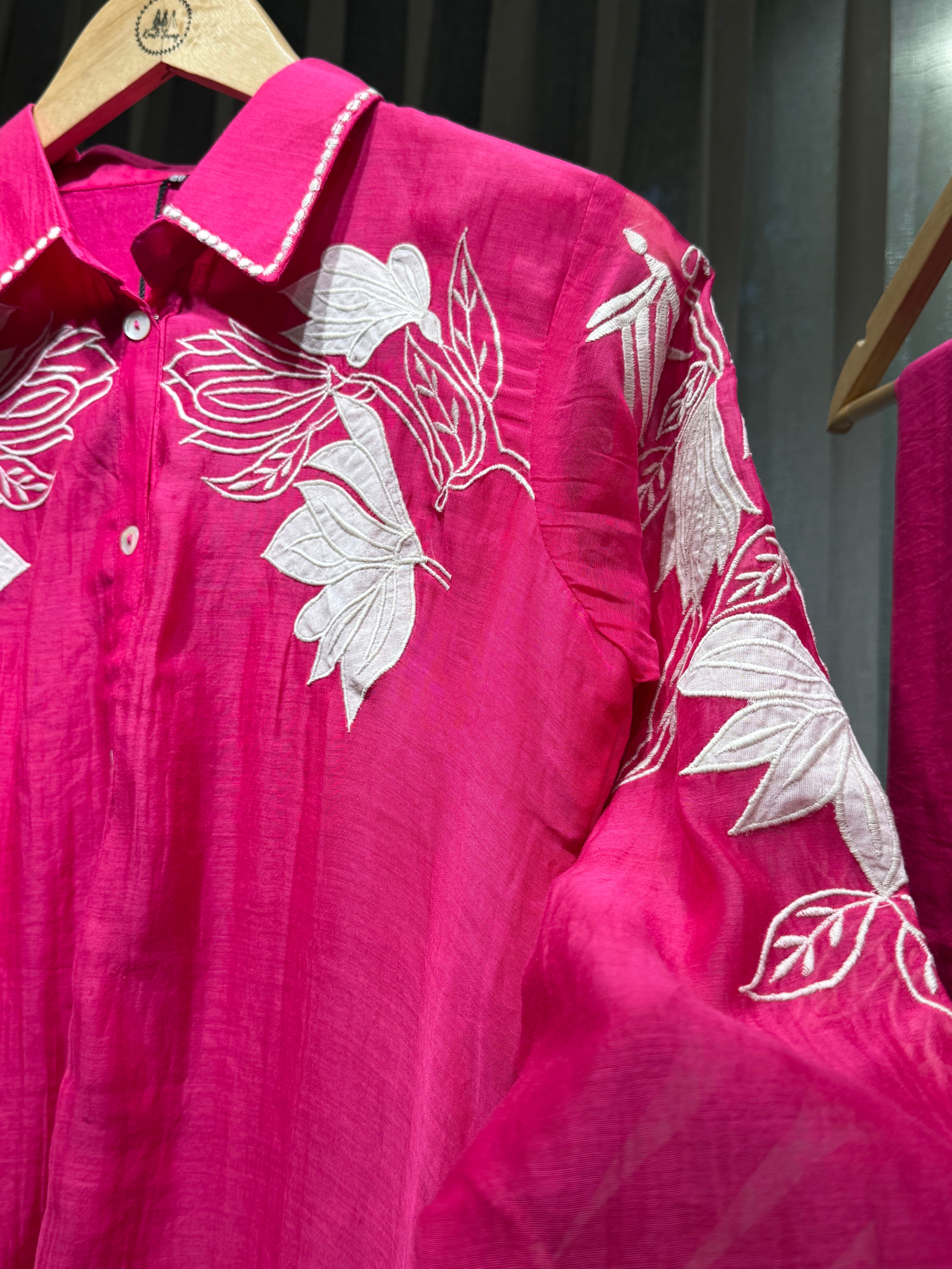 ✅ Mul Chanderi Coord Set with Applique Work detailing On The Top .