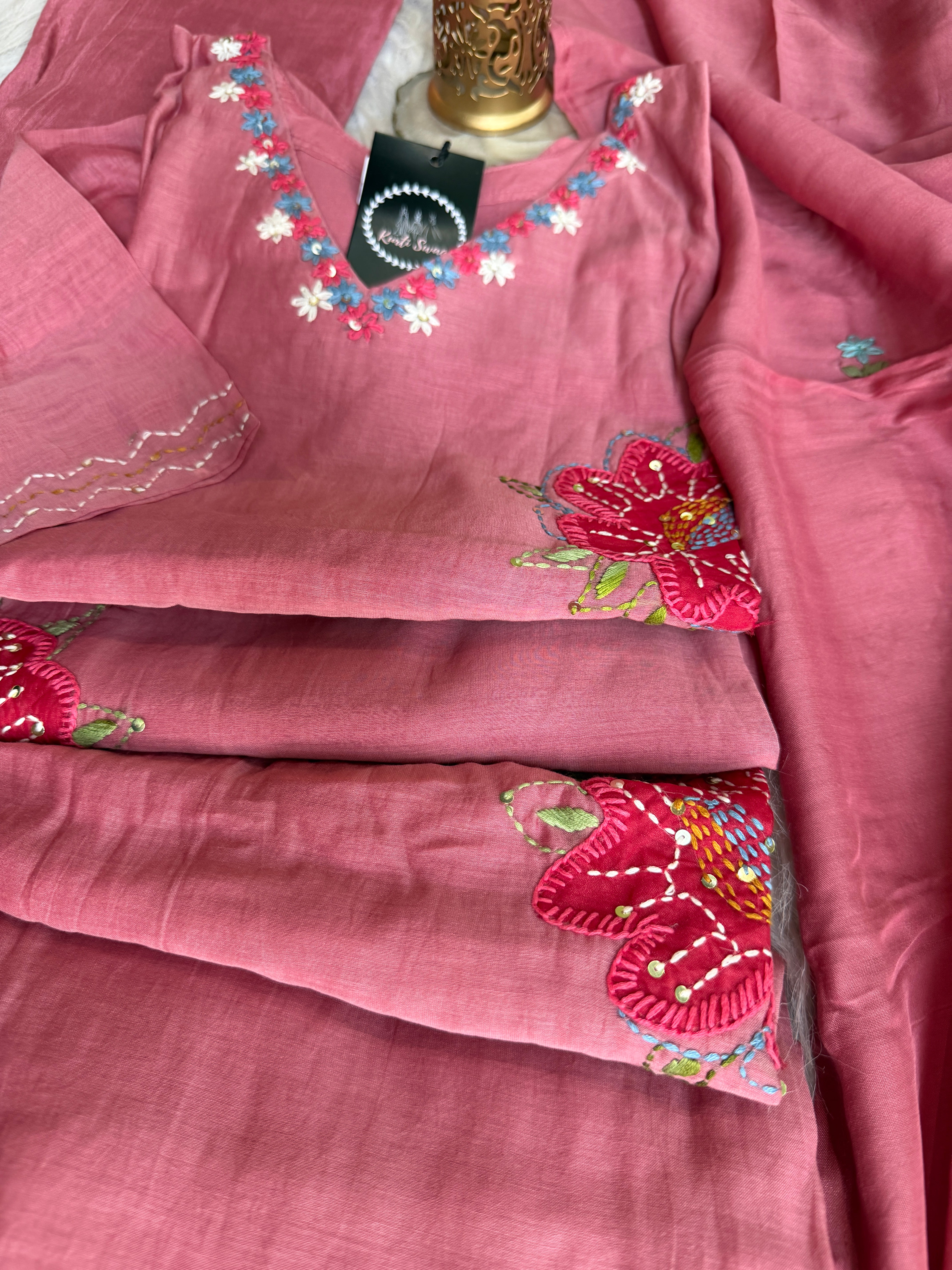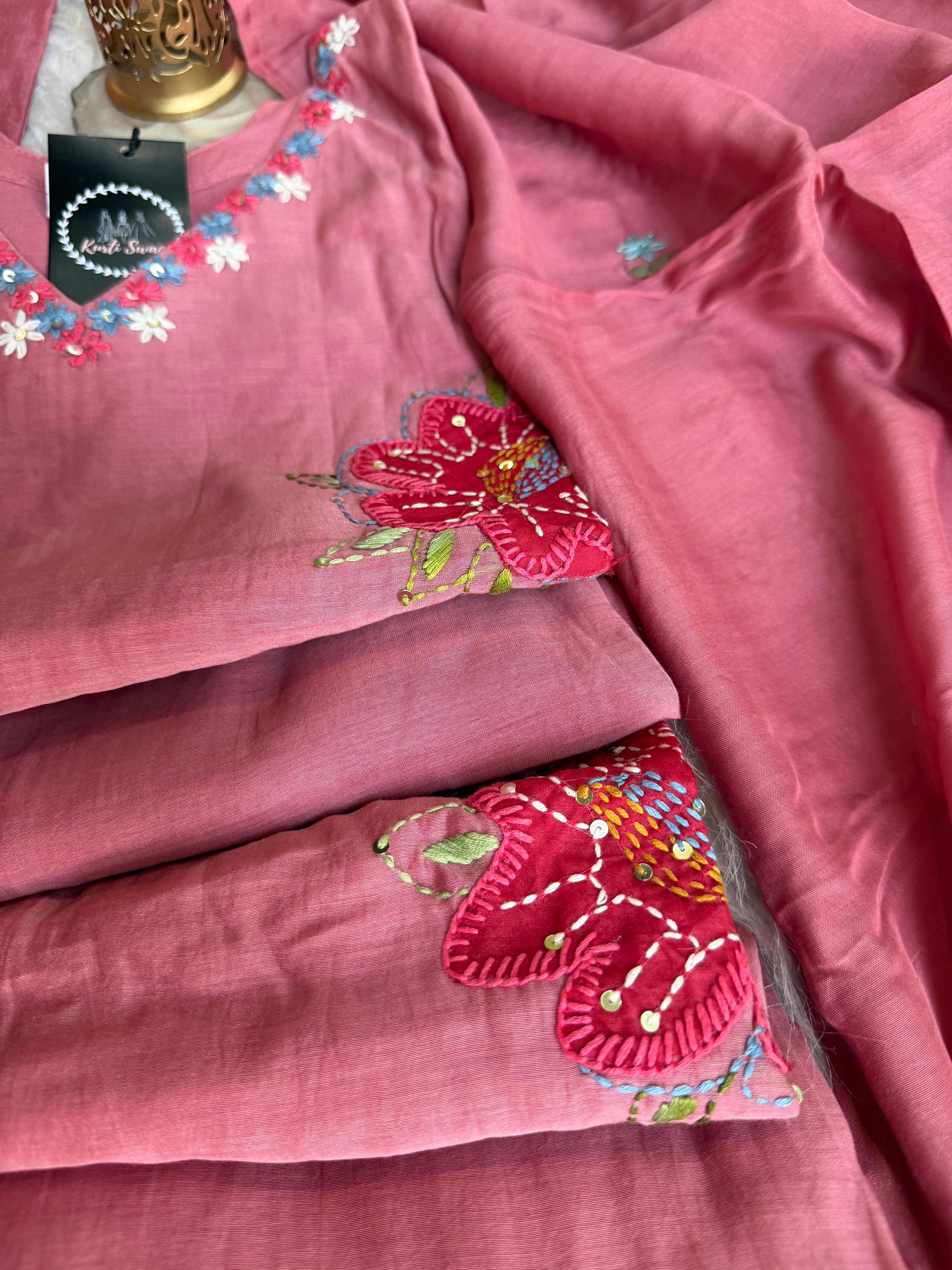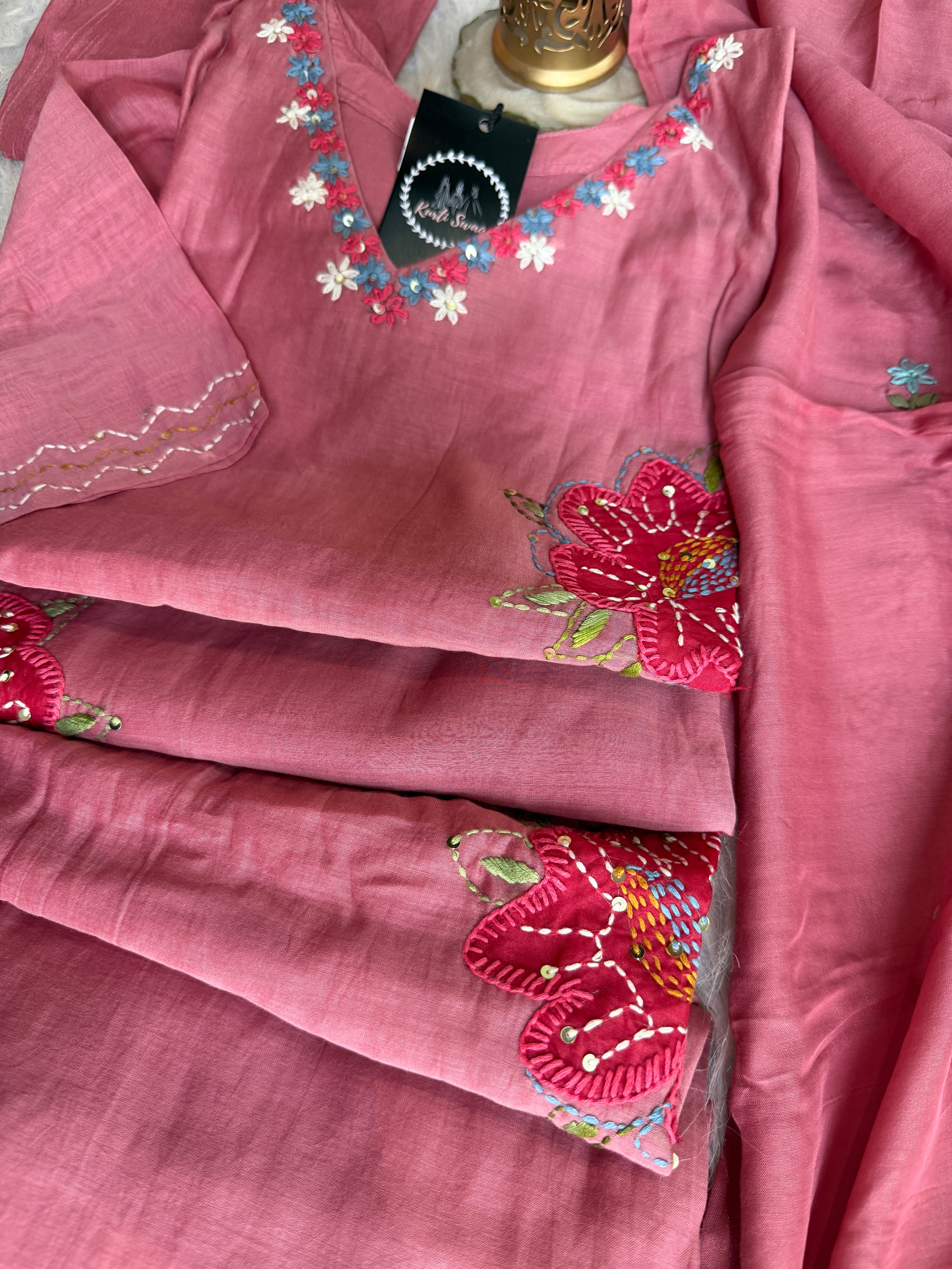 “KRISTLE” Mul Chanderi Thread & Applique Work Suit Set ✨♥️