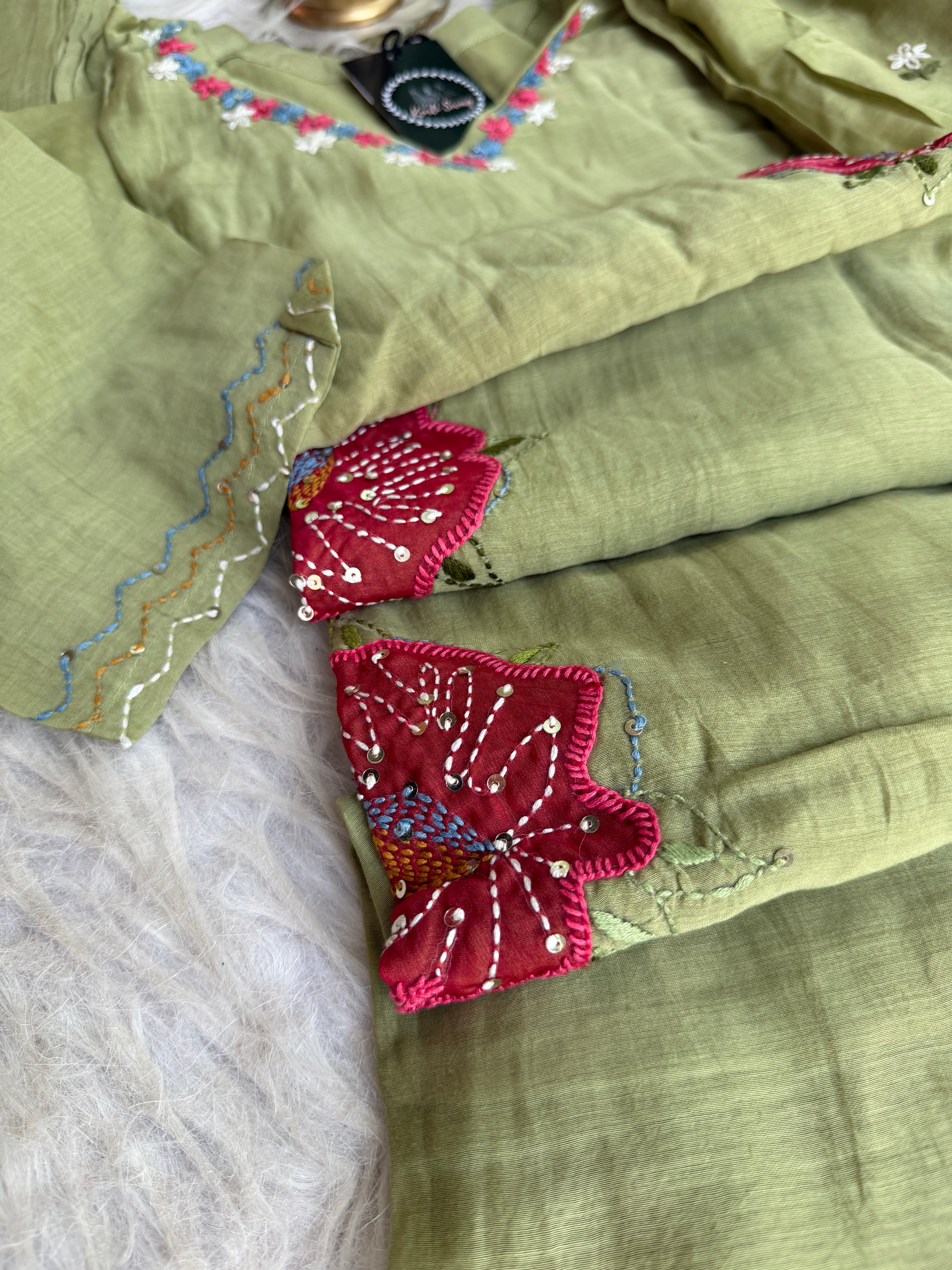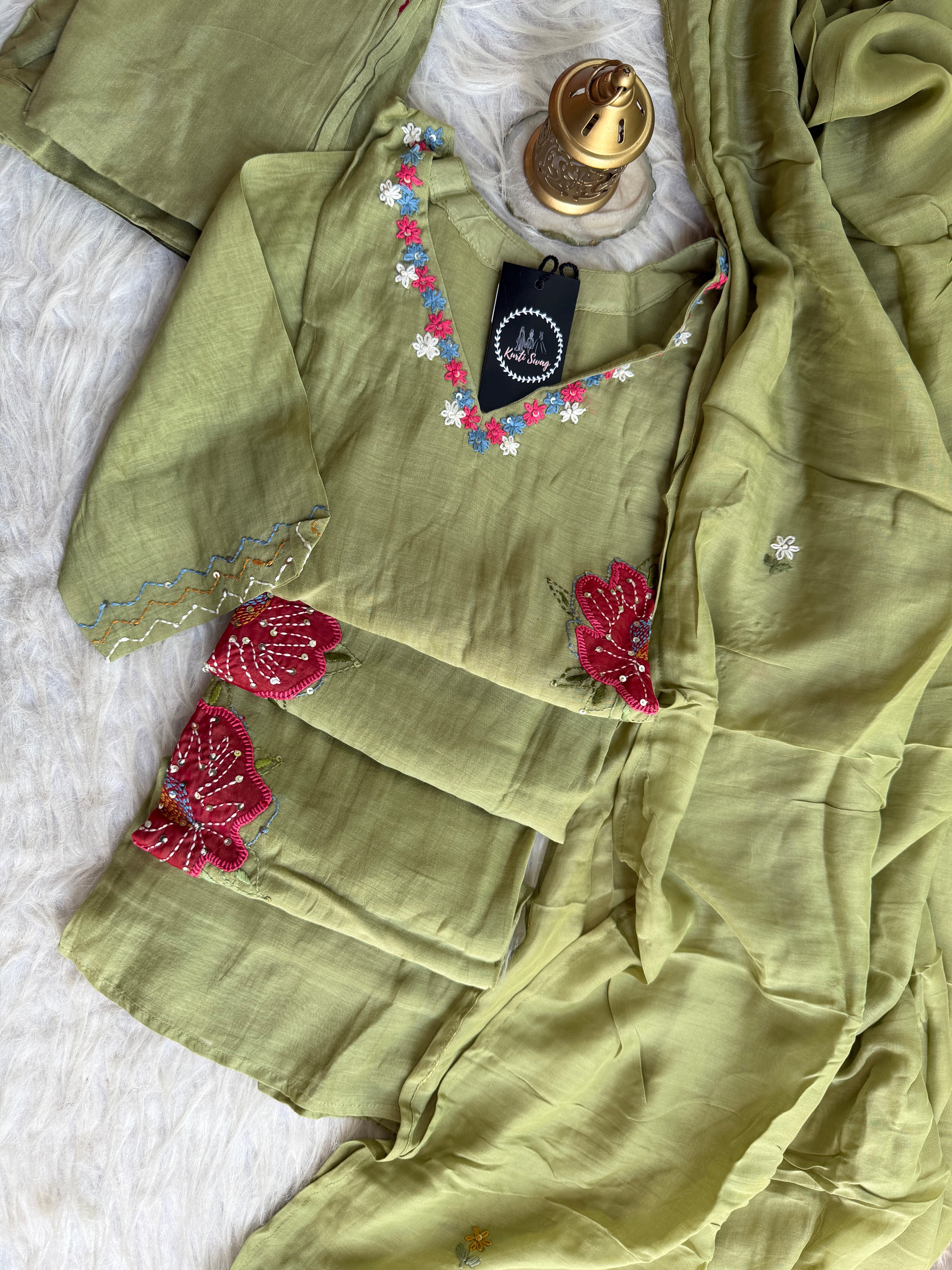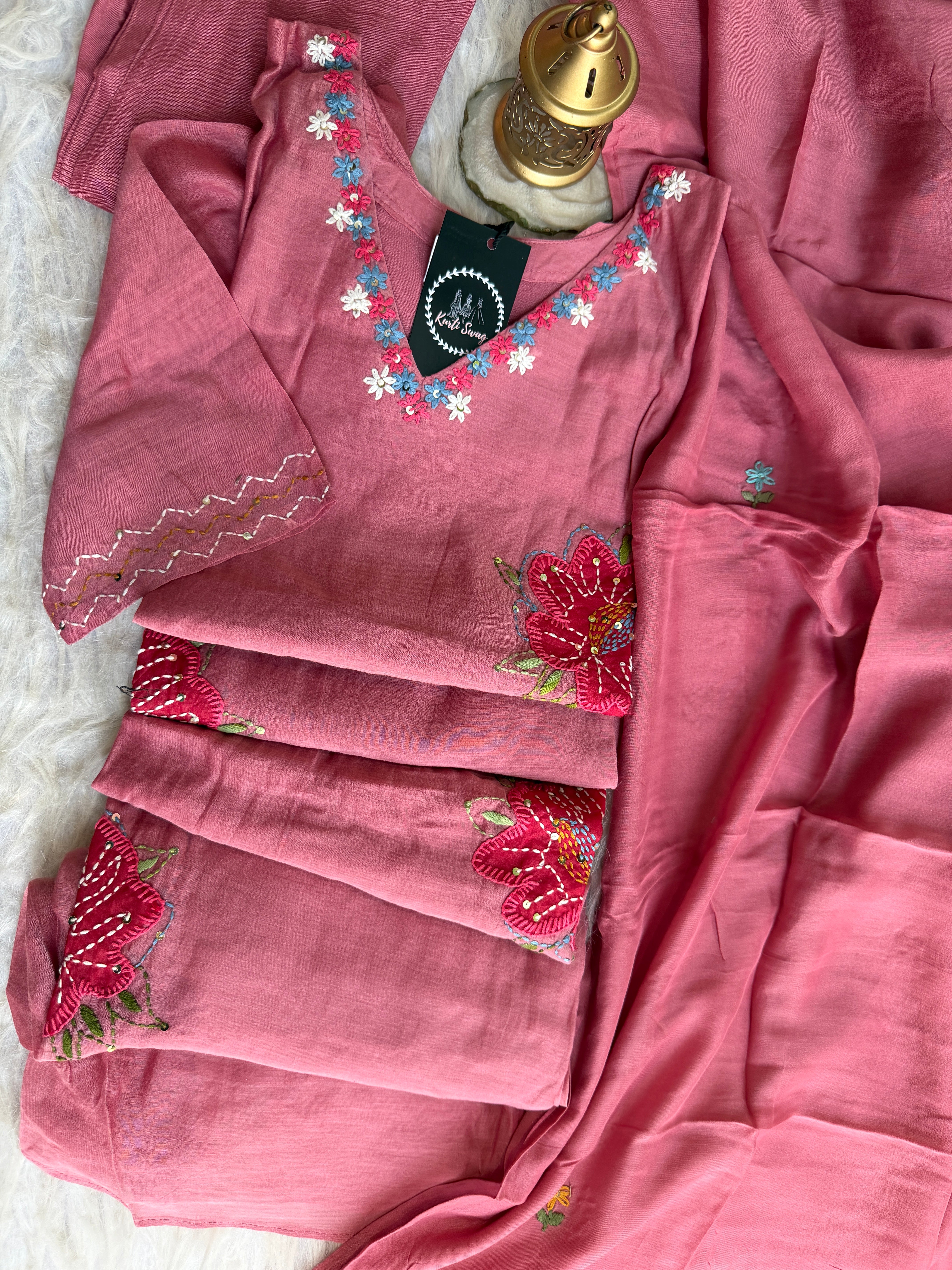 “KRISTLE” Mul Chanderi Thread & Applique Work Suit Set ✨♥️