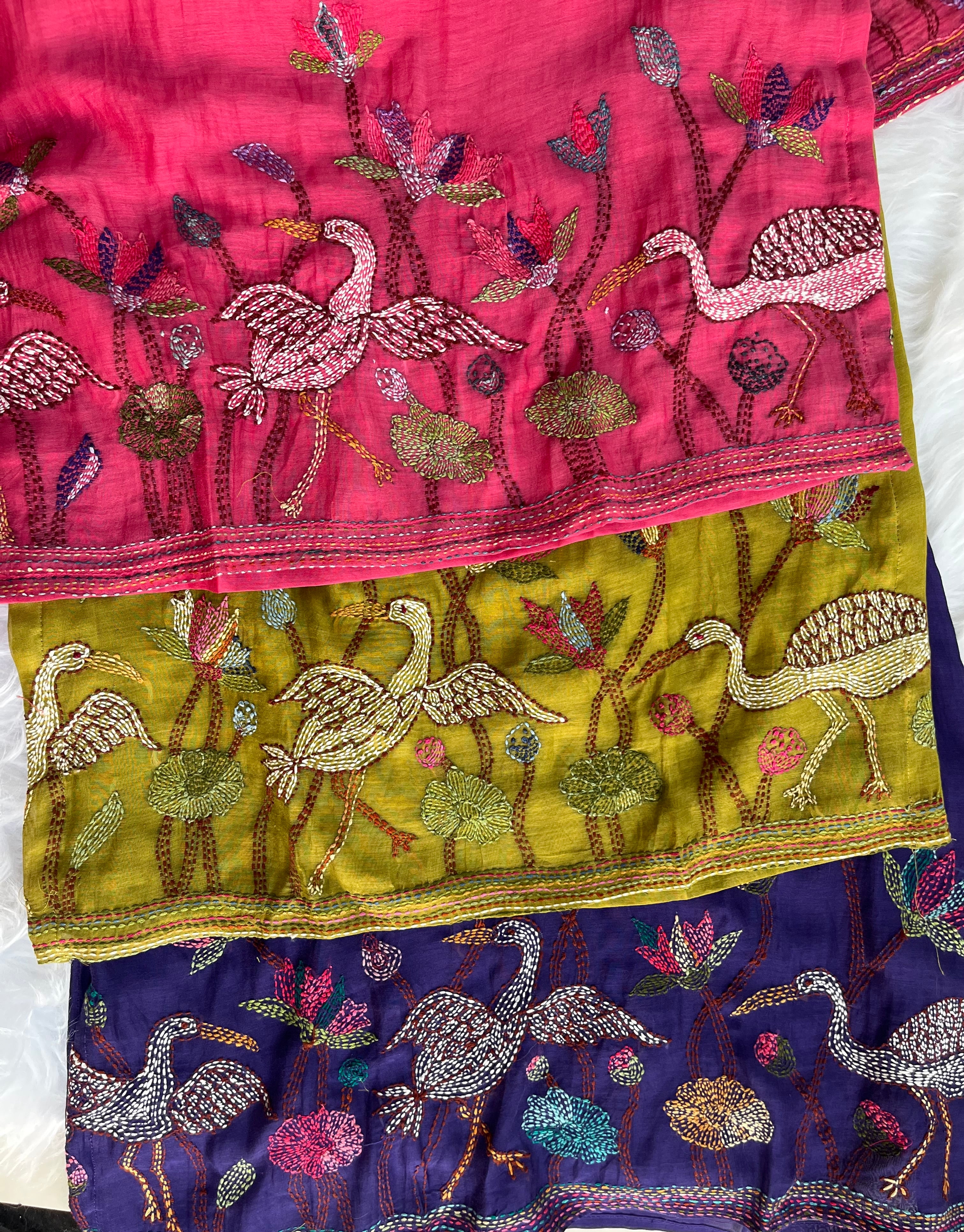✅ Soft Mul Chanderi Dupatta With Kantha Handwork