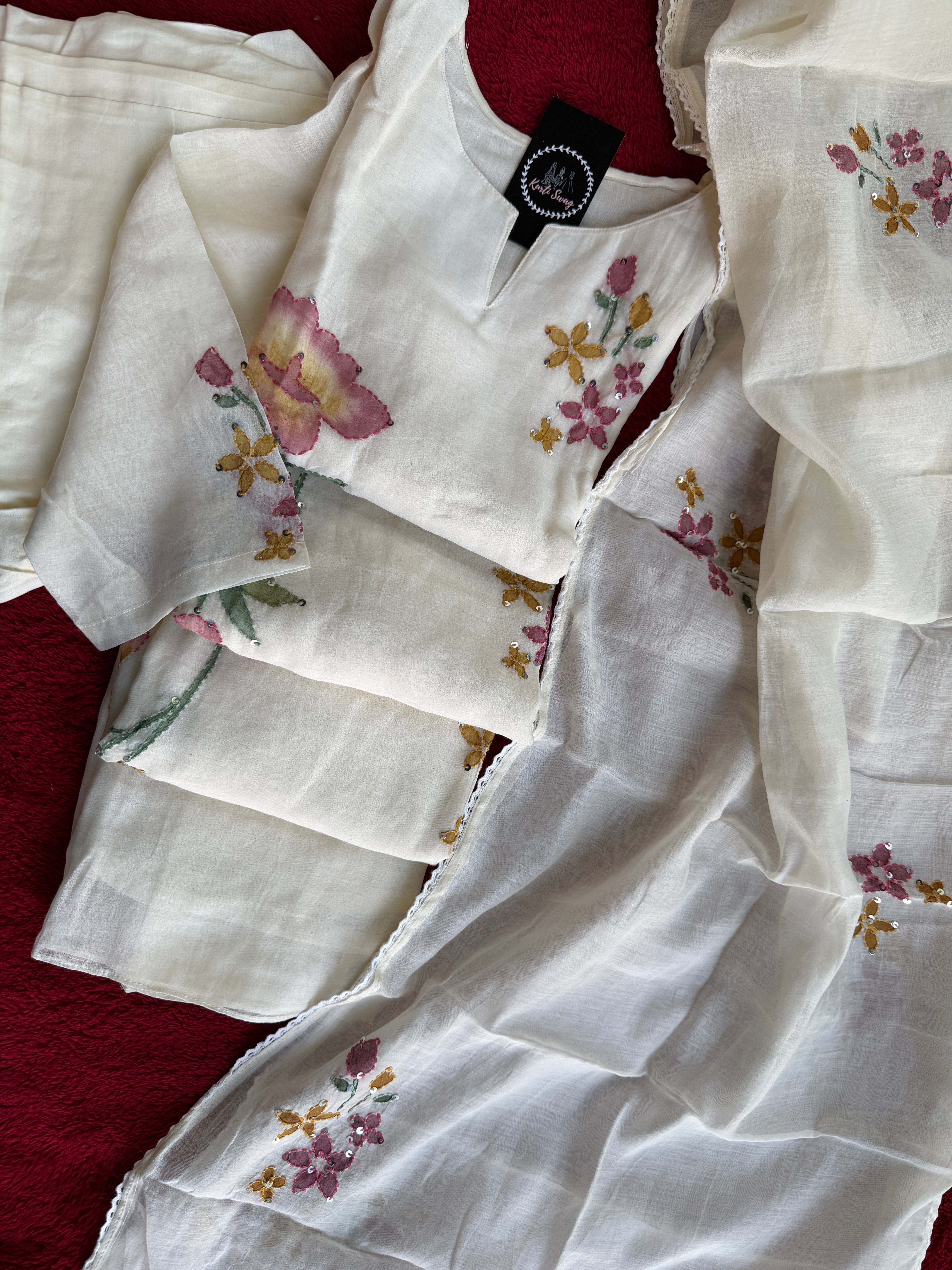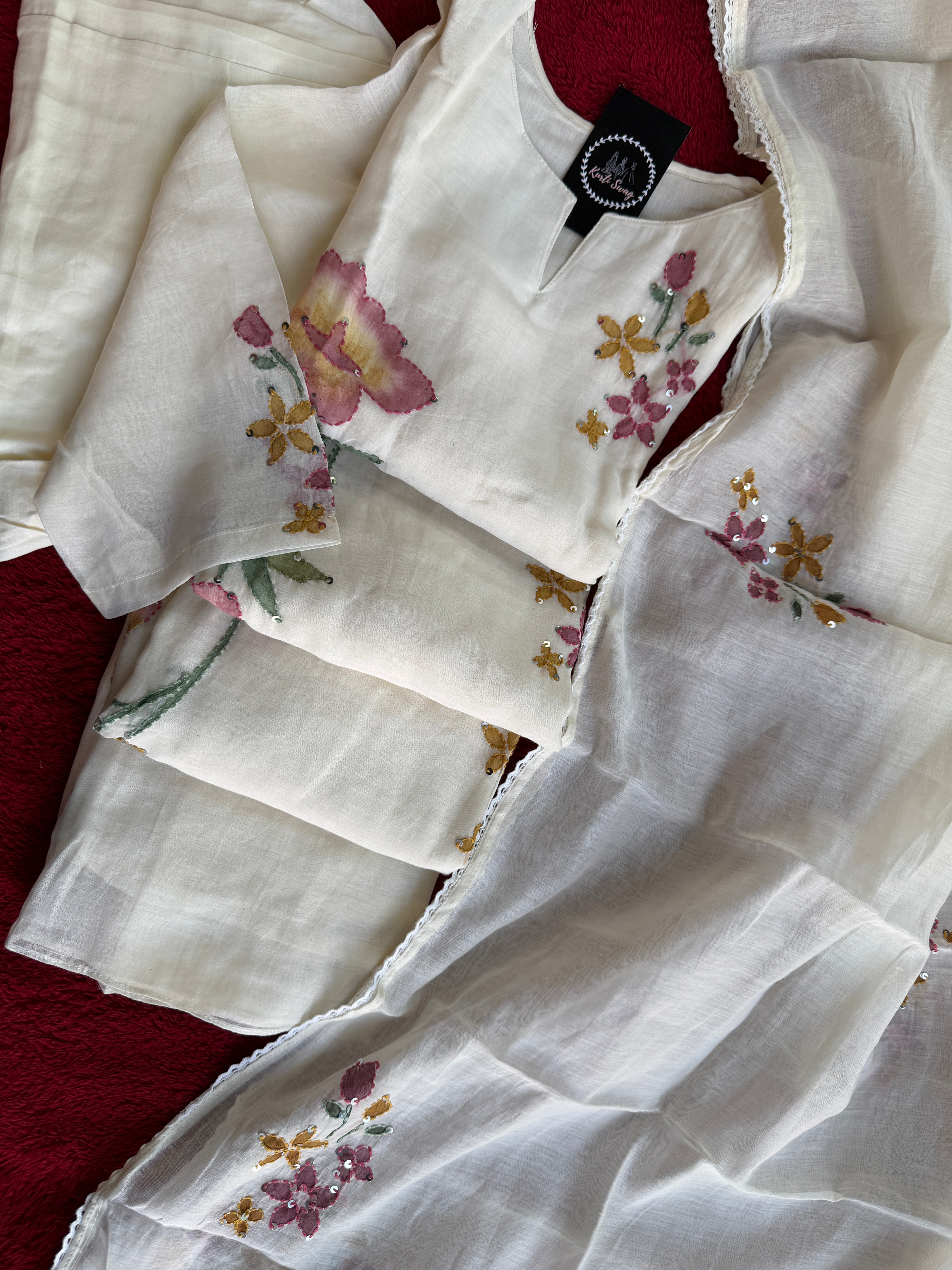 “RUHANI” Mul Chanderi Thread And Kantha Work Suit Set 💕✨