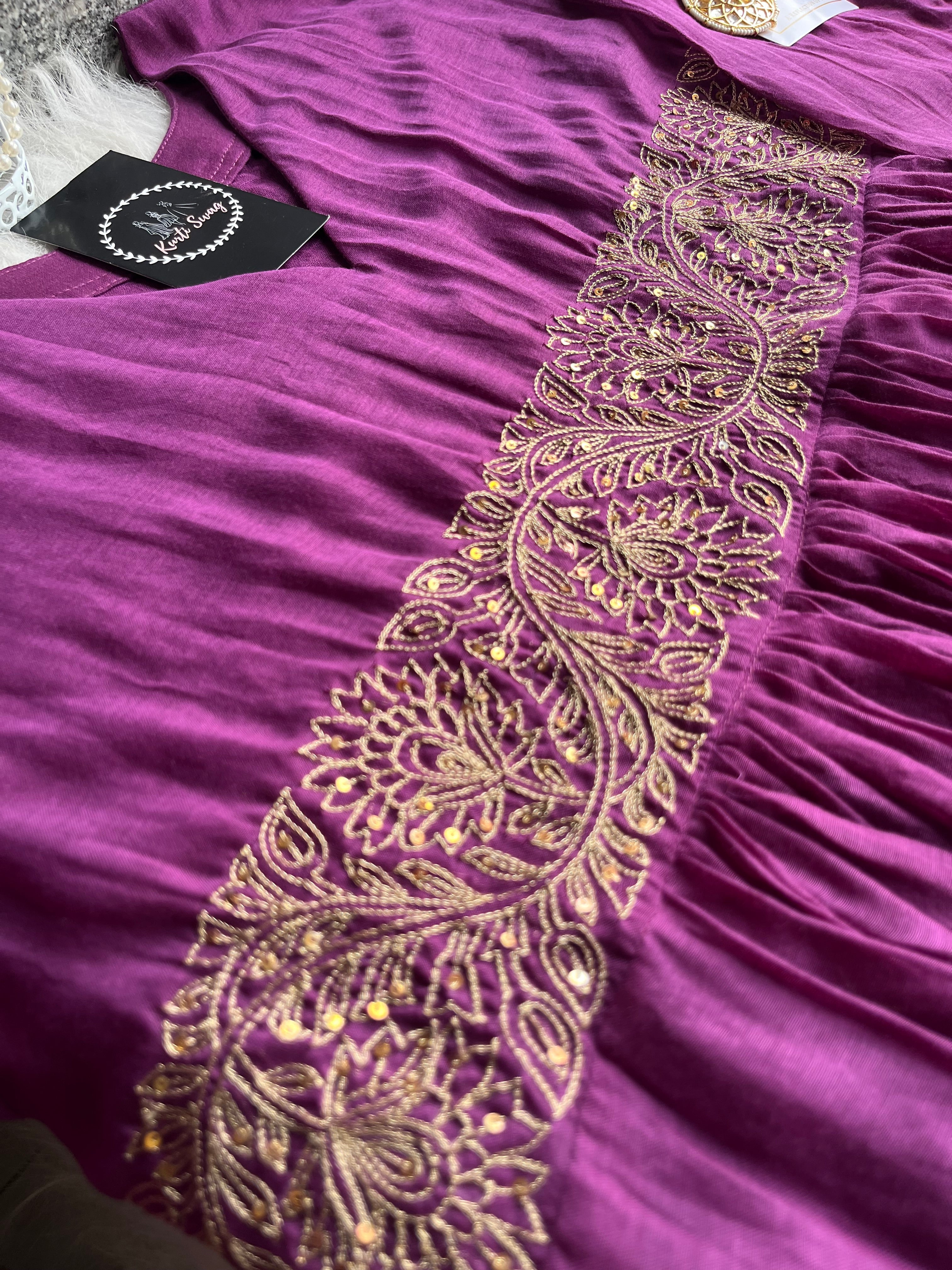 ✅ Premium Mul Chanderi Kurti With Zari Handwork On Yoke Of The Kurti .