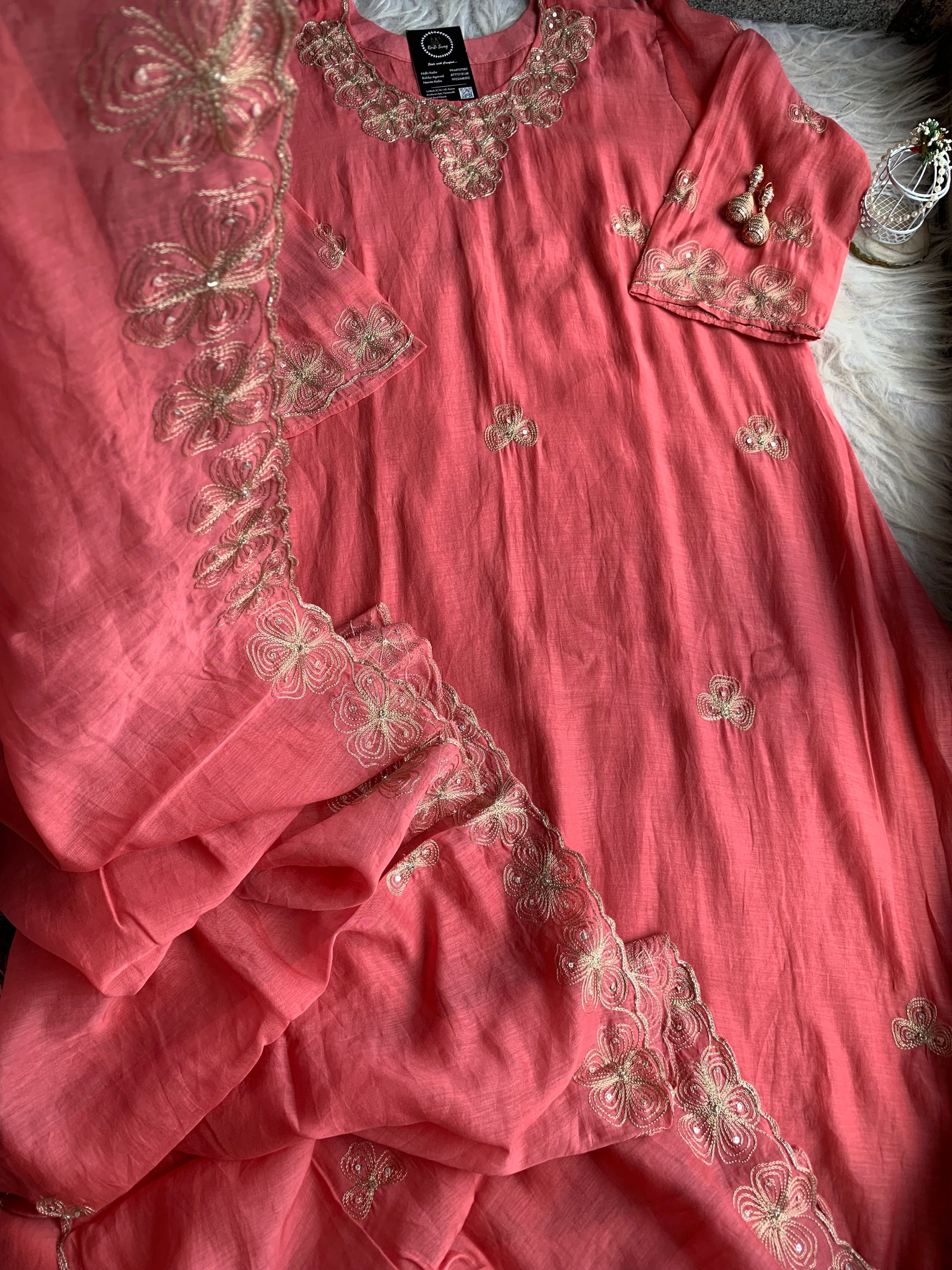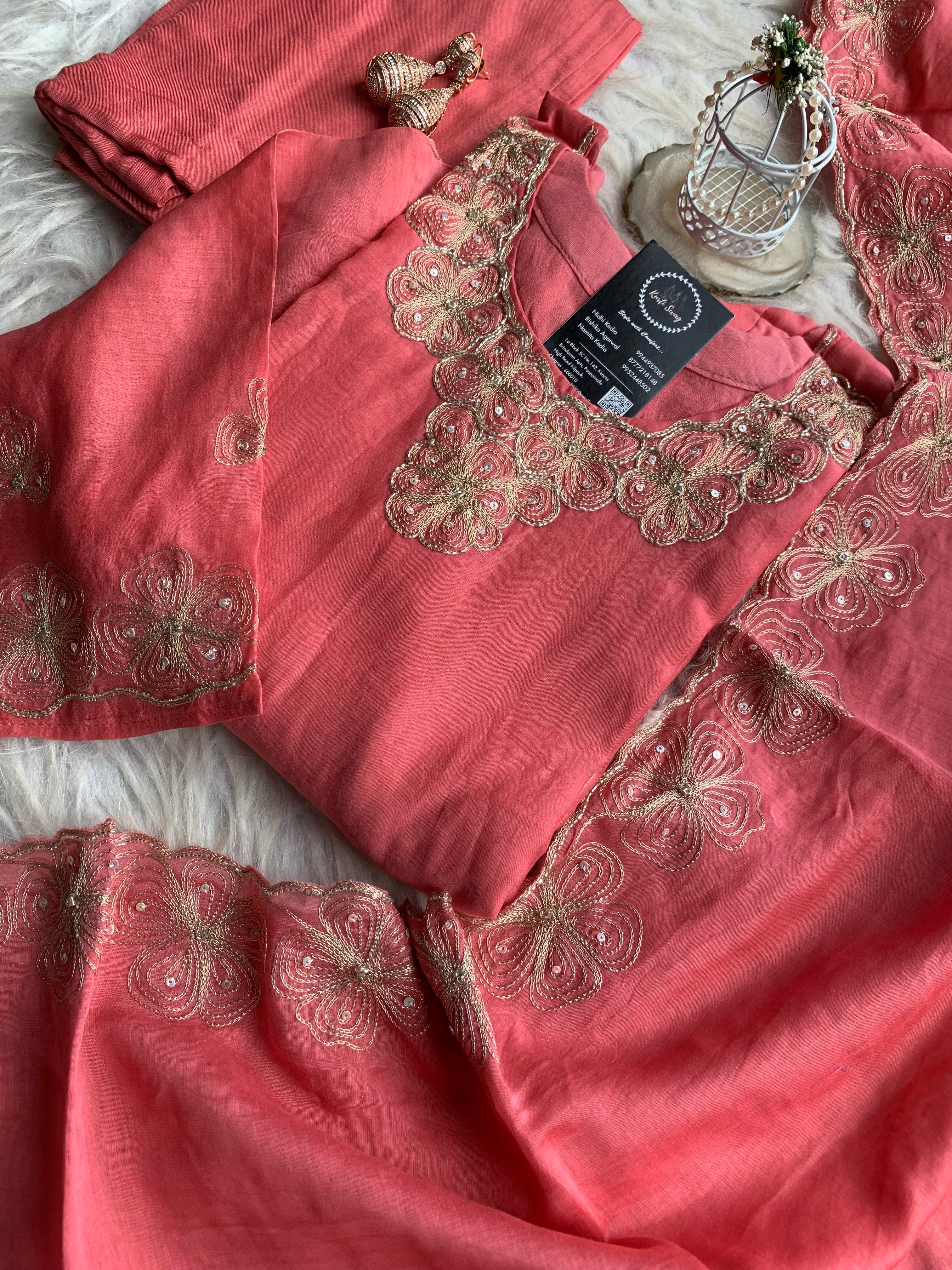 ✅ Beautiful Mul Chanderi Dupatta With Hanwork On One Side