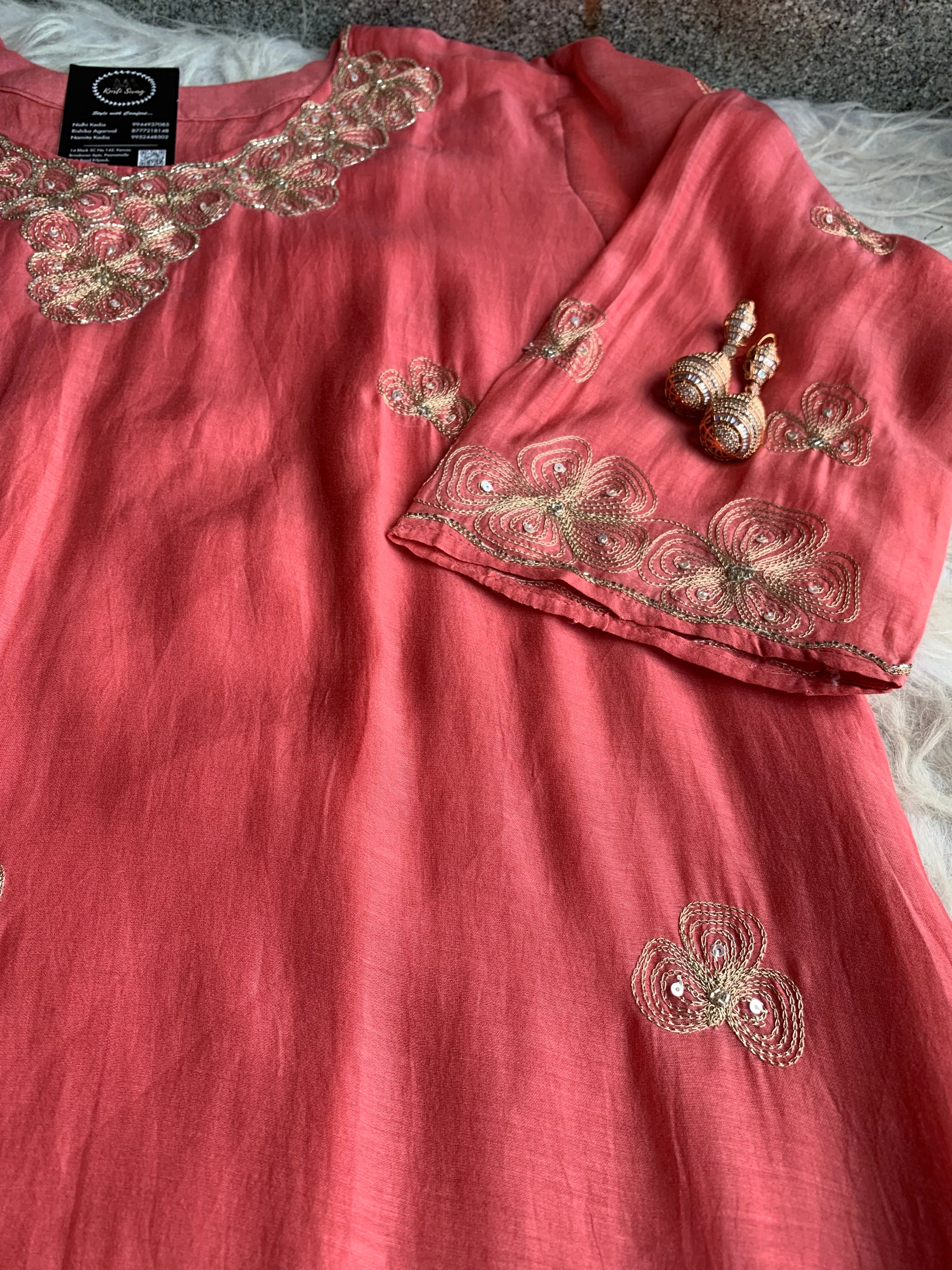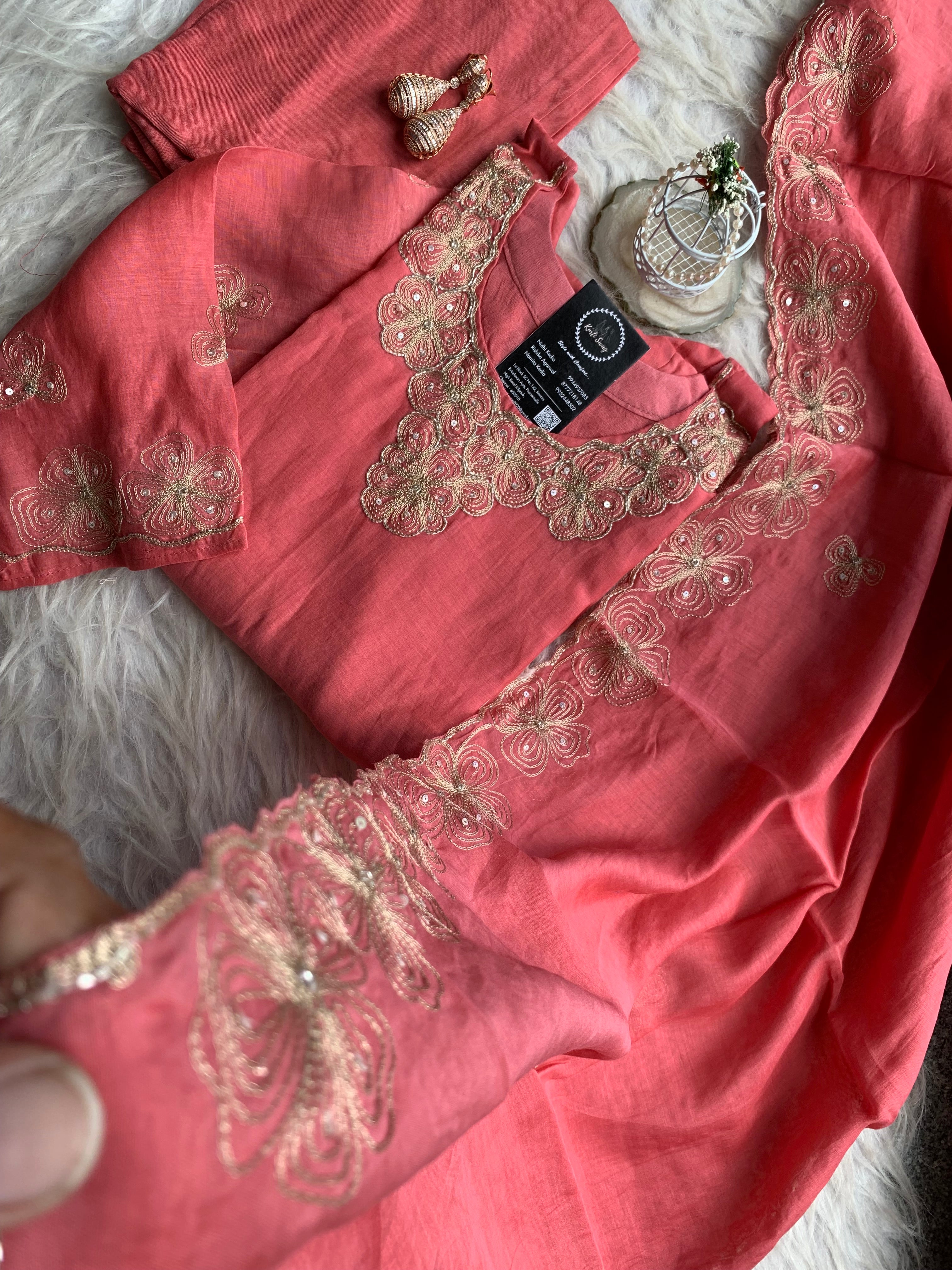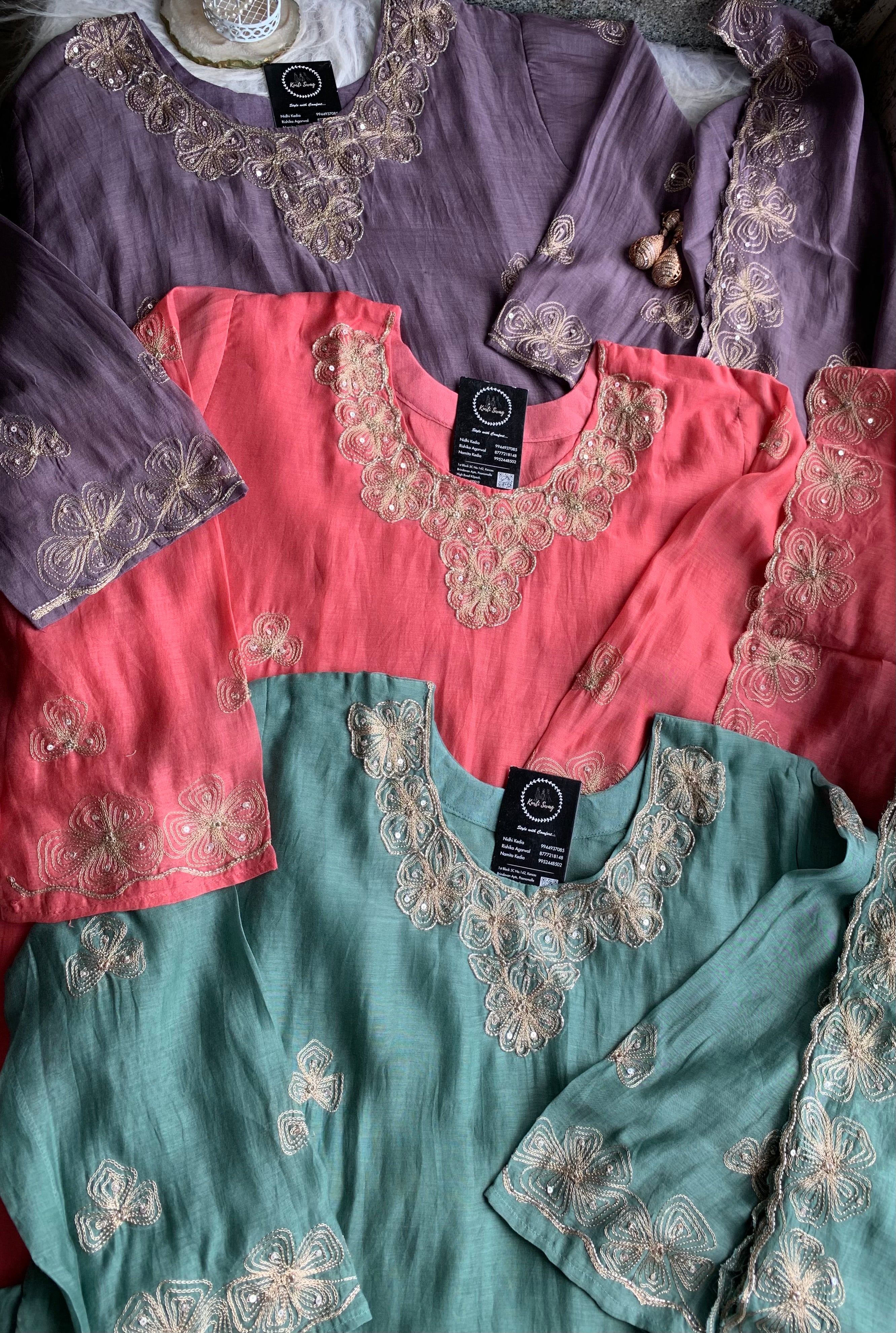 ✅ Premium Mul Chanderi Kurti With Golden Zari Work On The Yoke Of The Kurti