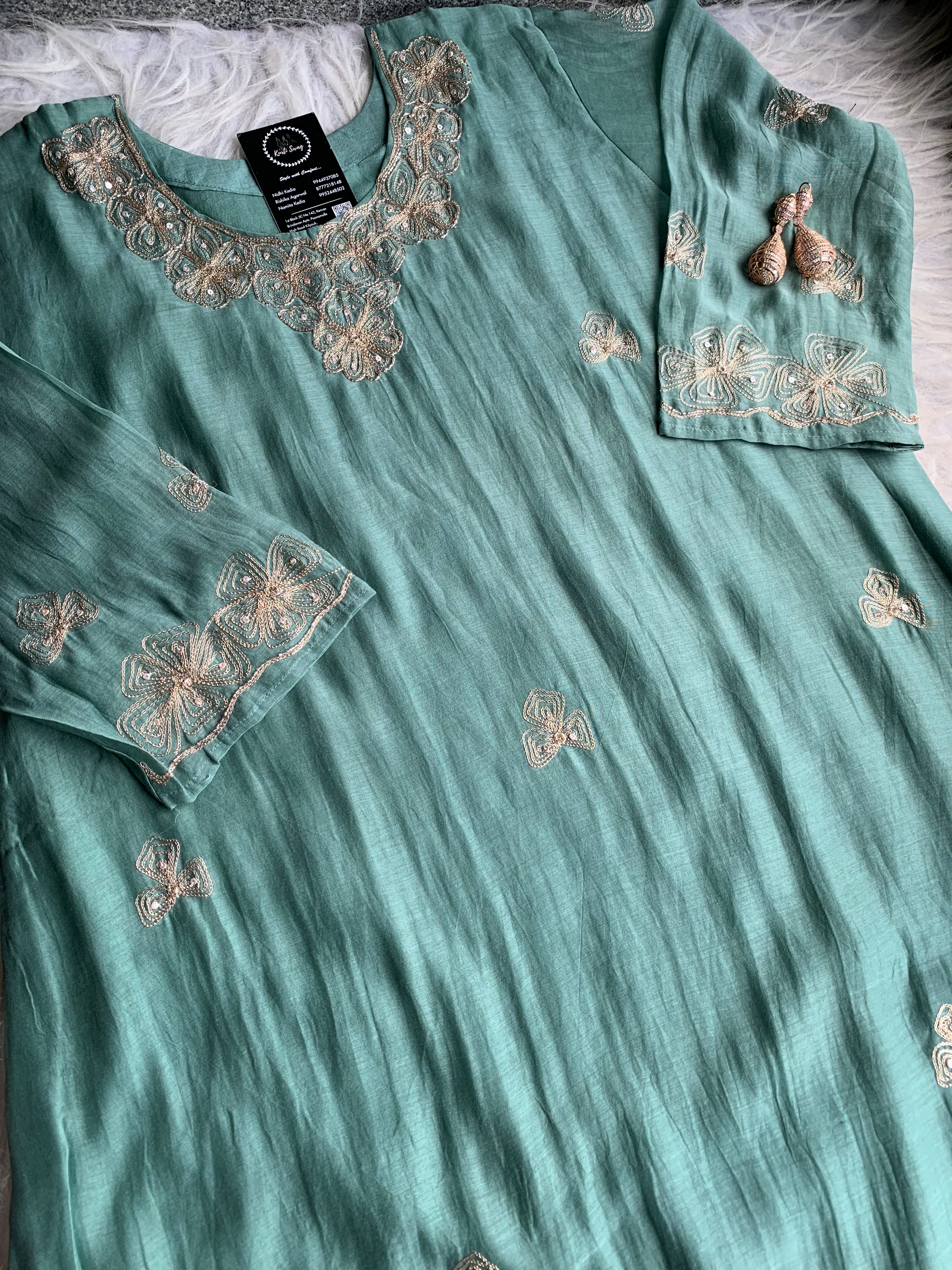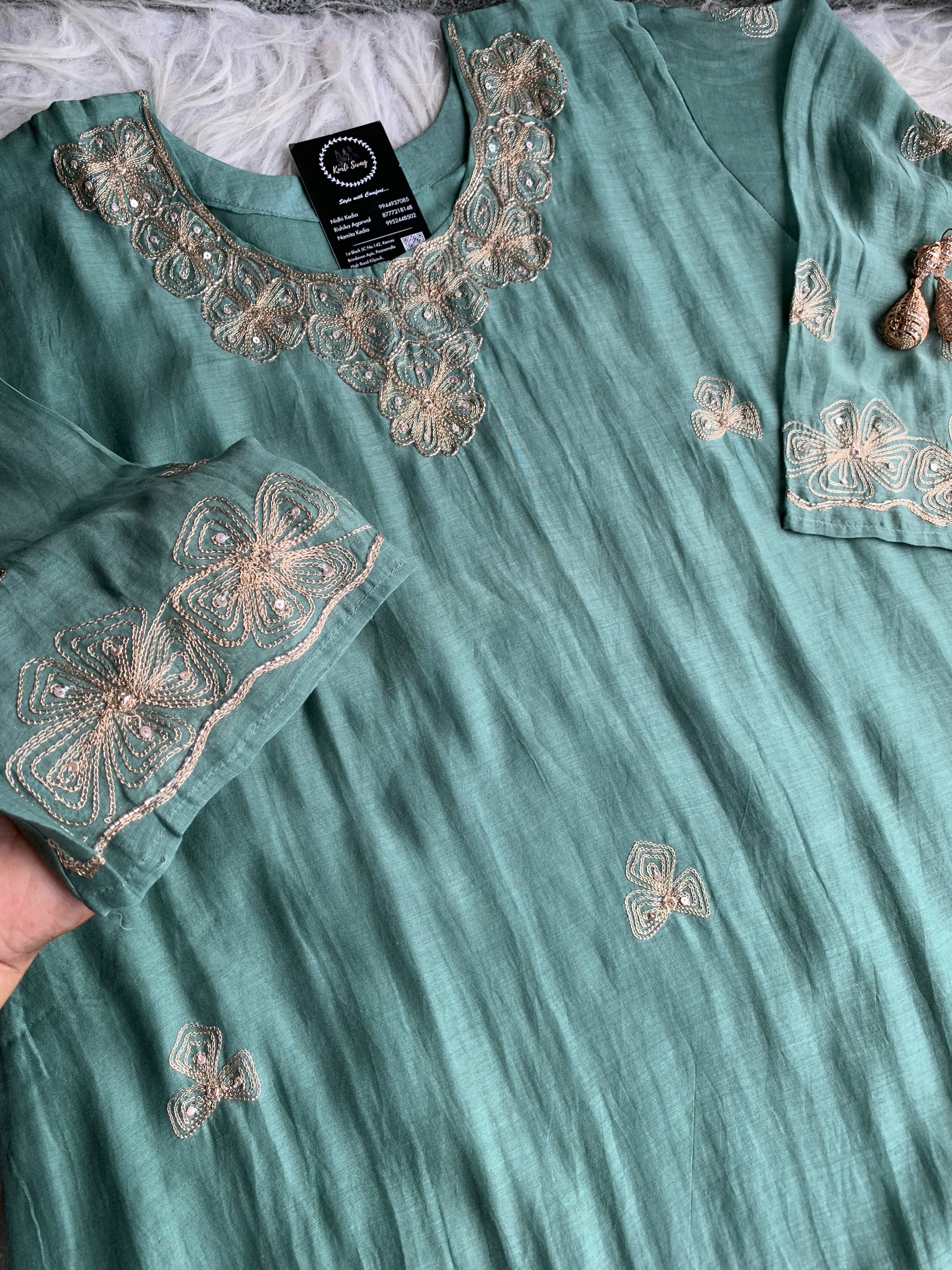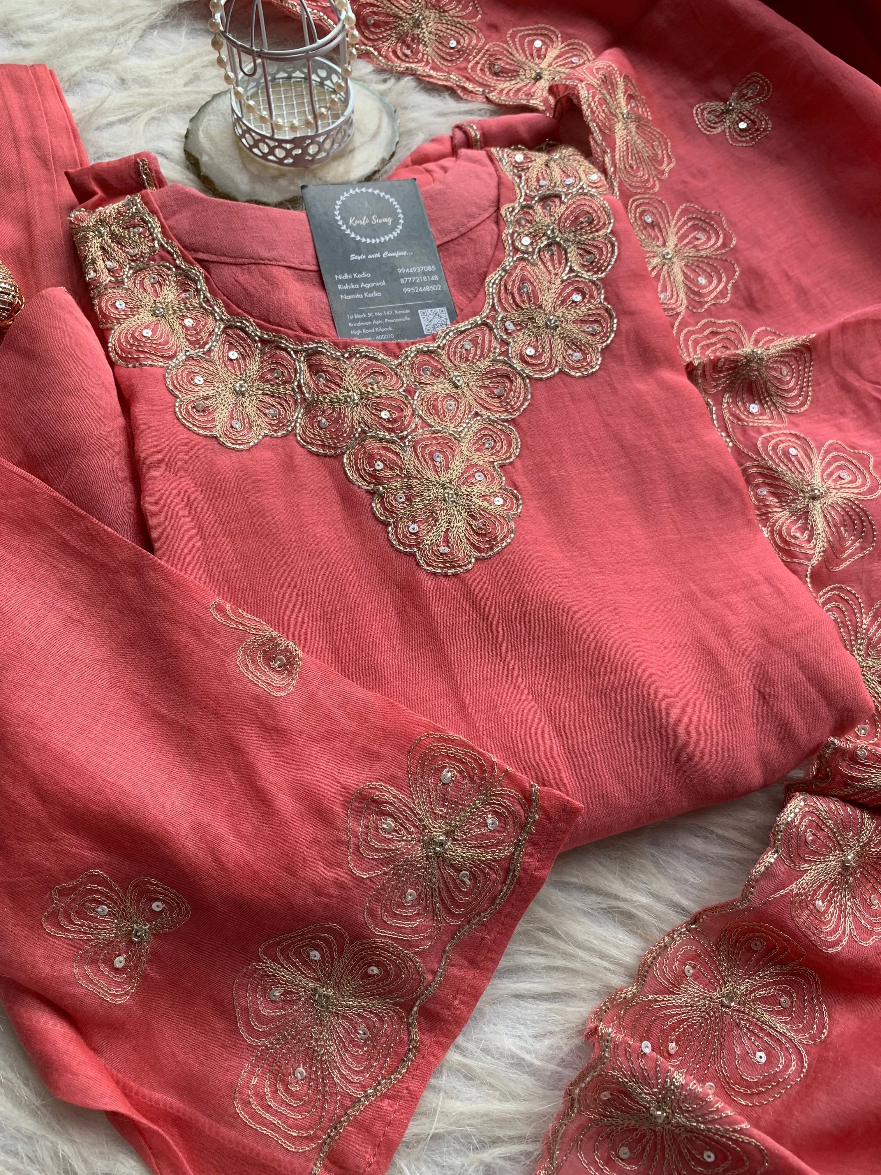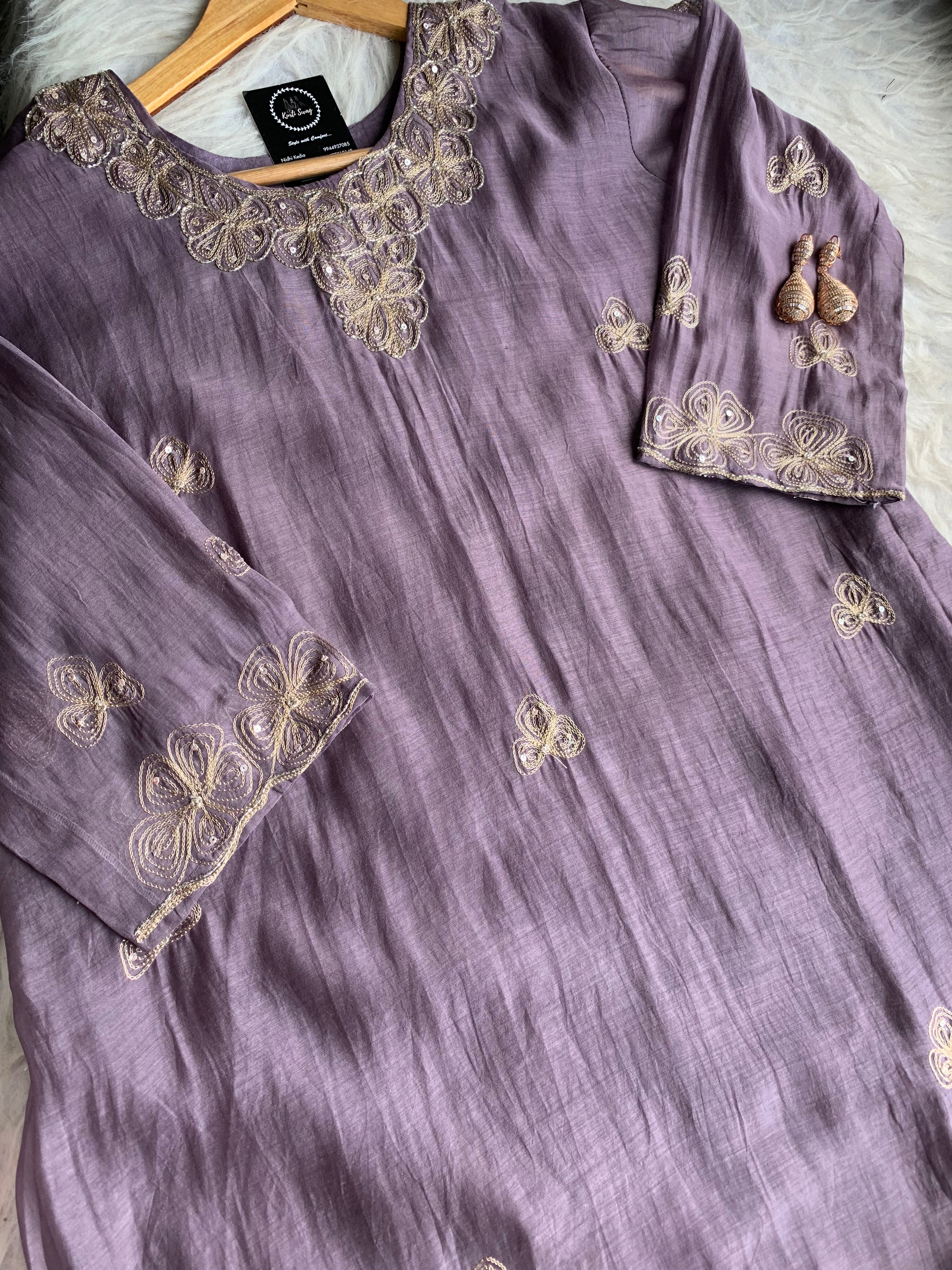 ✅ Premium Mul Chanderi Kurti With Golden Zari Work On The Yoke Of The Kurti
