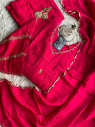 ✅ Premium Mul Chanderi Kurti With Zardosi Work On The Yoke Of The Kurti