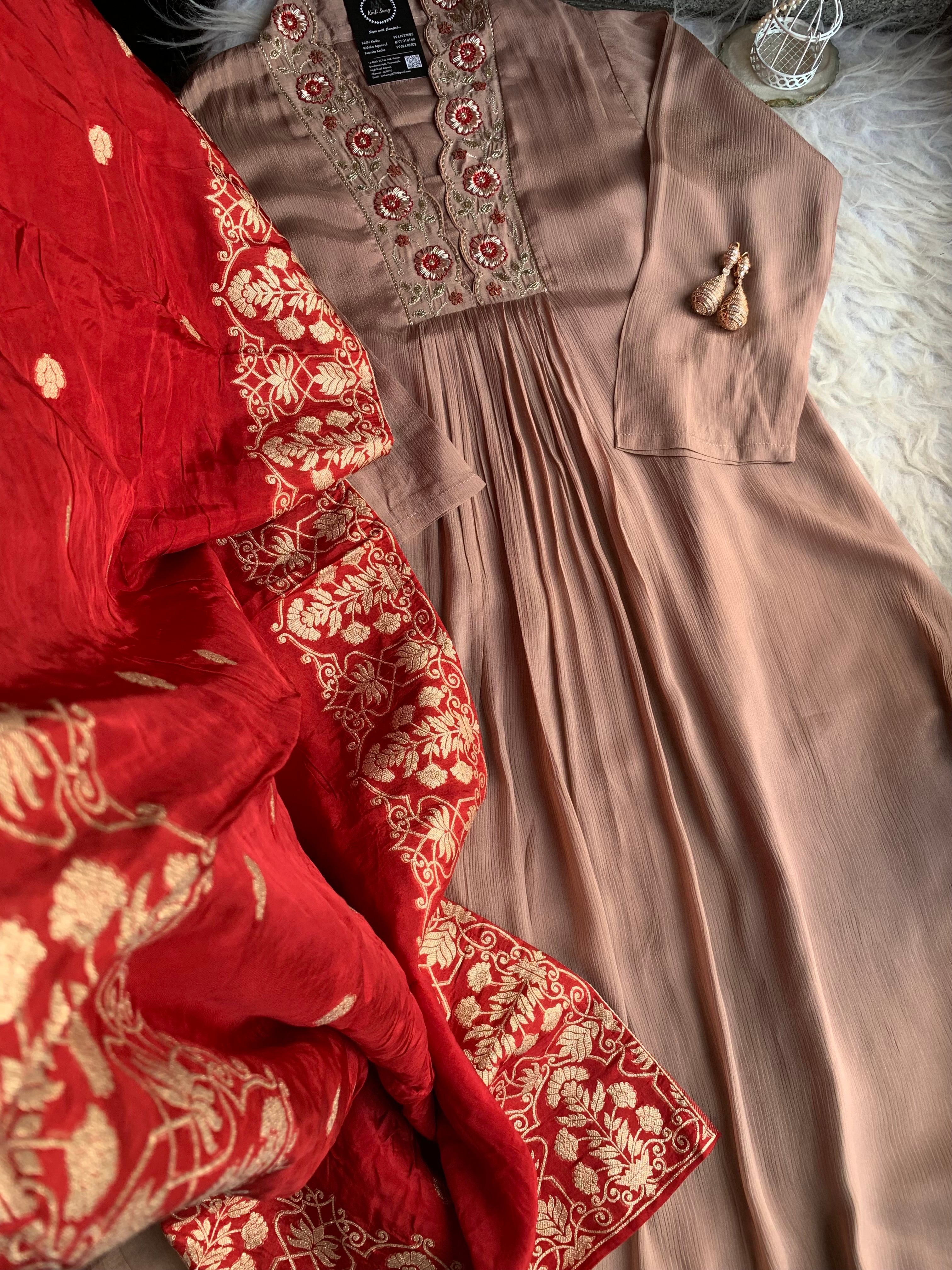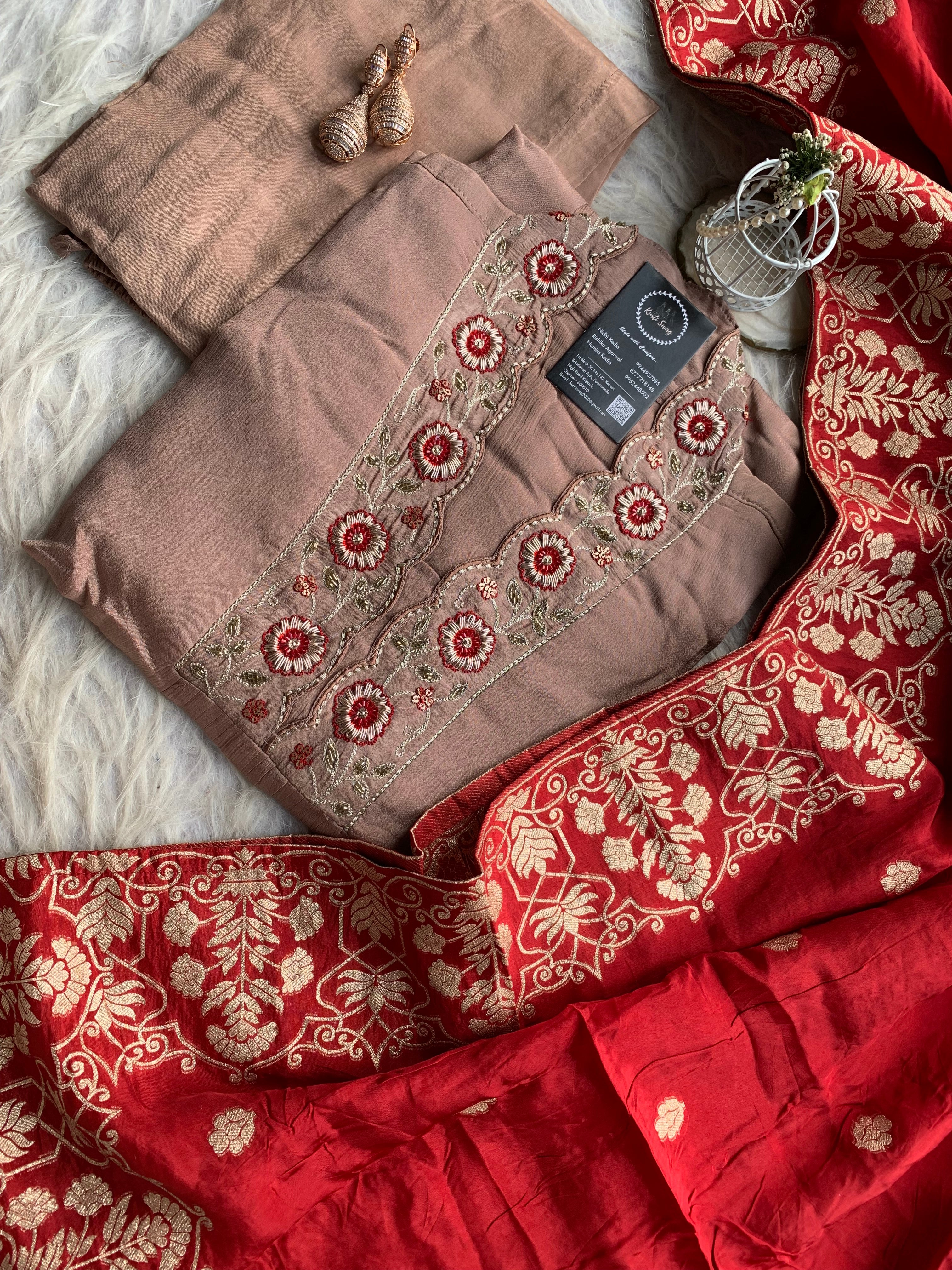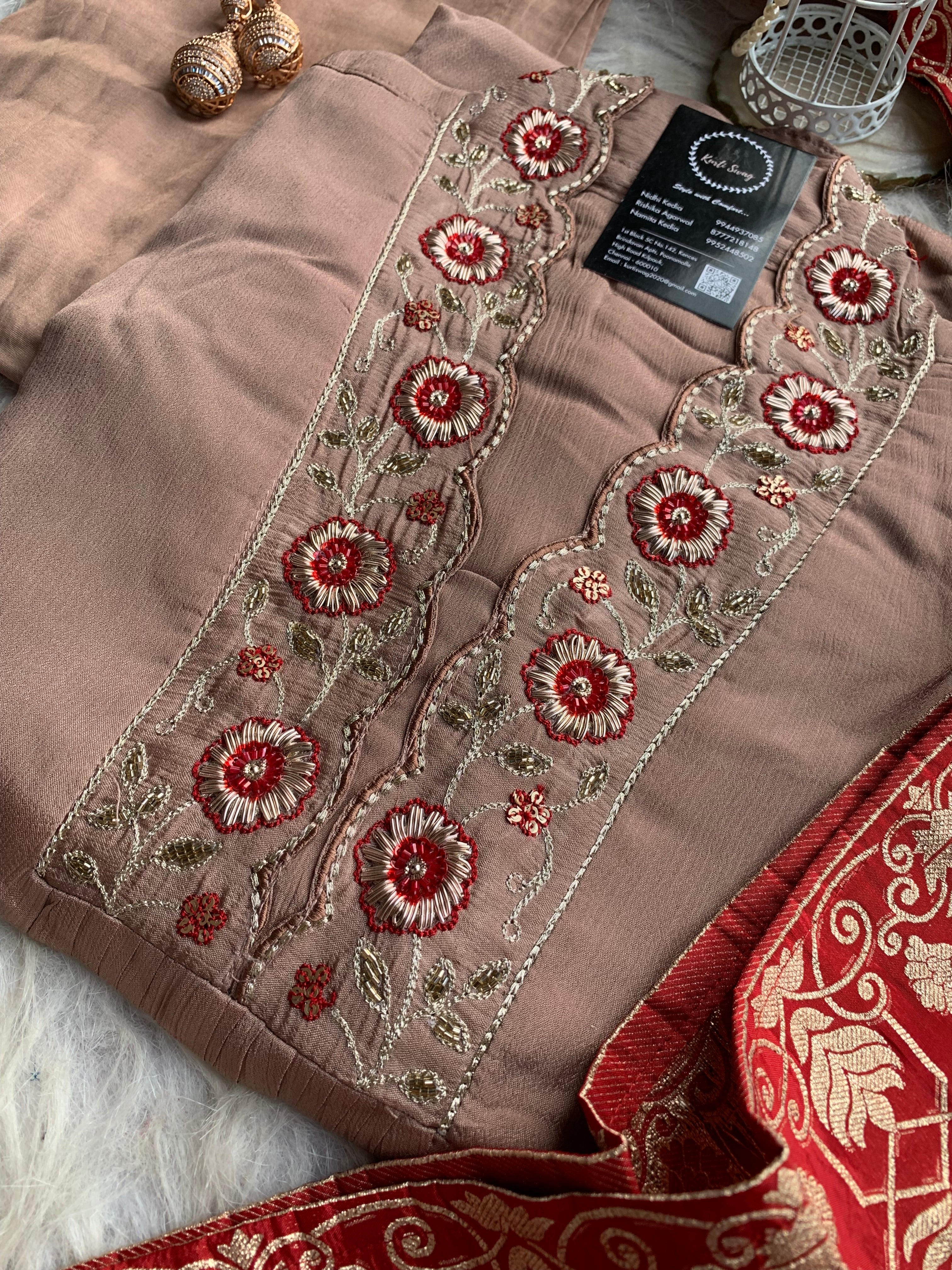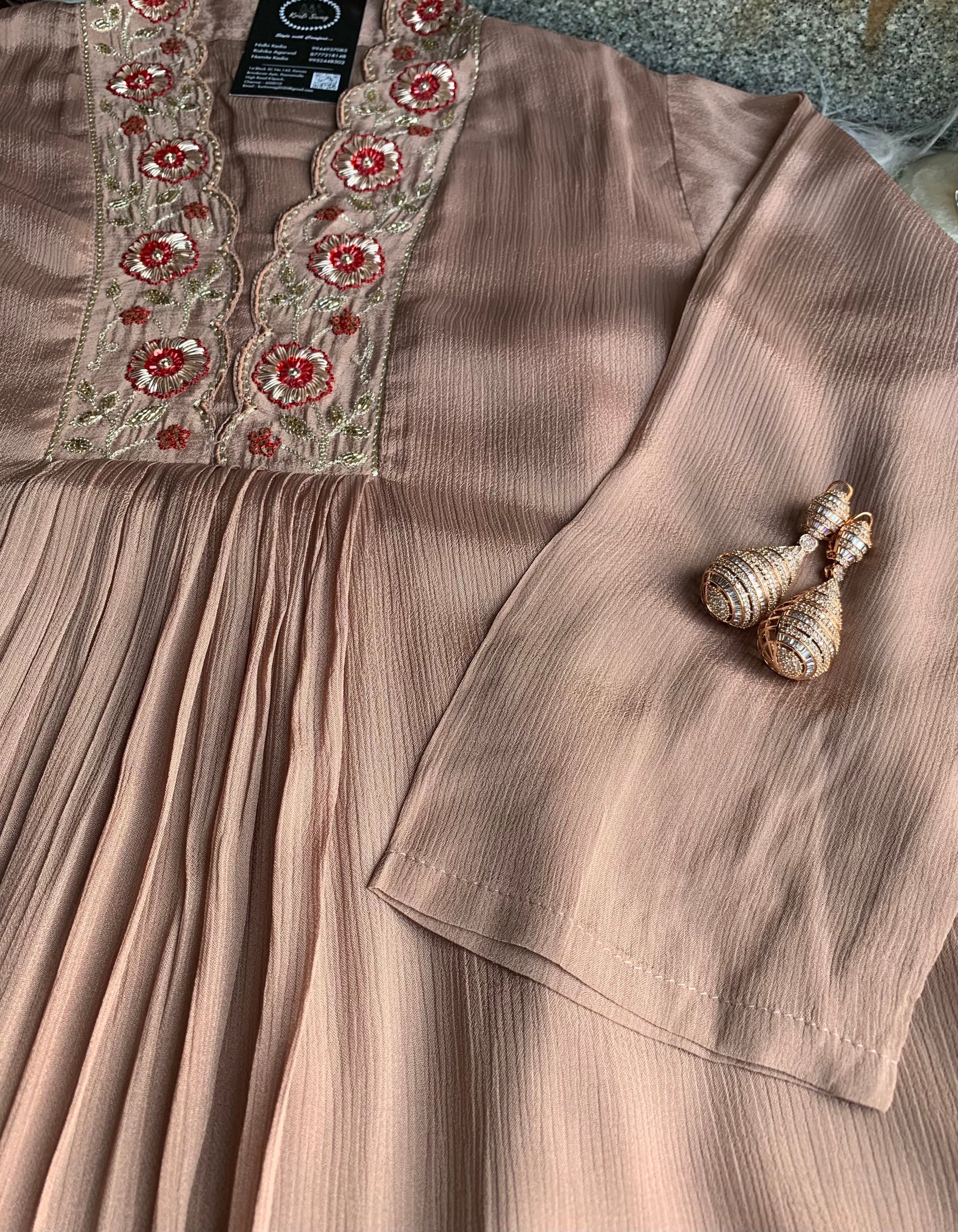 ✅ Premium Chinnon Kurti With Dabka, Cutdaana  Handwork On The Yoke Of The Kurti