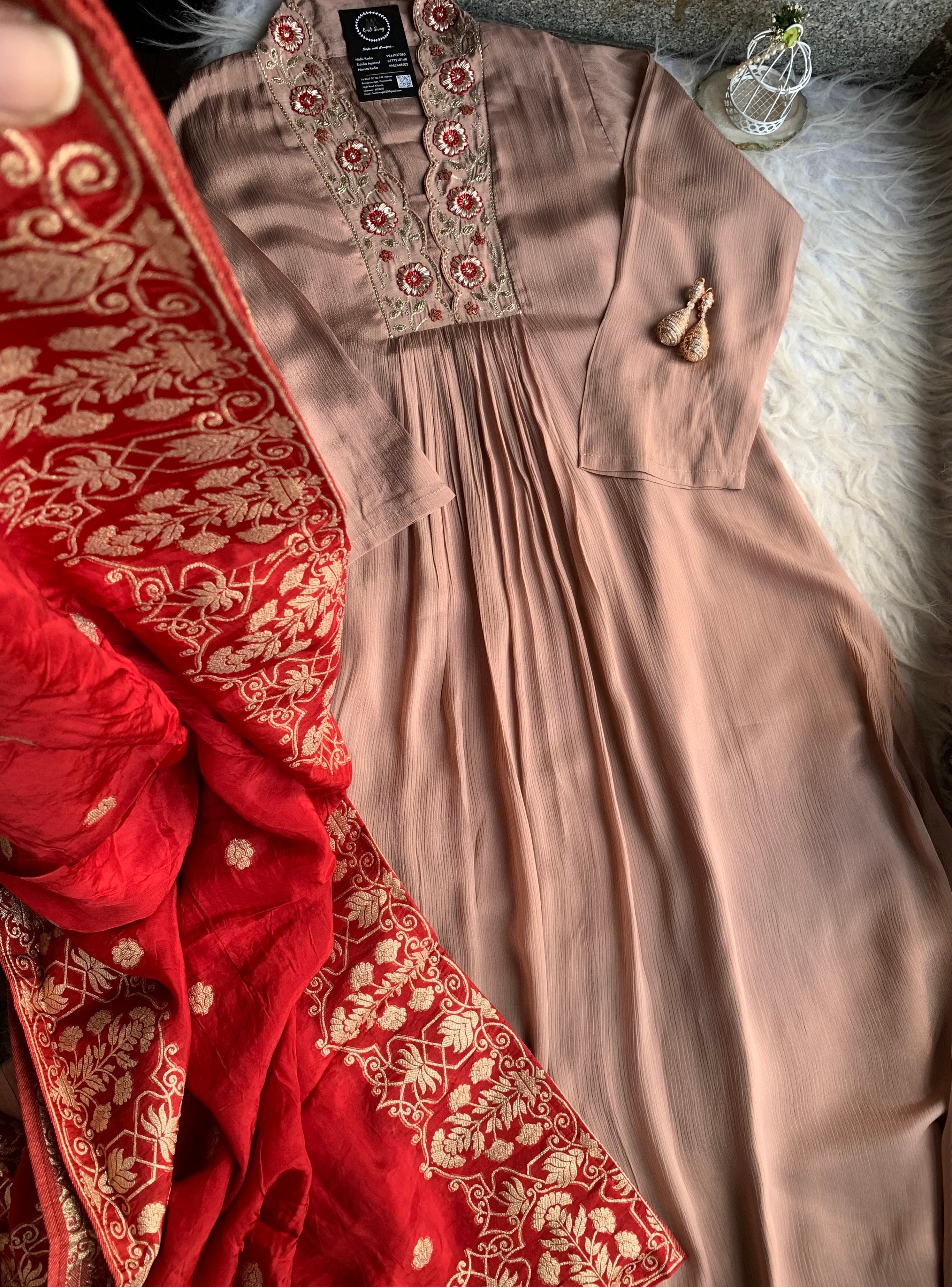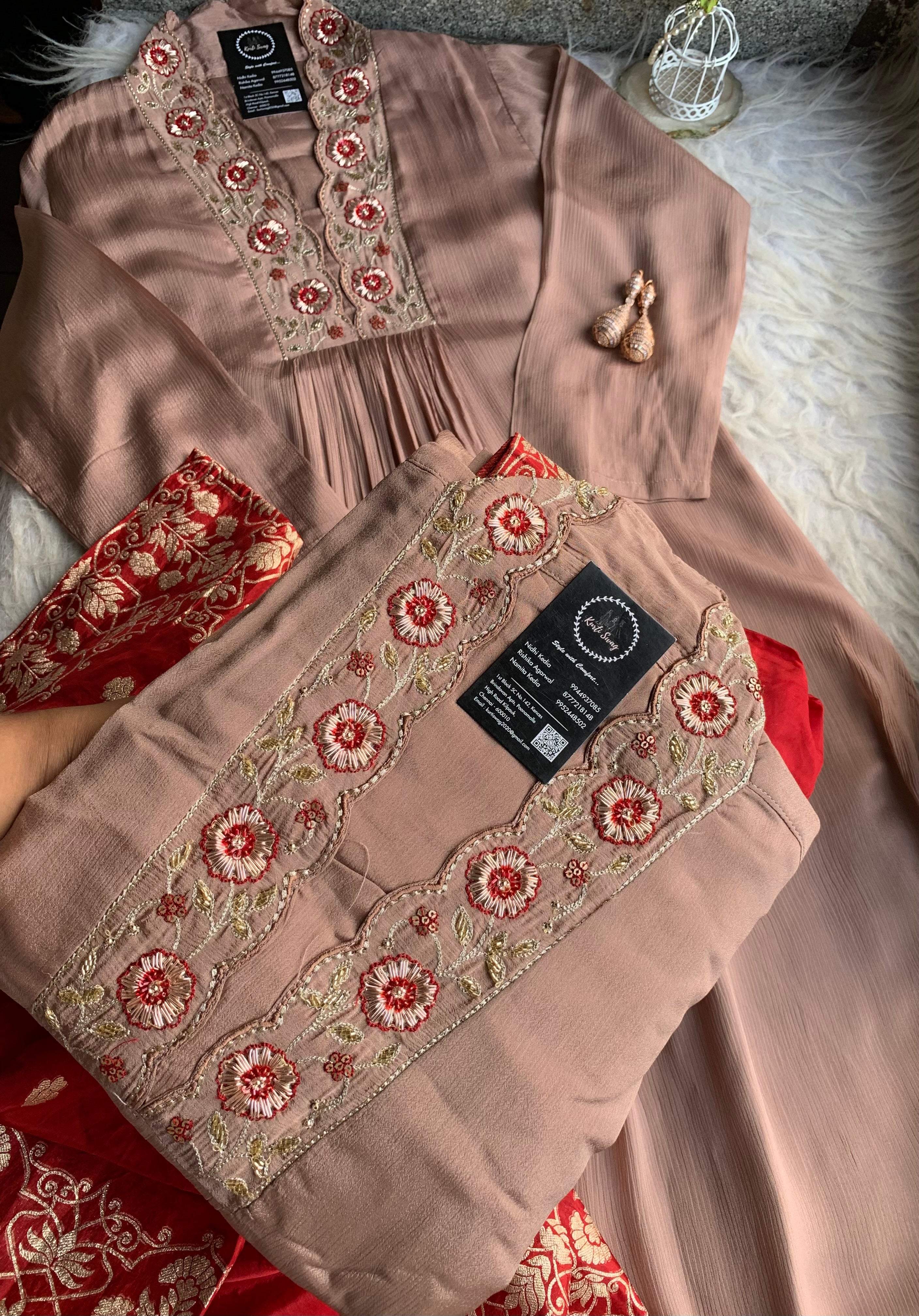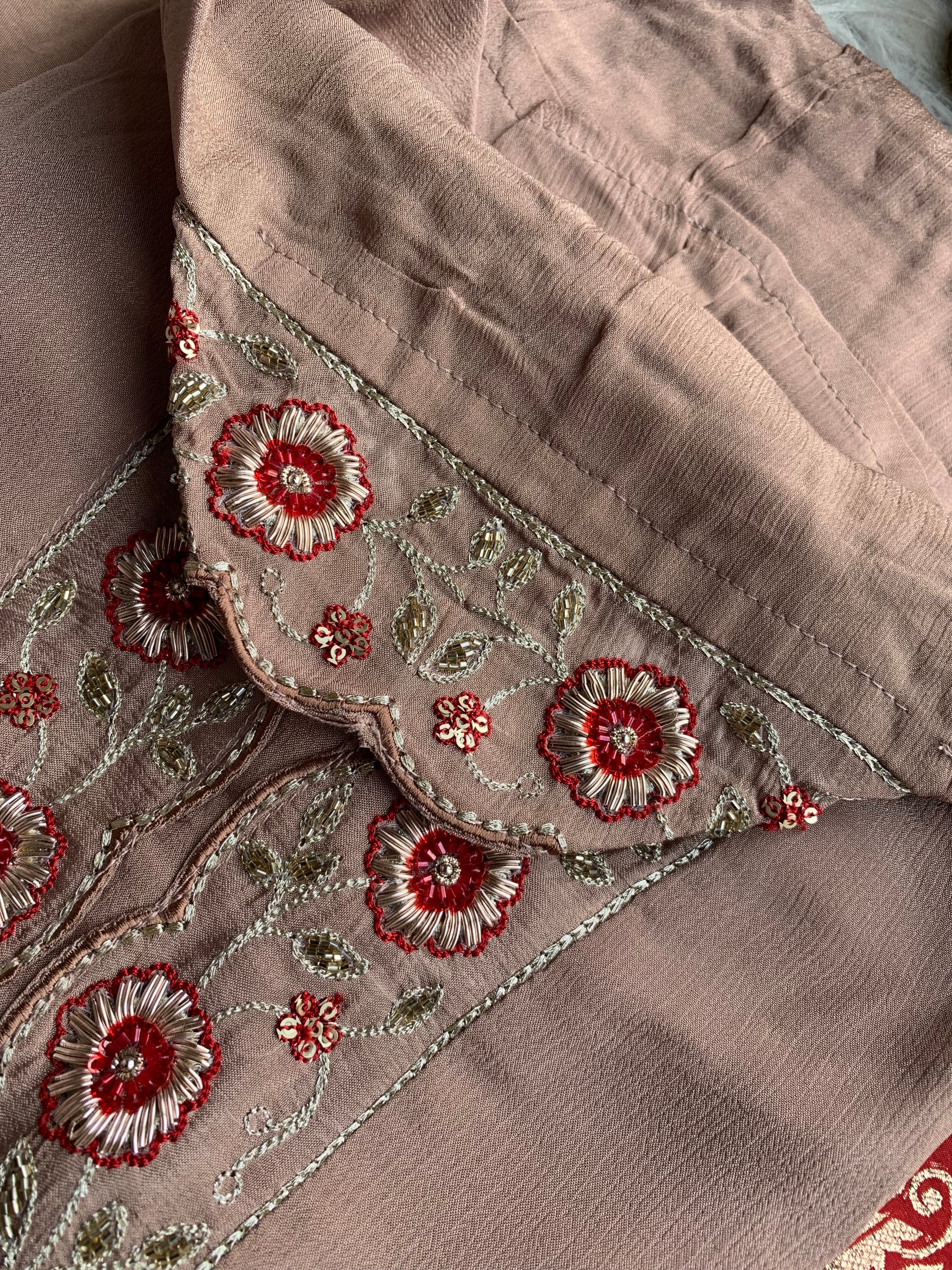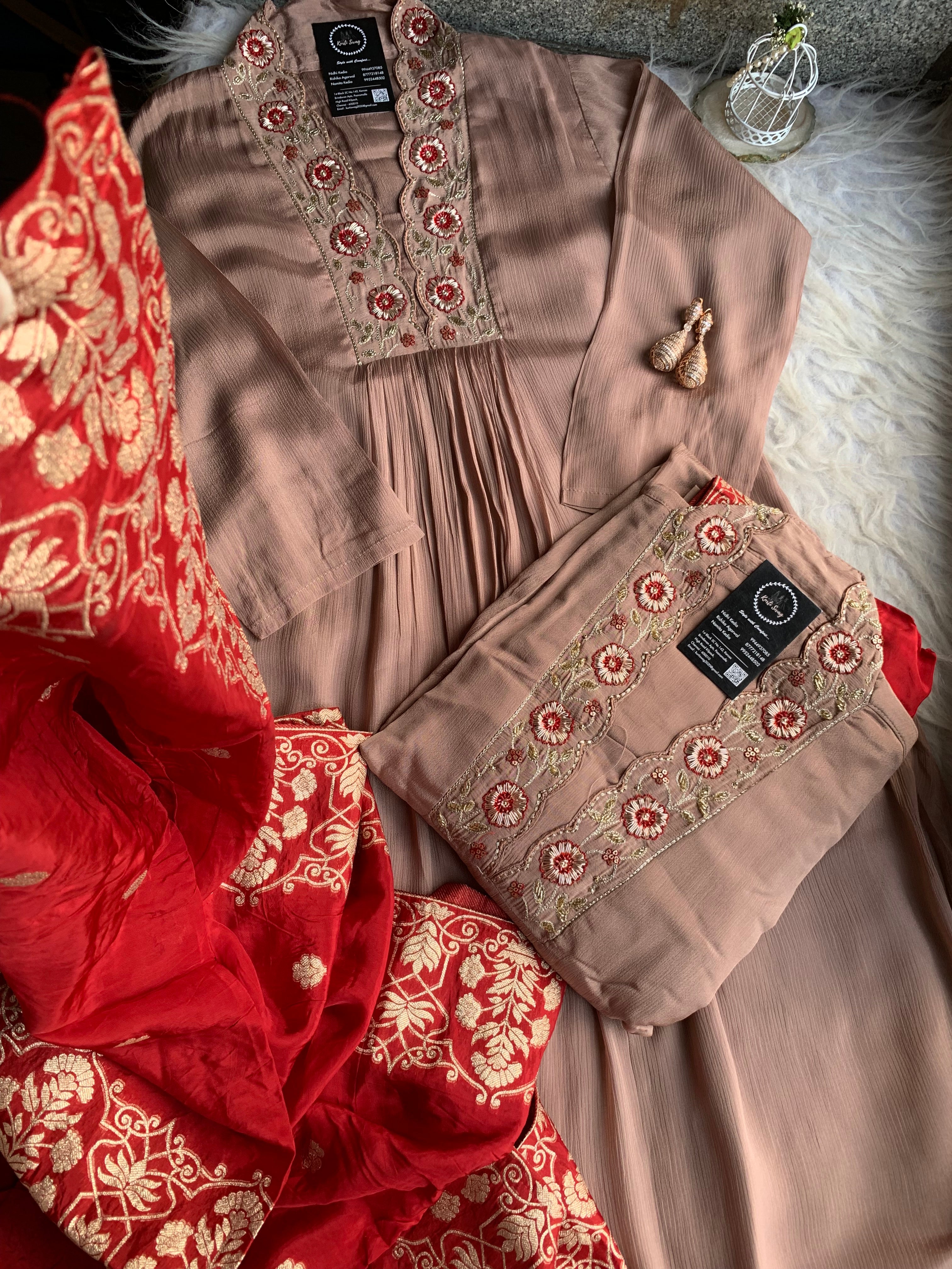 ✅ Premium Chinnon Kurti With Dabka, Cutdaana  Handwork On The Yoke Of The Kurti
