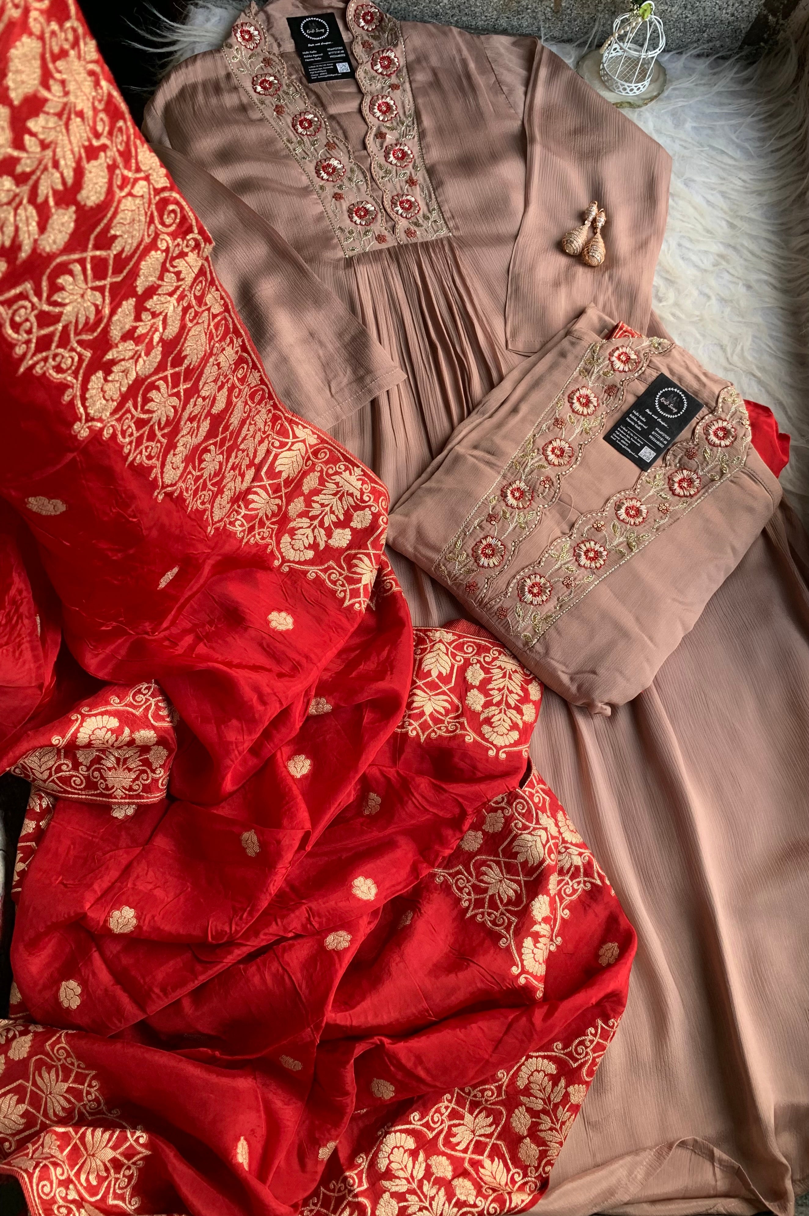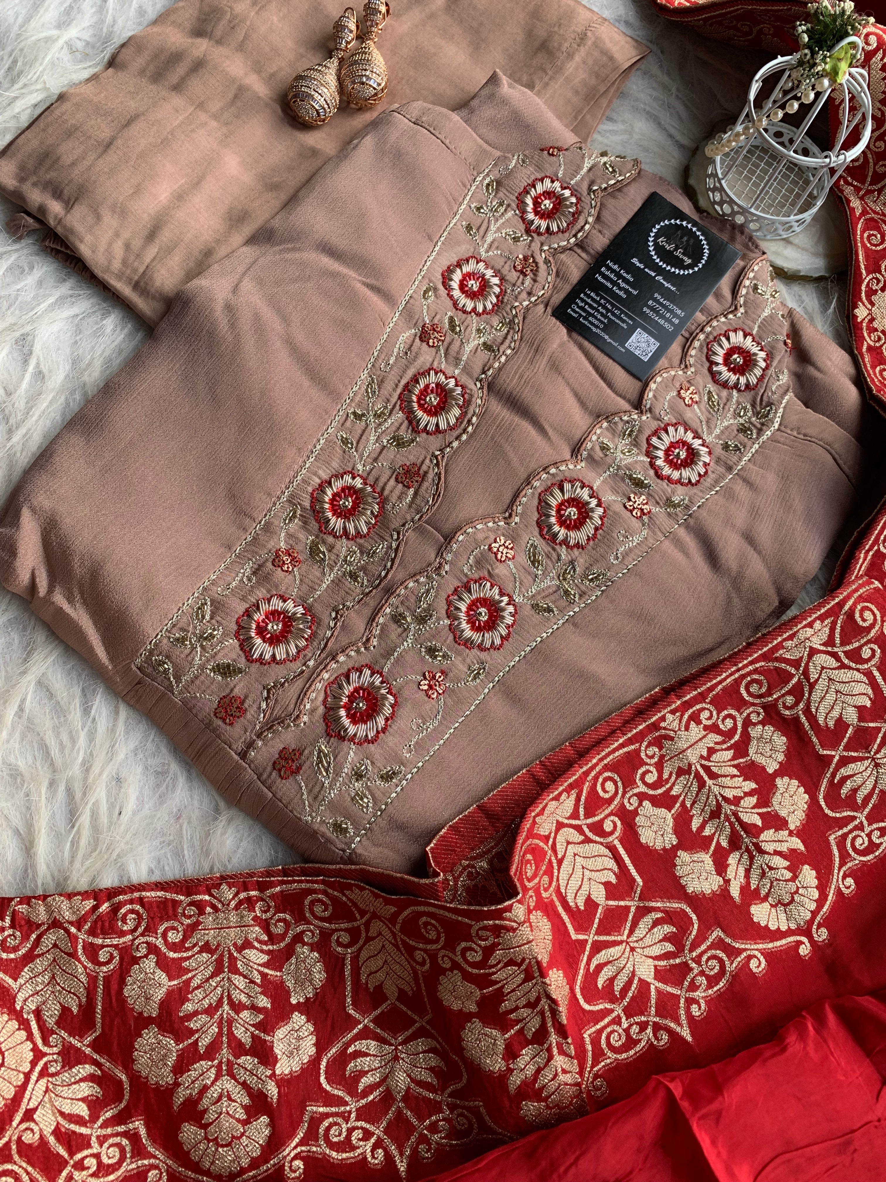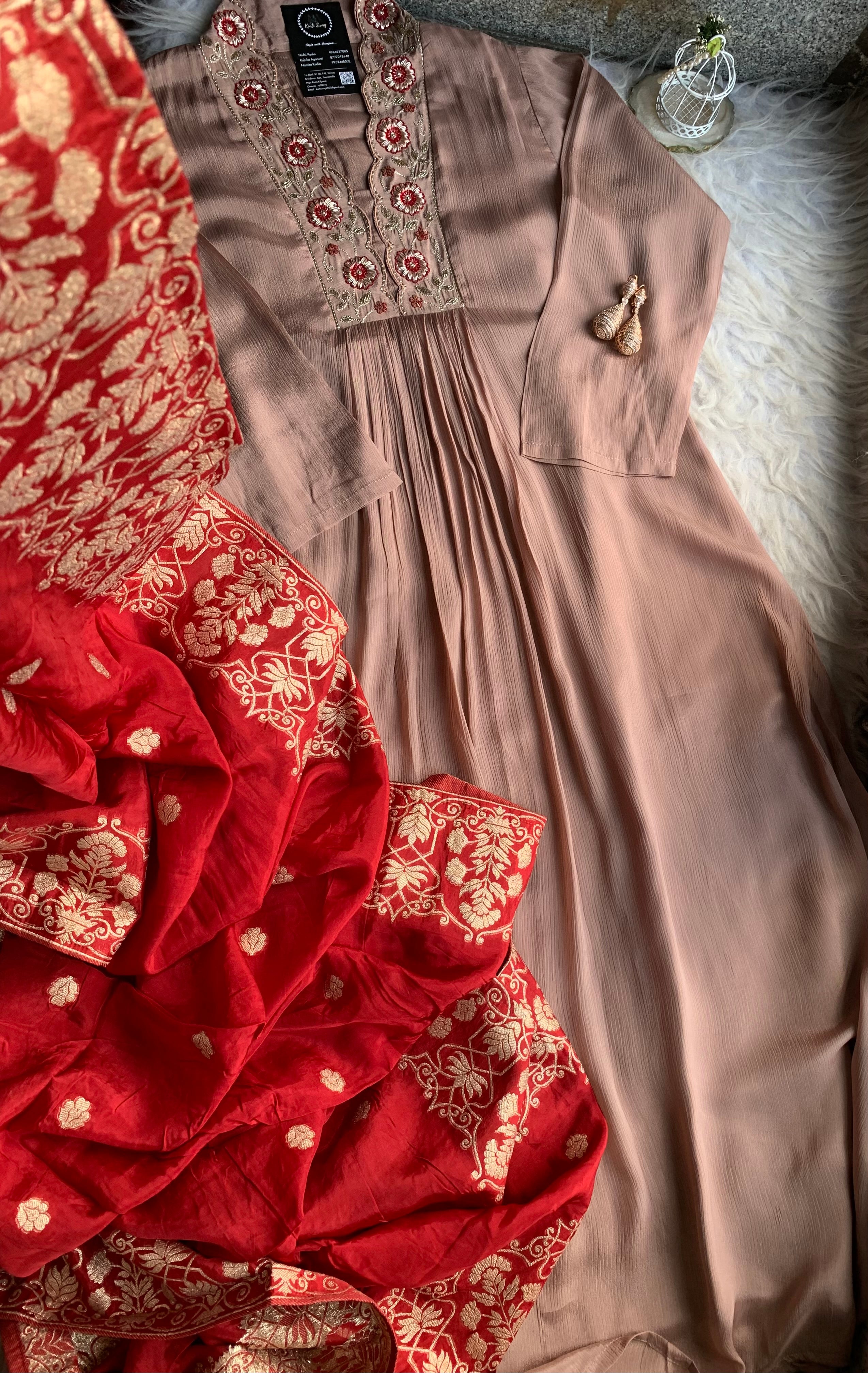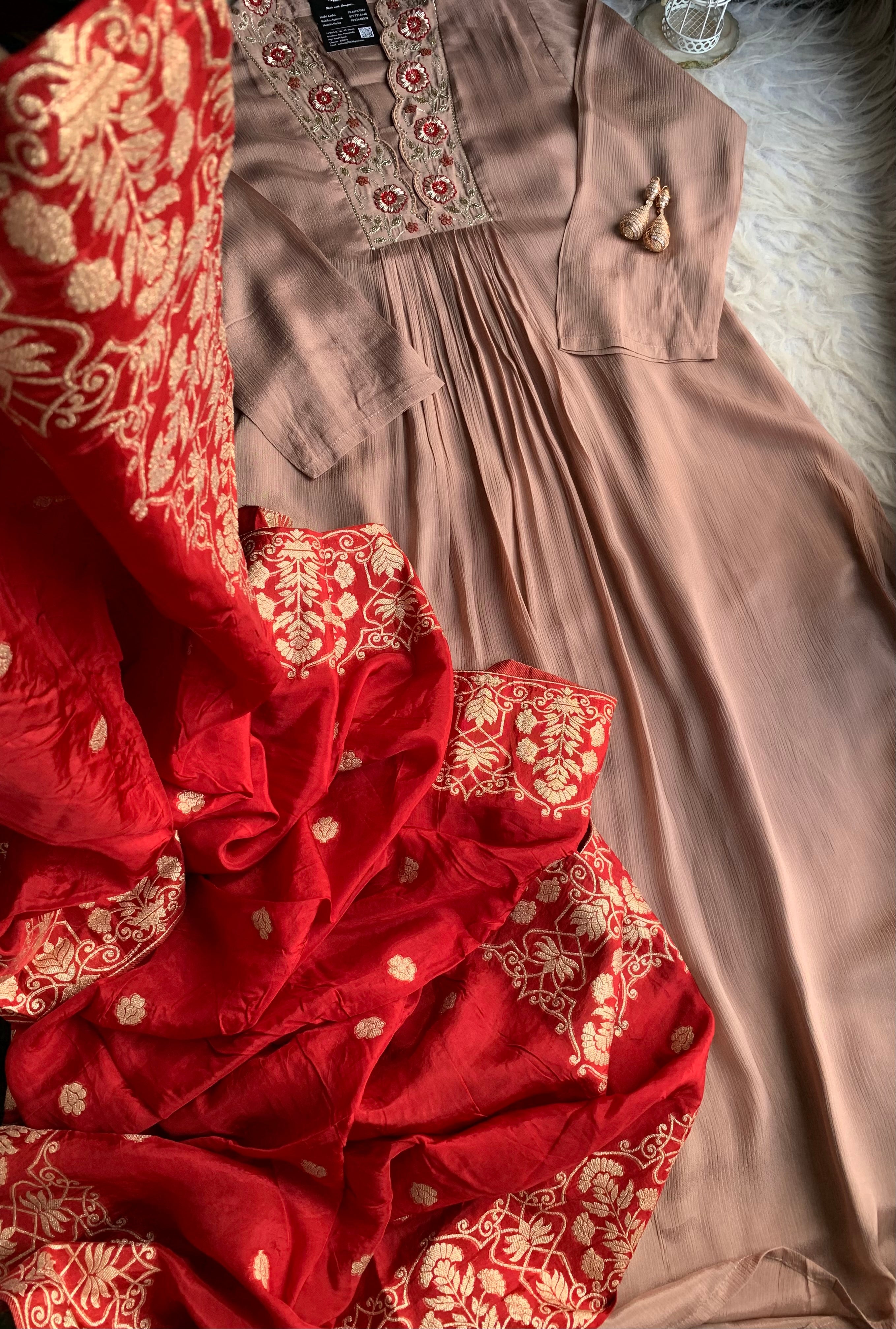 ✅ Premium Chinnon Kurti With Dabka, Cutdaana  Handwork On The Yoke Of The Kurti