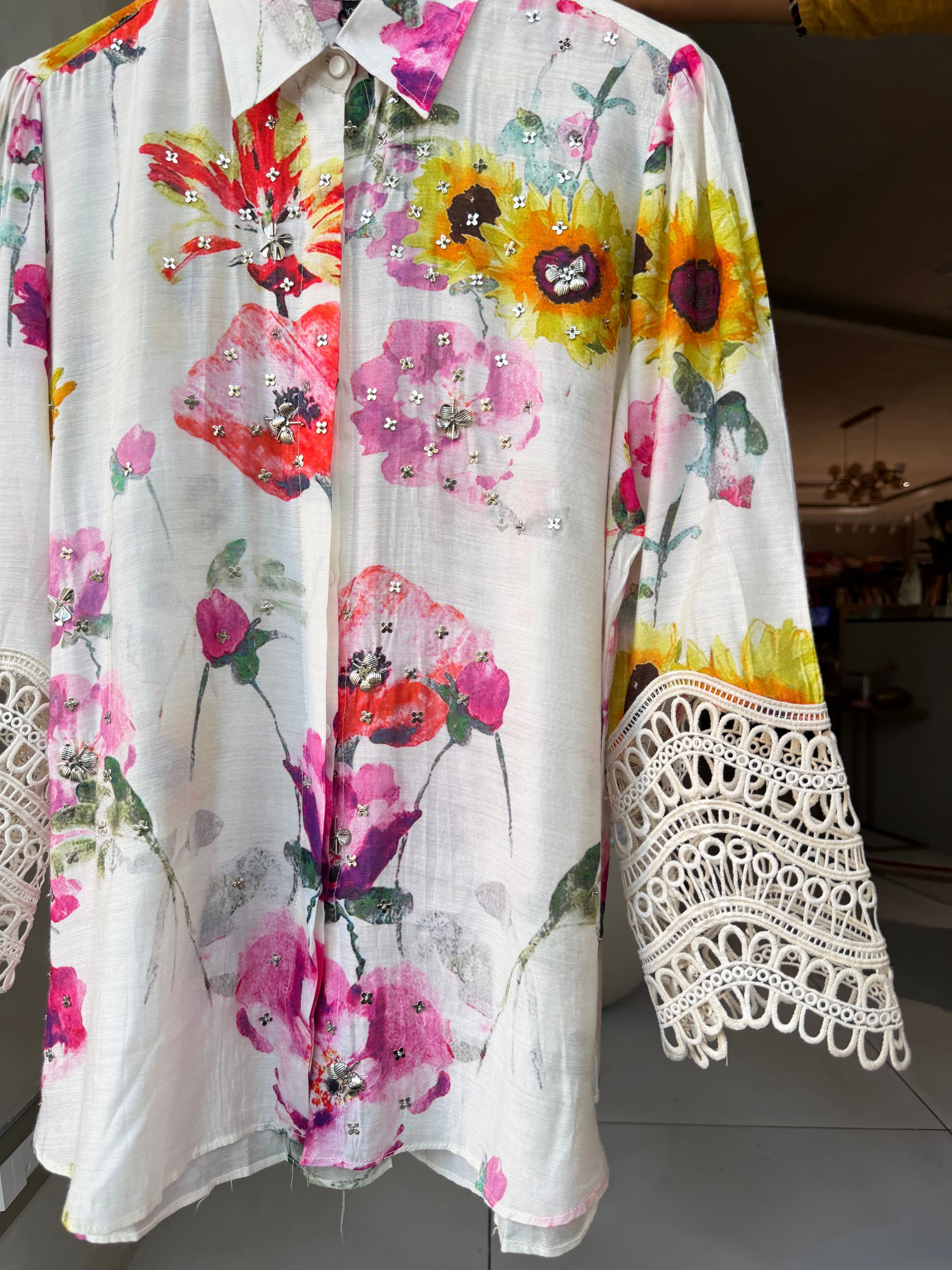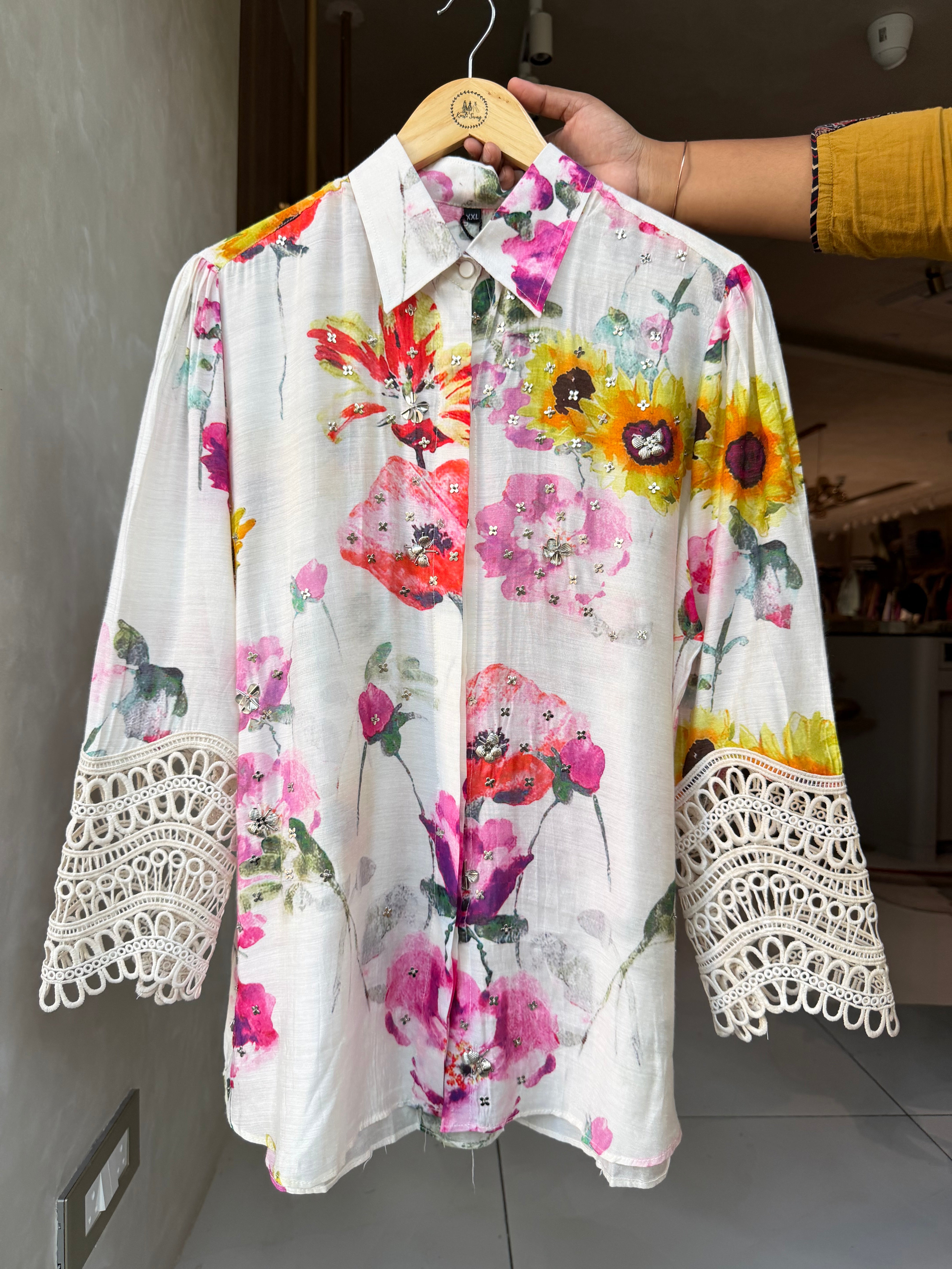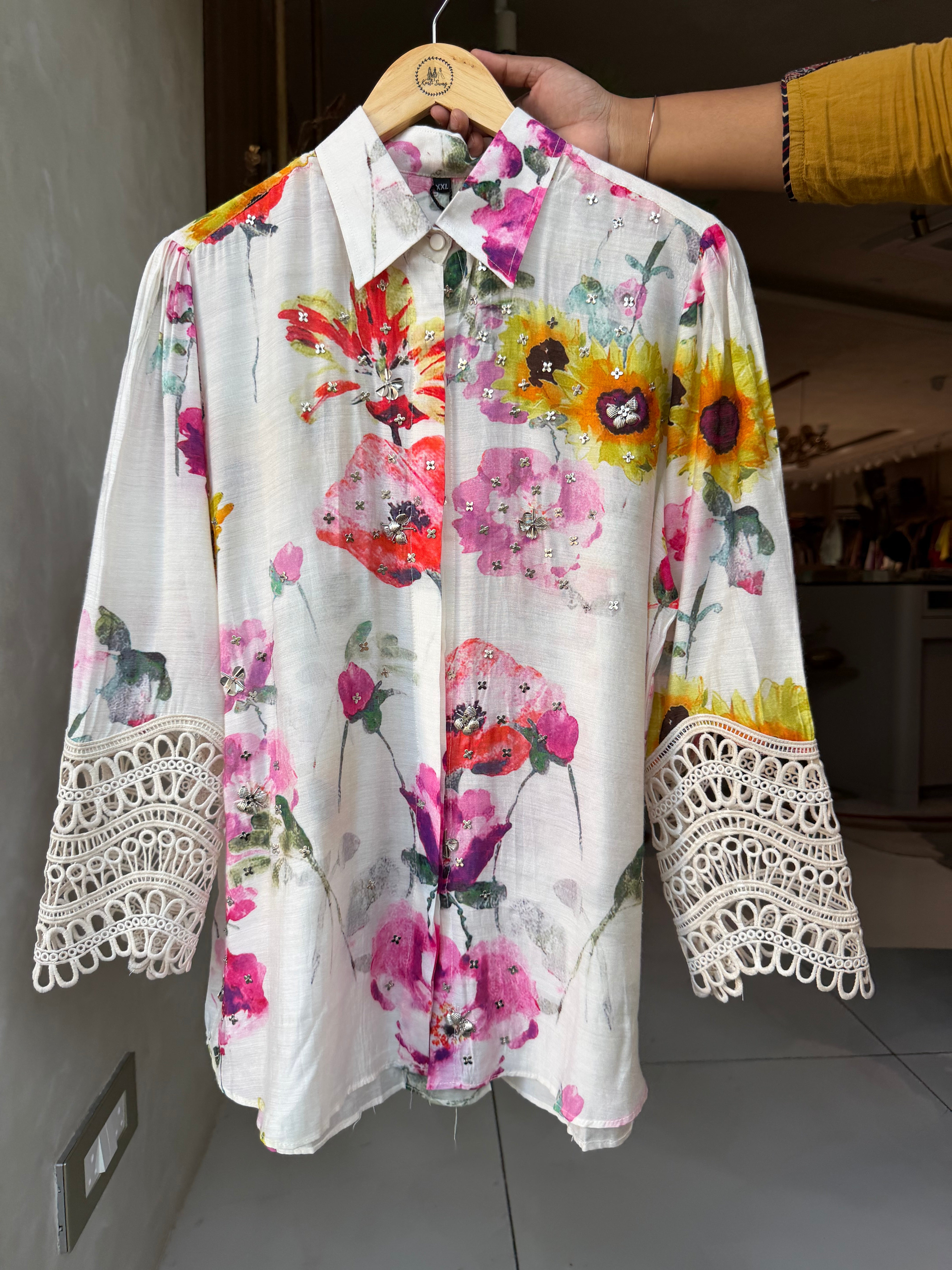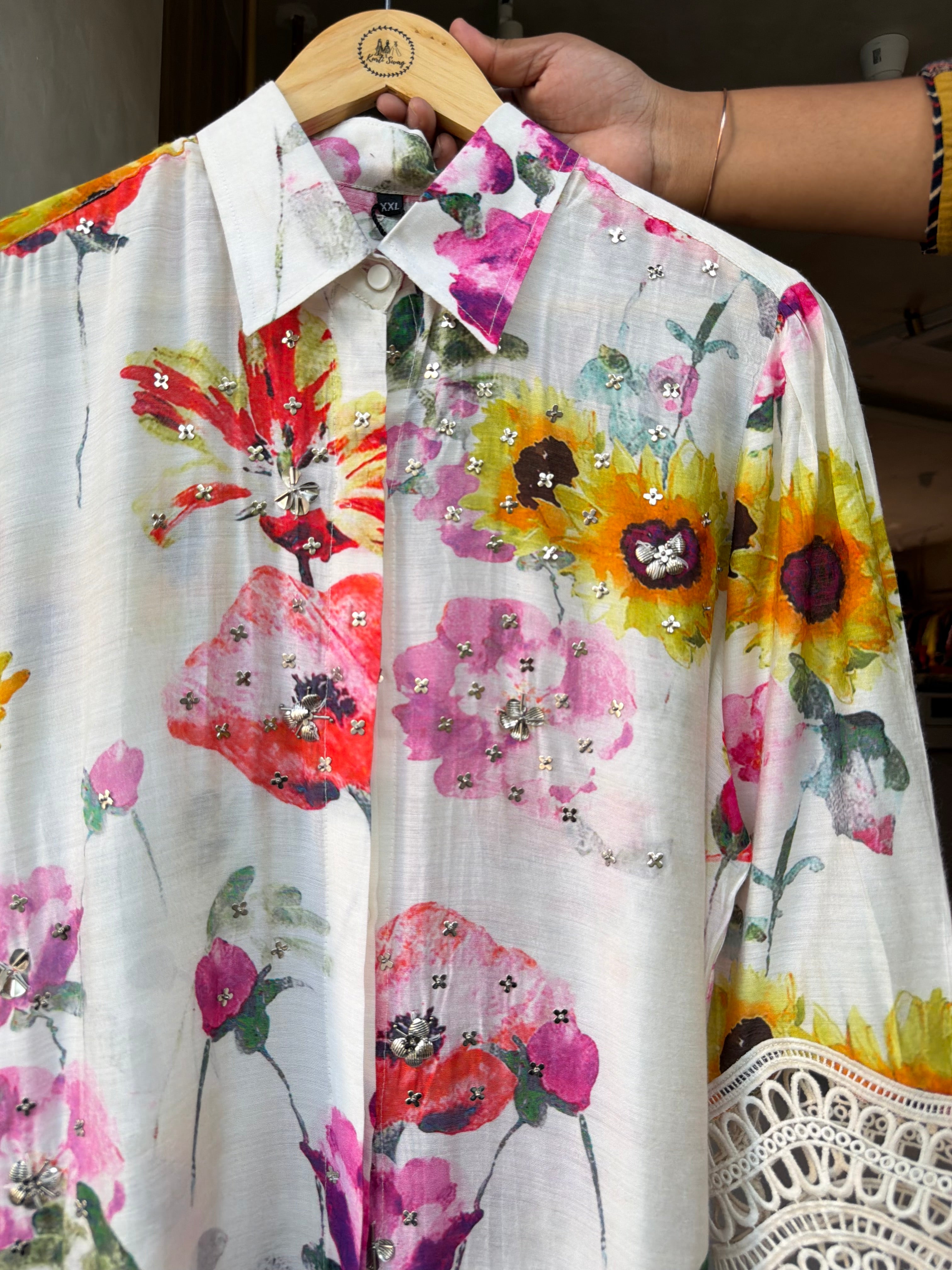 ✅ Pure Muslin Shirt With Charms Detailing
