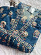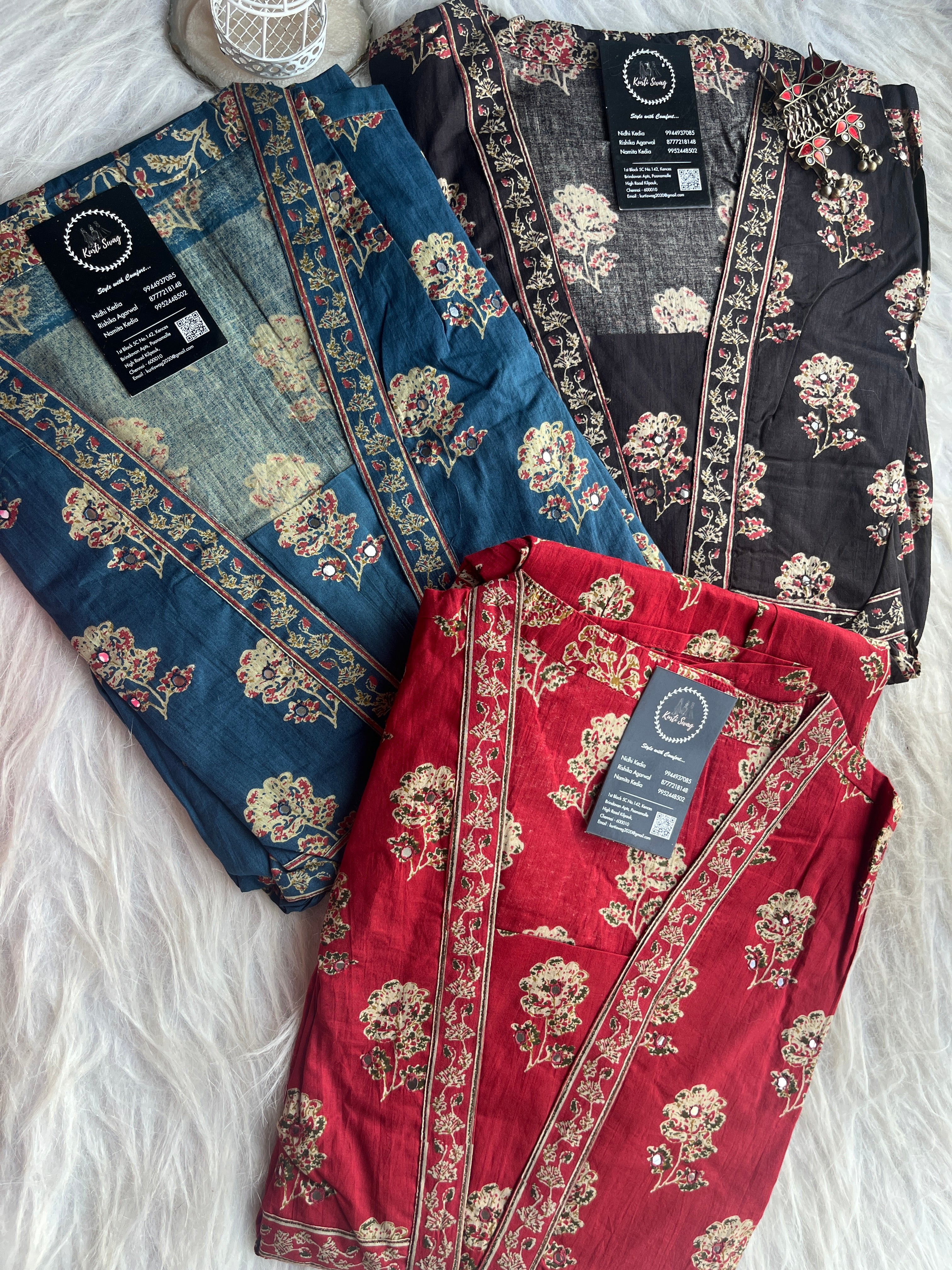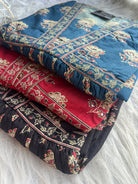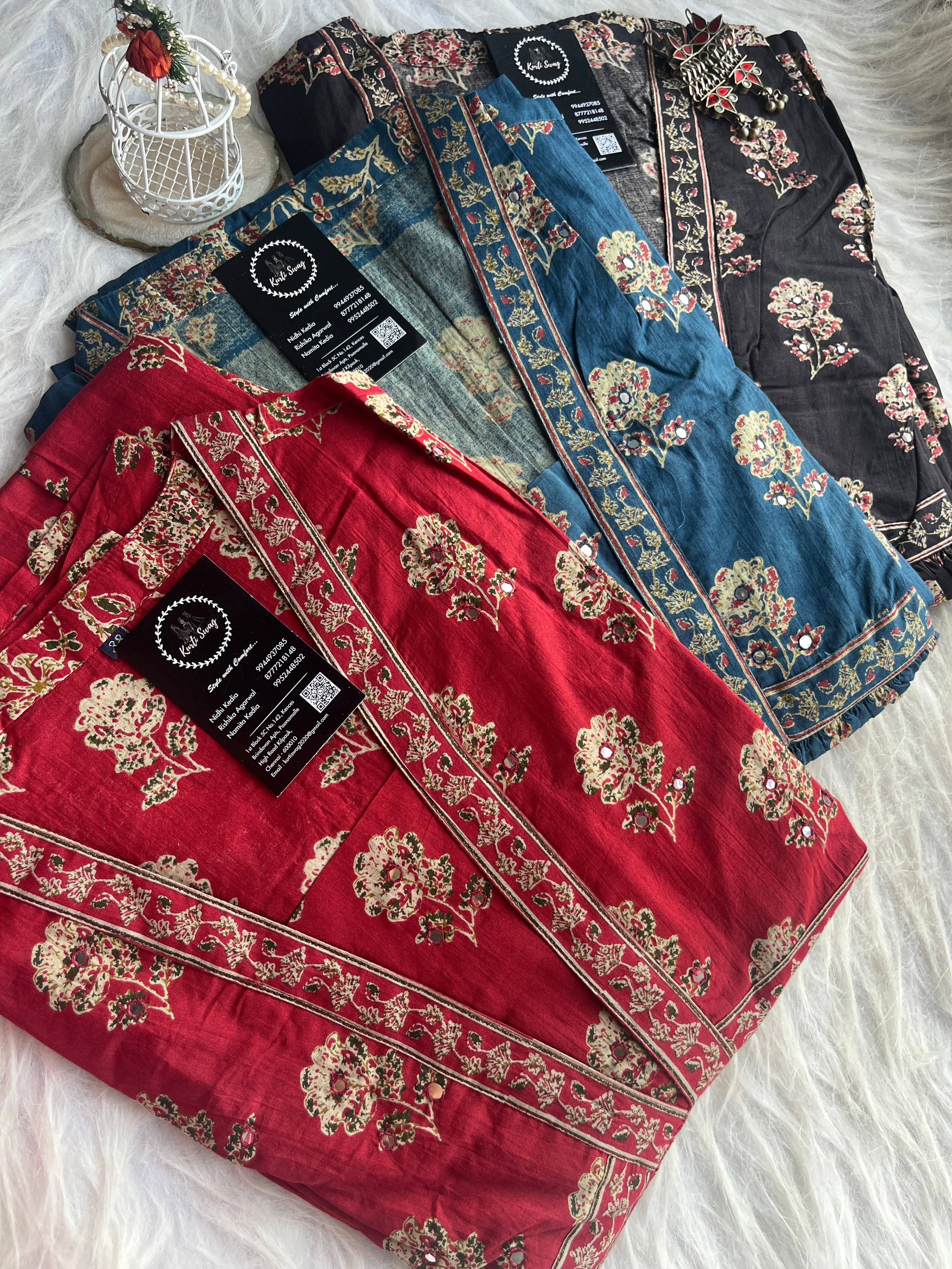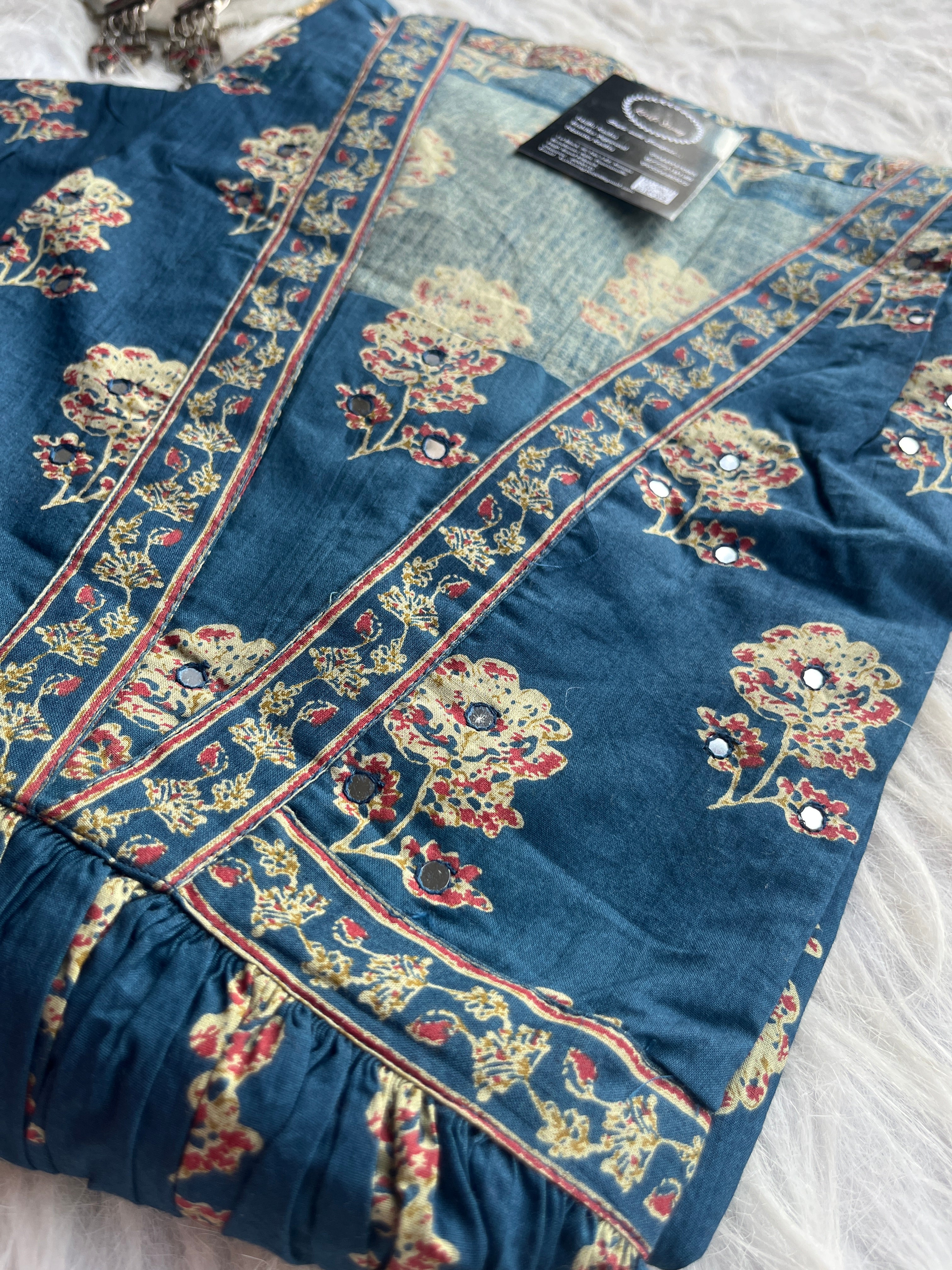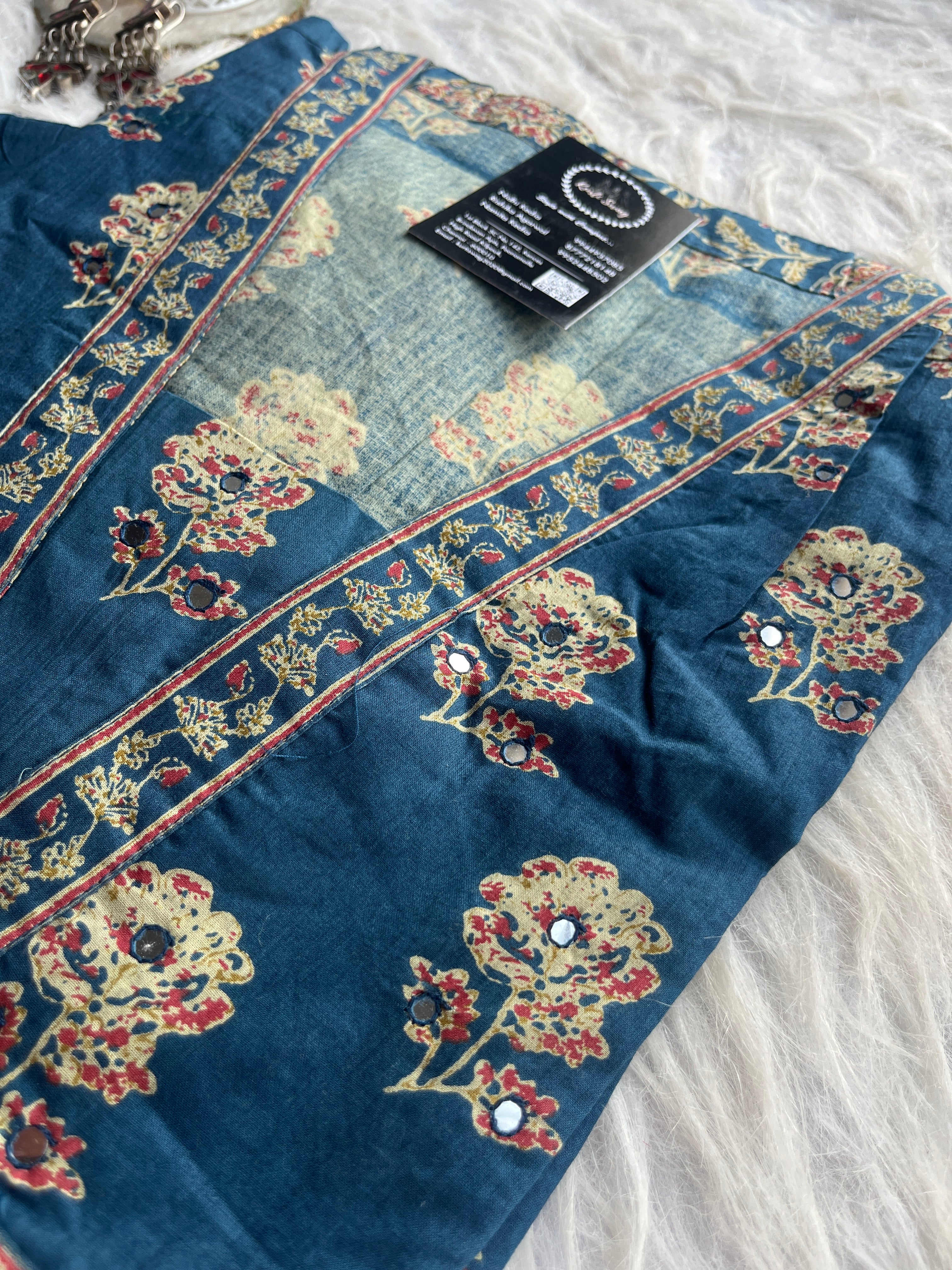 ✅ Premium Cotton Ajrakh Print Kurta with handwork Highlights on The Neckline Of The Kurta