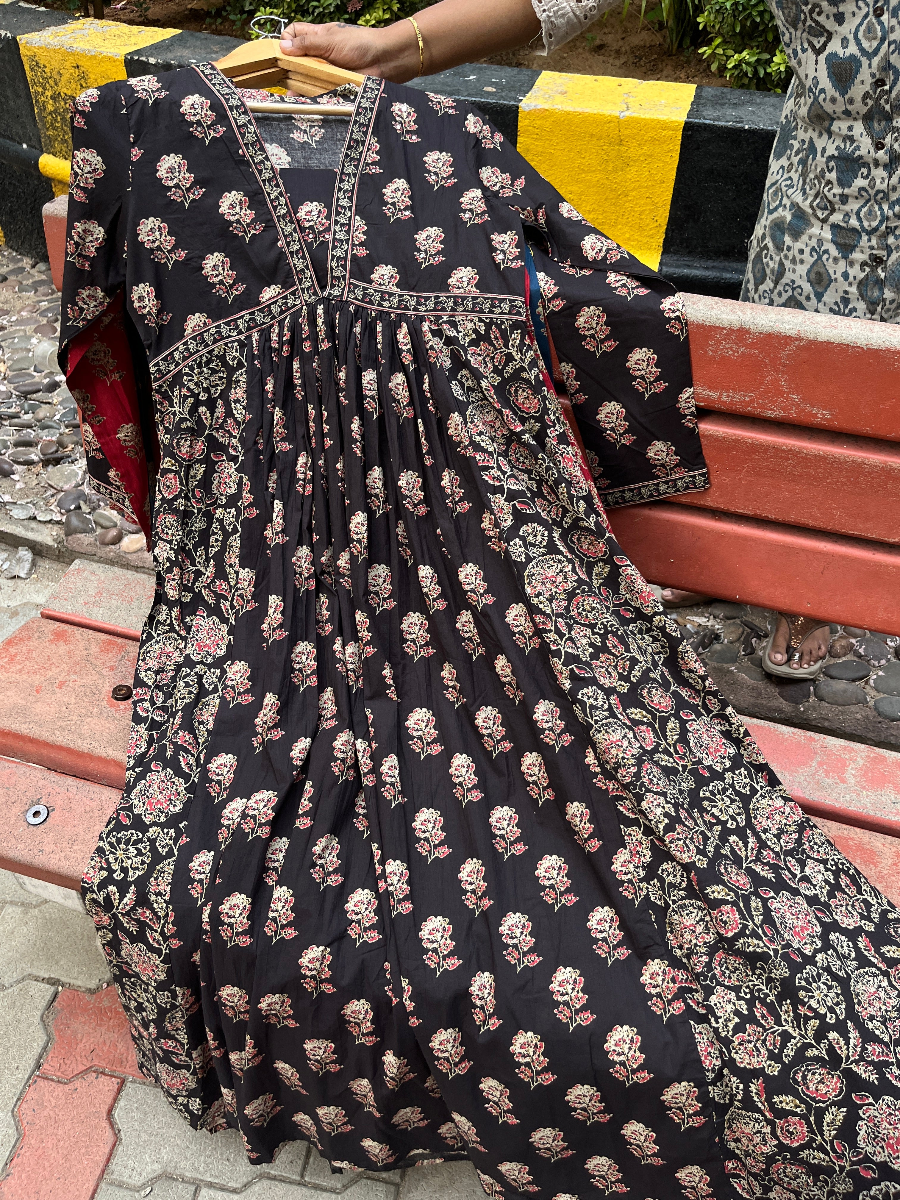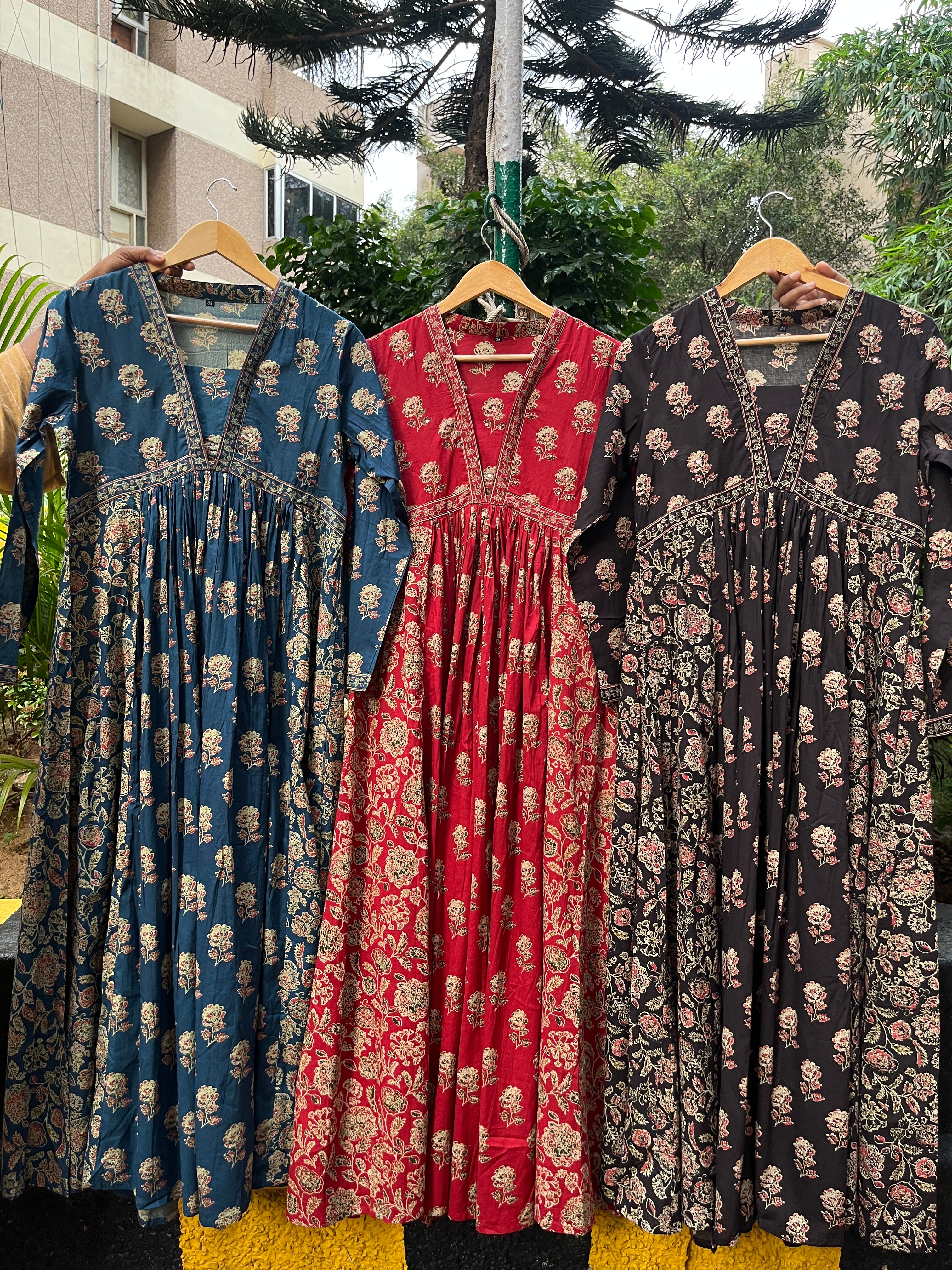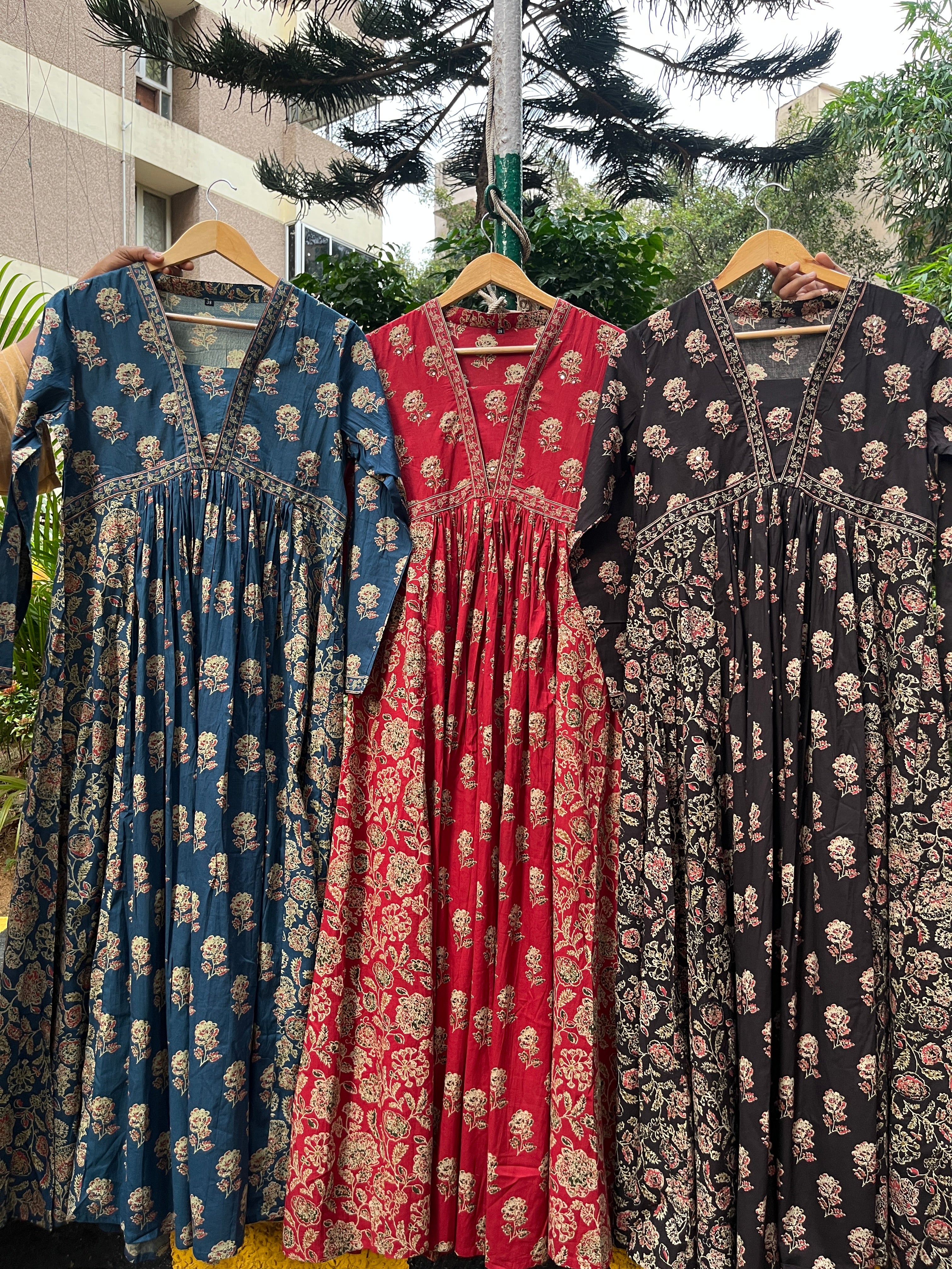 “RASHA” Premium Cotton Ajrakh Print Gown In Casual Wear ✨
