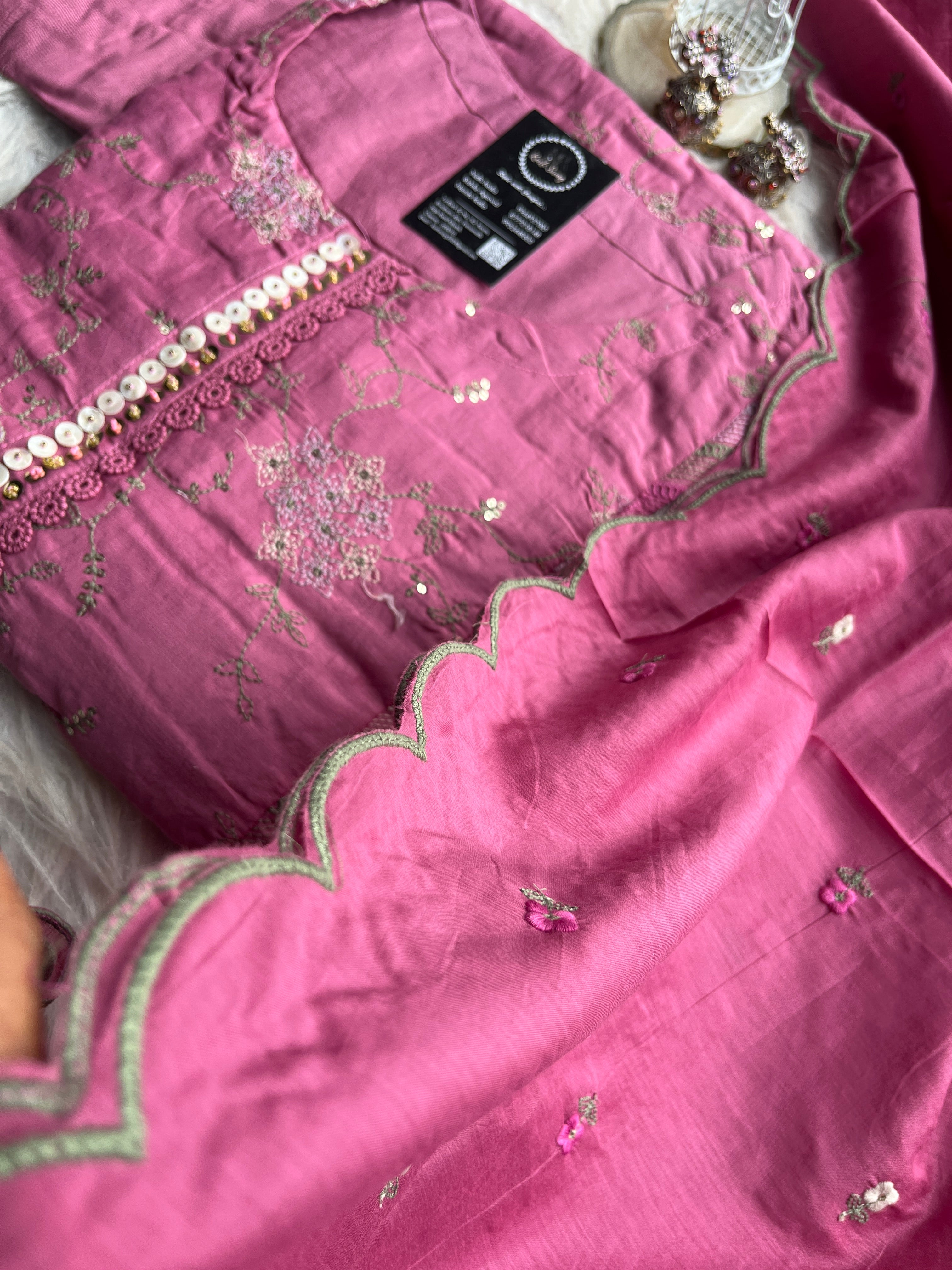 ✅ Premium Mul Chanderi Suit With Thread Work AllOver The Kurta With Sequence Detailing