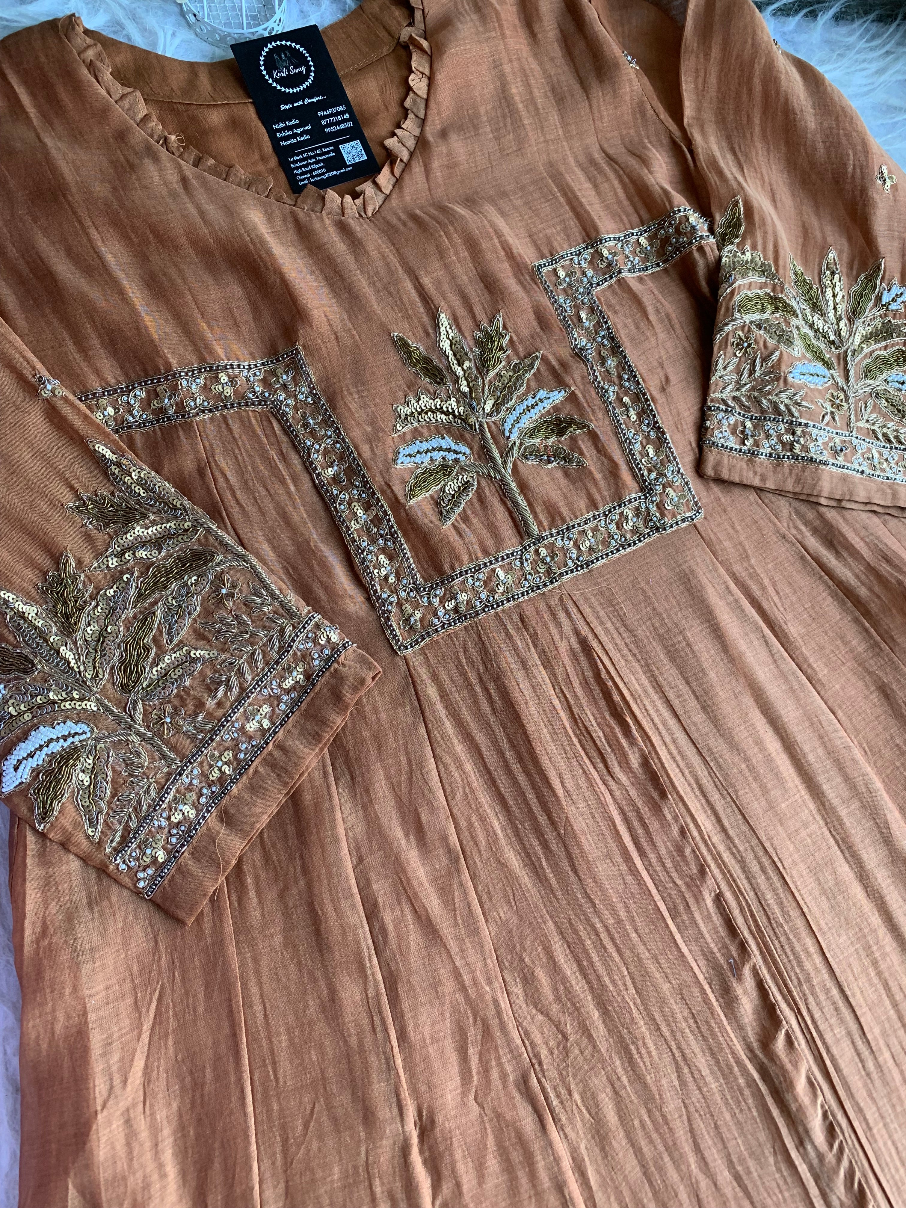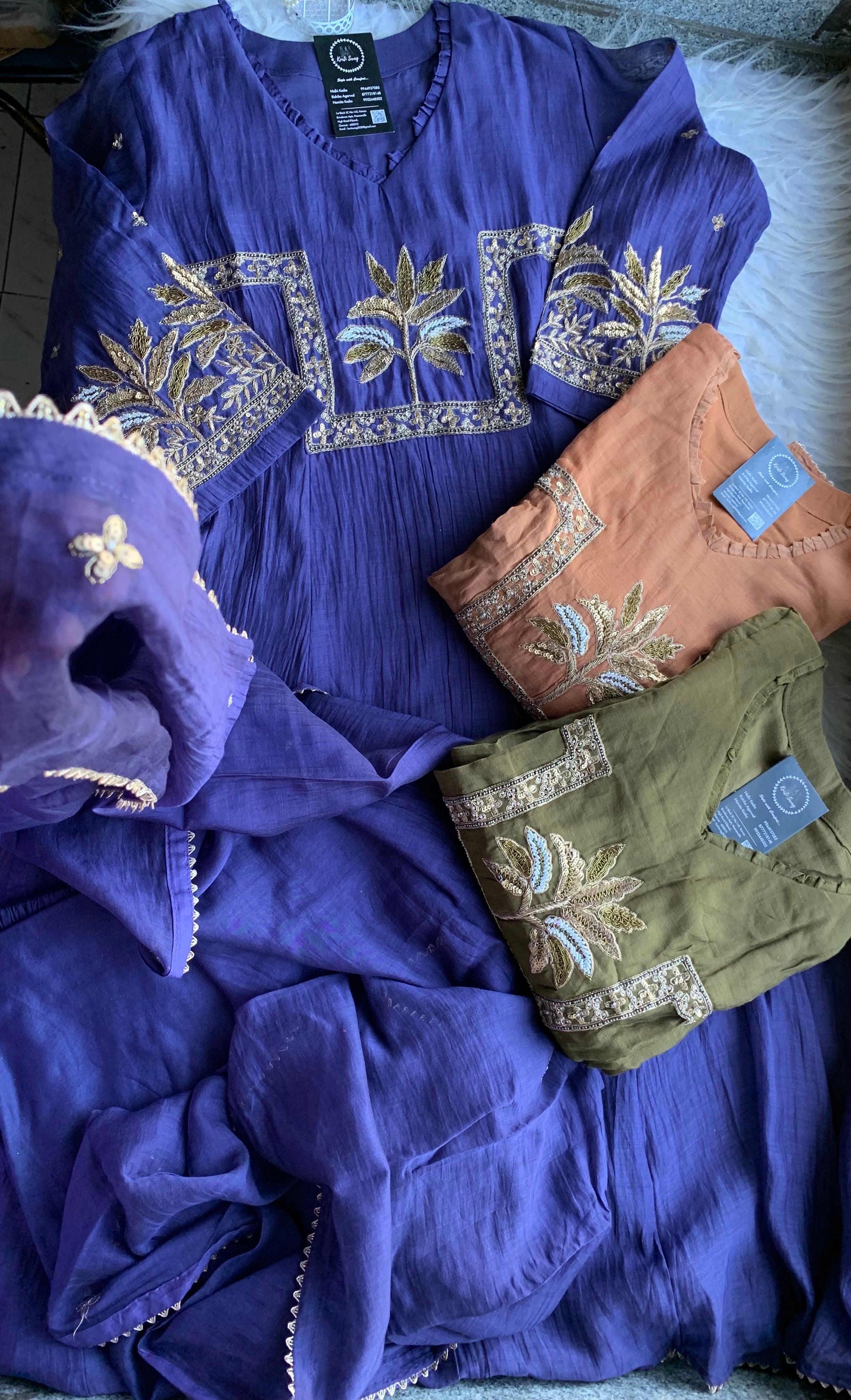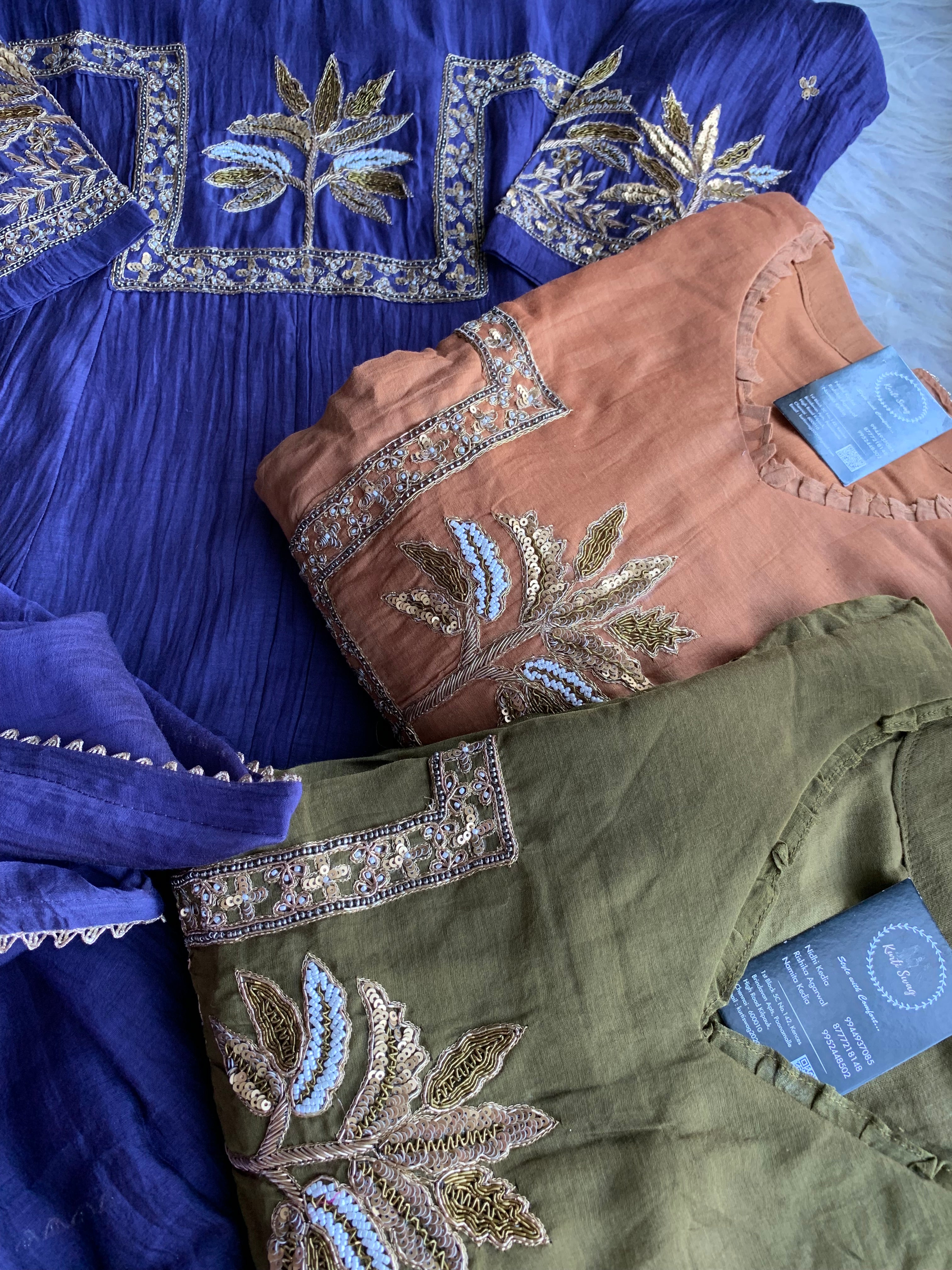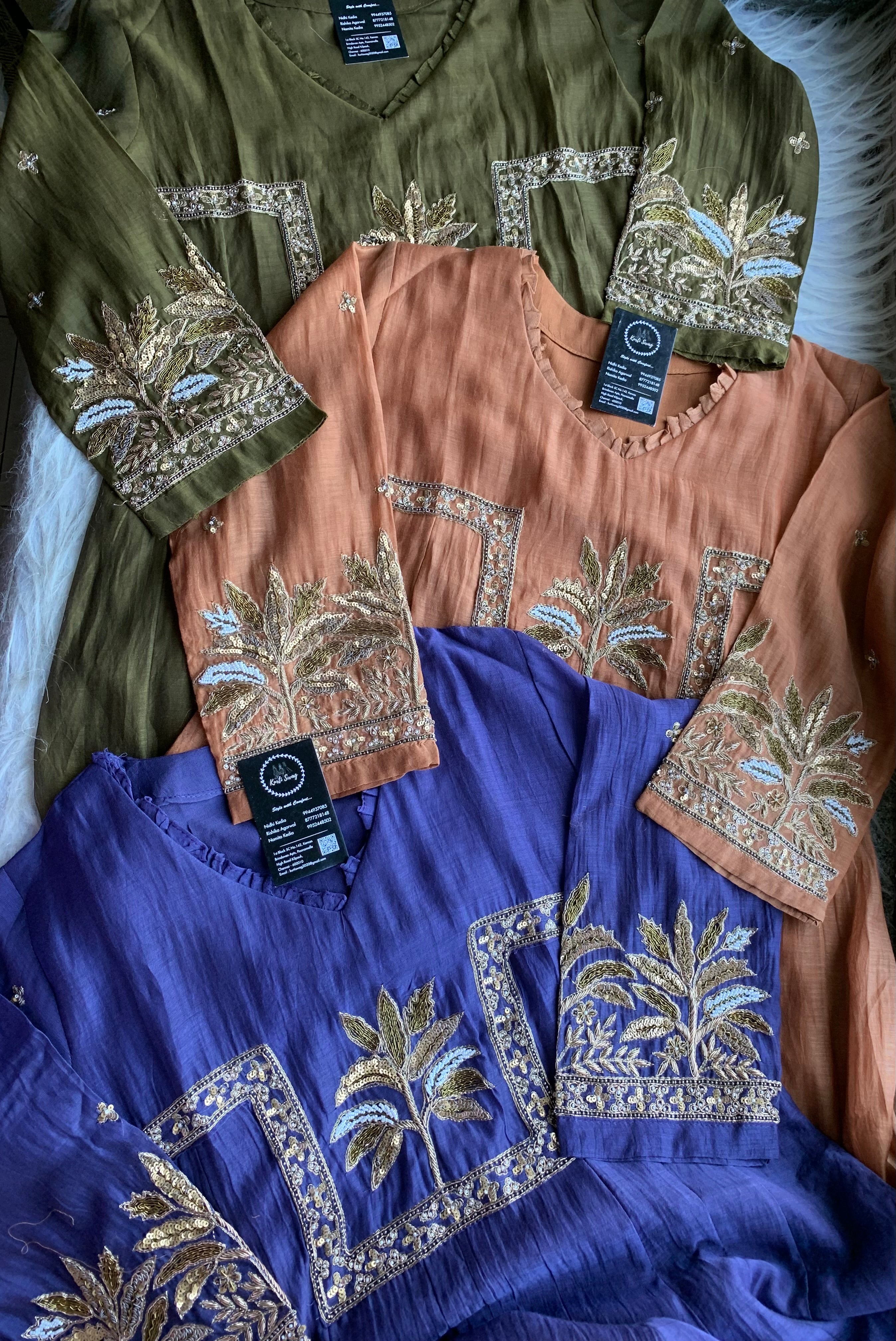 ✅ Premium Mul Chanderi Kurti With Heavy Zardosi Handwork On The Yoke Of The Kurti