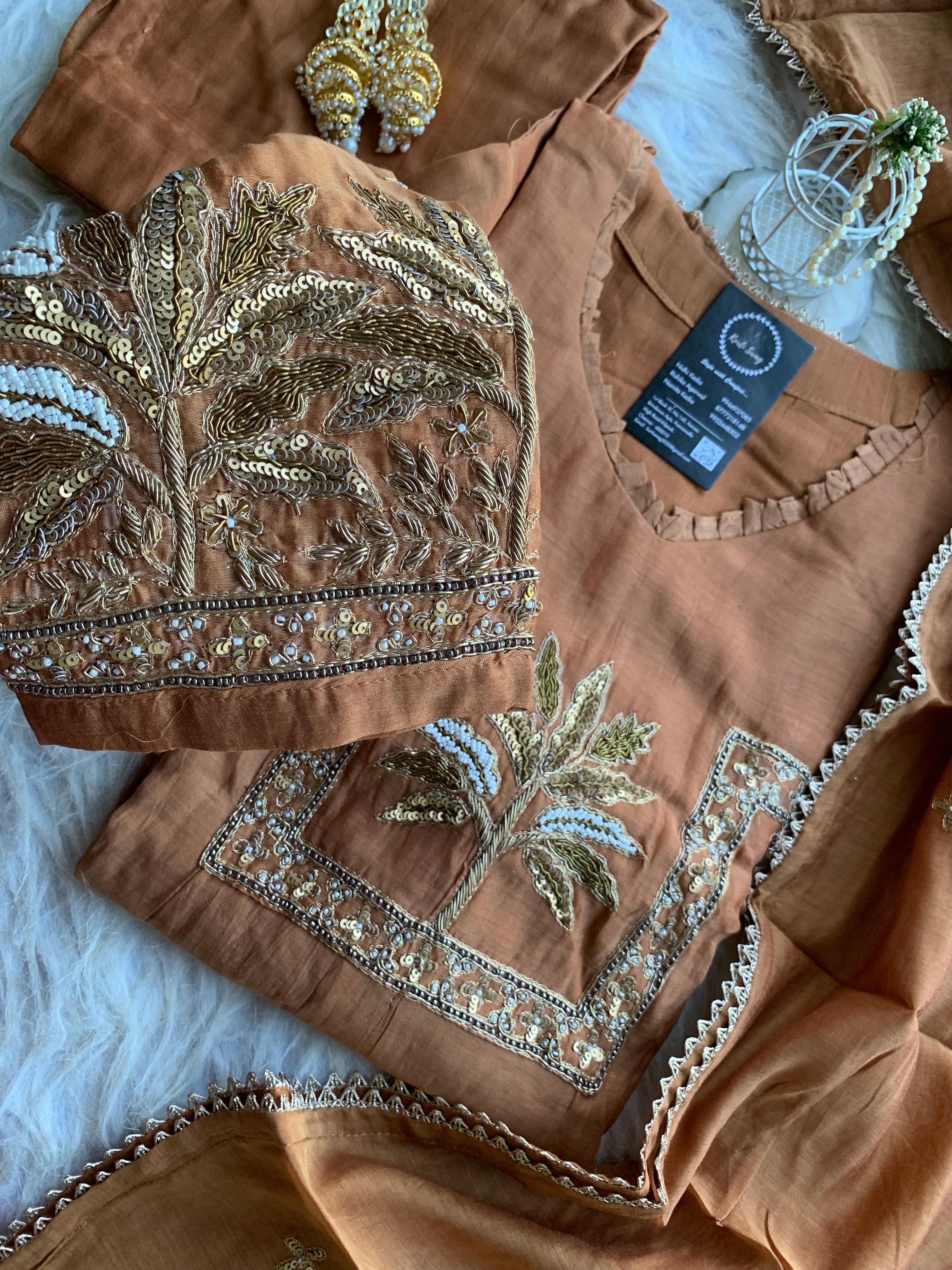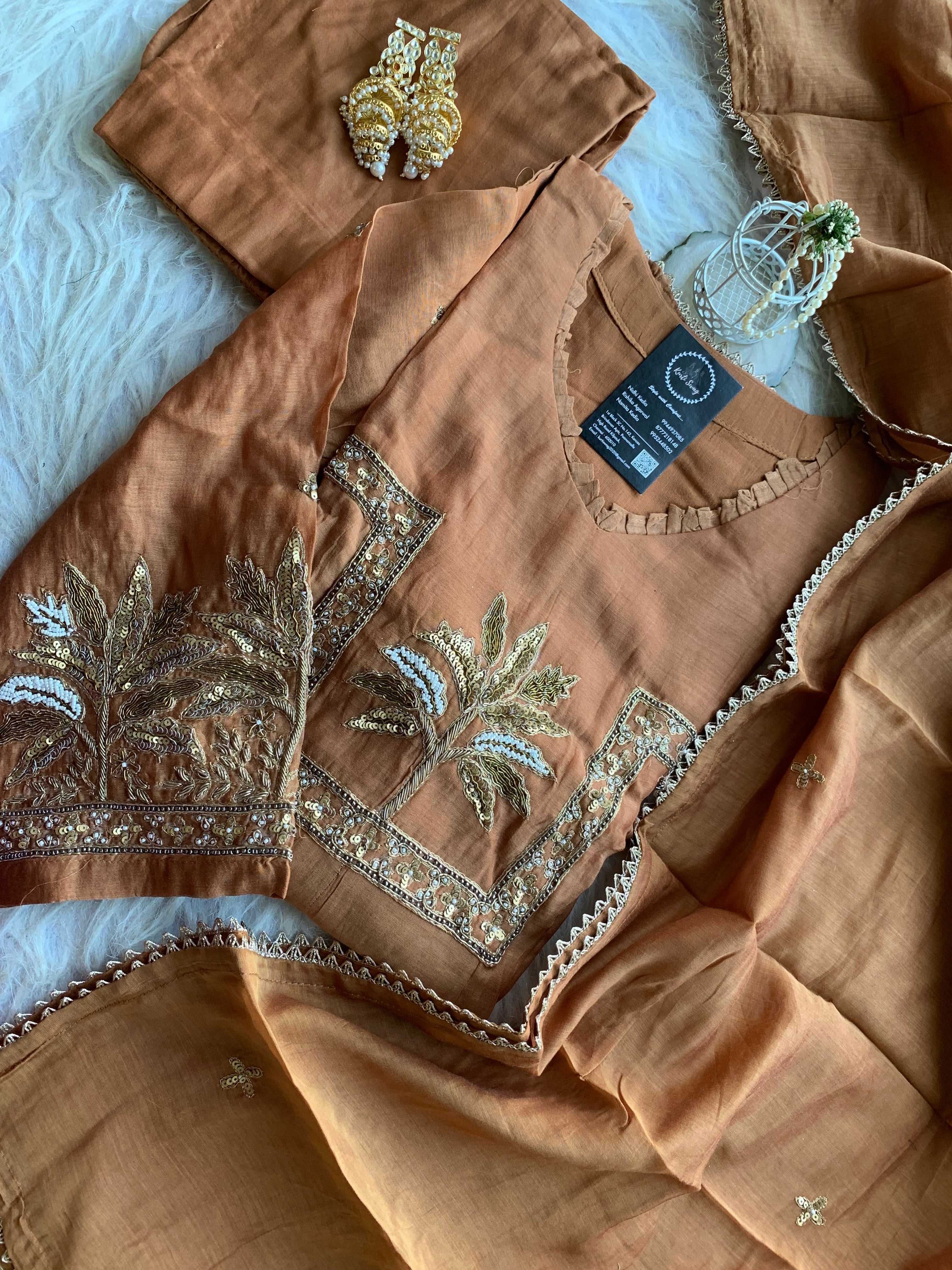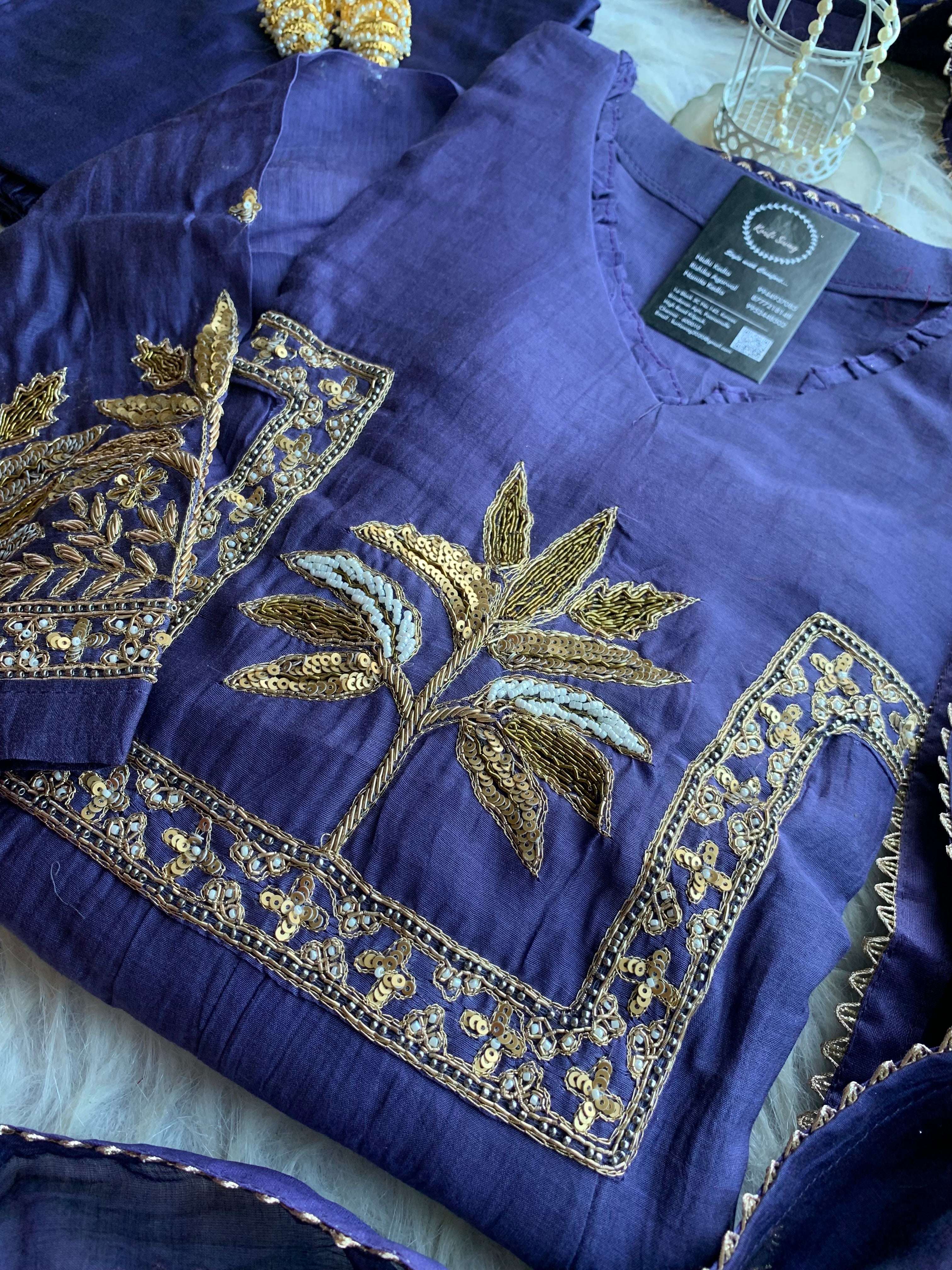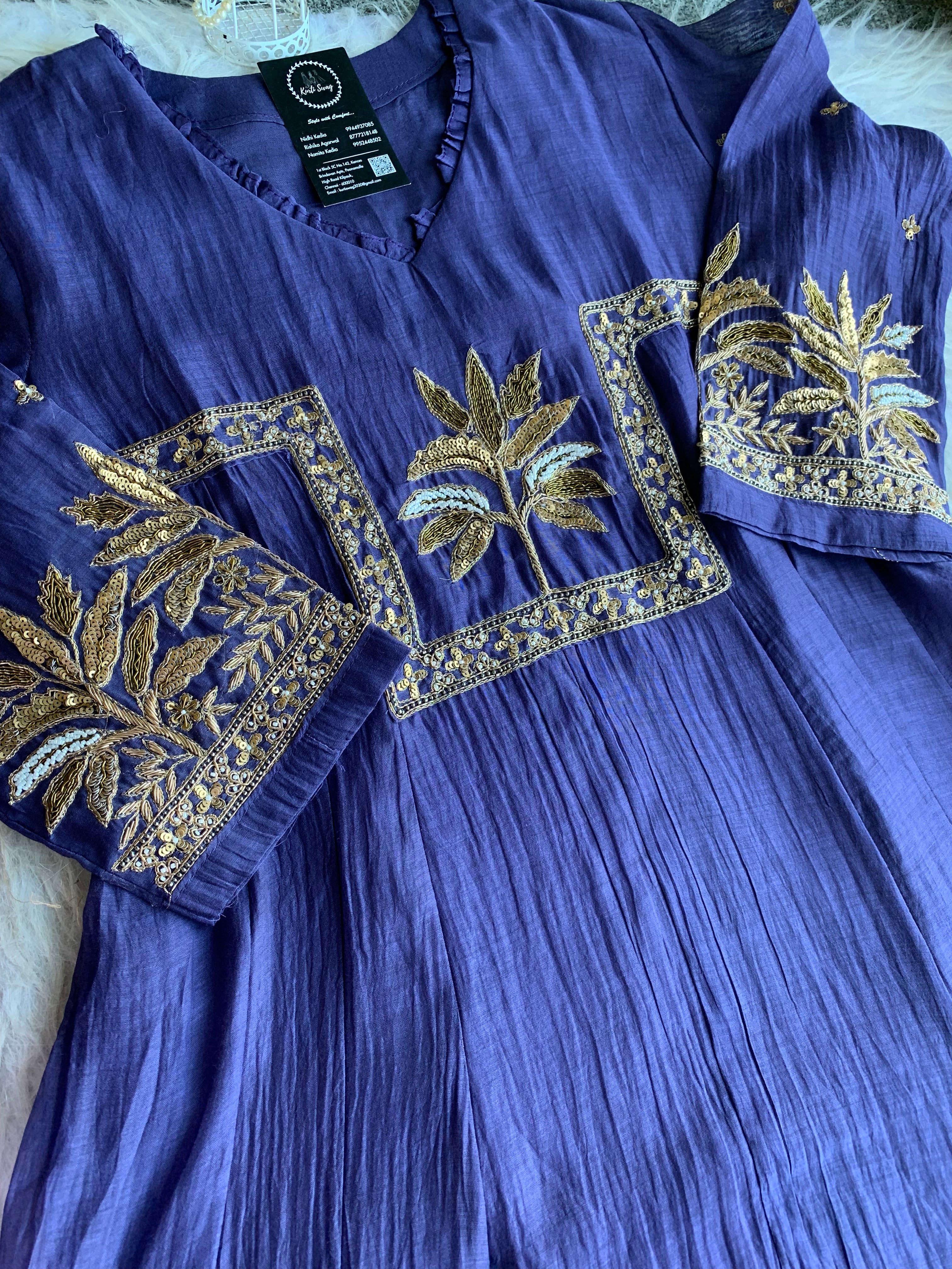 ✅ Premium Mul Chanderi Kurti With Heavy Zardosi Handwork On The Yoke Of The Kurti