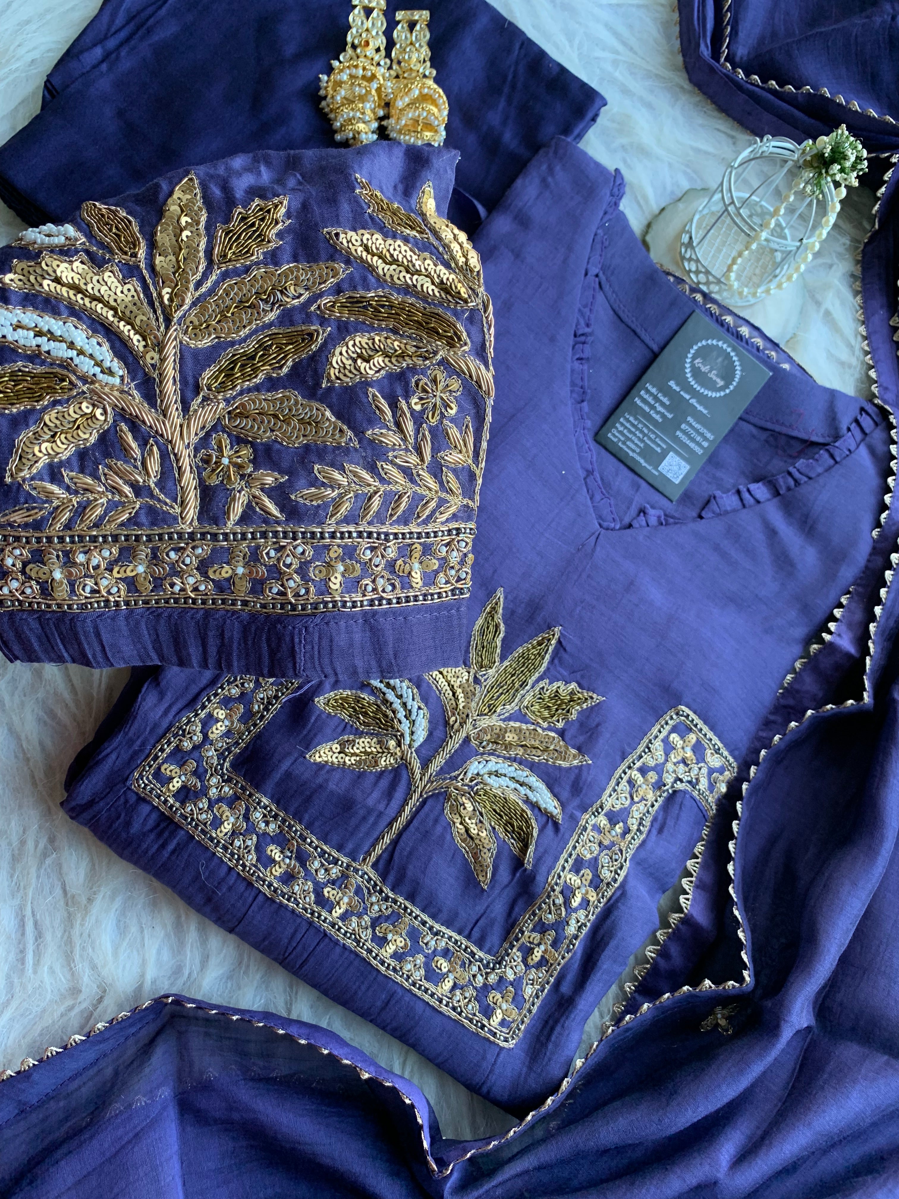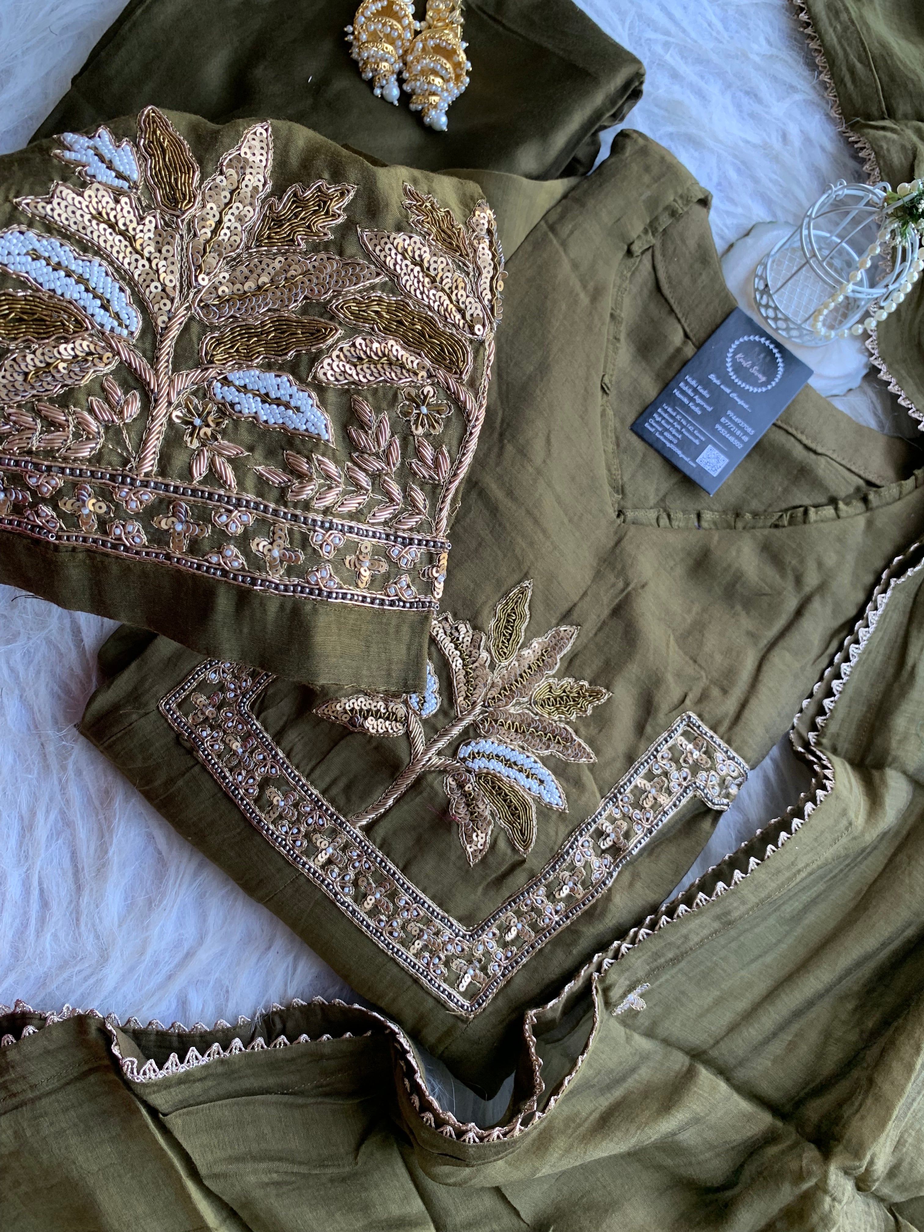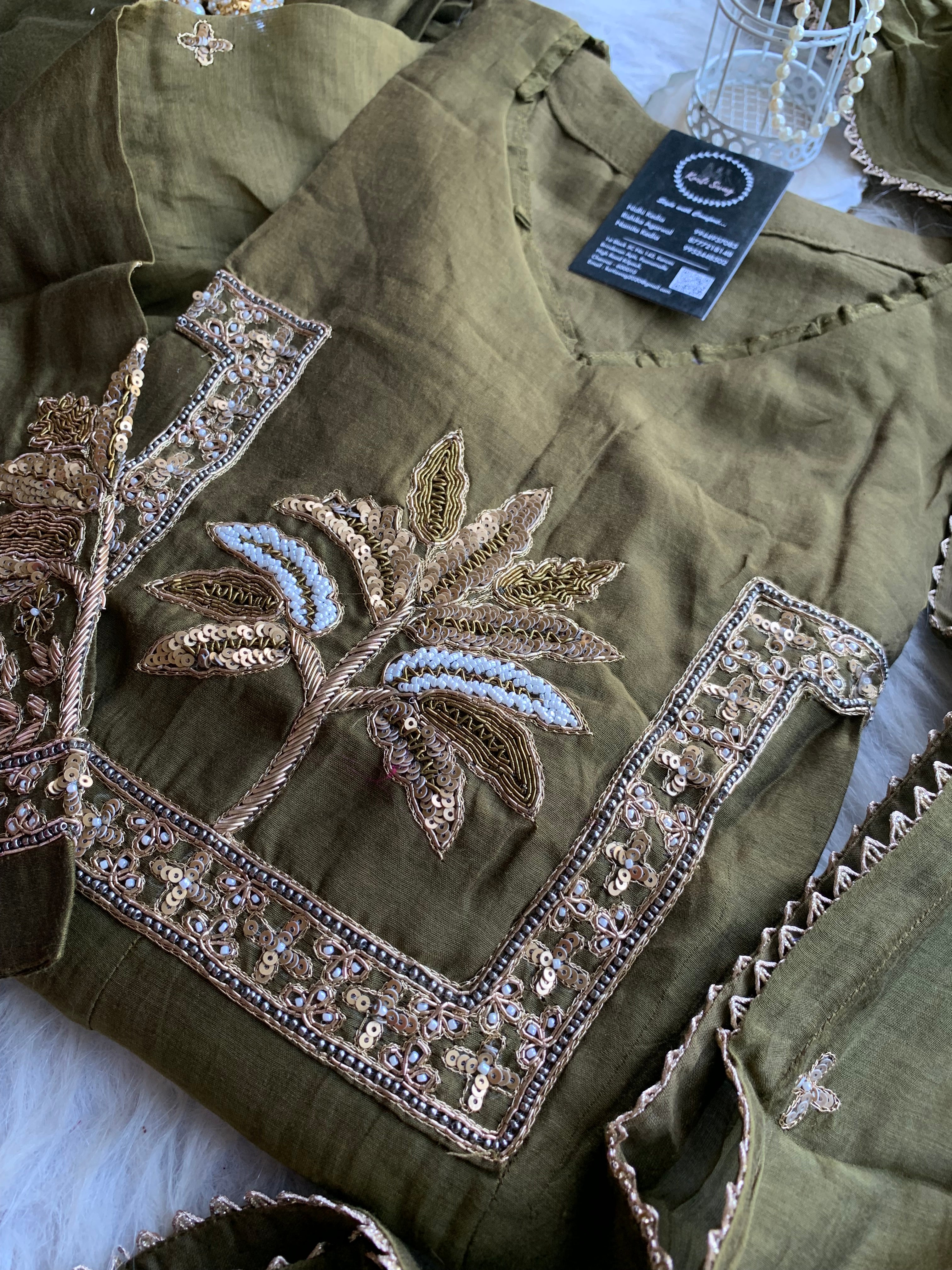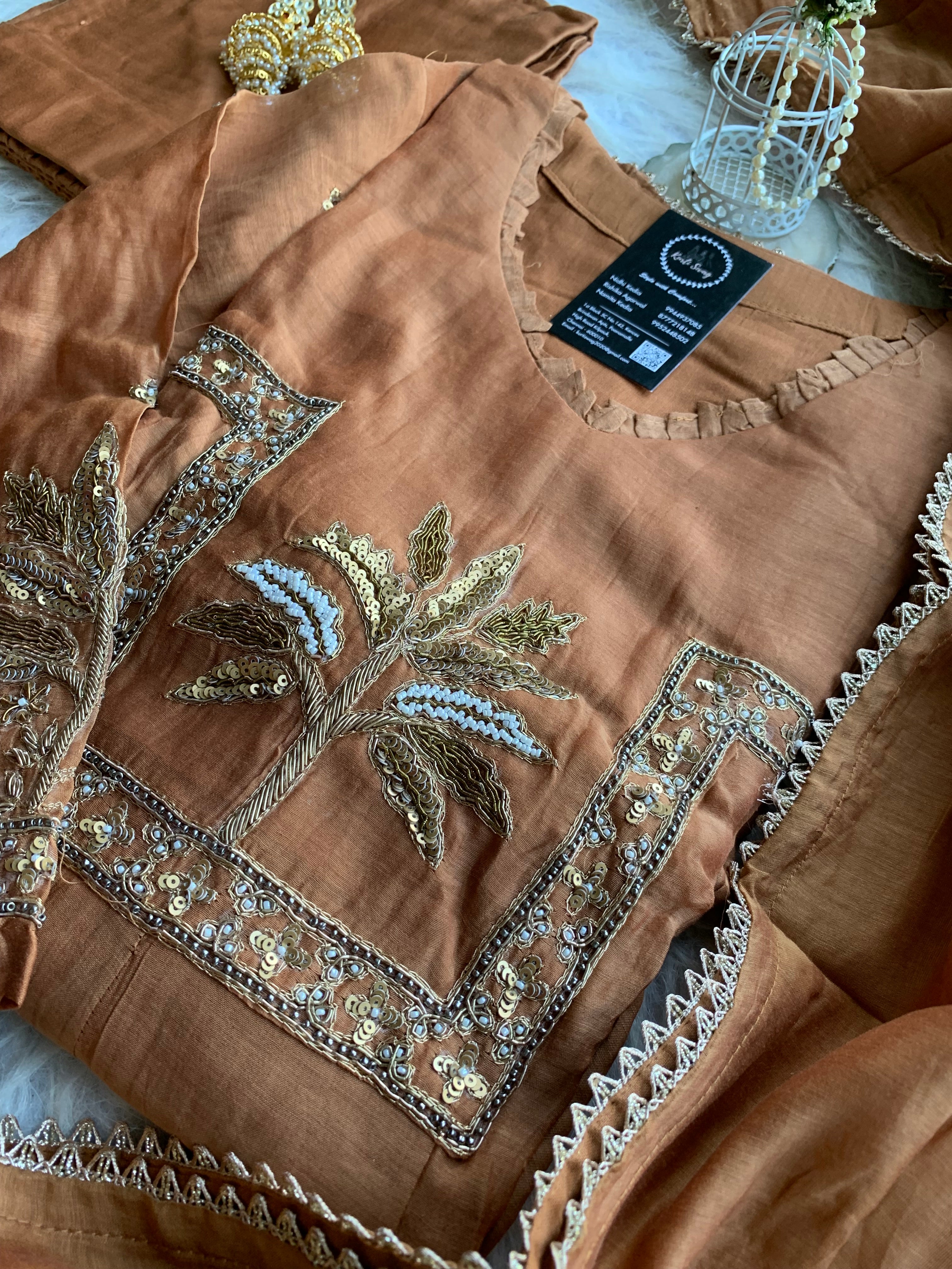 ✅ Premium Mul Chanderi Kurti With Heavy Zardosi Handwork On The Yoke Of The Kurti