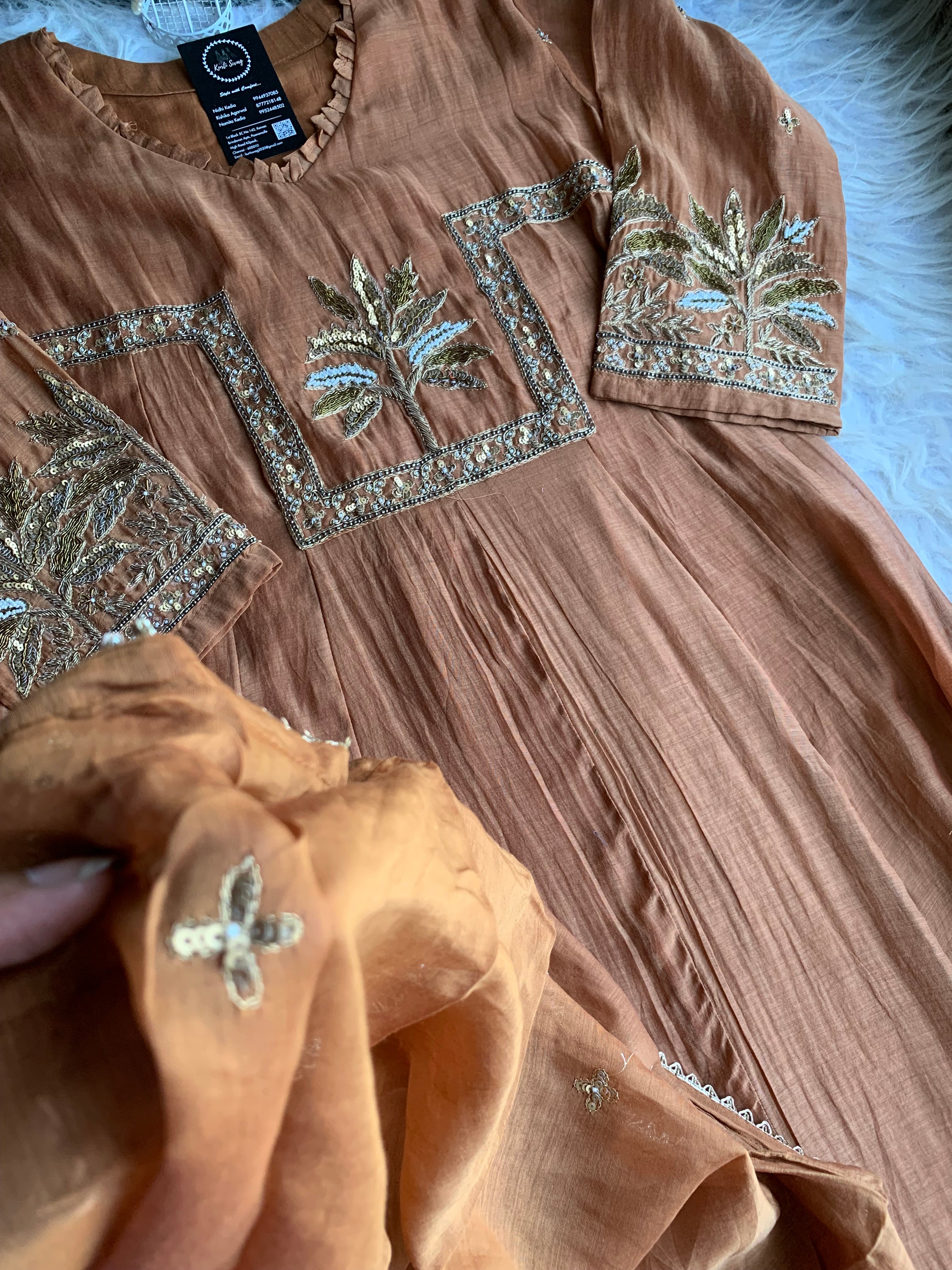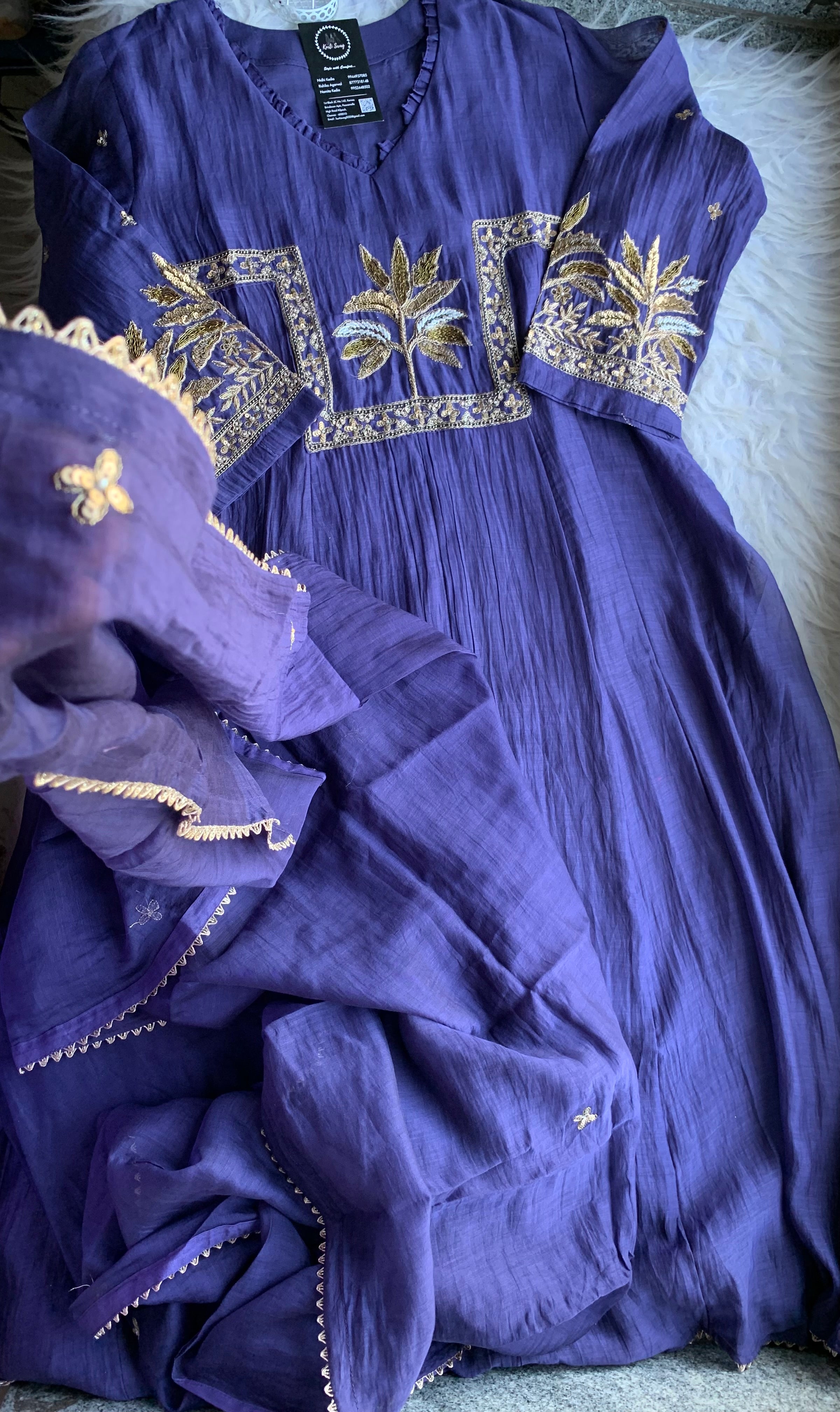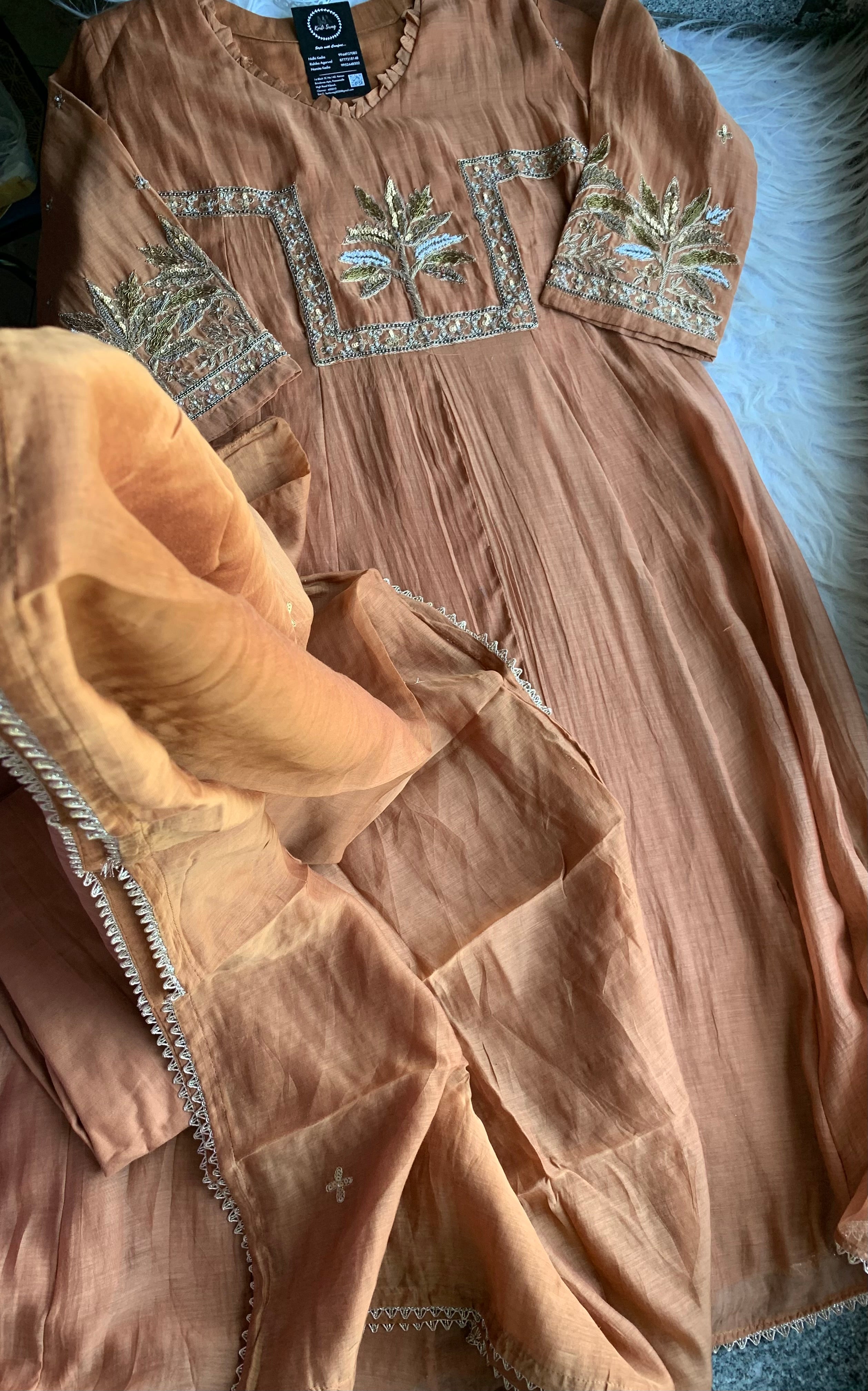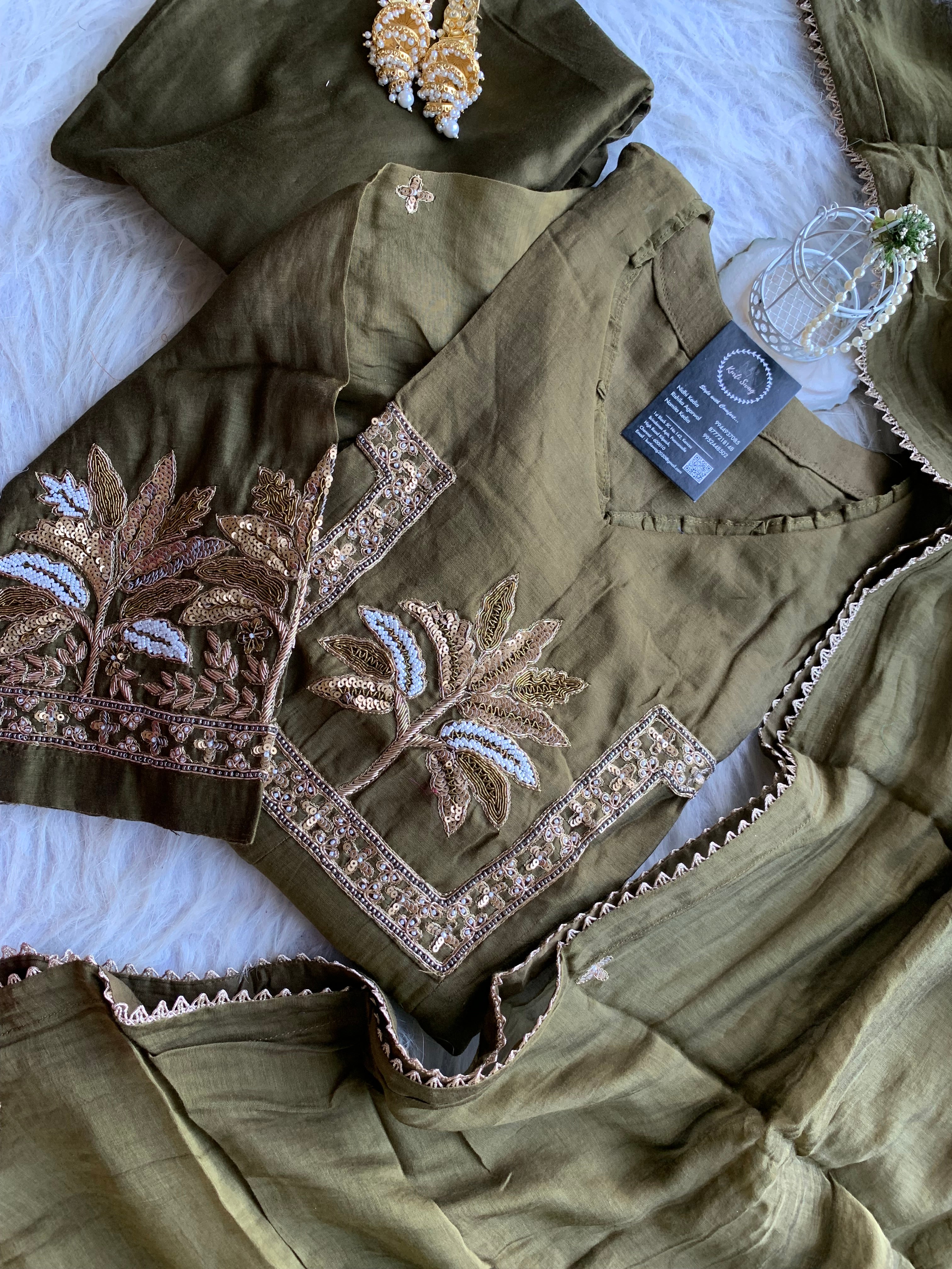 ✅ Premium Mul Chanderi Kurti With Heavy Zardosi Handwork On The Yoke Of The Kurti