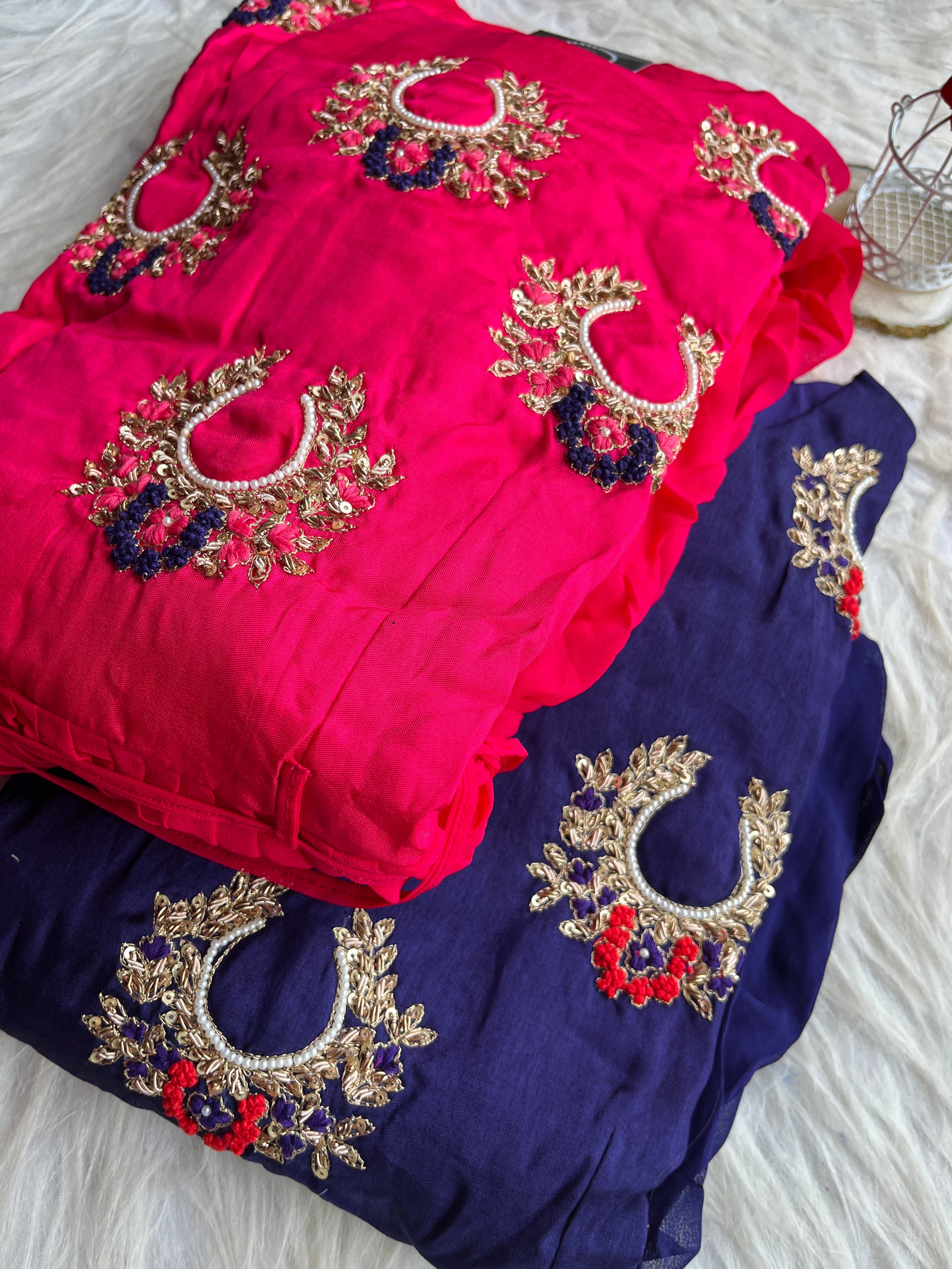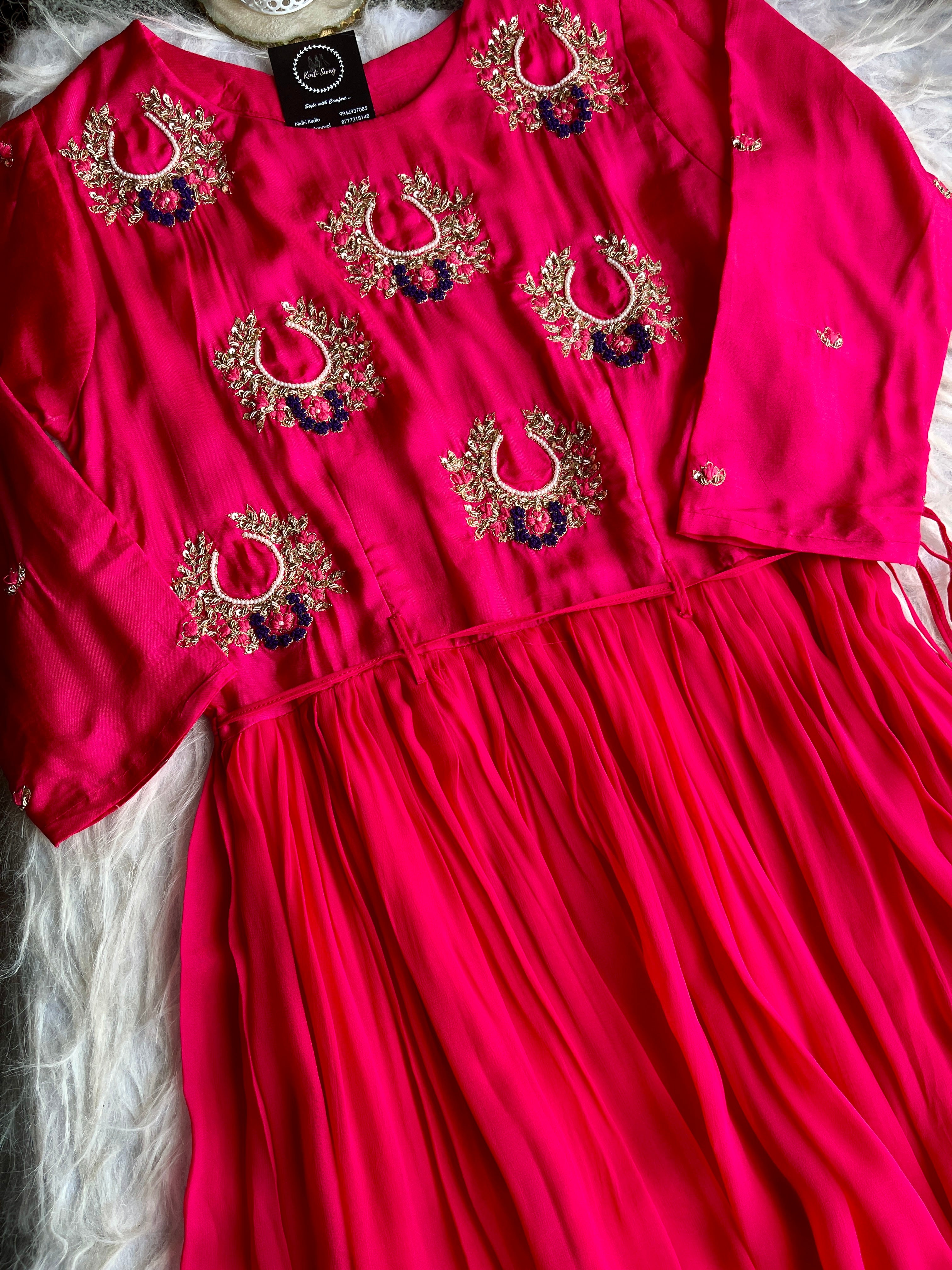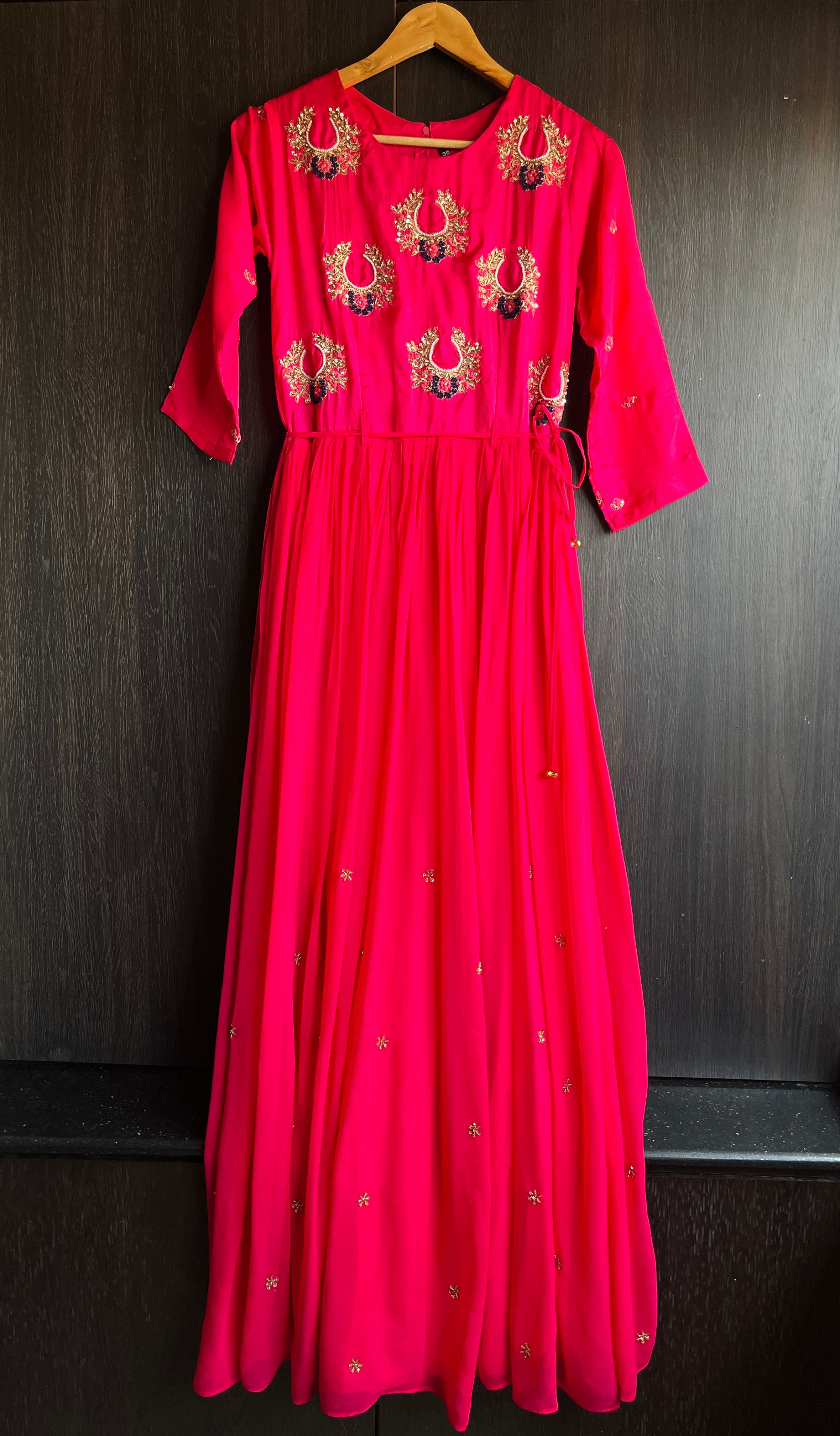 ✅ Georgette Floor Length Designer Gown With Zardosi Handwork On The Yoke.