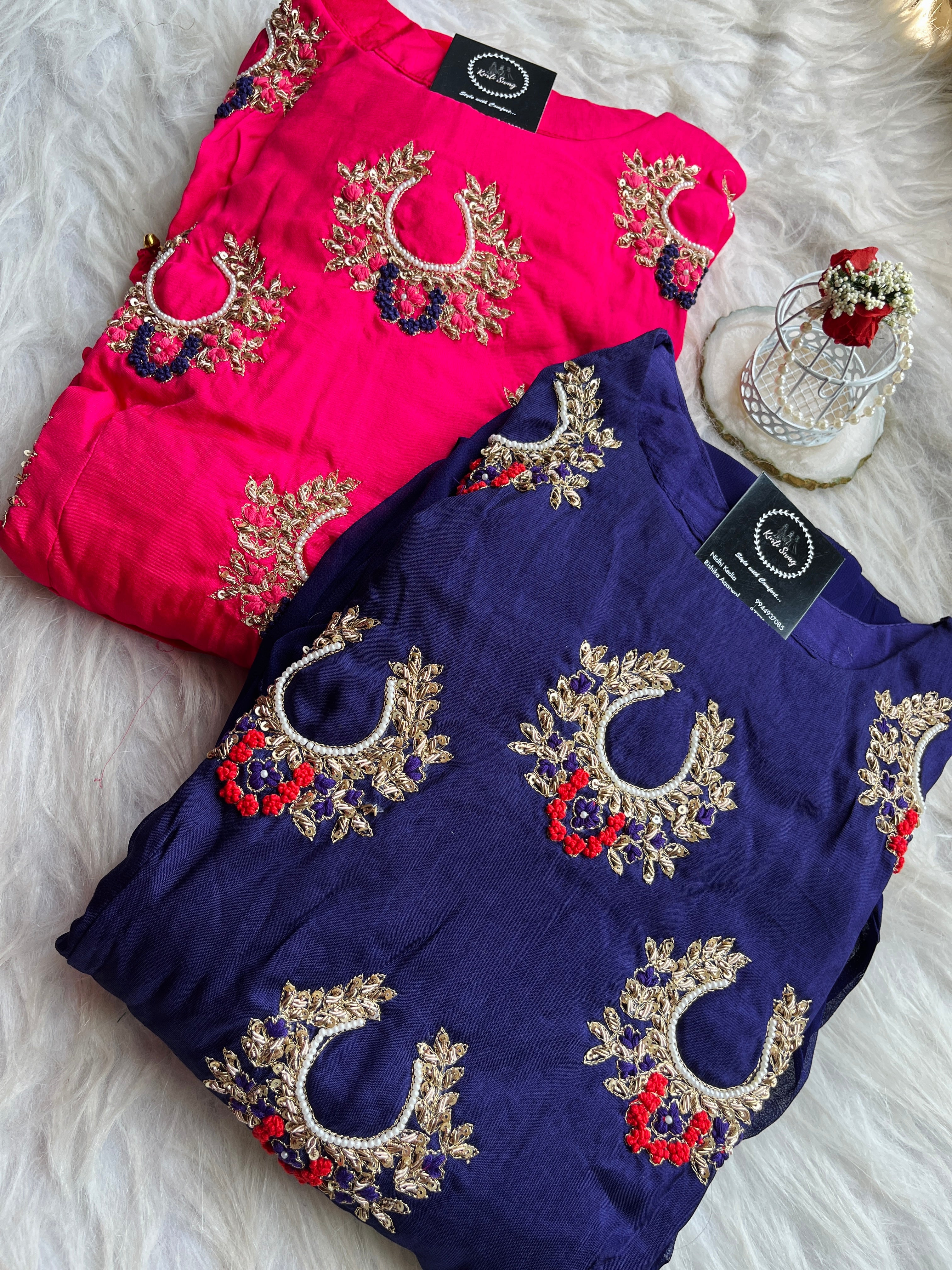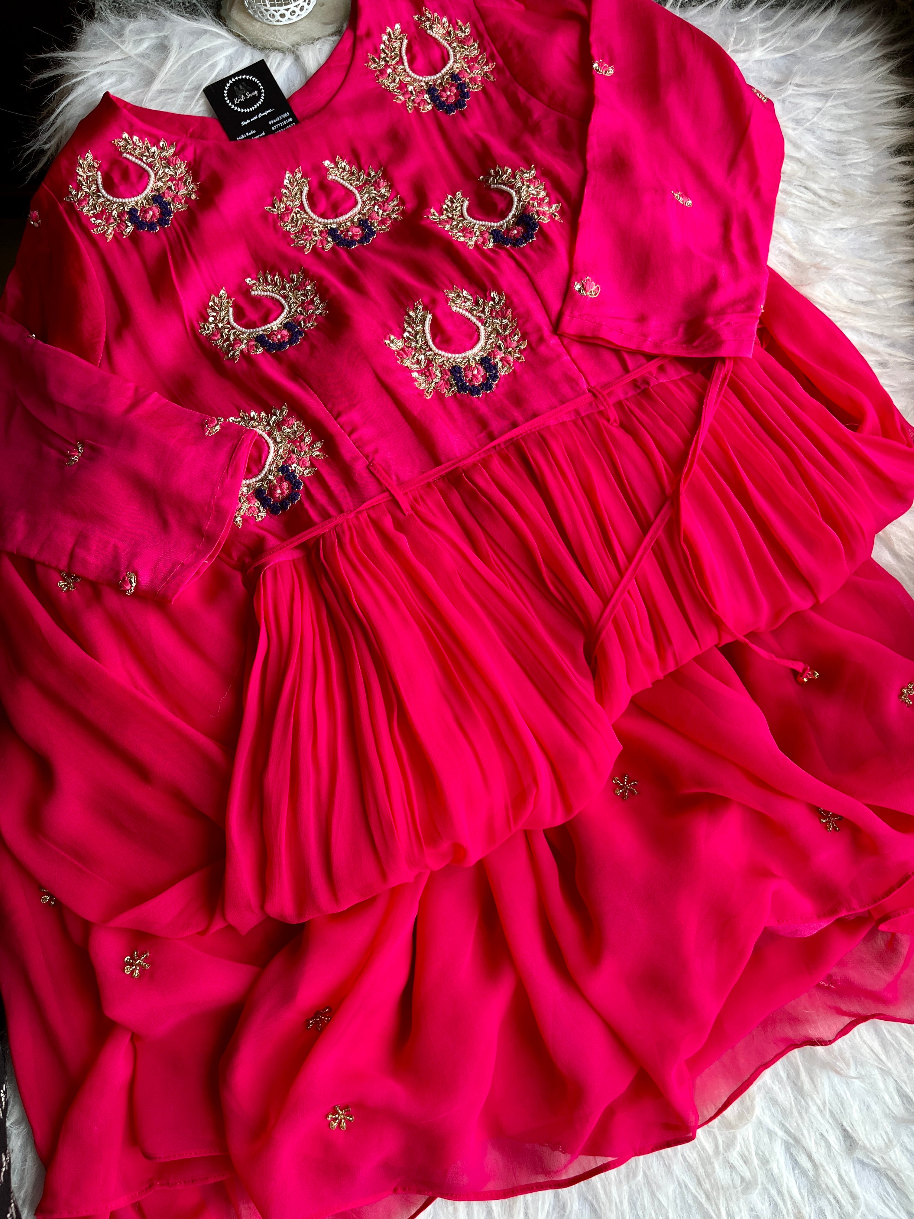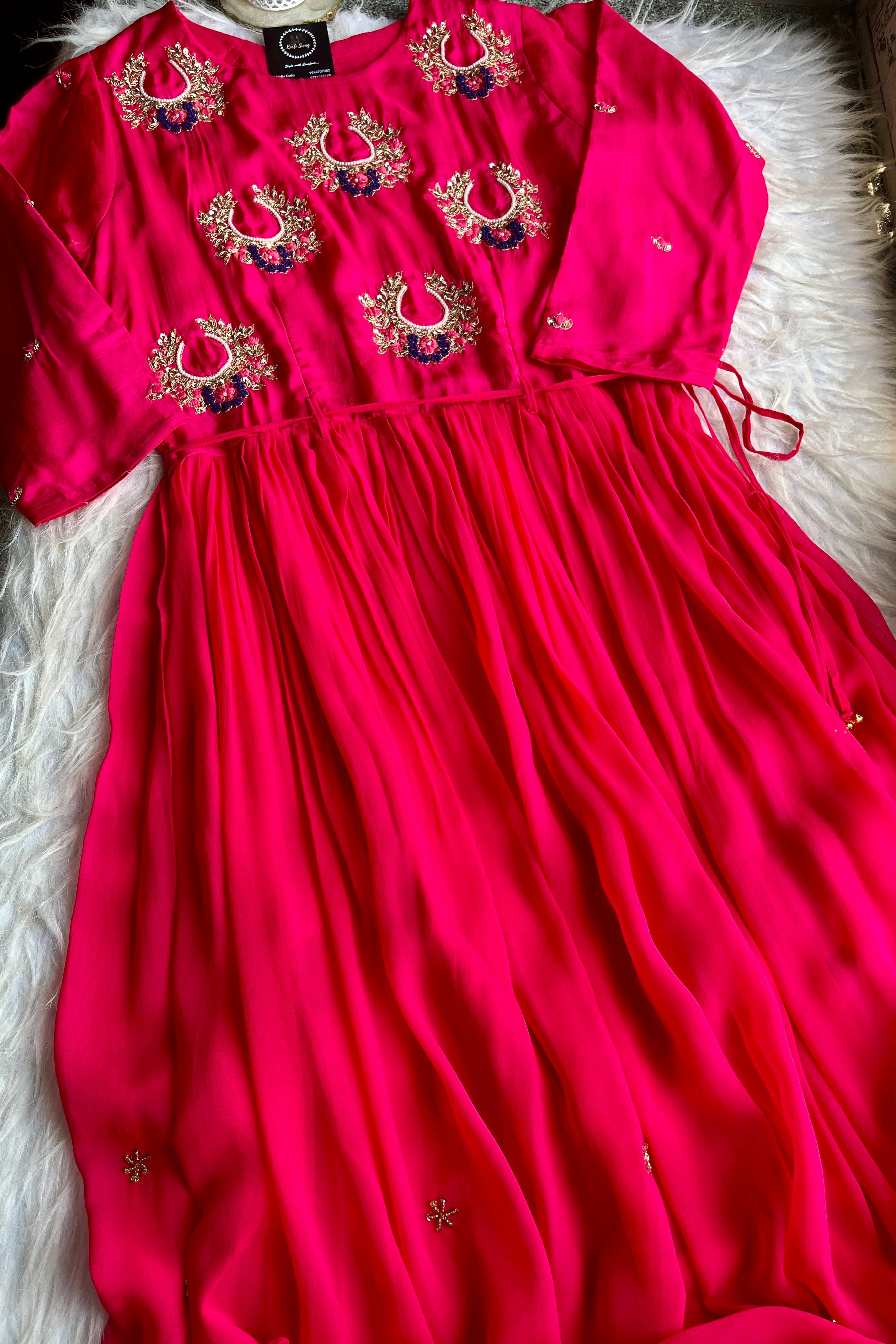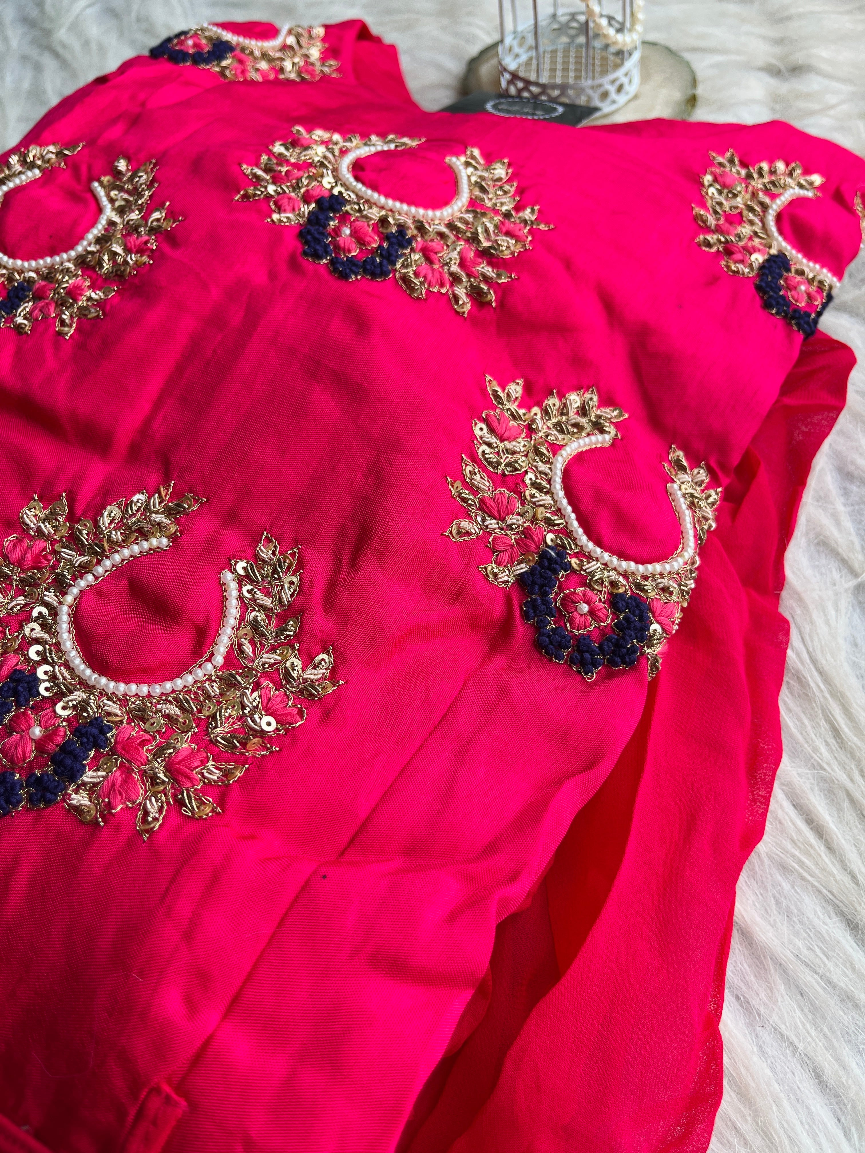 ✅ Georgette Floor Length Designer Gown With Zardosi Handwork On The Yoke.