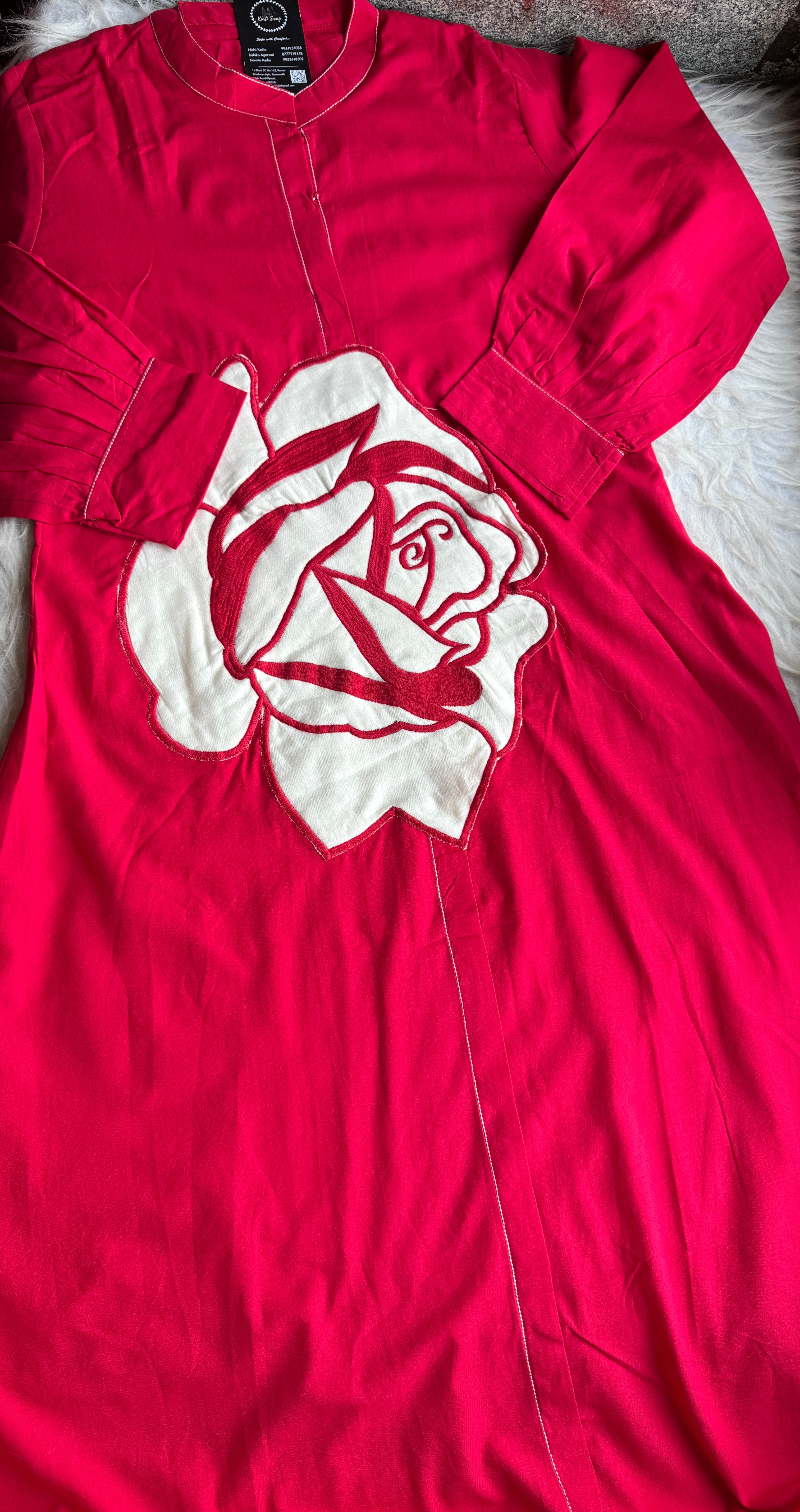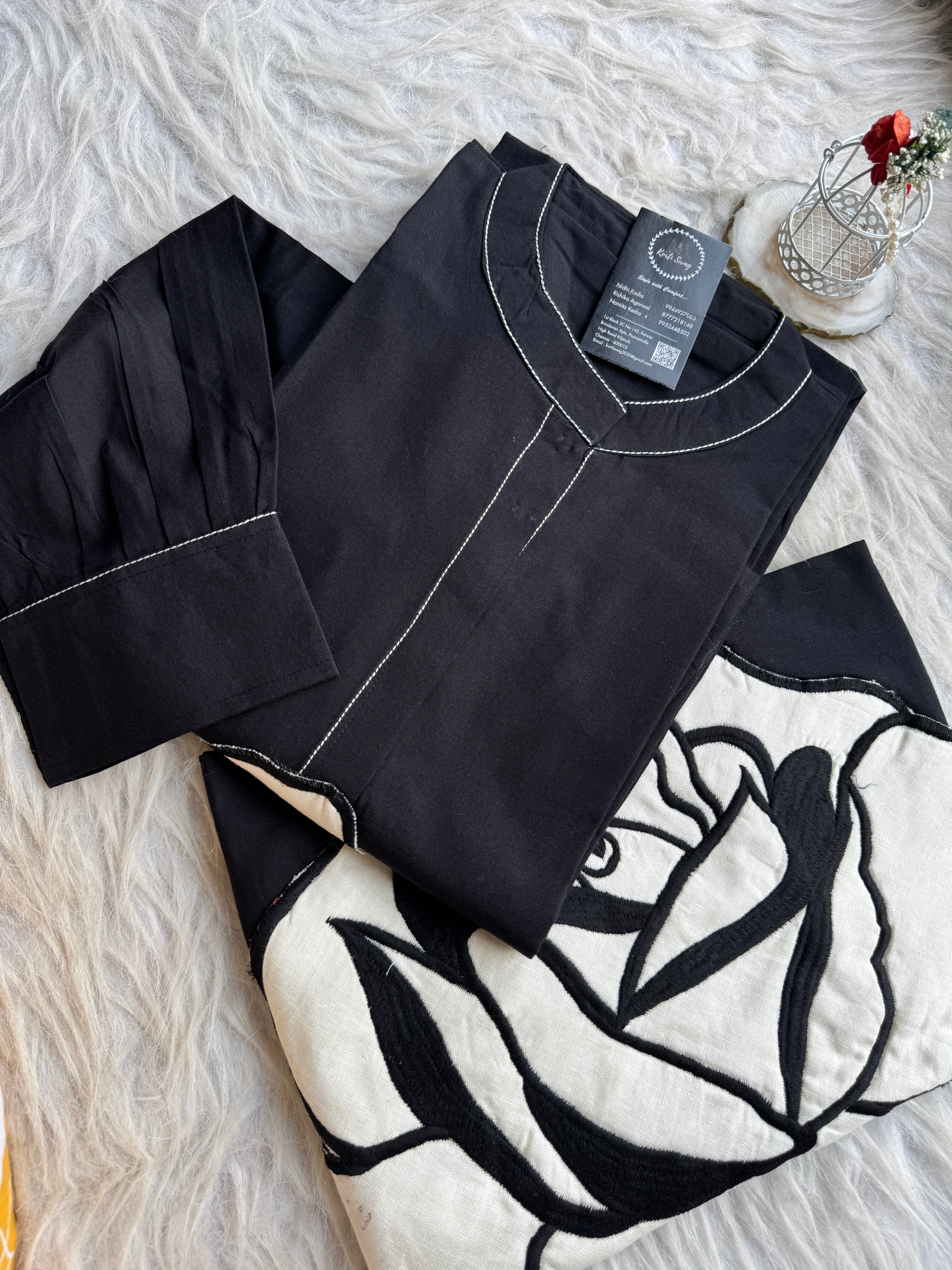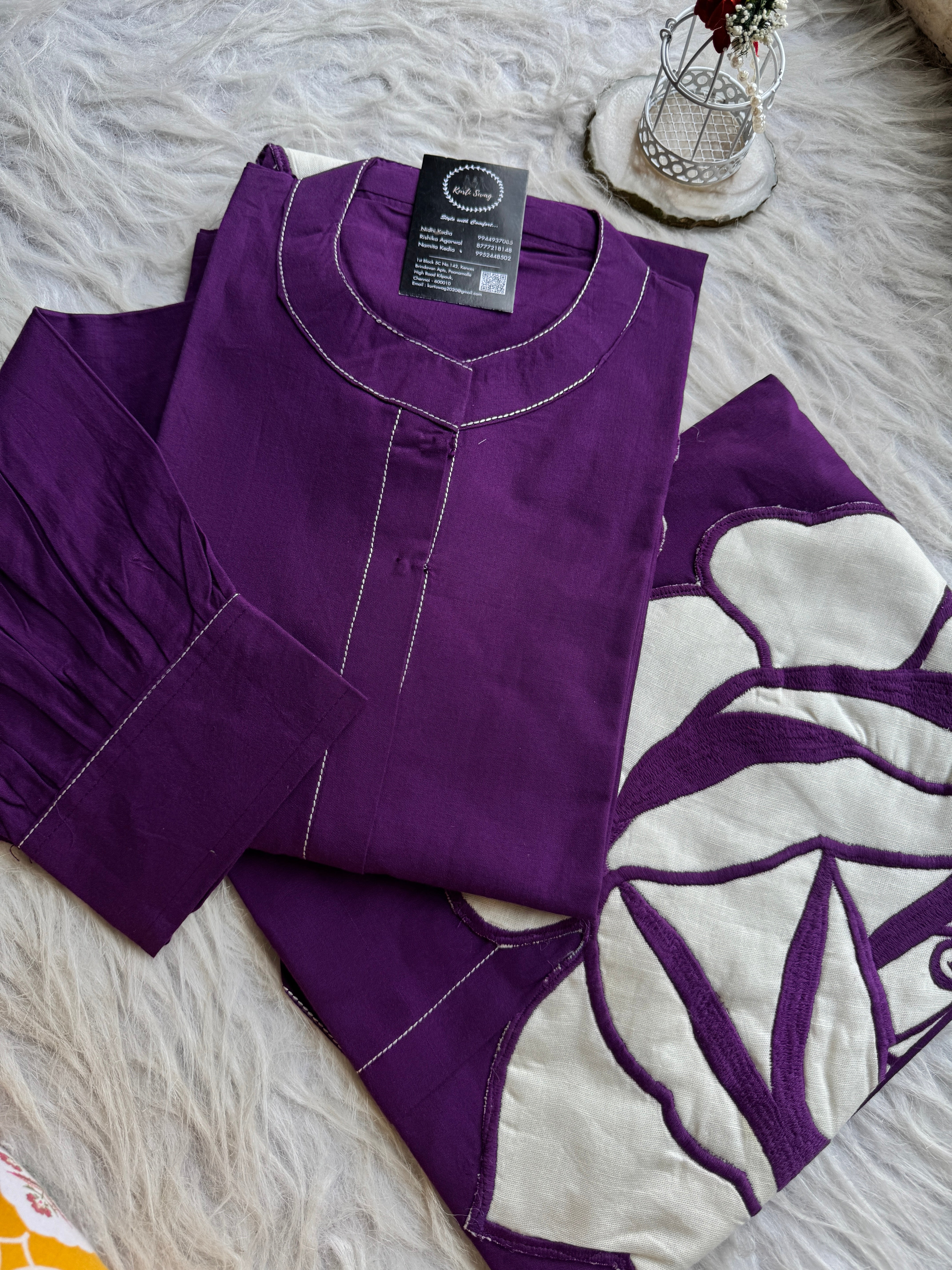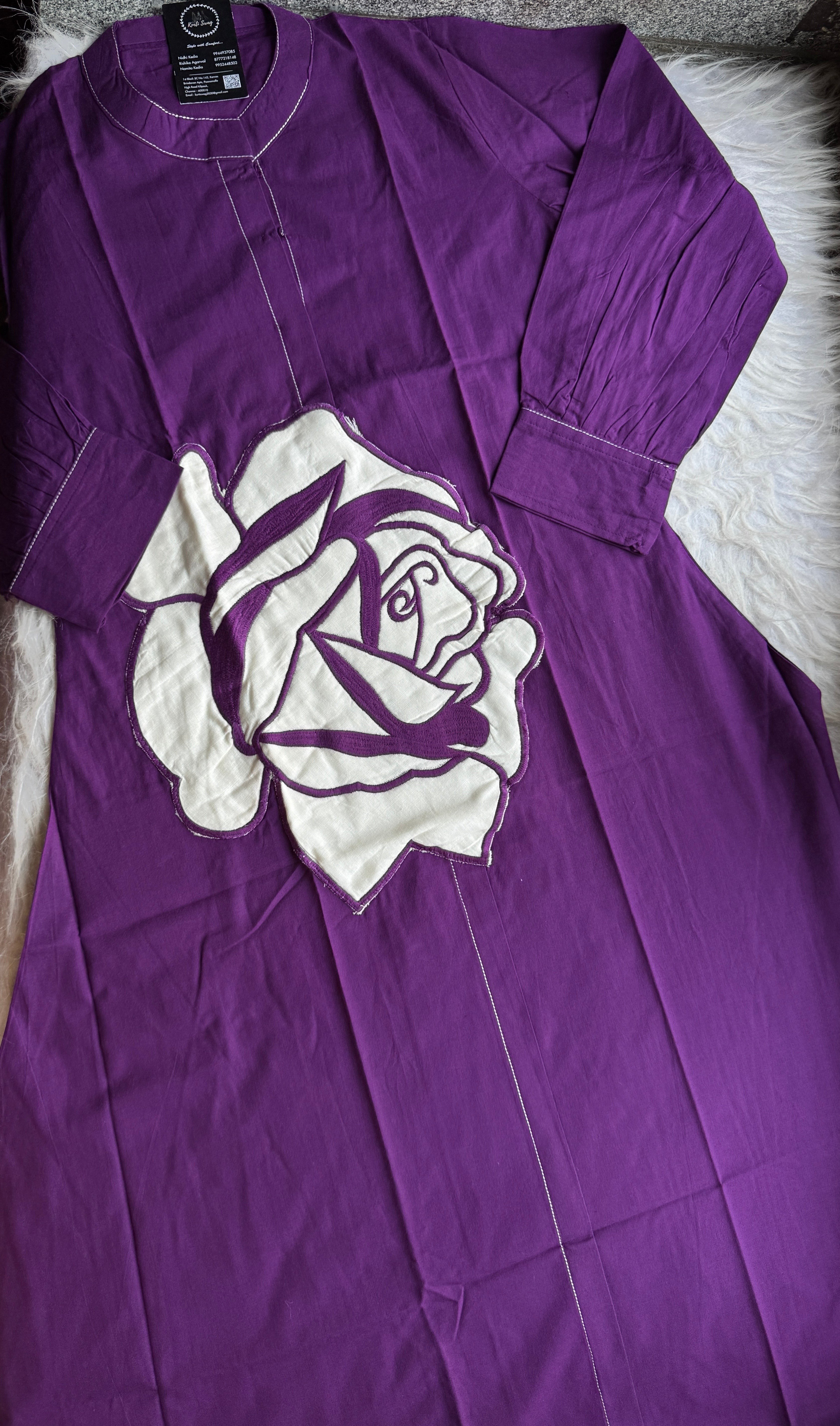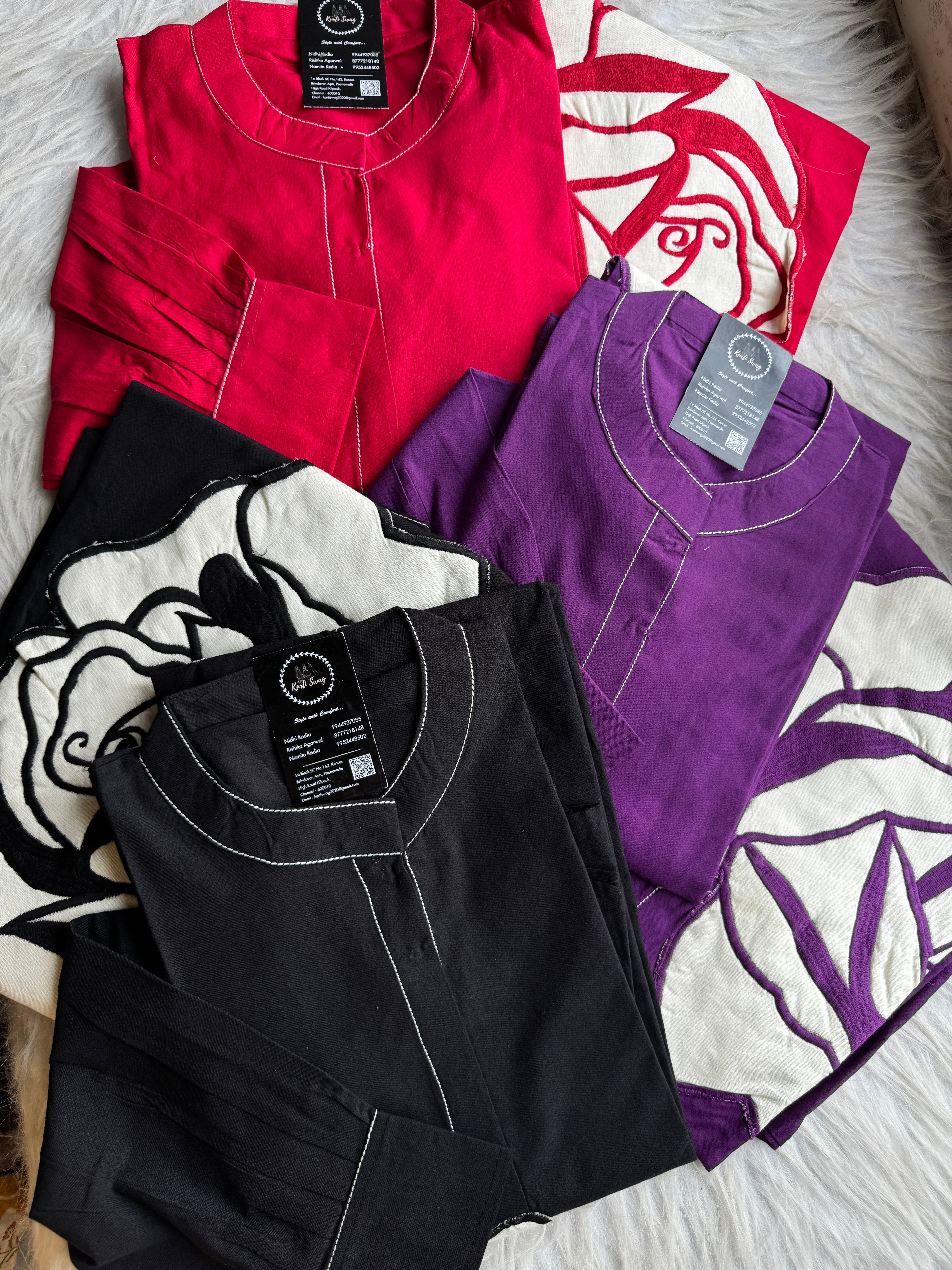 ✅ Pure Cotton A Line Kurta With Elegant Applique Work
