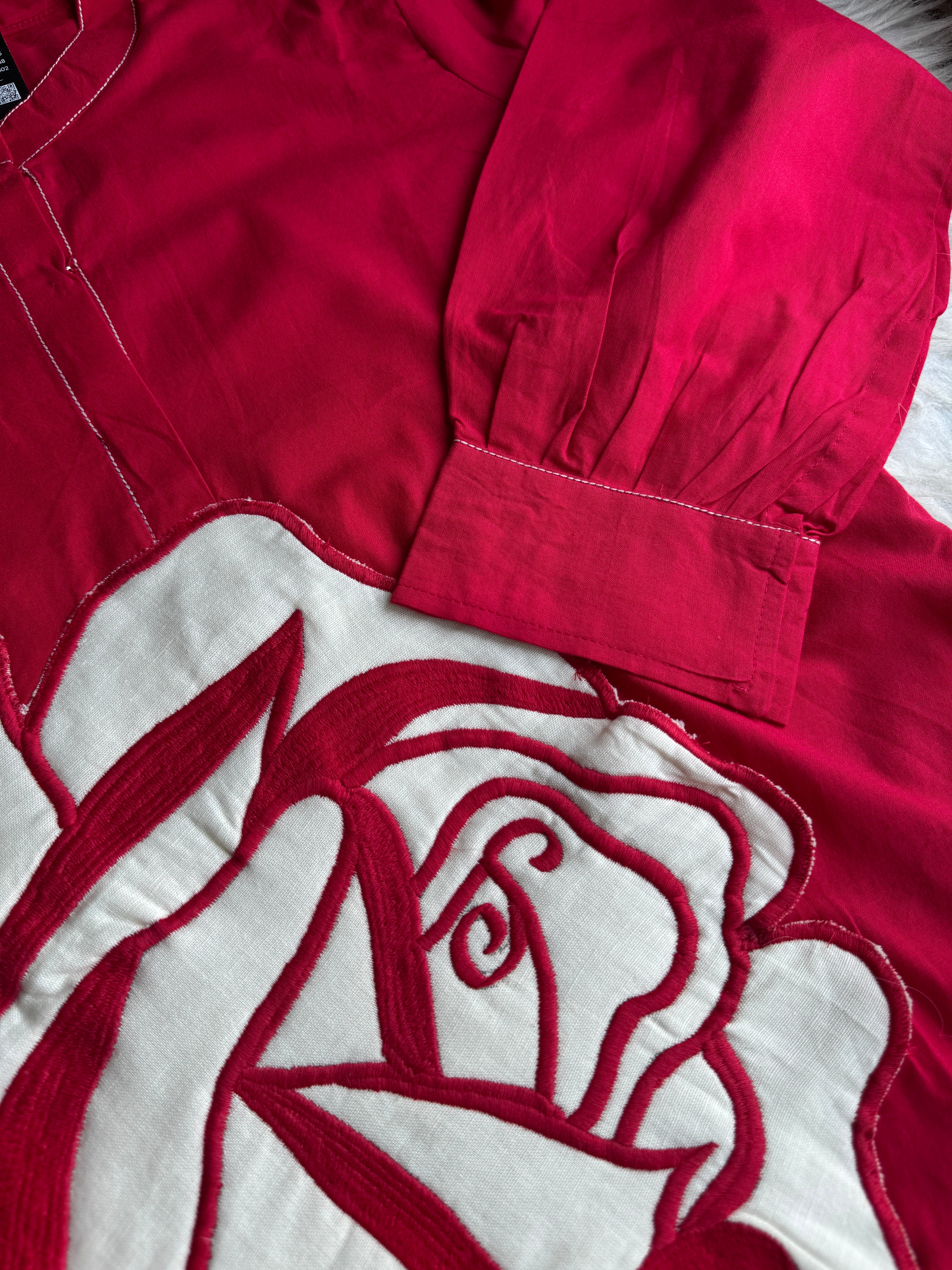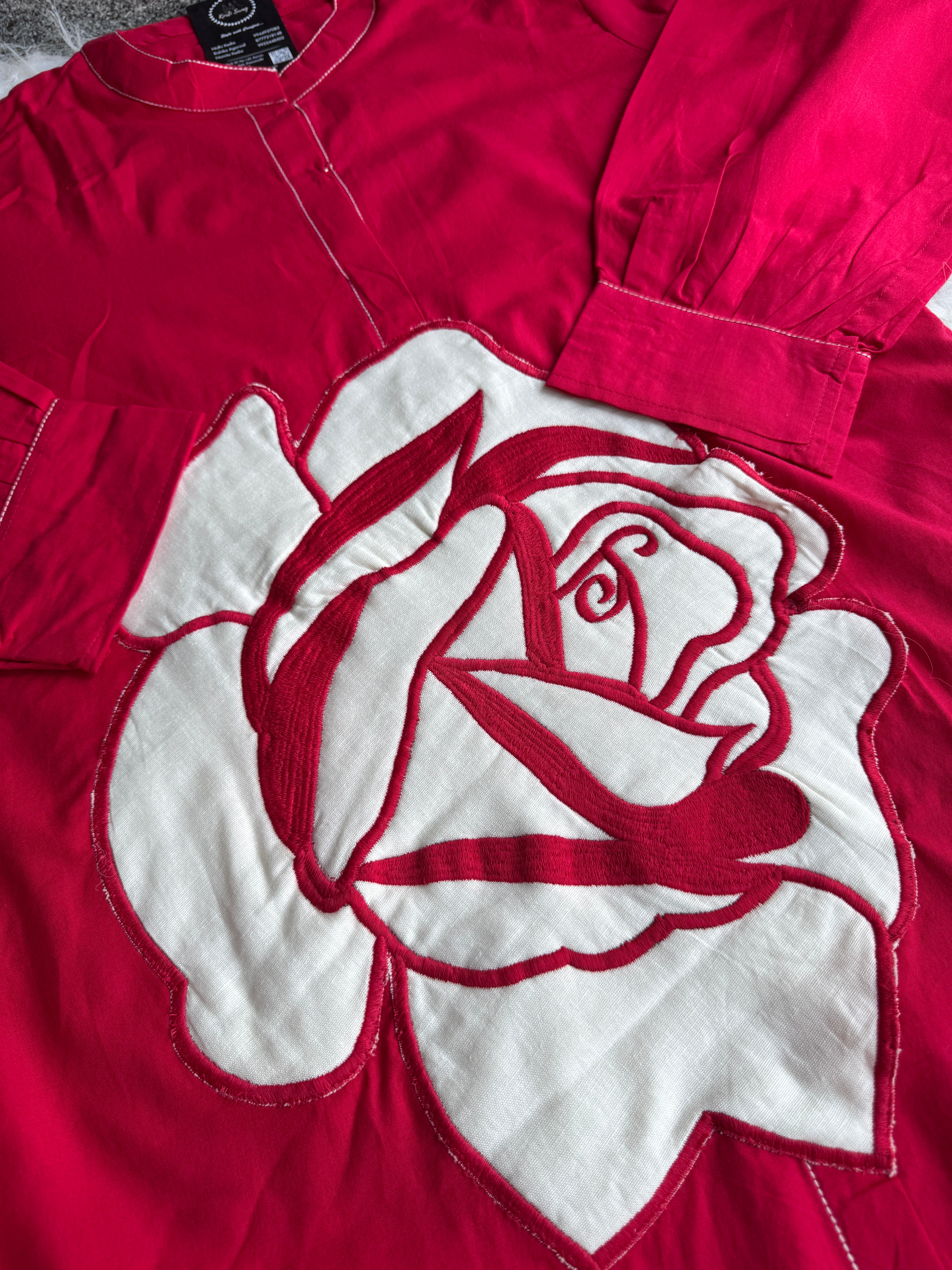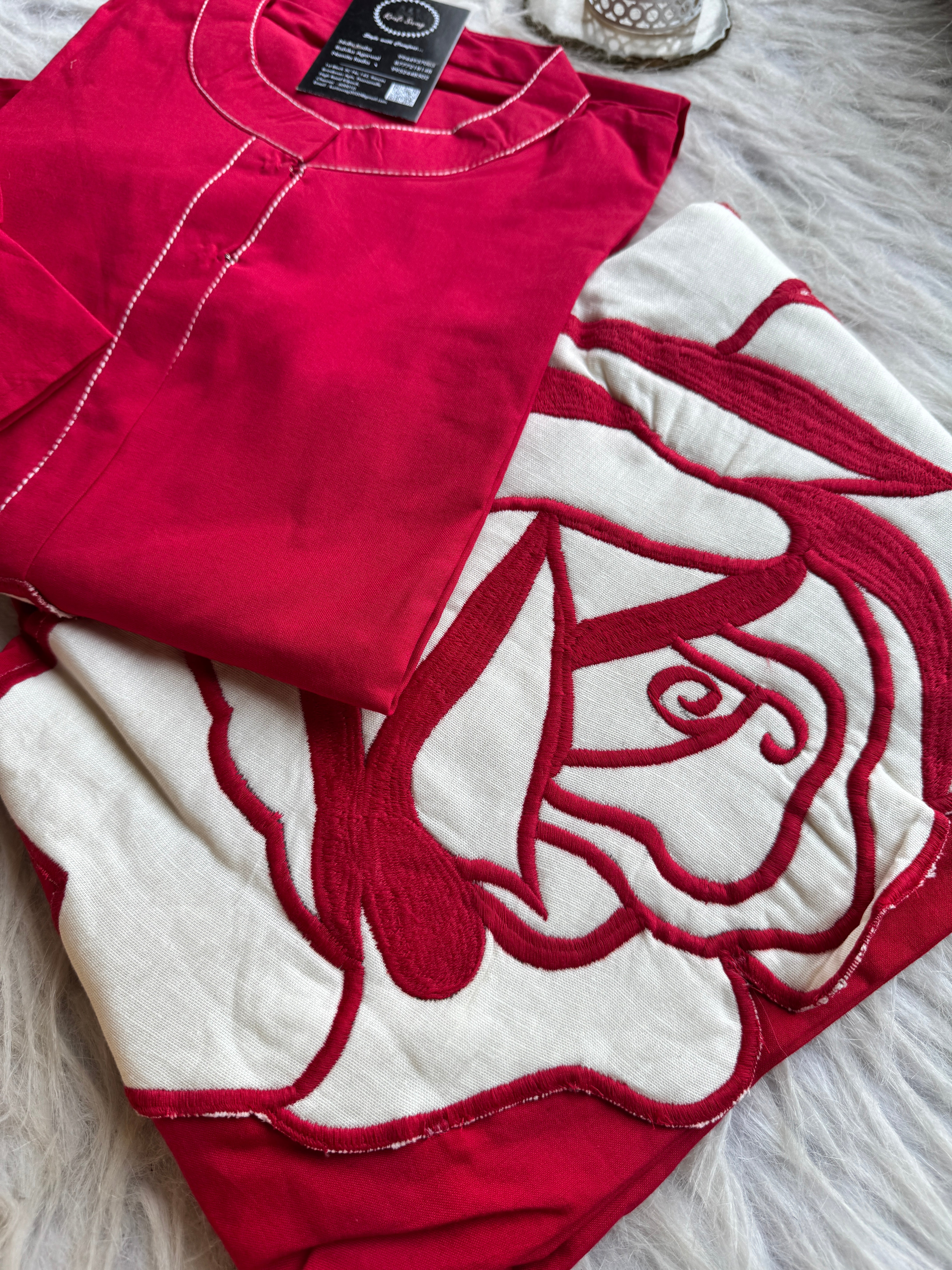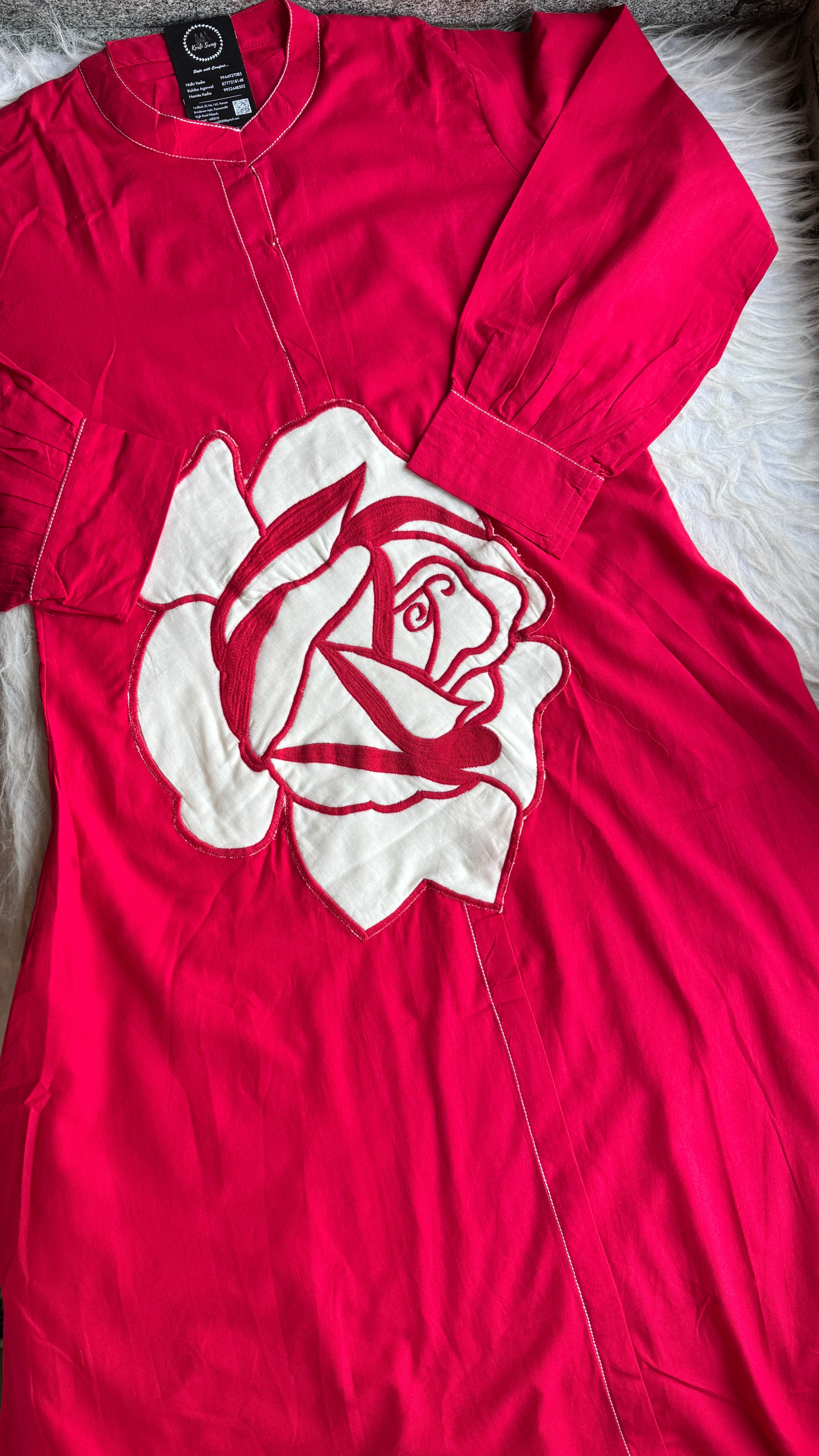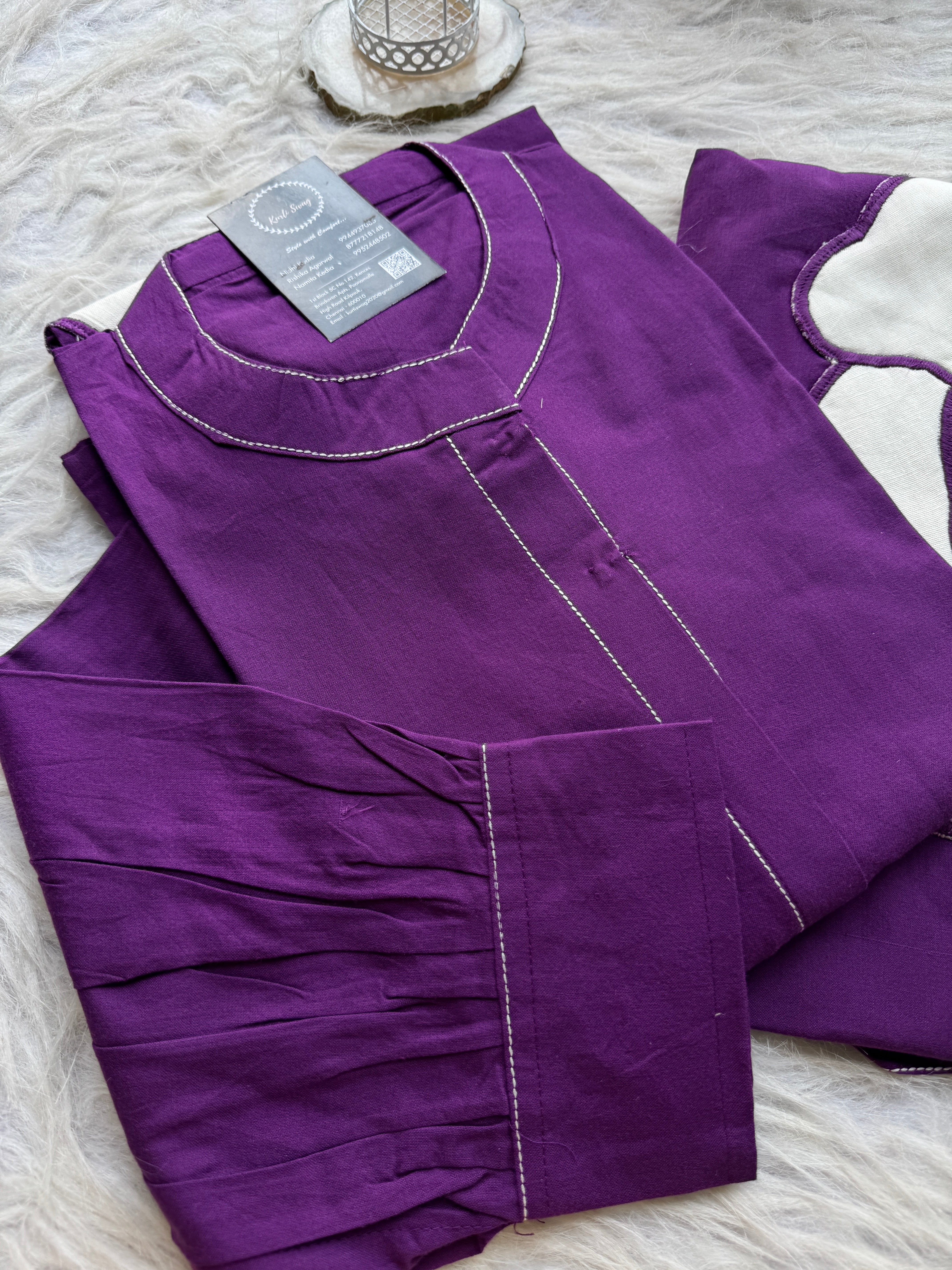✅ Pure Cotton A Line Kurta With Elegant Applique Work