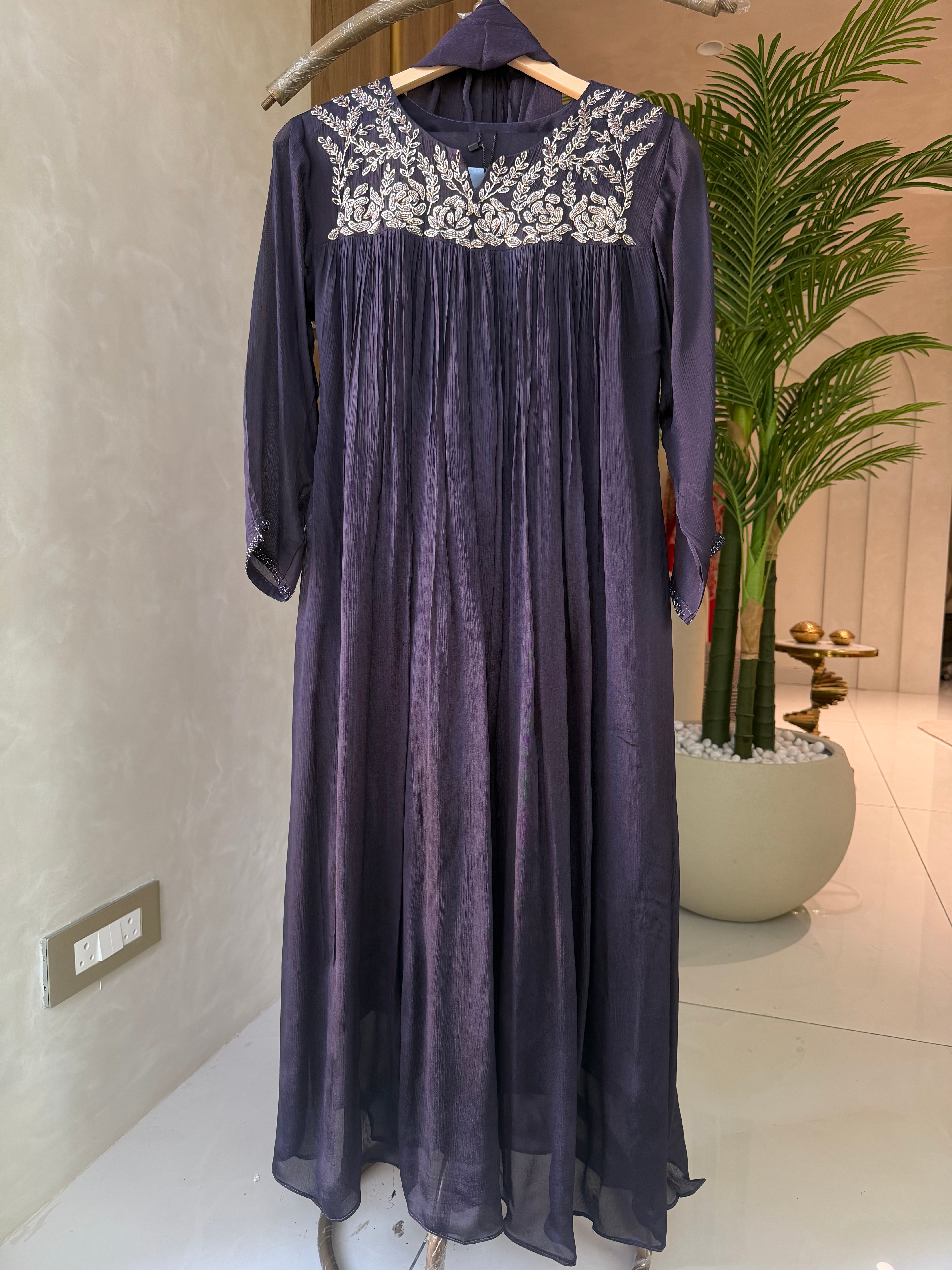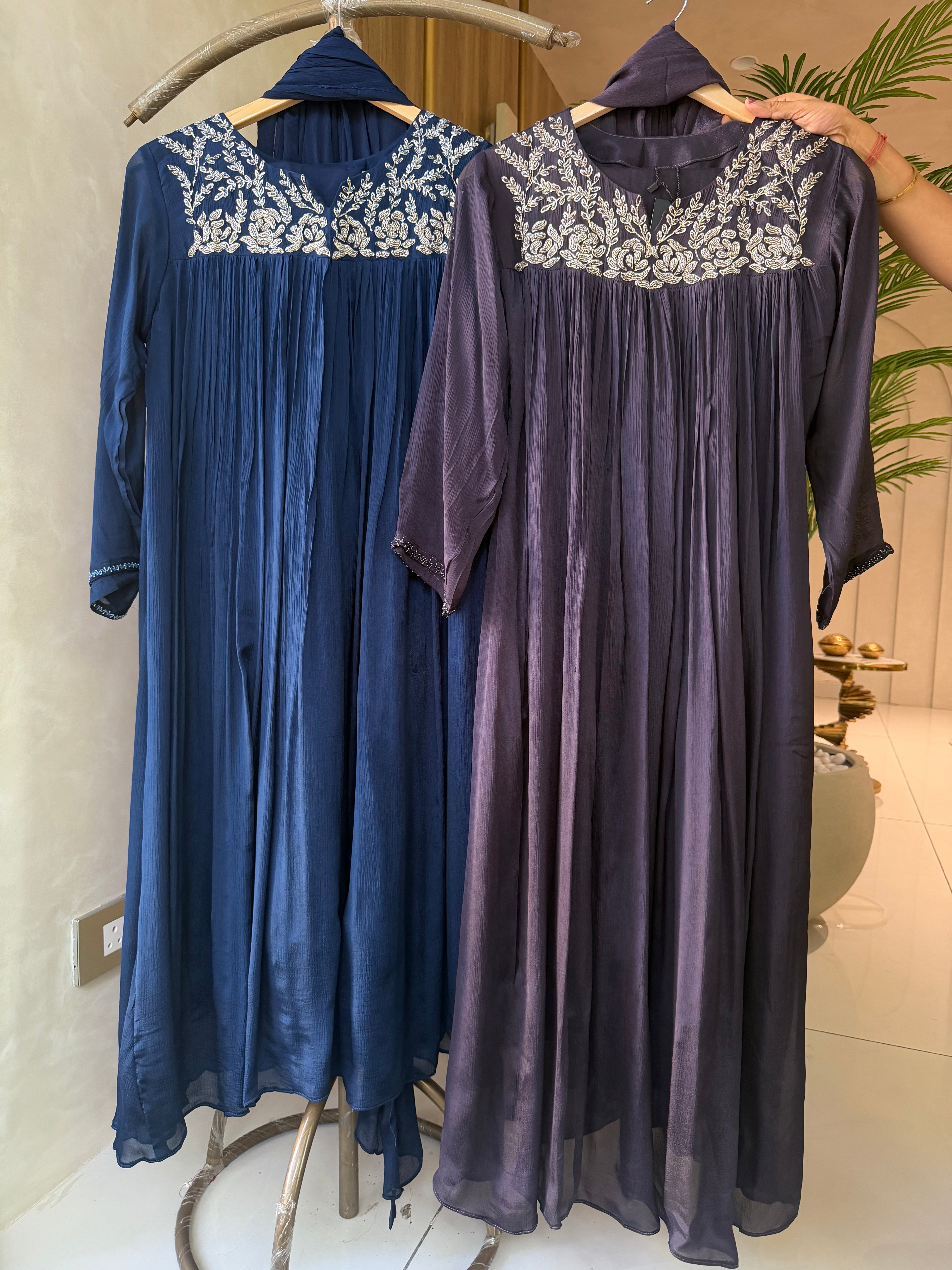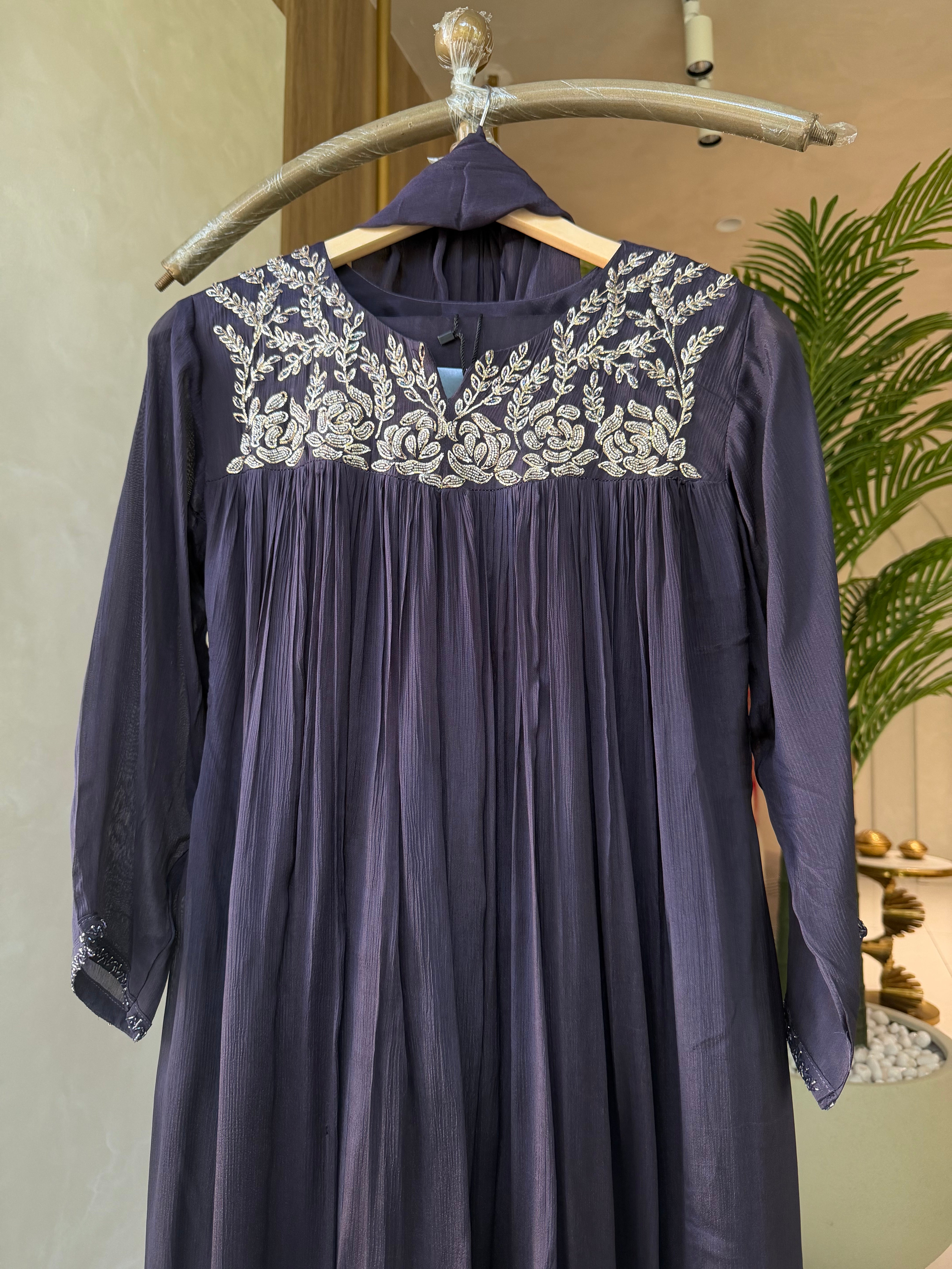 ✅ Premium Chinnon Kurti With Heavy Zari (Silver) Handwork  Work On The Neckline Of The Kurti