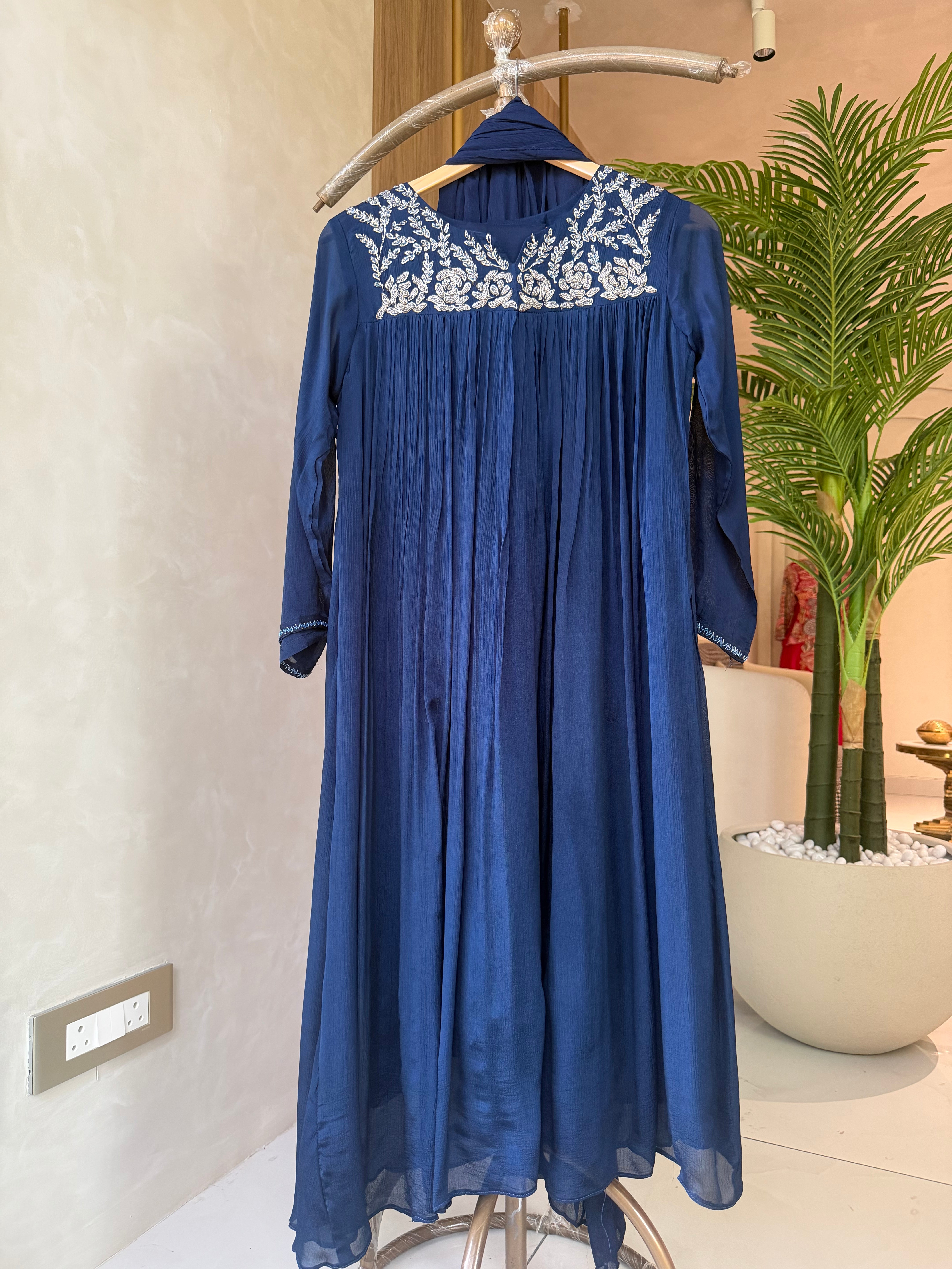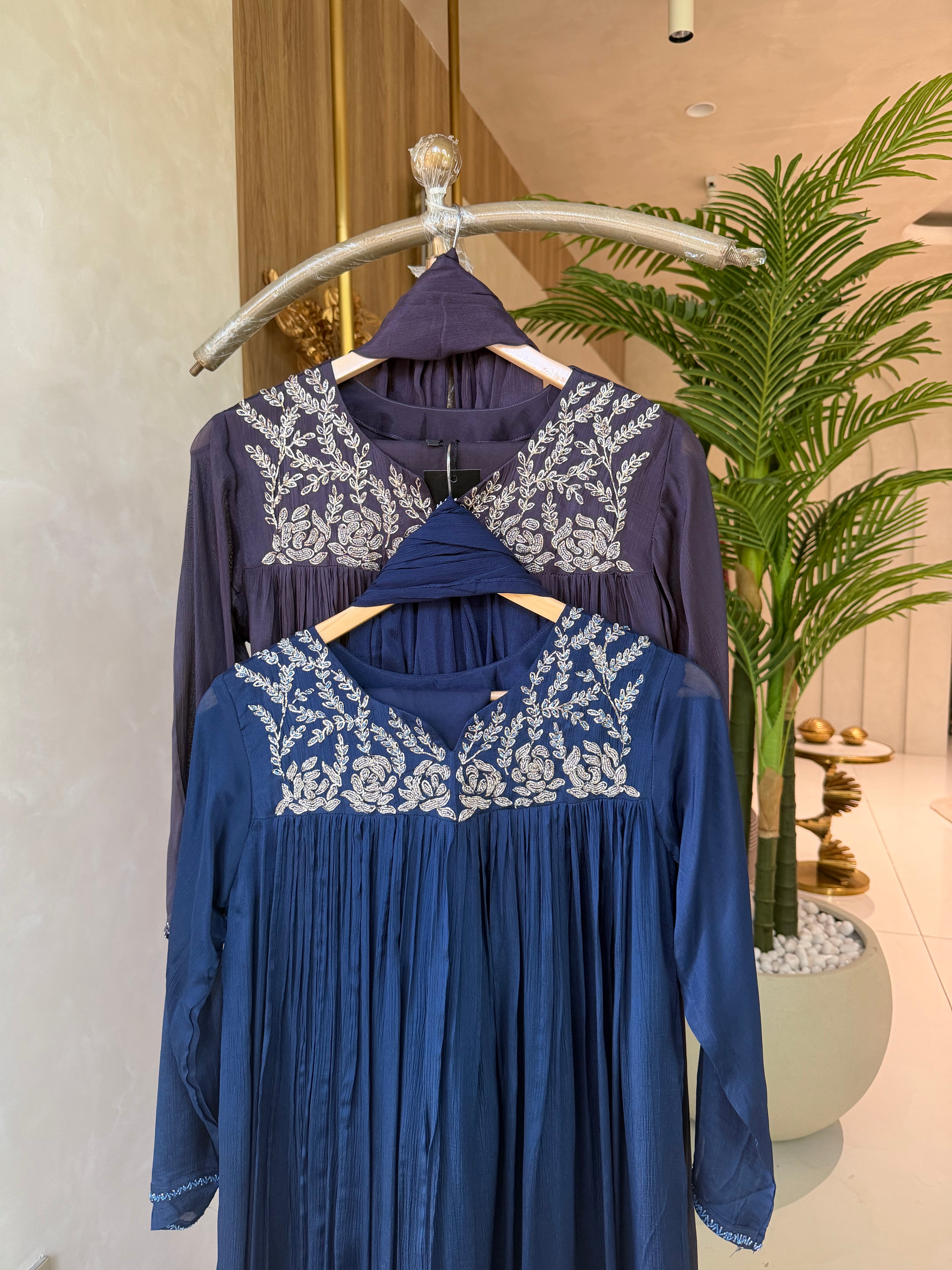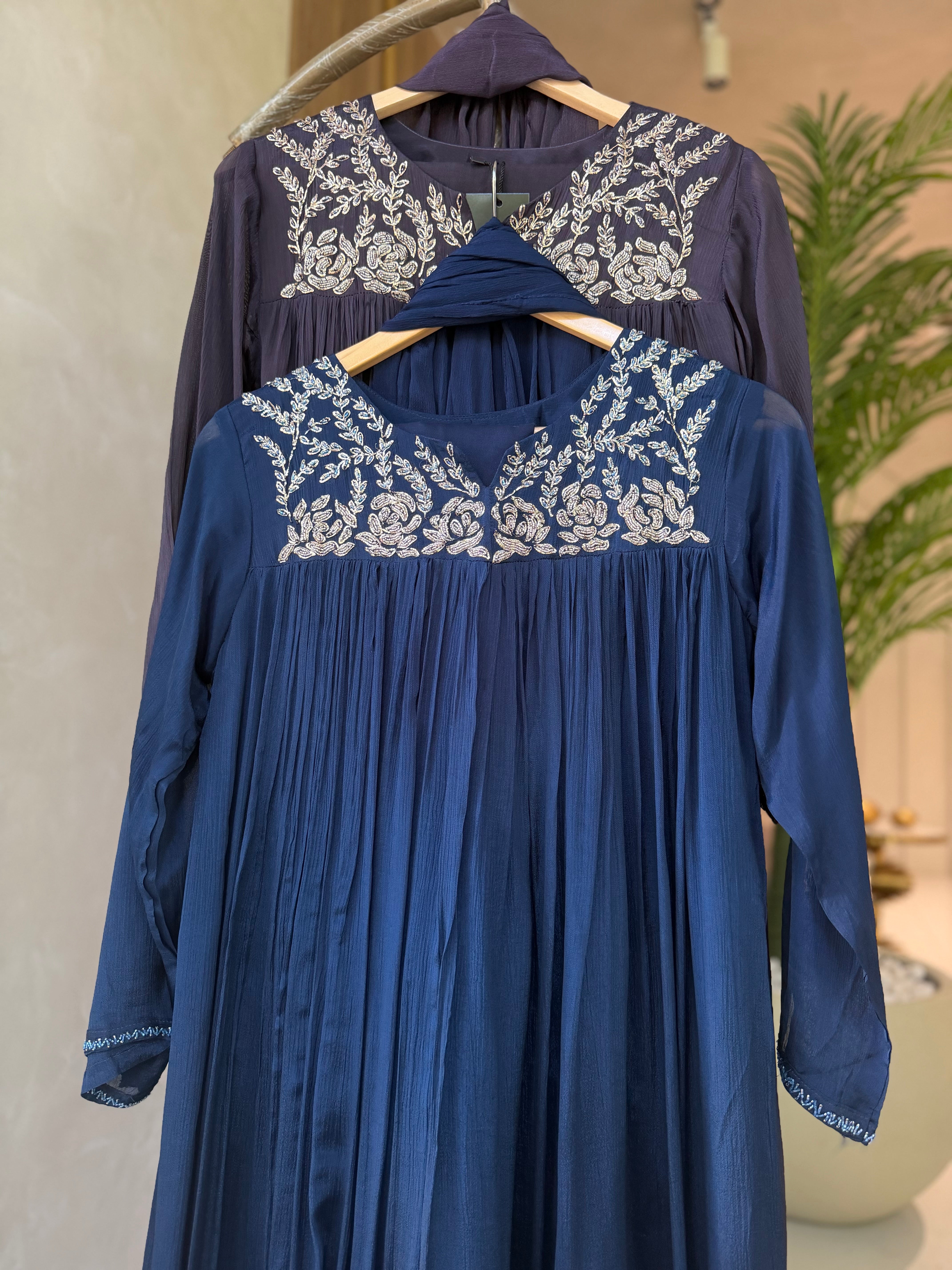 ✅ Premium Chinnon Kurti With Heavy Zari (Silver) Handwork  Work On The Neckline Of The Kurti