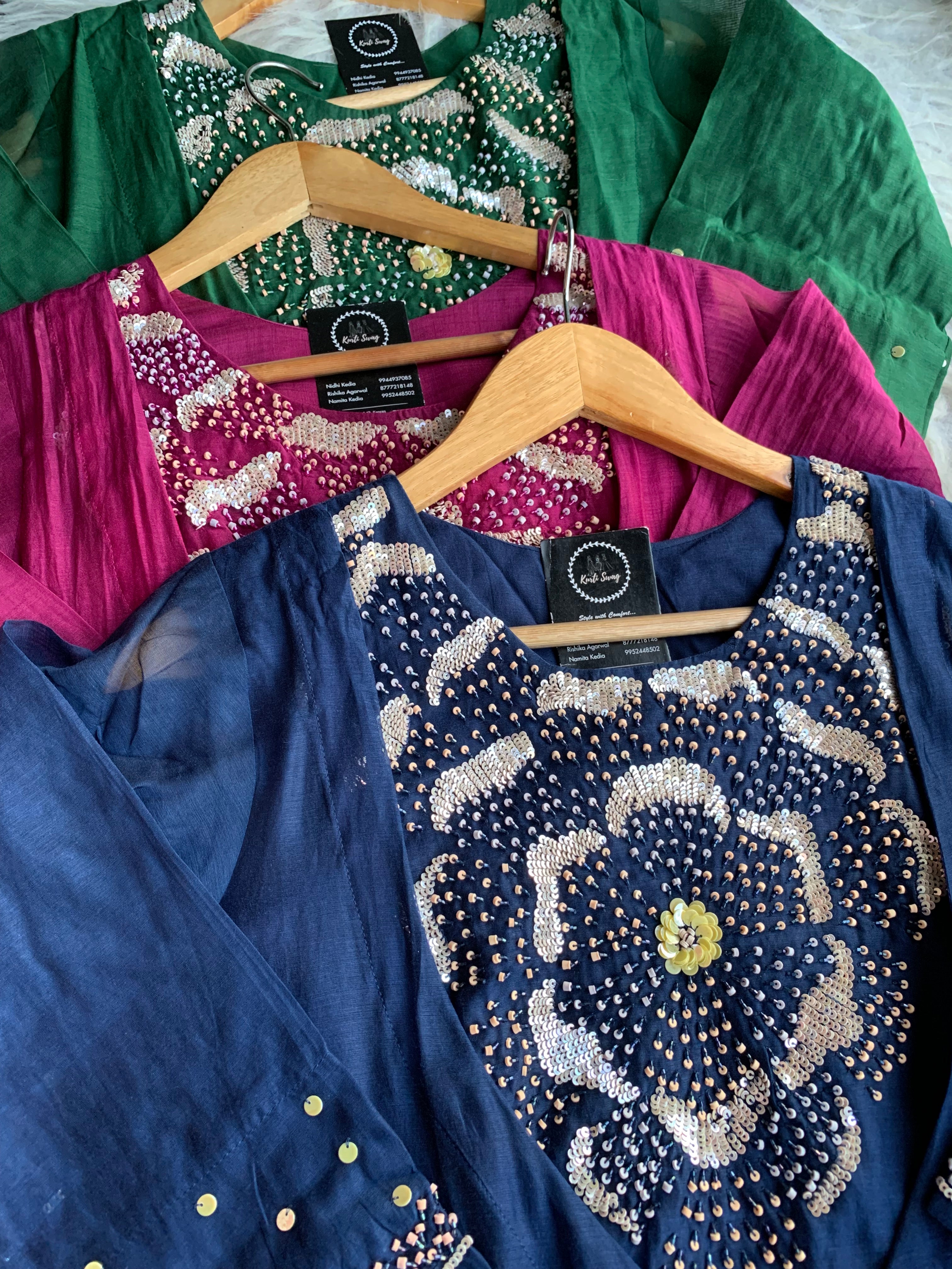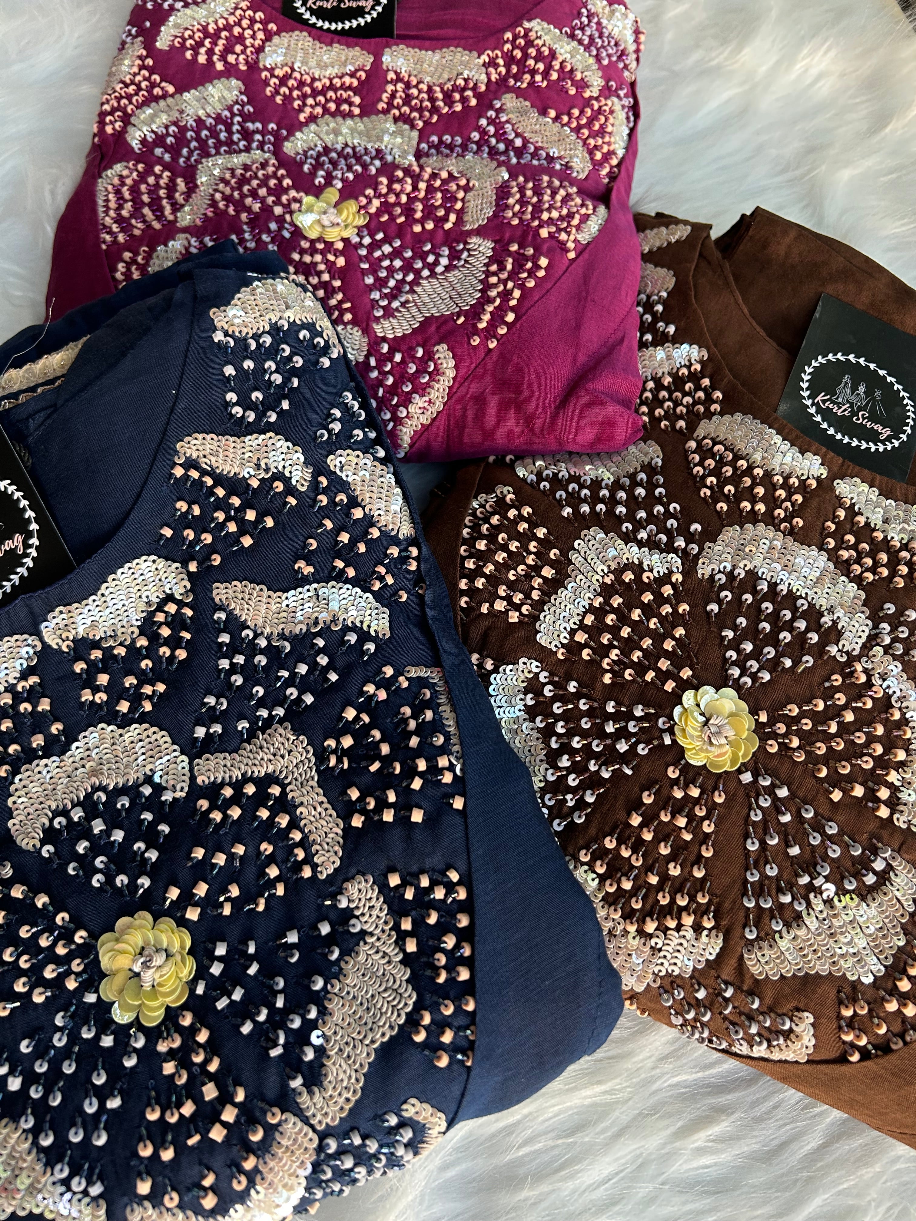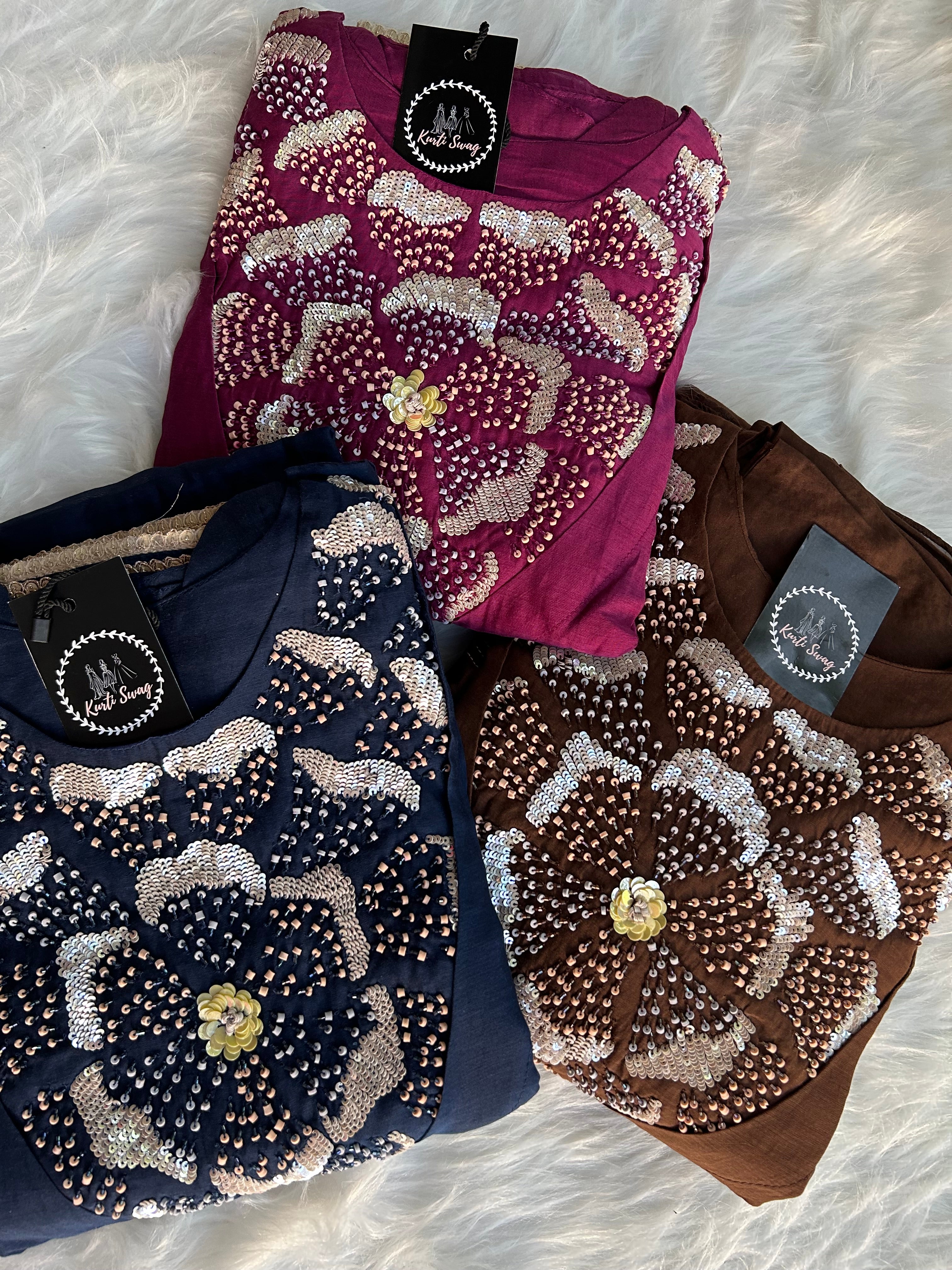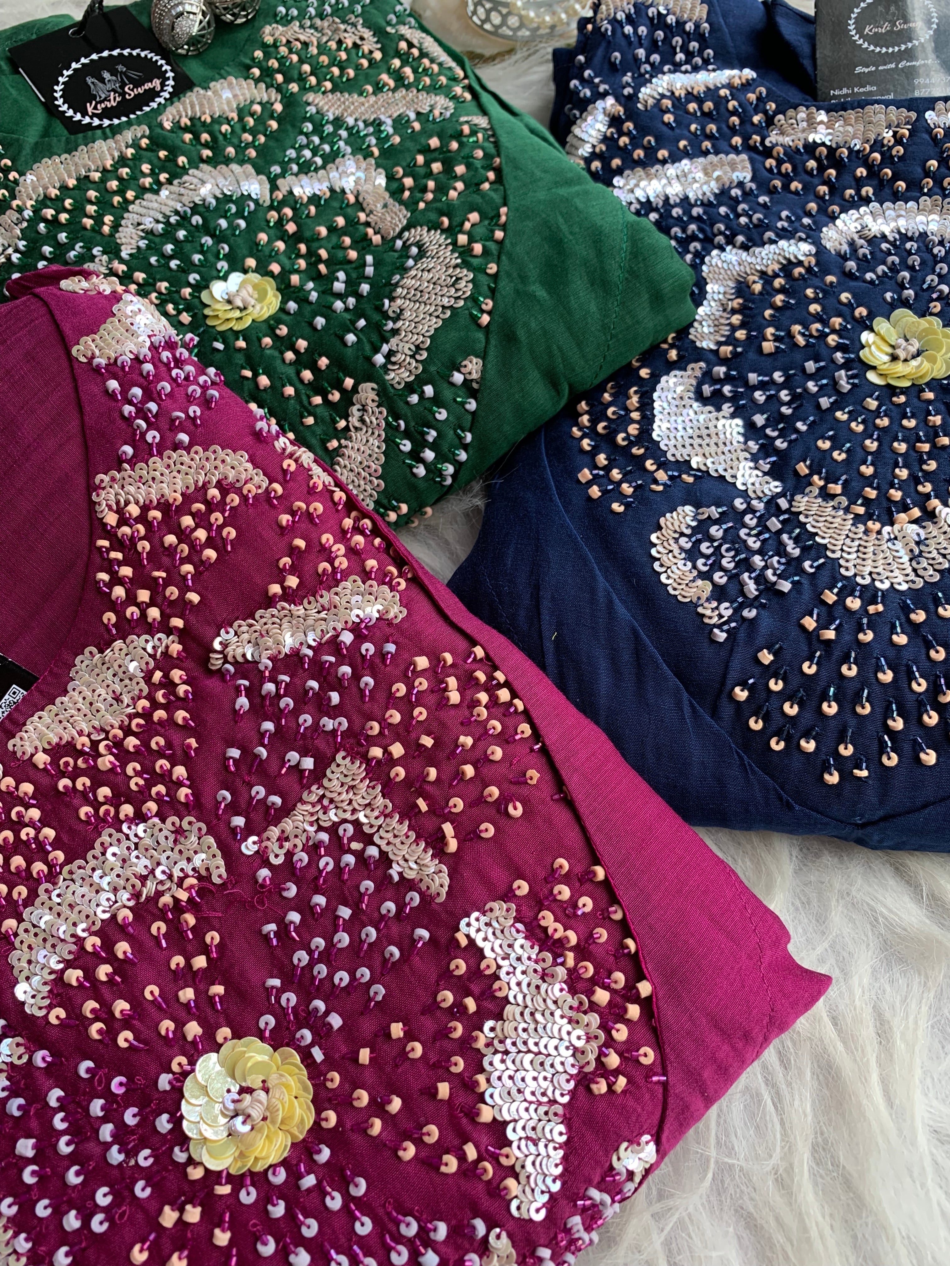 ✅ Premium Mul Chanderi Kurti With Se Quebec, Pearl & HandWork On The Yoke Of The Kurti.