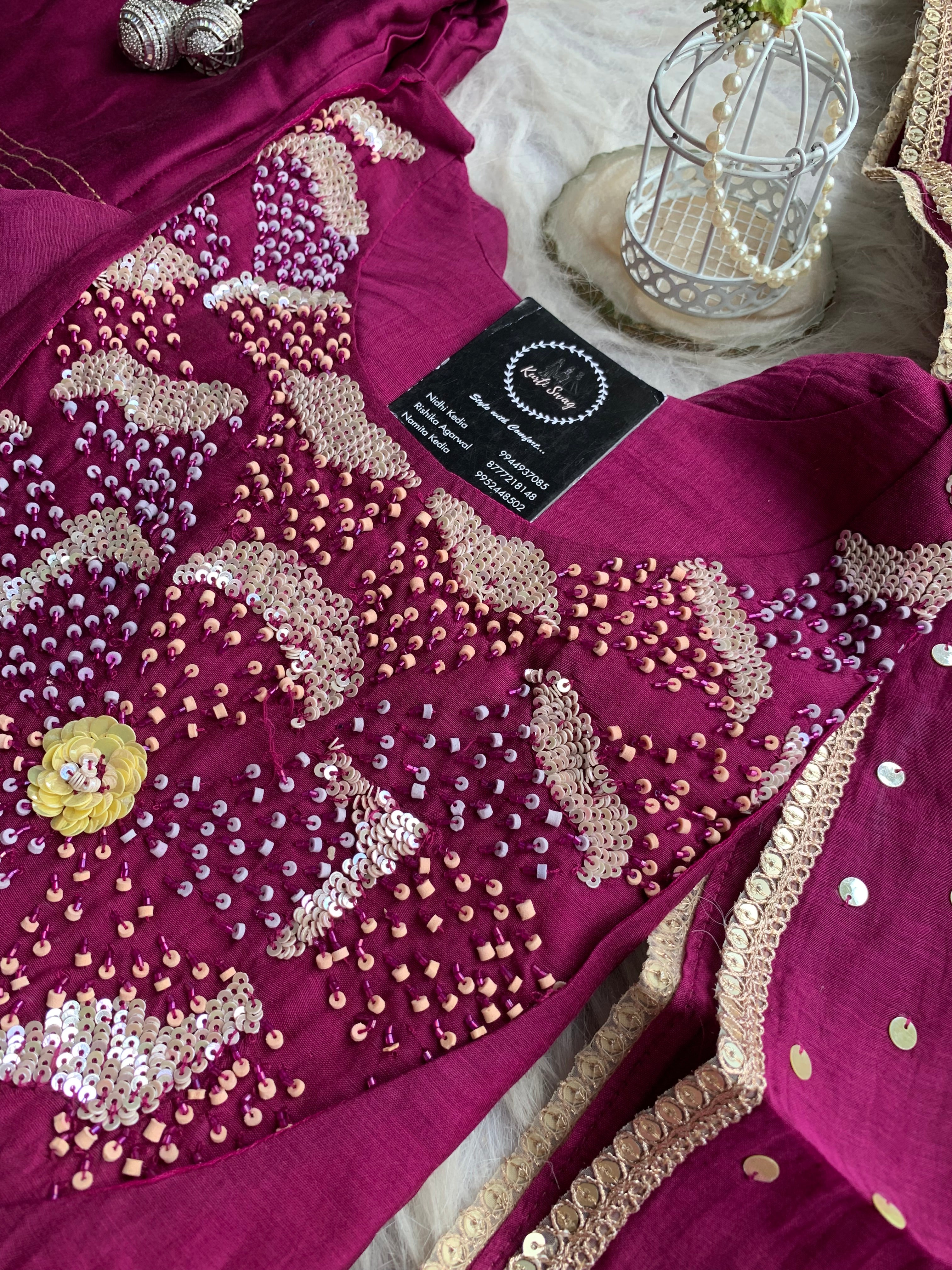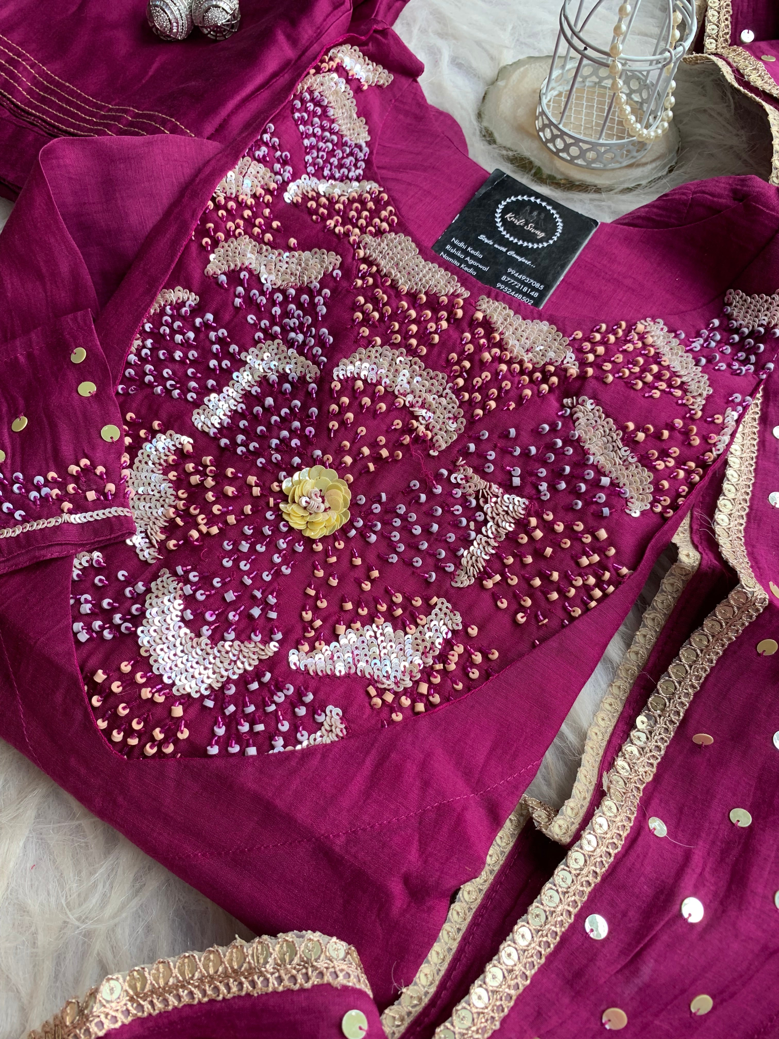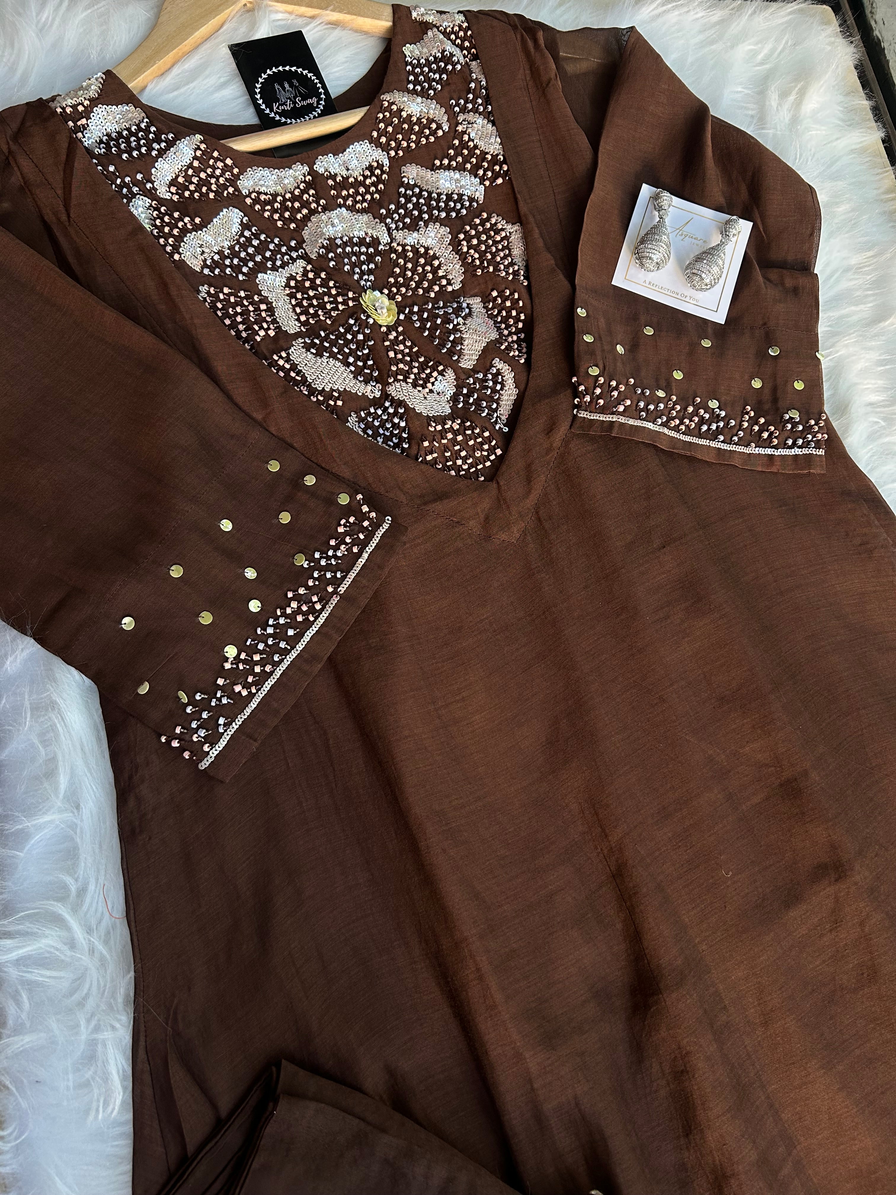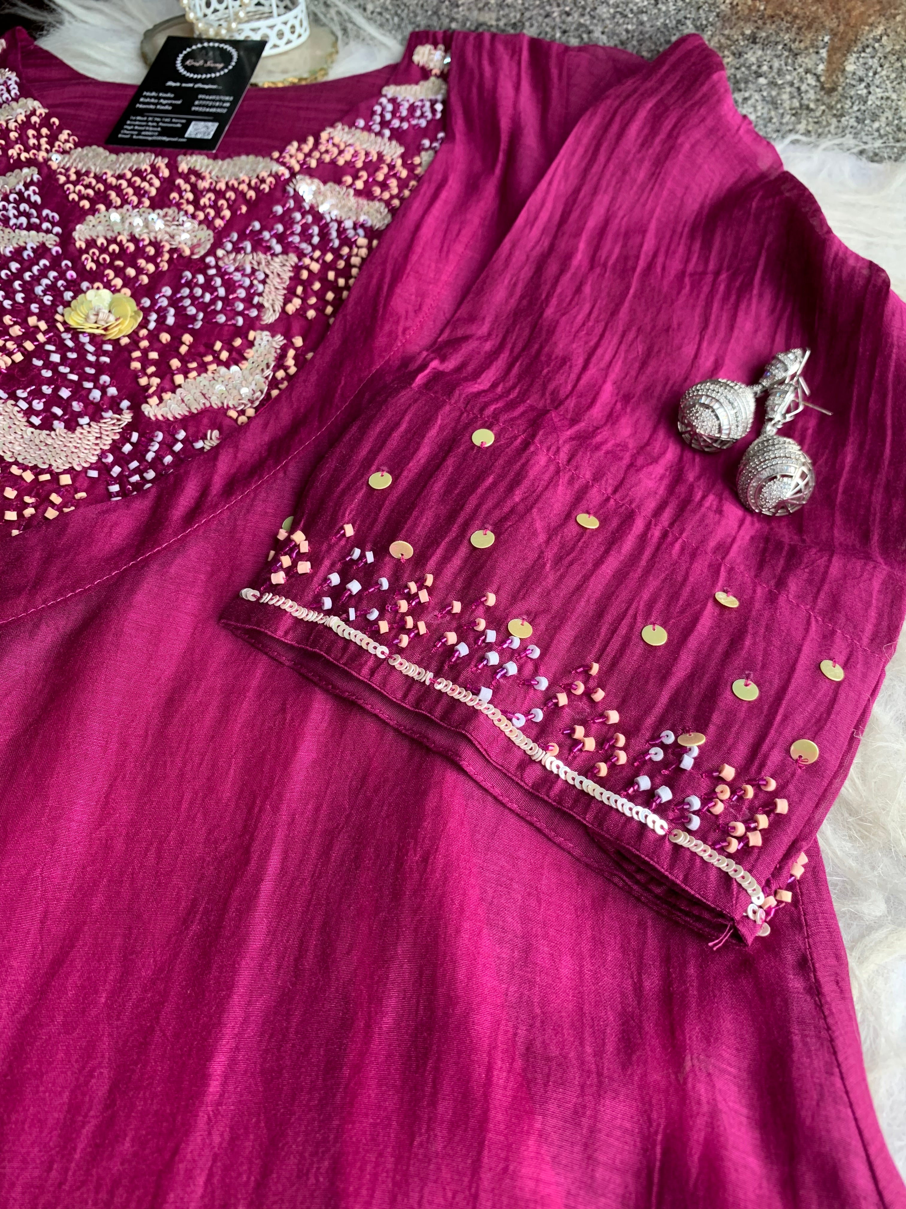✅ Premium Mul Chanderi Kurti With Se Quebec, Pearl & HandWork On The Yoke Of The Kurti.