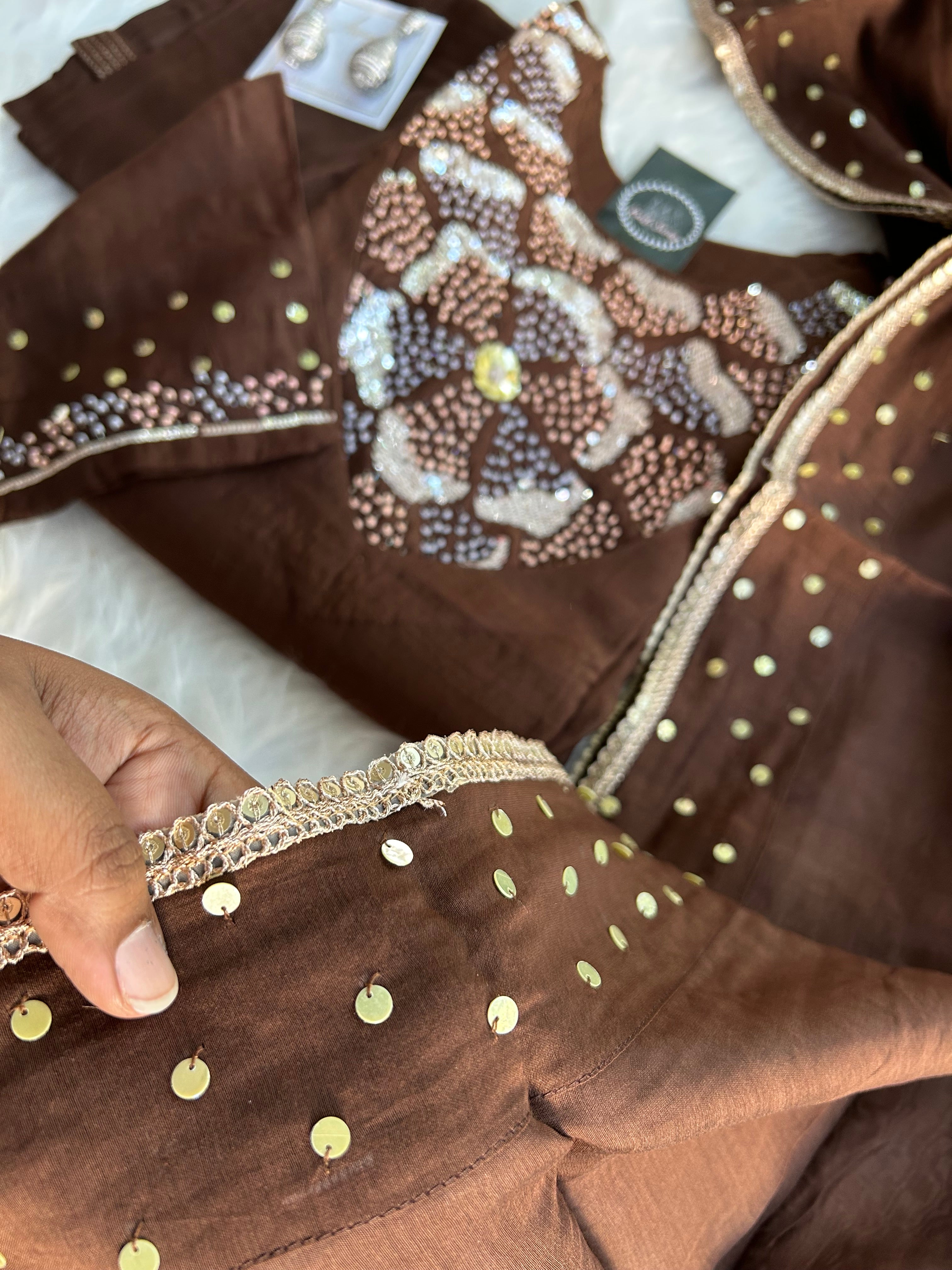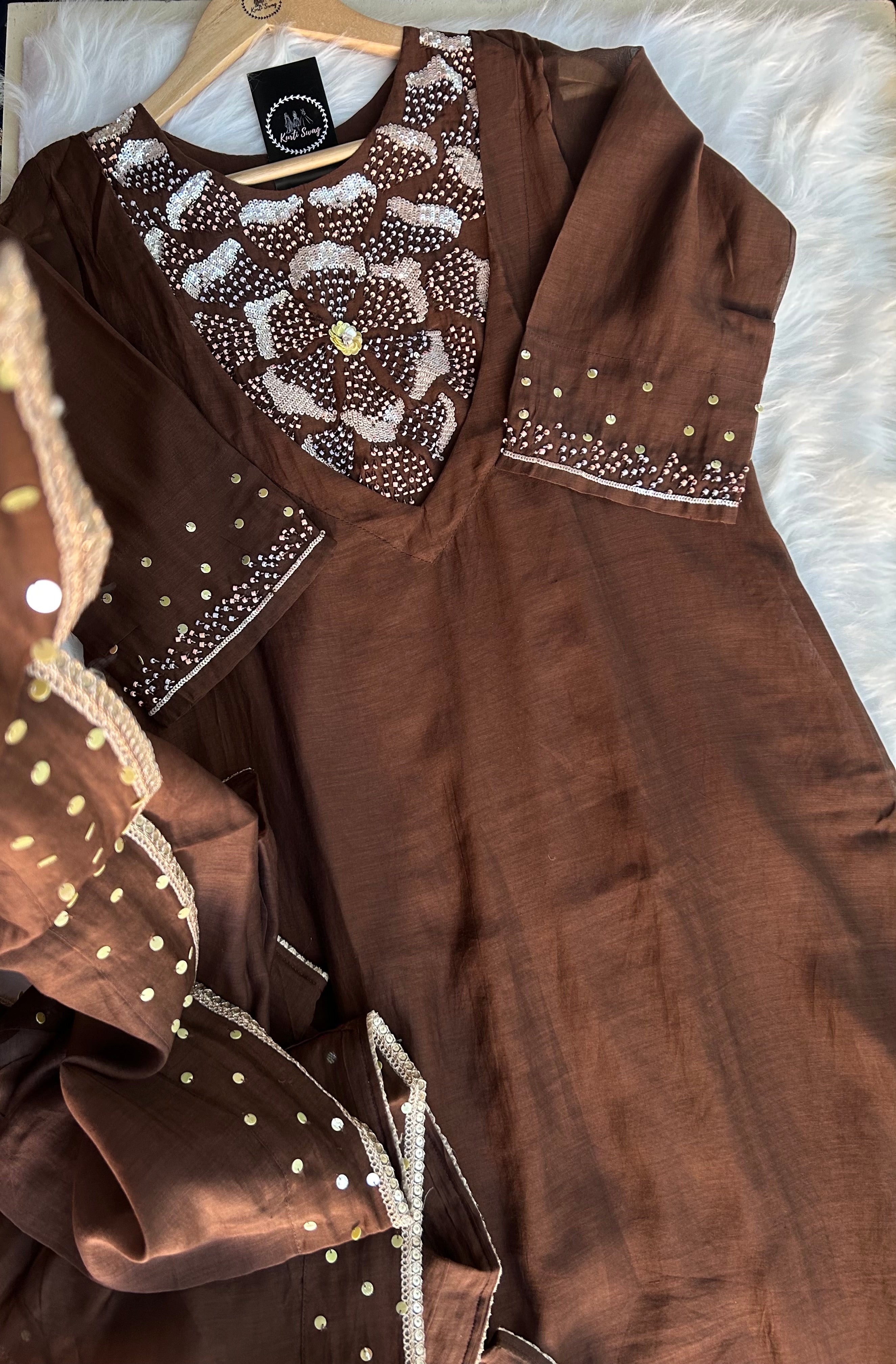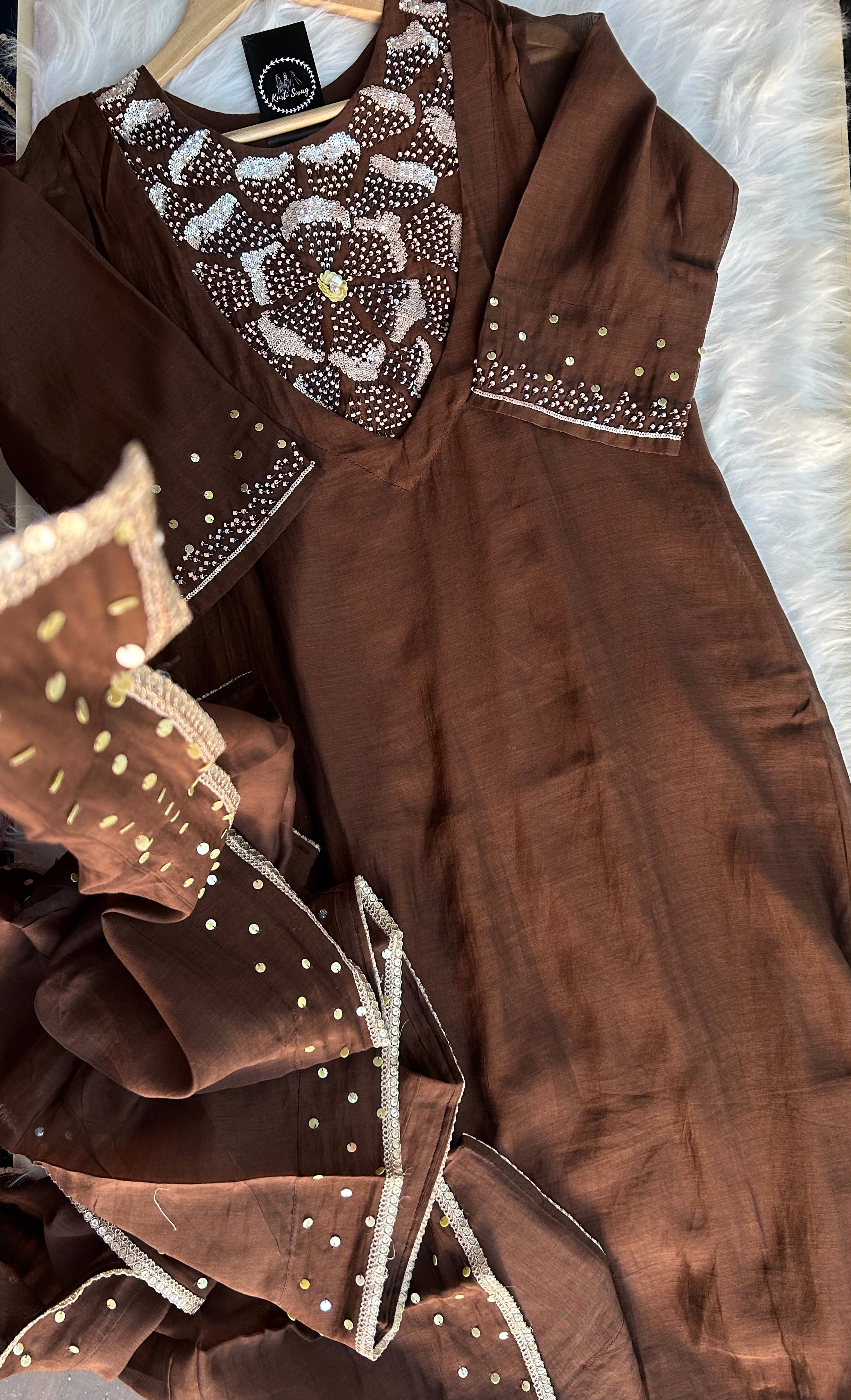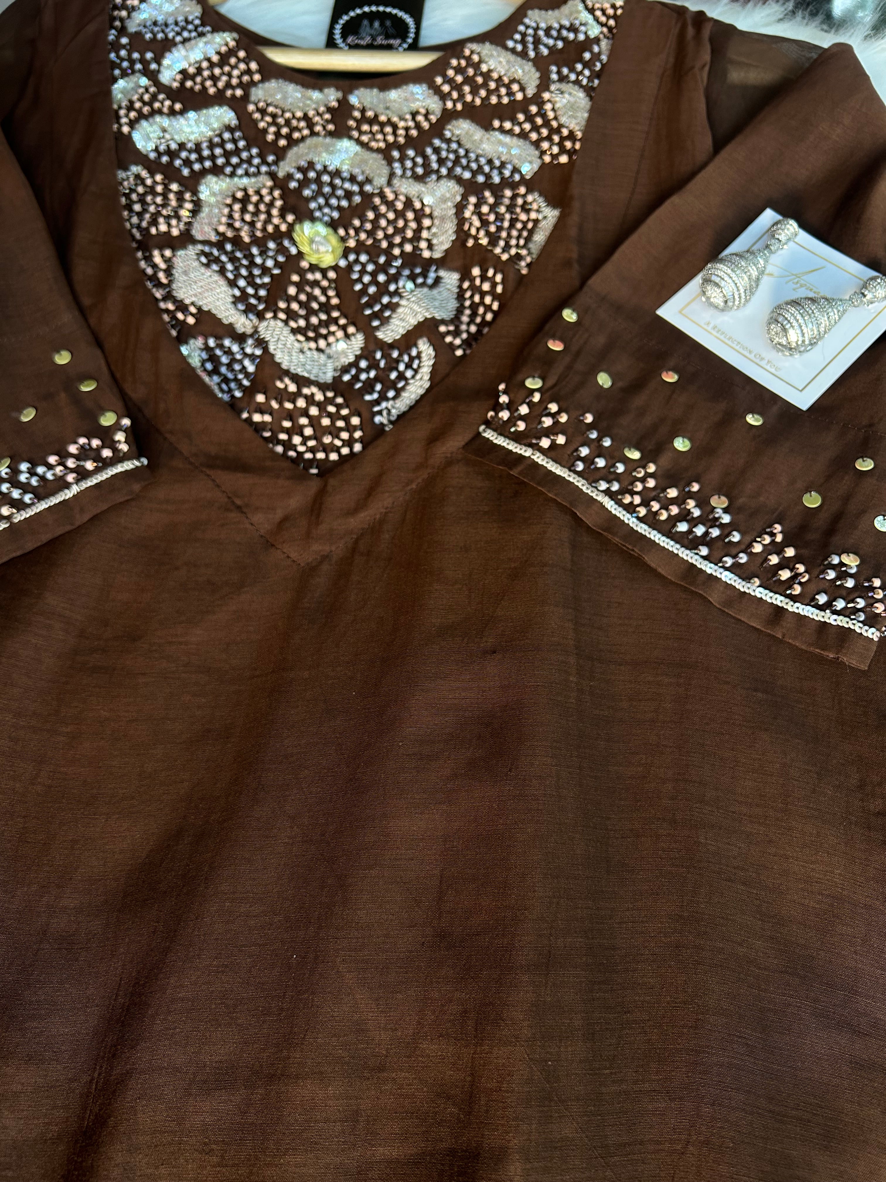 ✅ Premium Mul Chanderi Kurti With Se Quebec, Pearl & HandWork On The Yoke Of The Kurti.