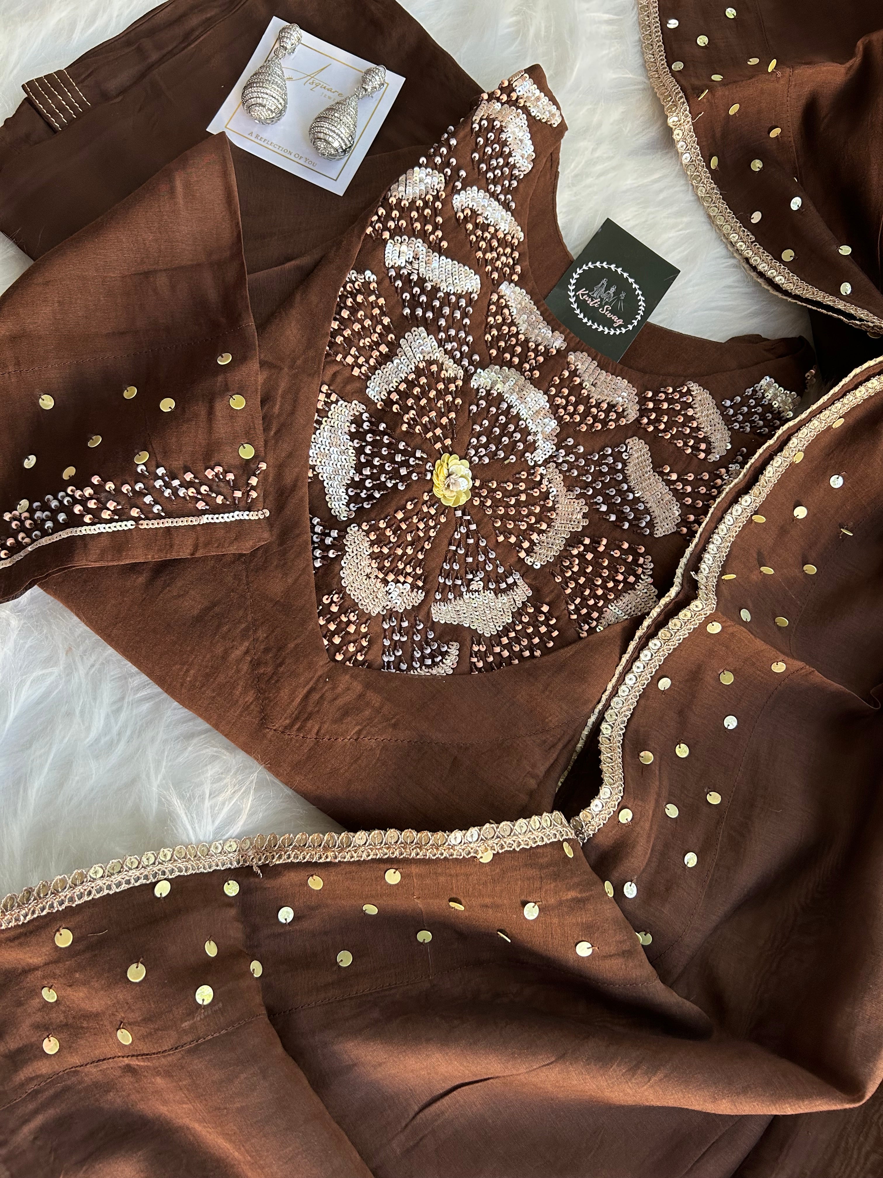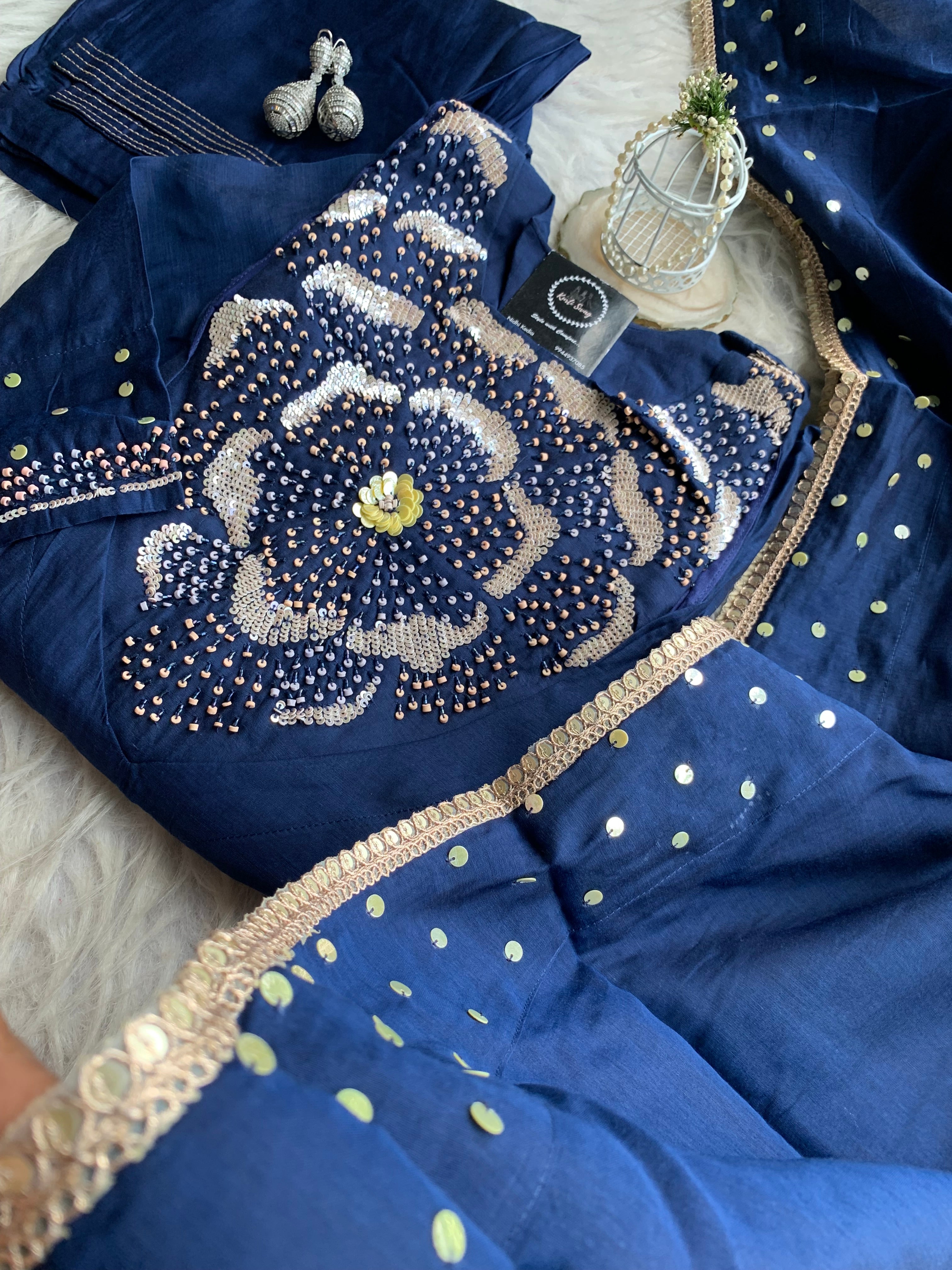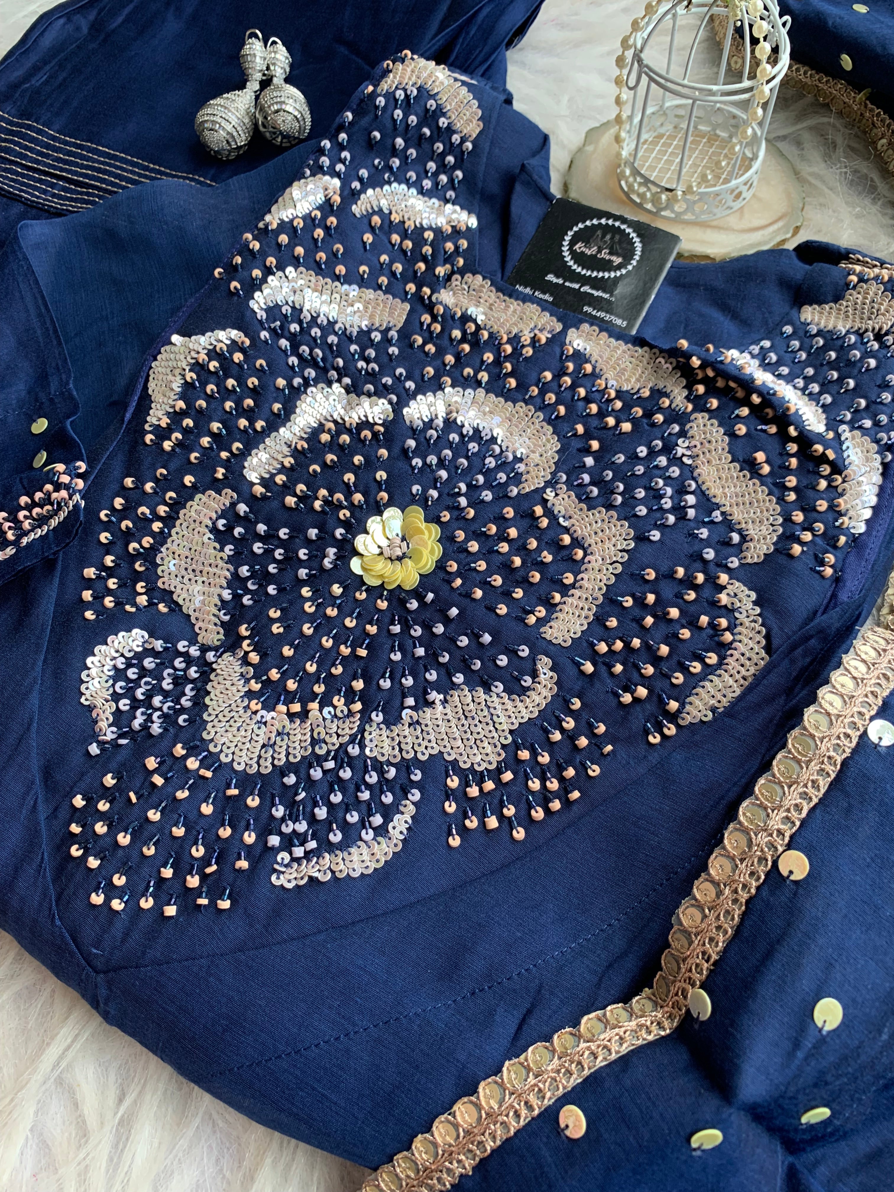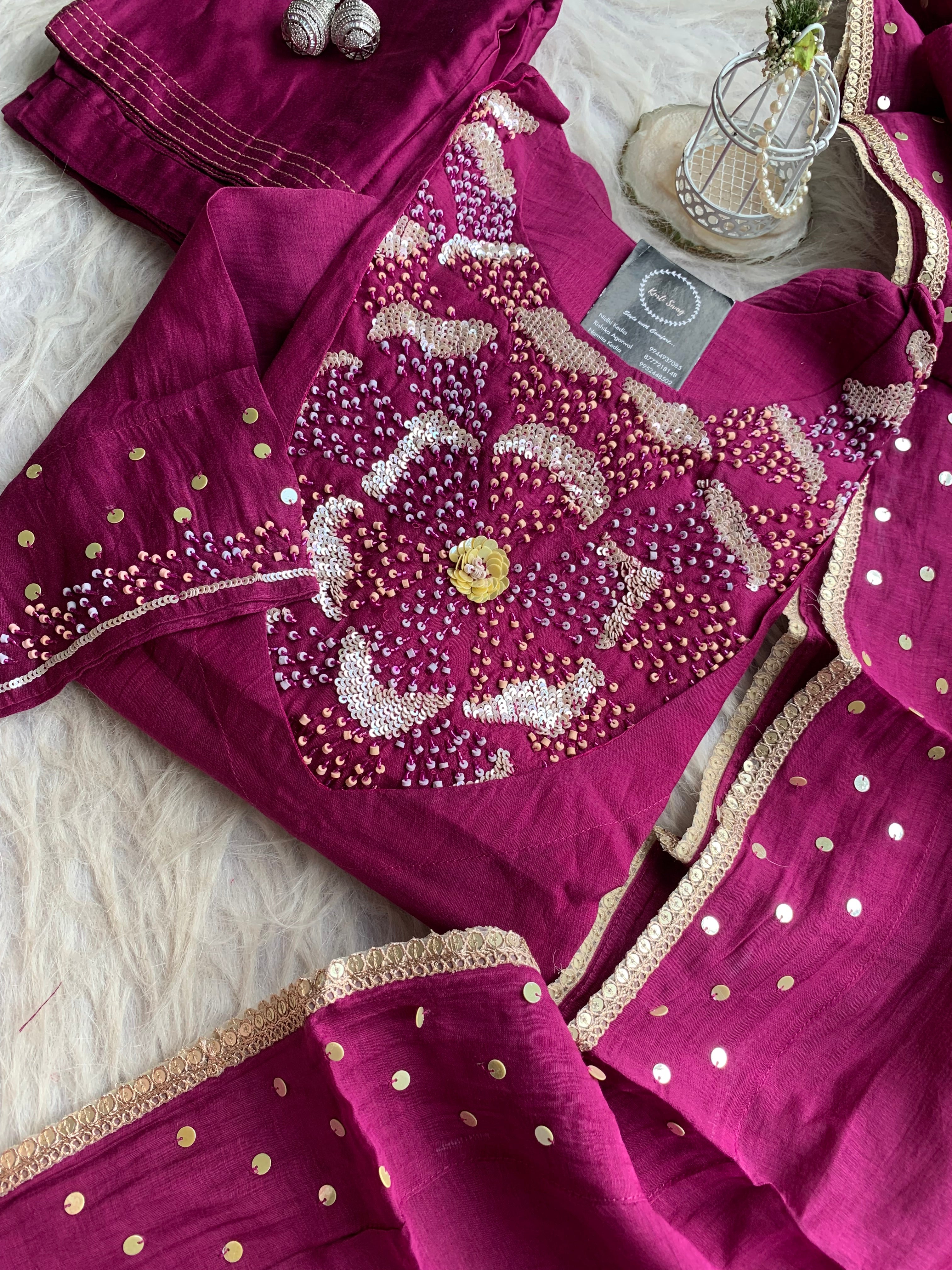 “FLOWER SEQUENCE ” Premium Mul Chanderi A Line Suit Set ✨💕