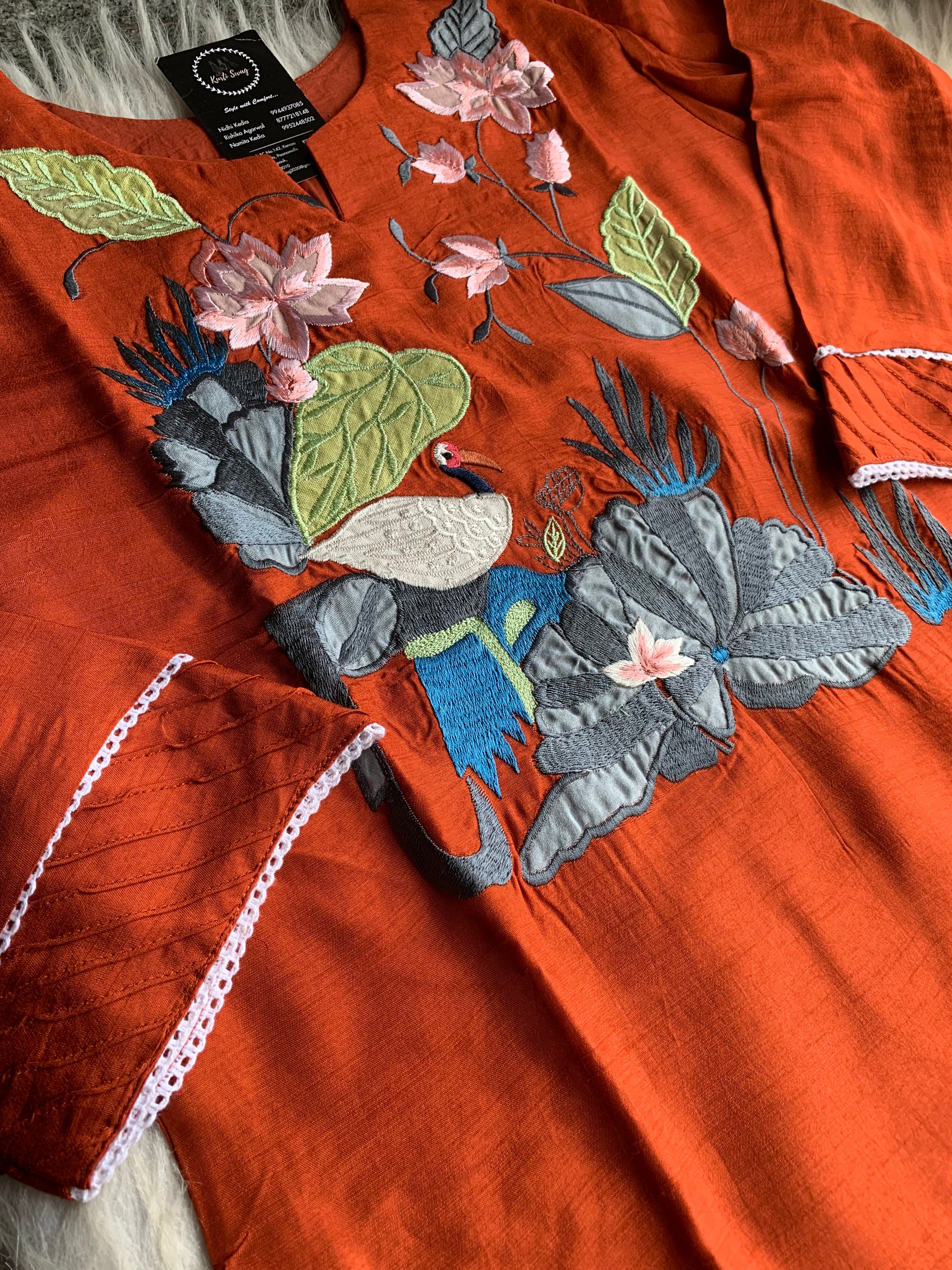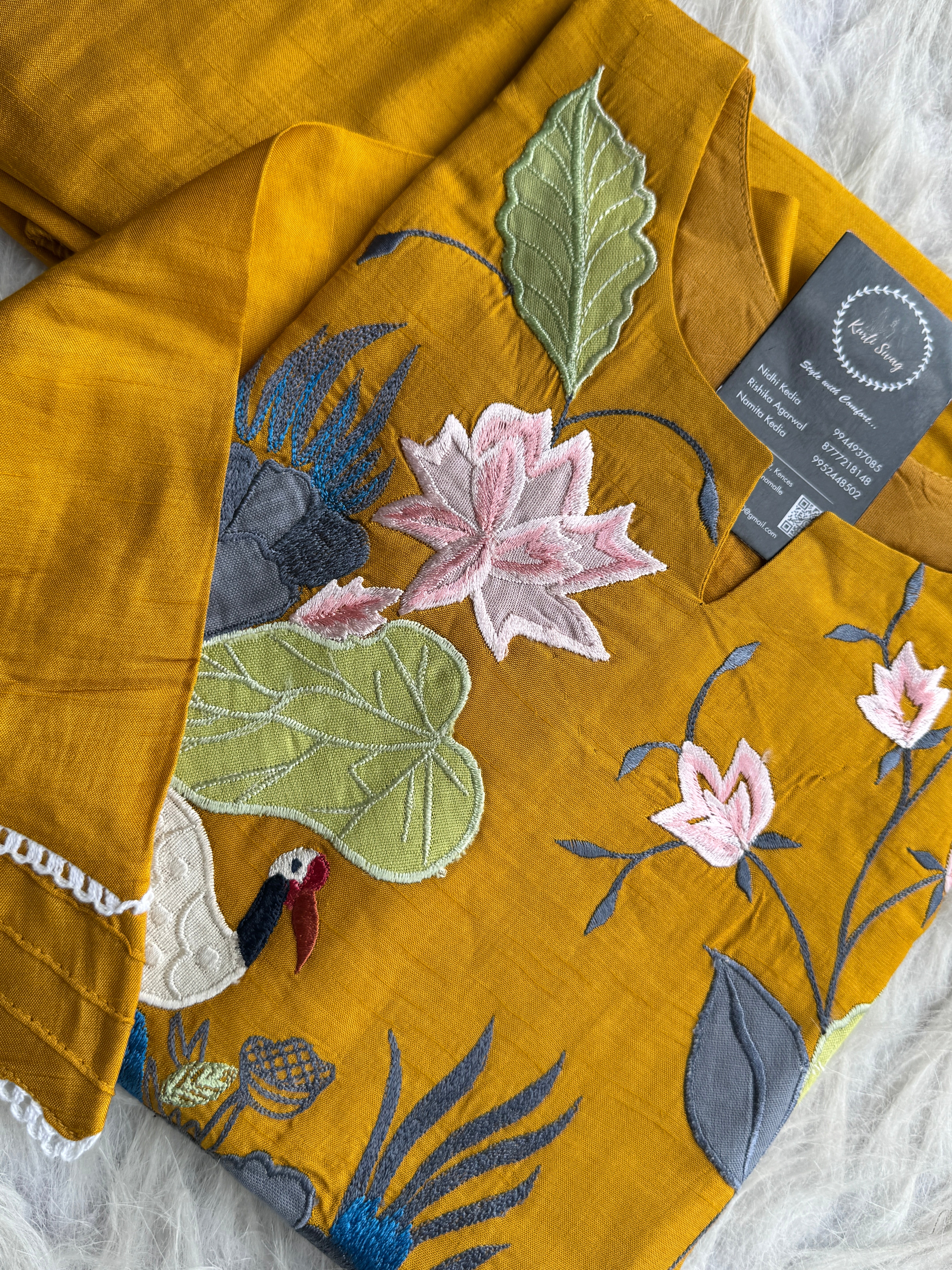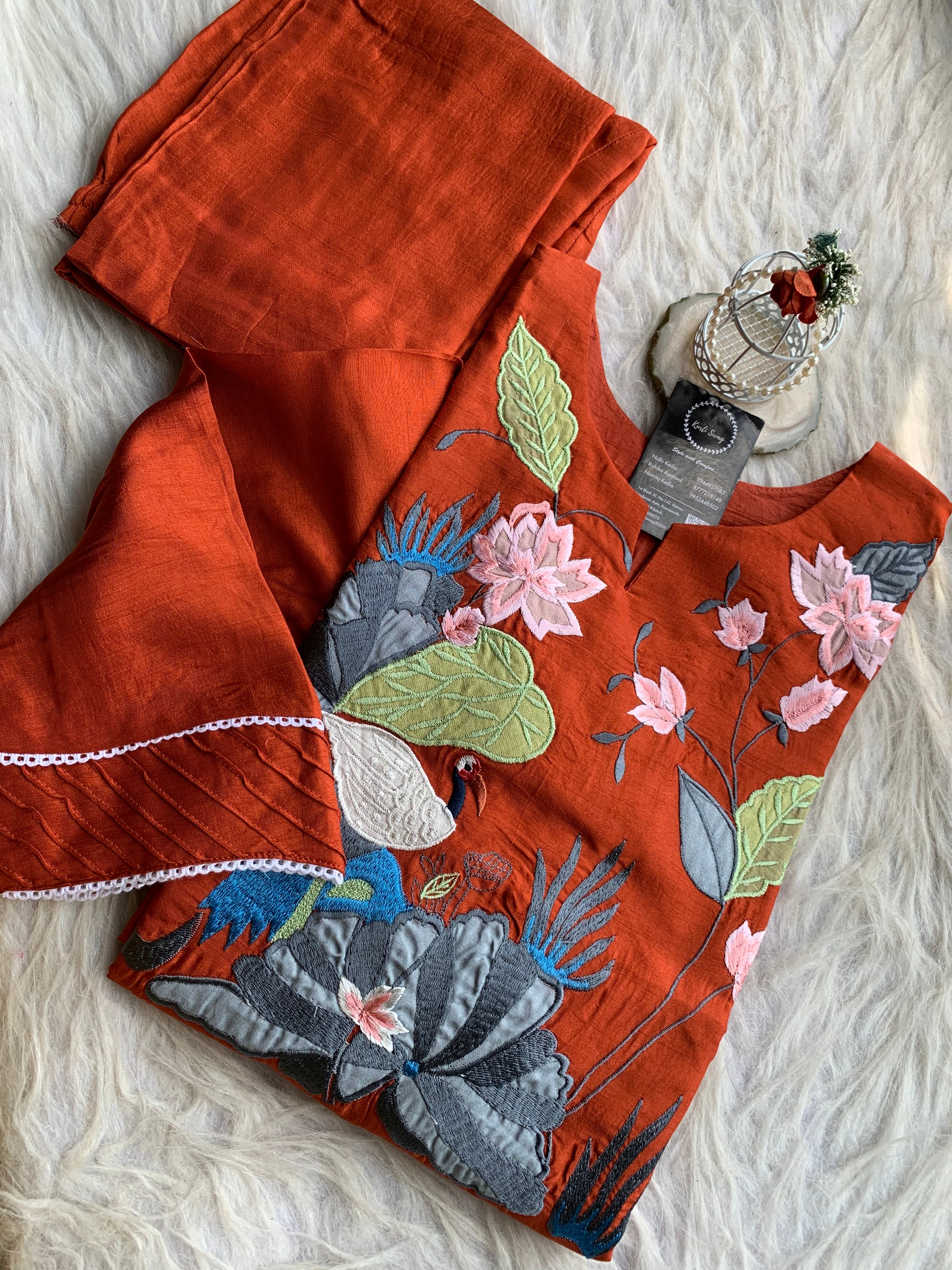 ✅ Cotton Silk Kurti With Exclusive Applique Thread embroidery On The Yoke Of The Kurti