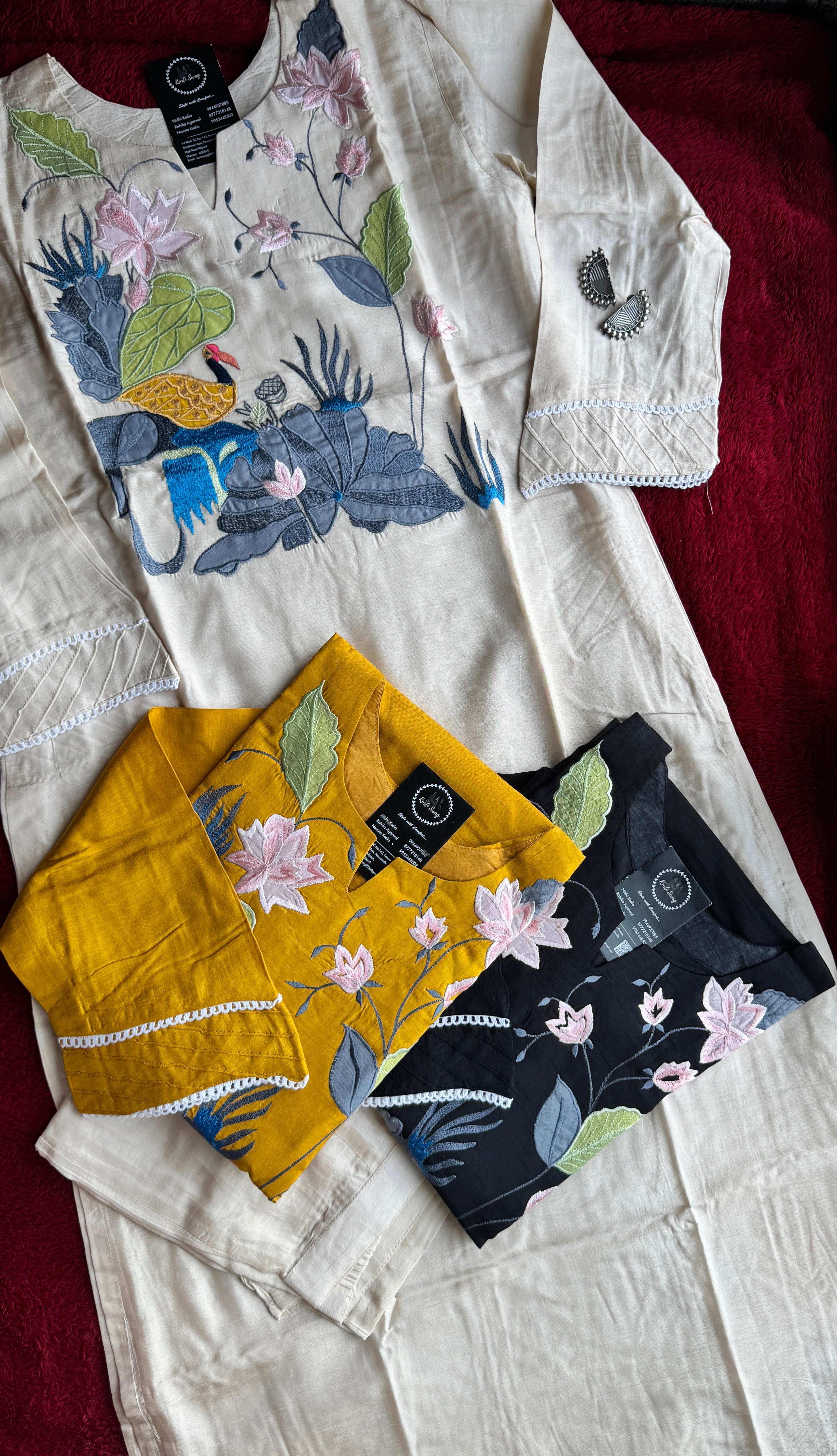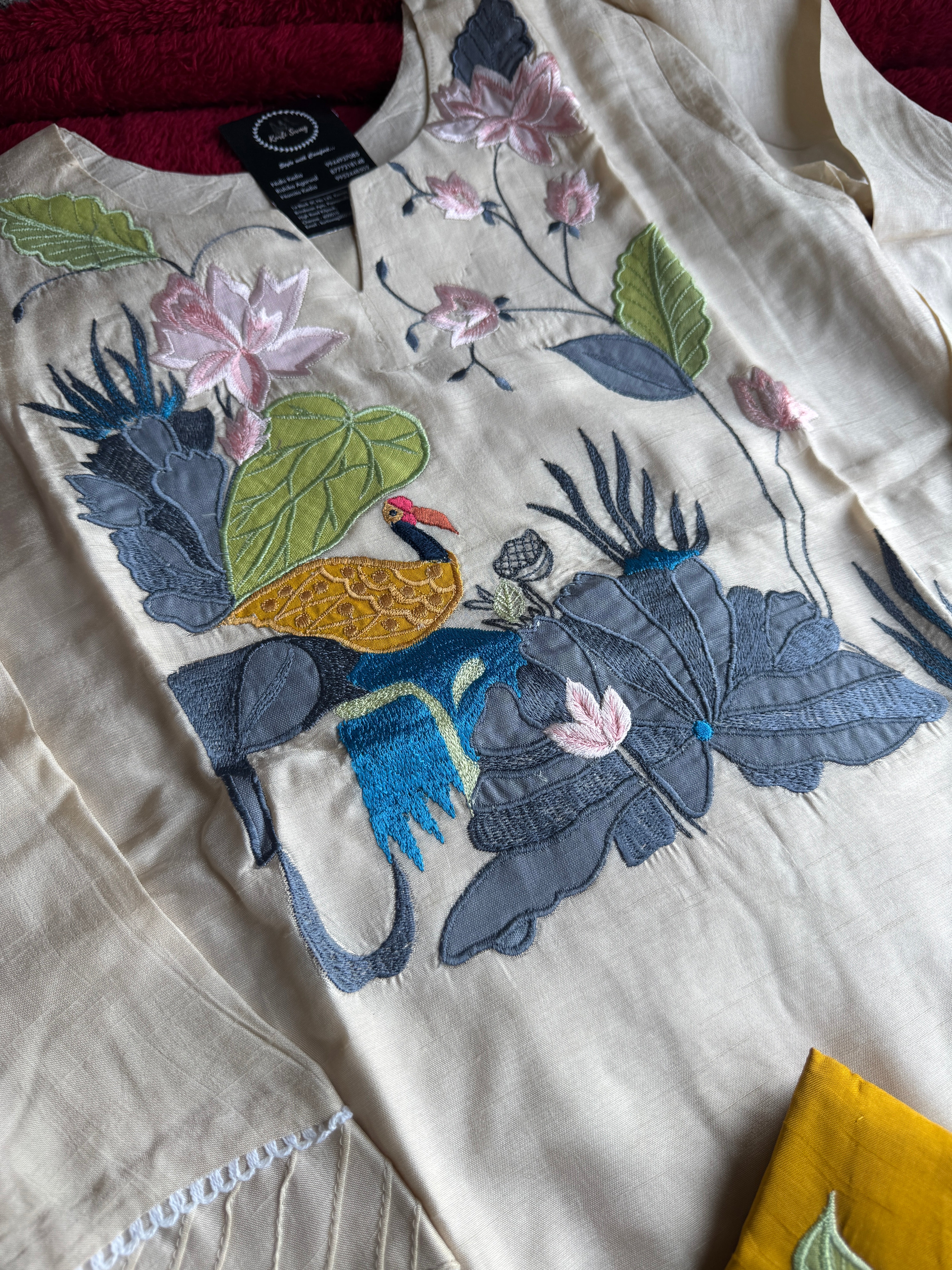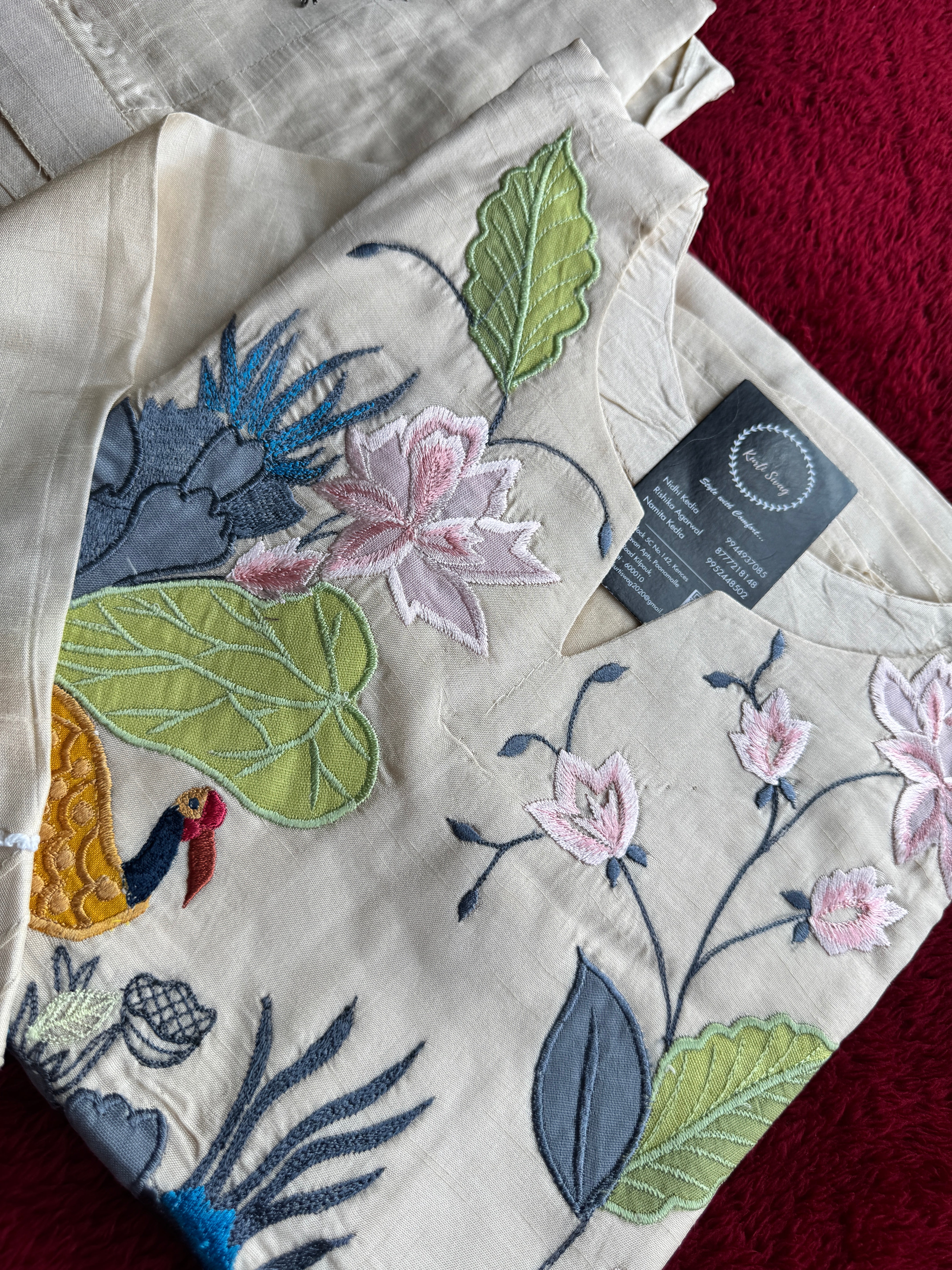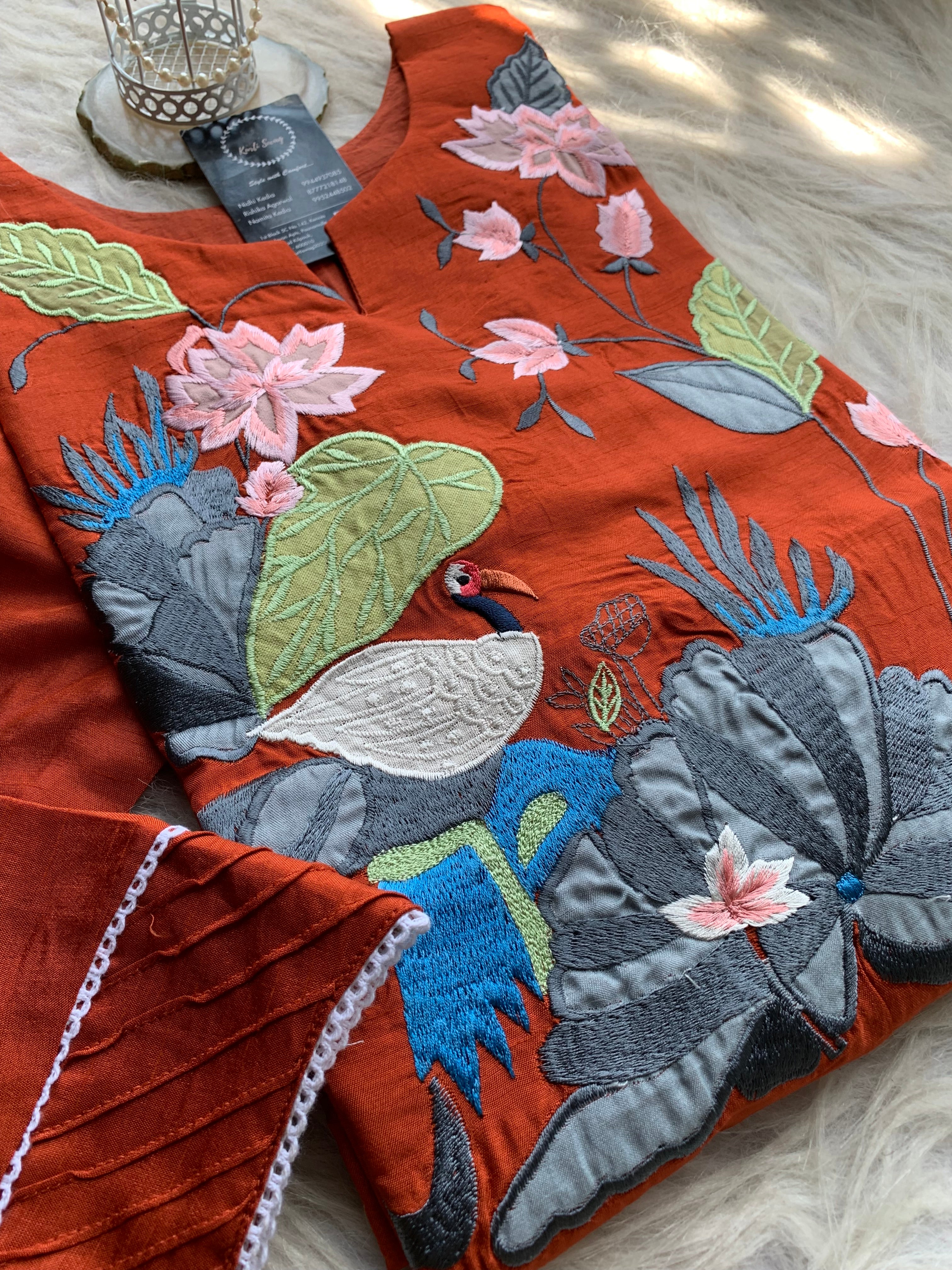✅ Cotton Silk Kurti With Exclusive Applique Thread embroidery On The Yoke Of The Kurti