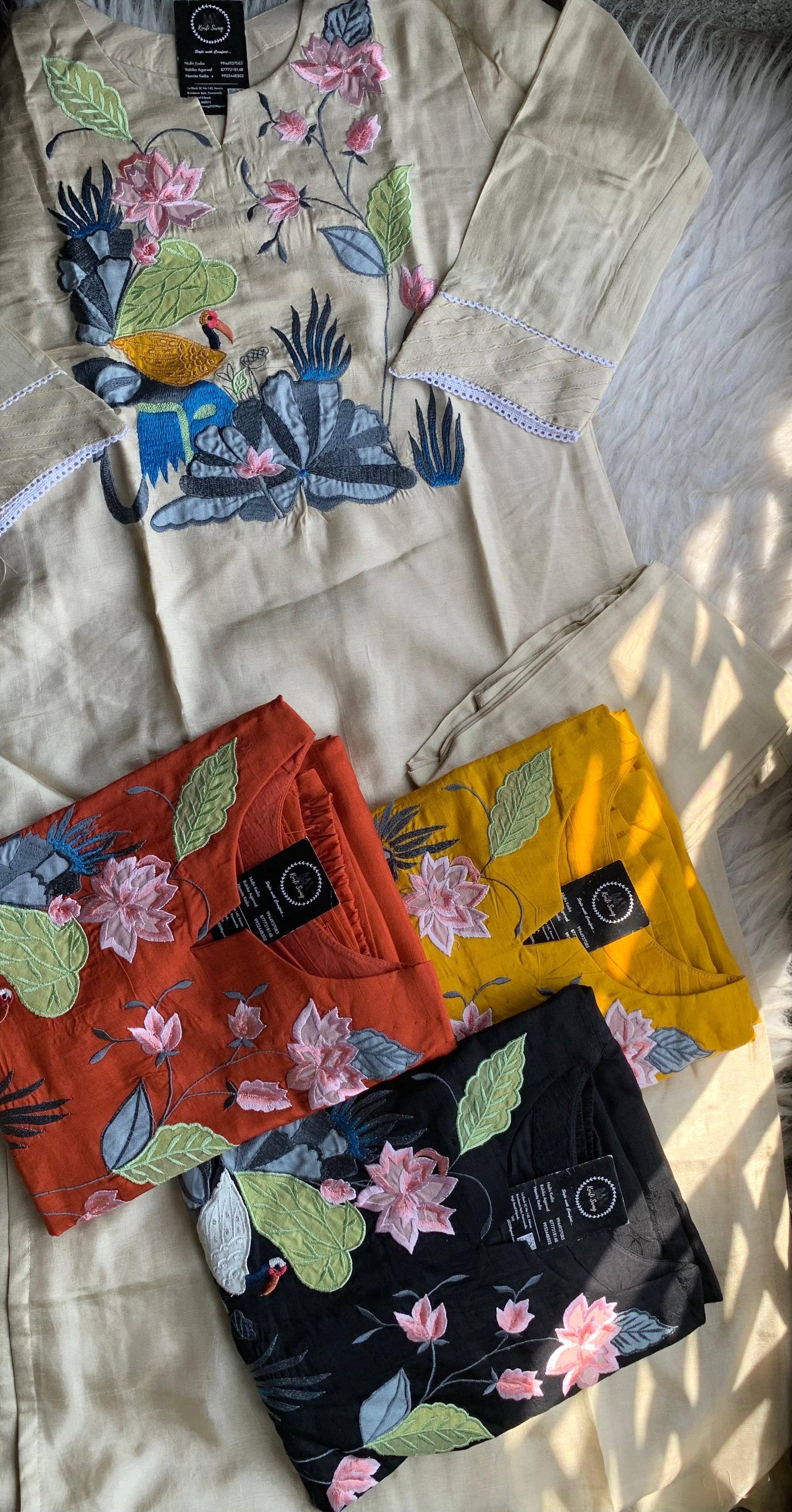 "NANCY" Summer Cotton Silk Special Applique Kurta & Pant Set🌼