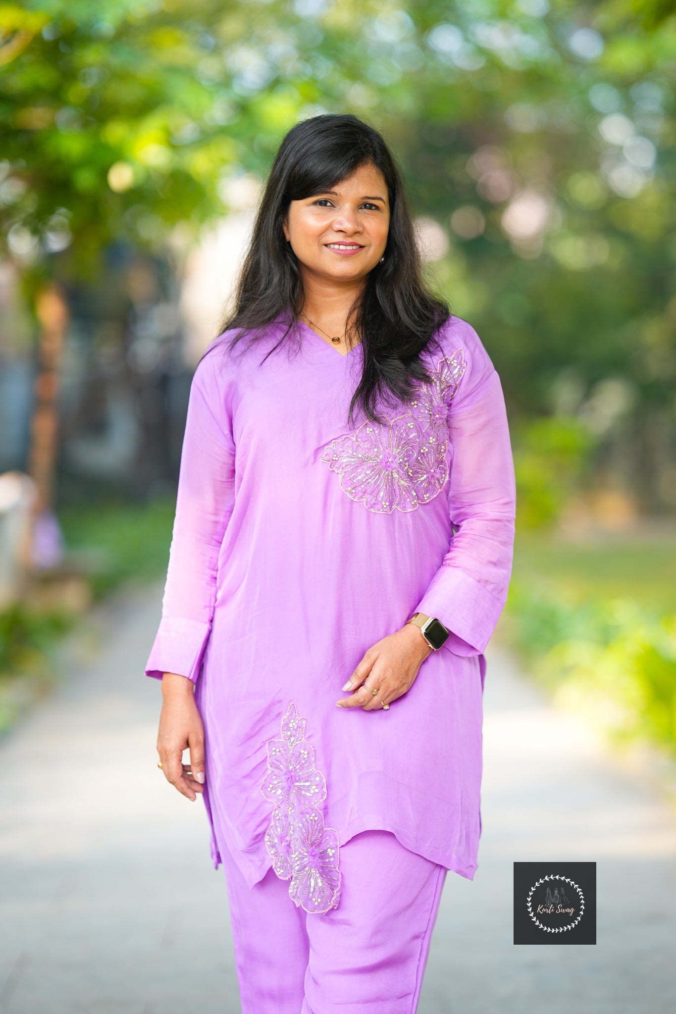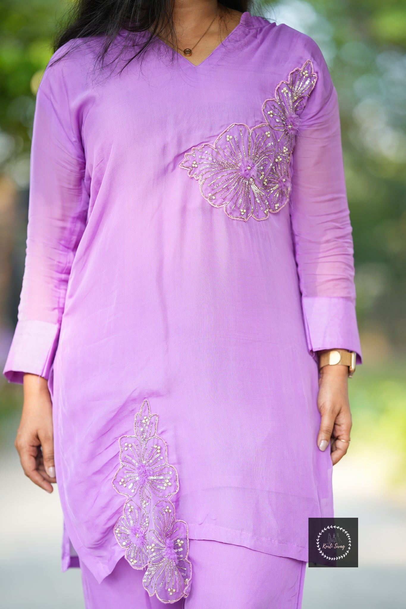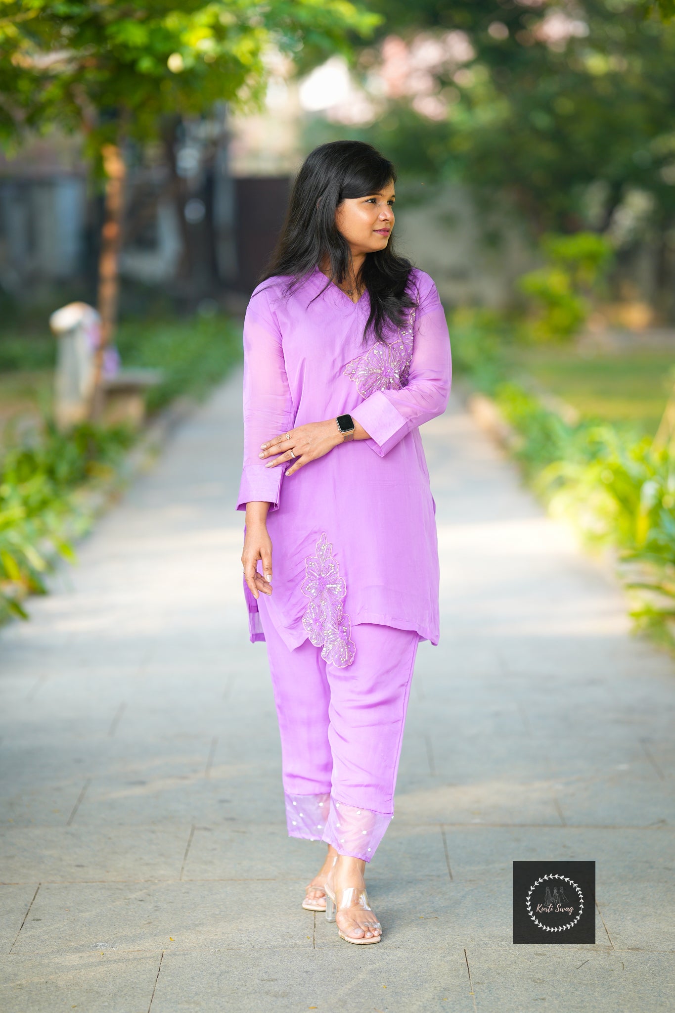 ✅ Pure Organza Coord Set with Patch Work On The Neck And Bottom Of The Kurta