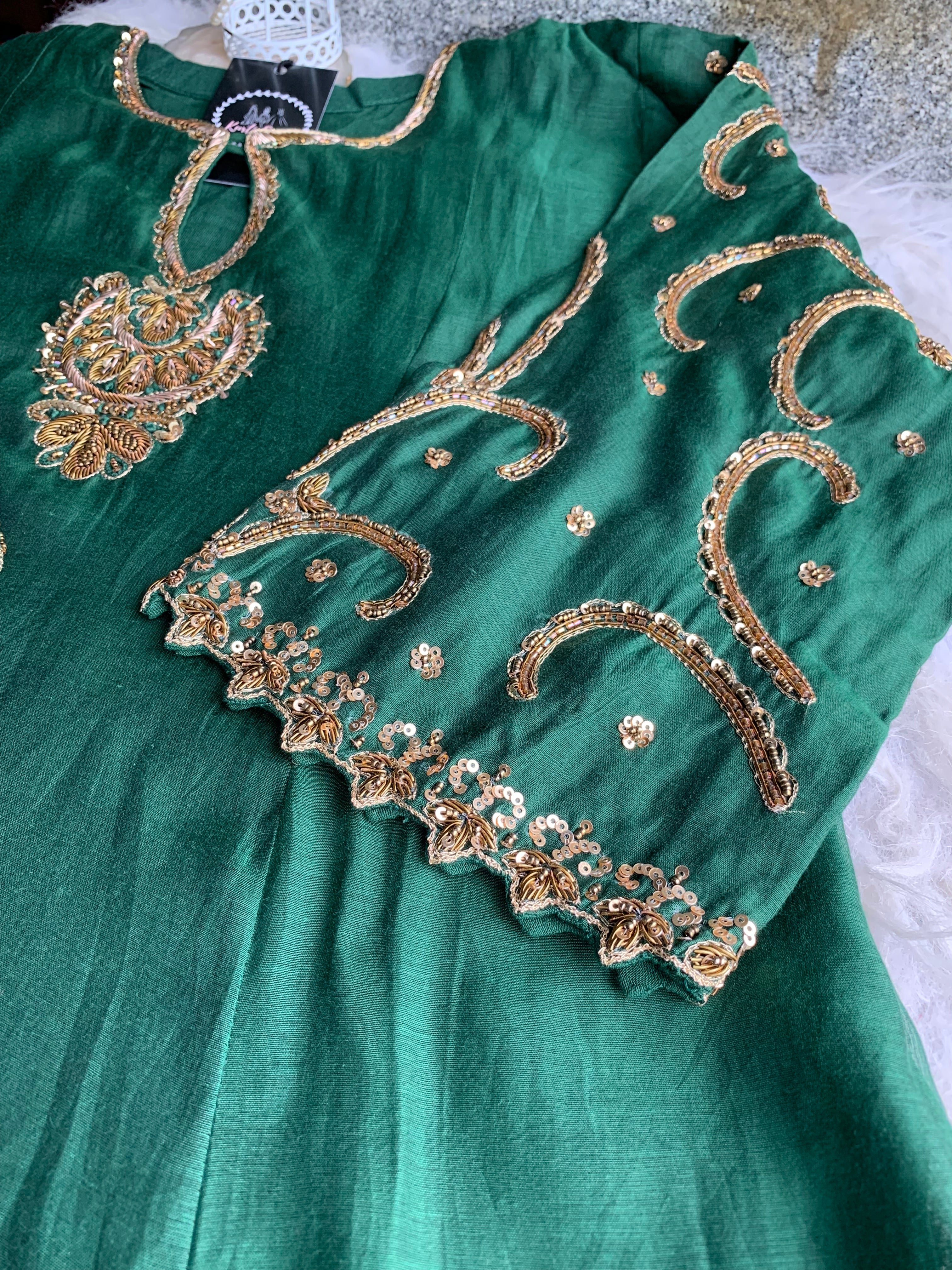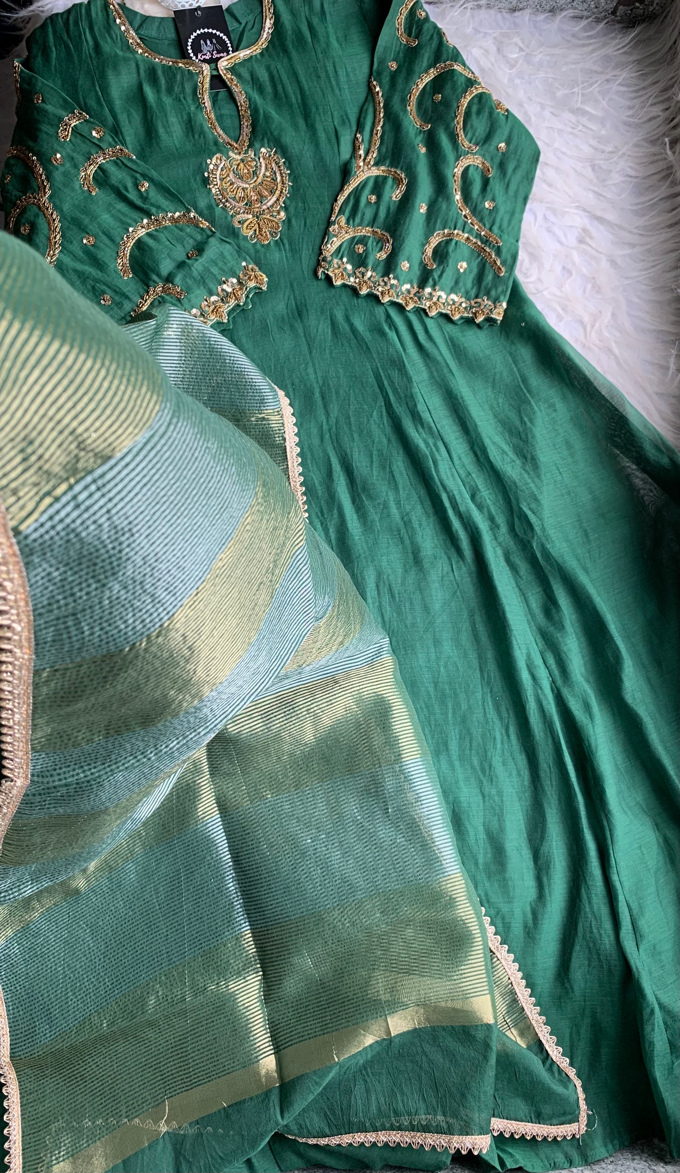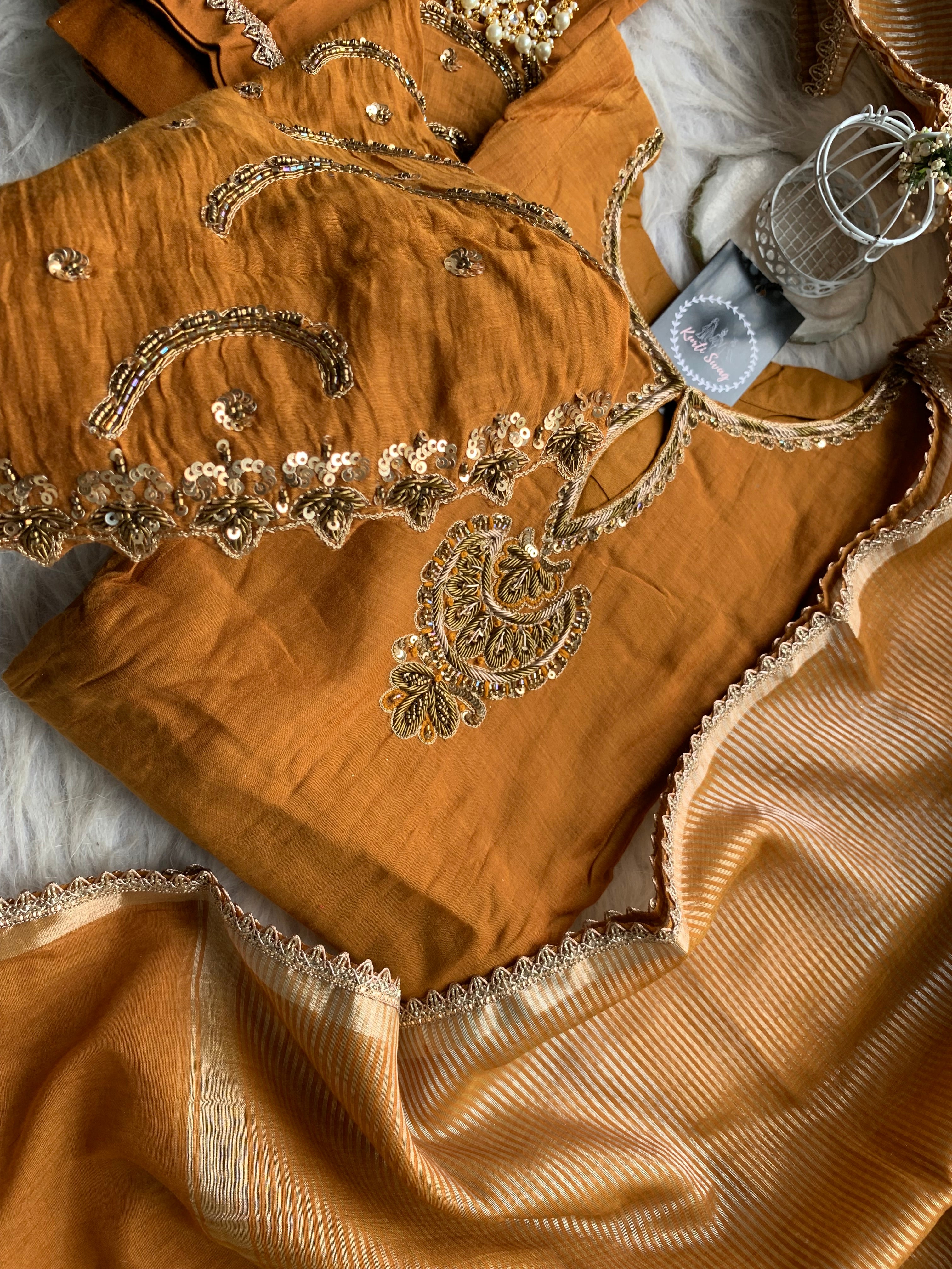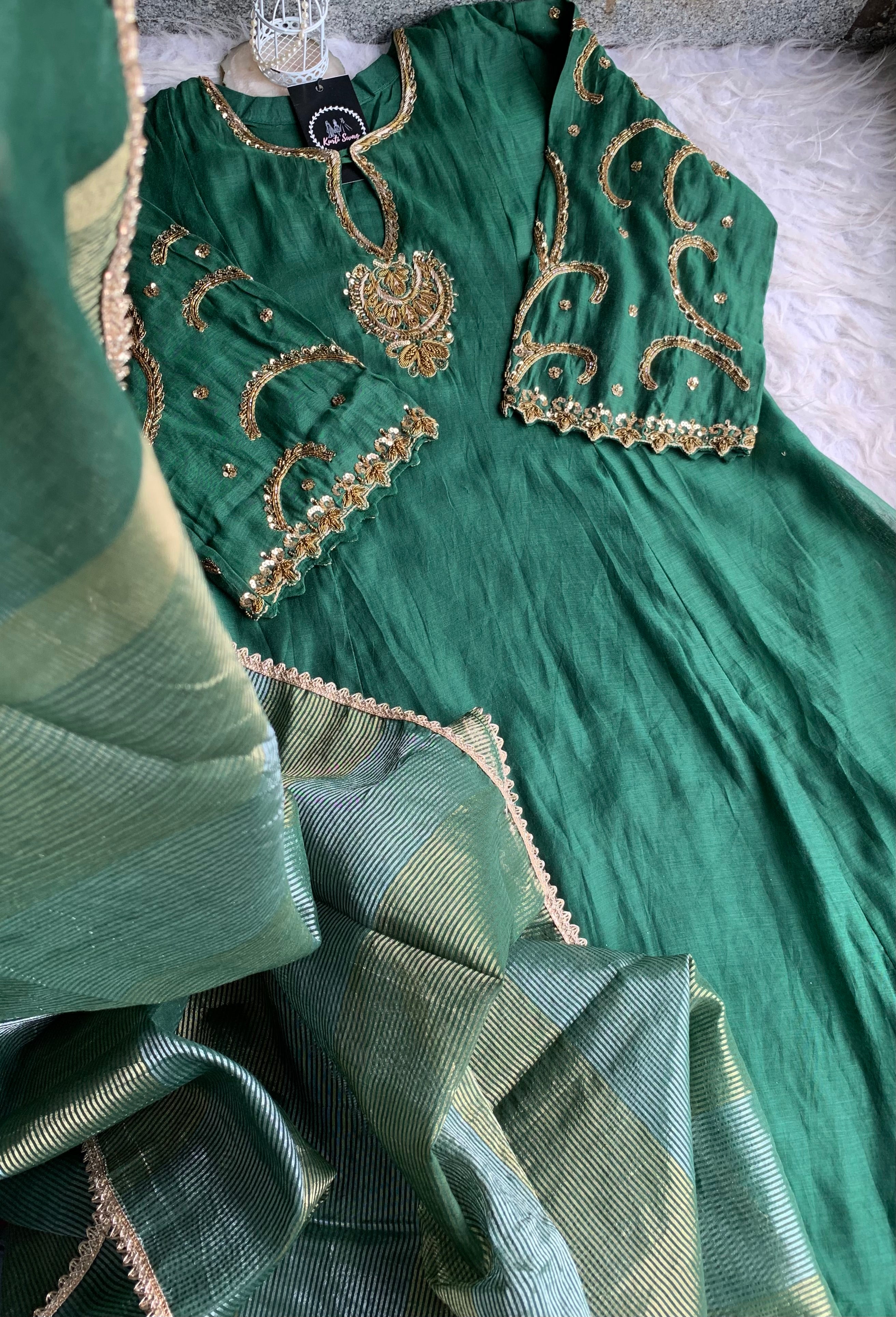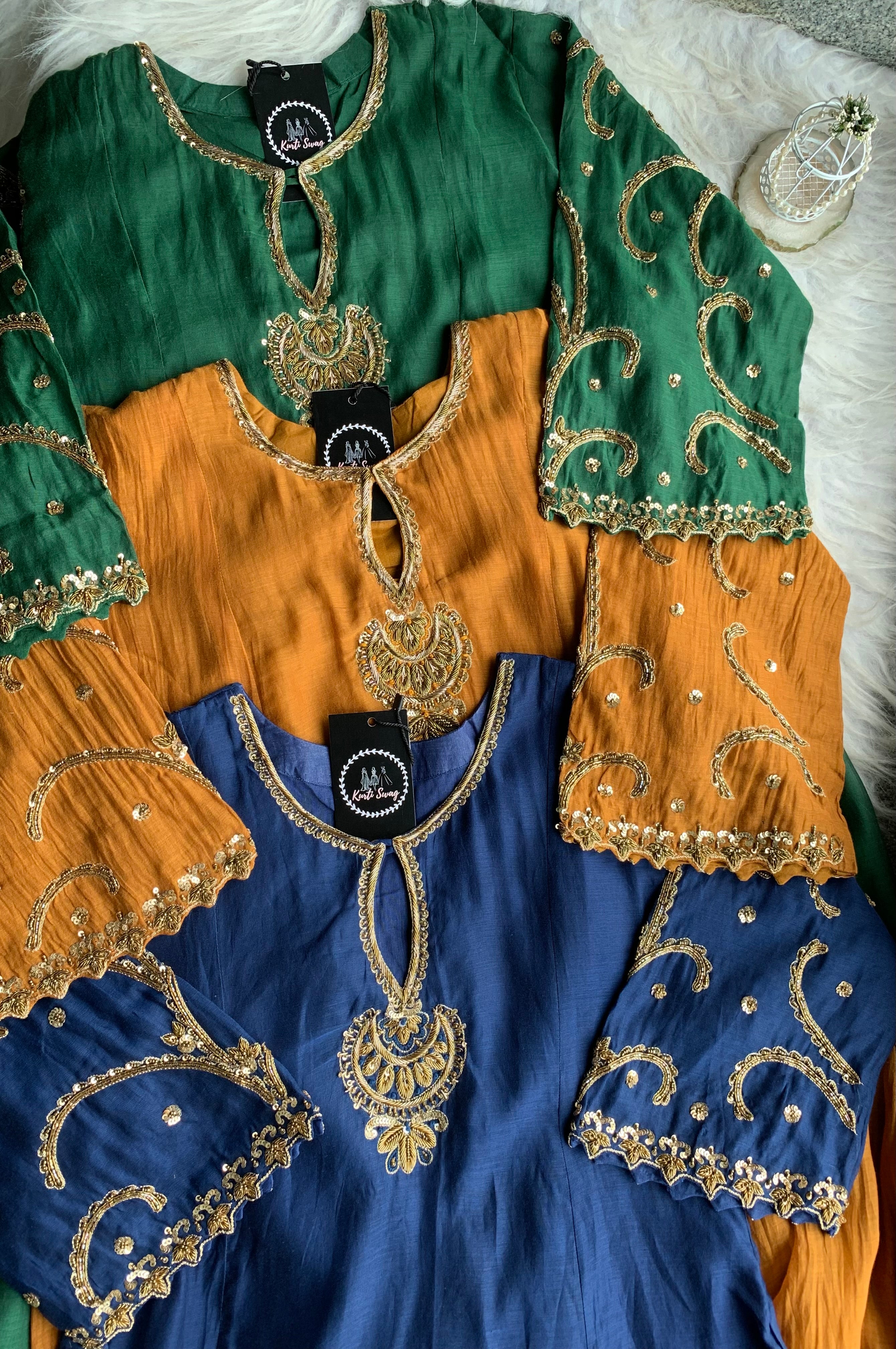 ✅ Premium Mul Chanderi Kurti With Zardosi, Dabka Amd Sequins HandWork On The Neckline Of The Kurti