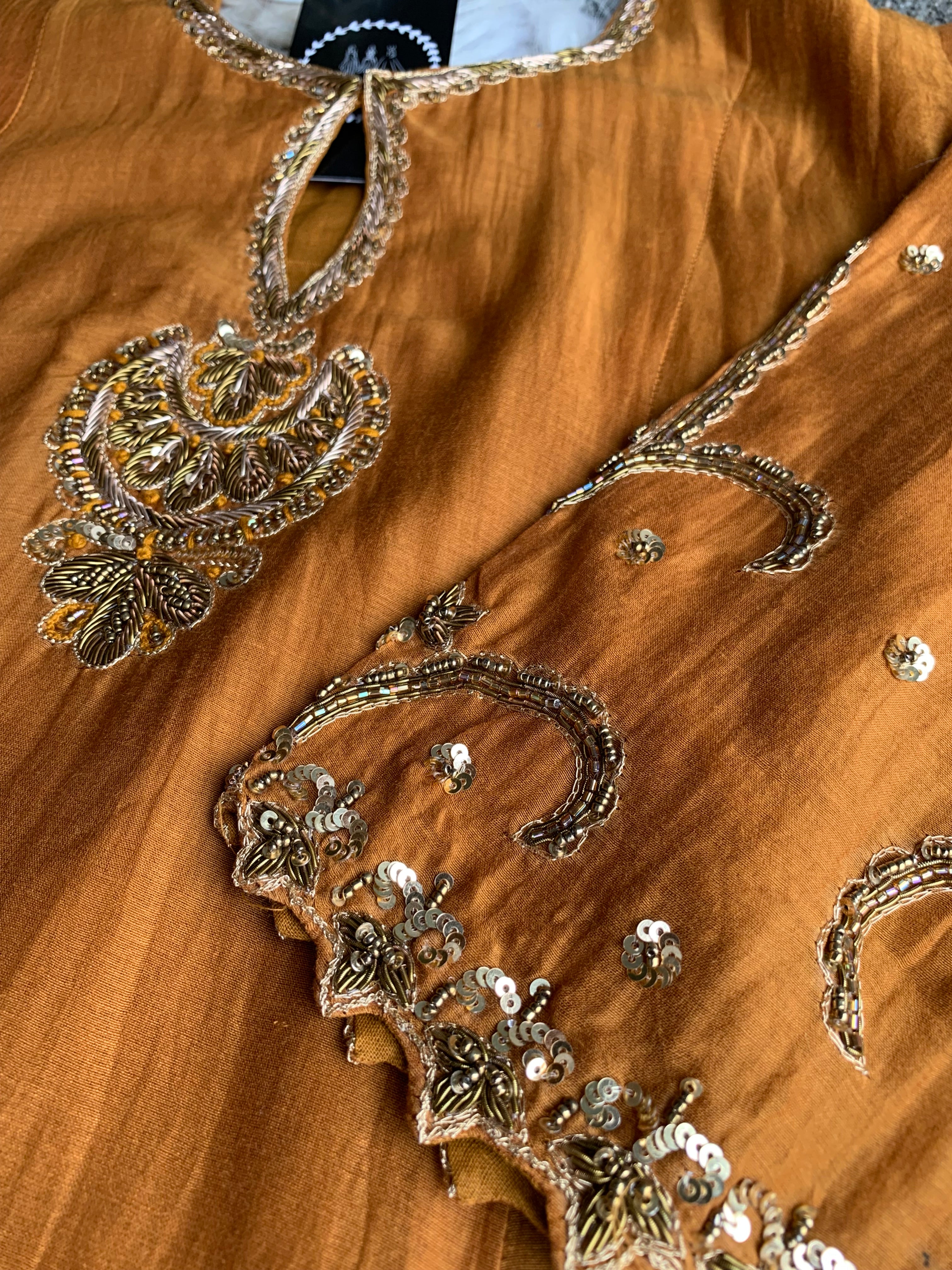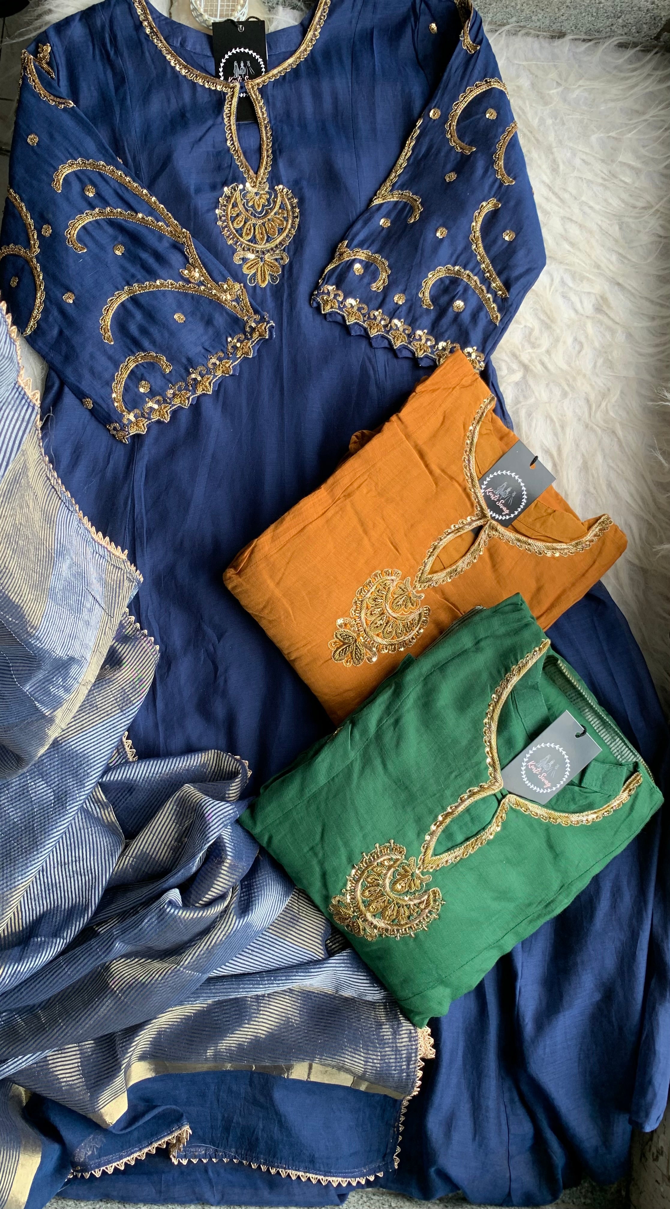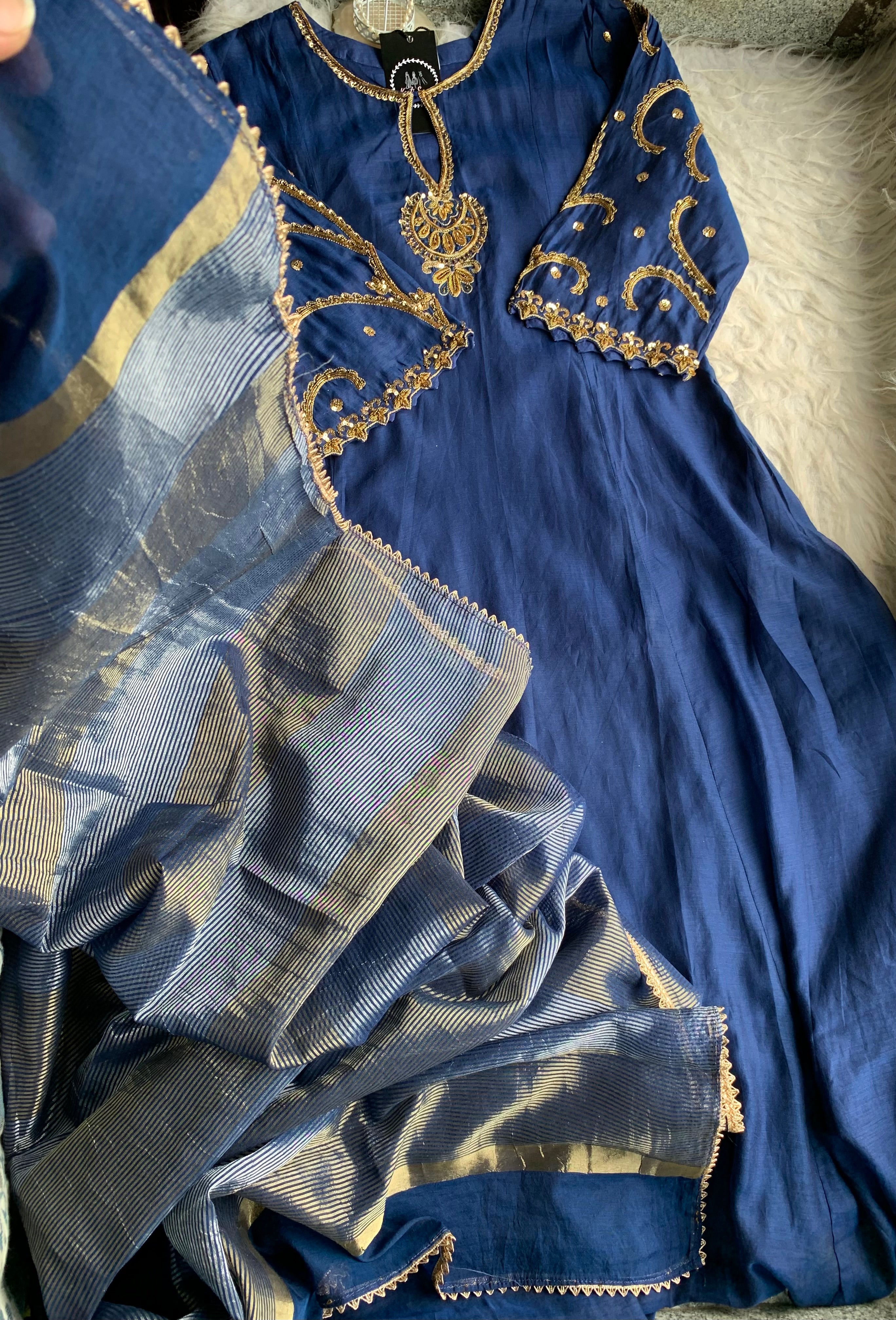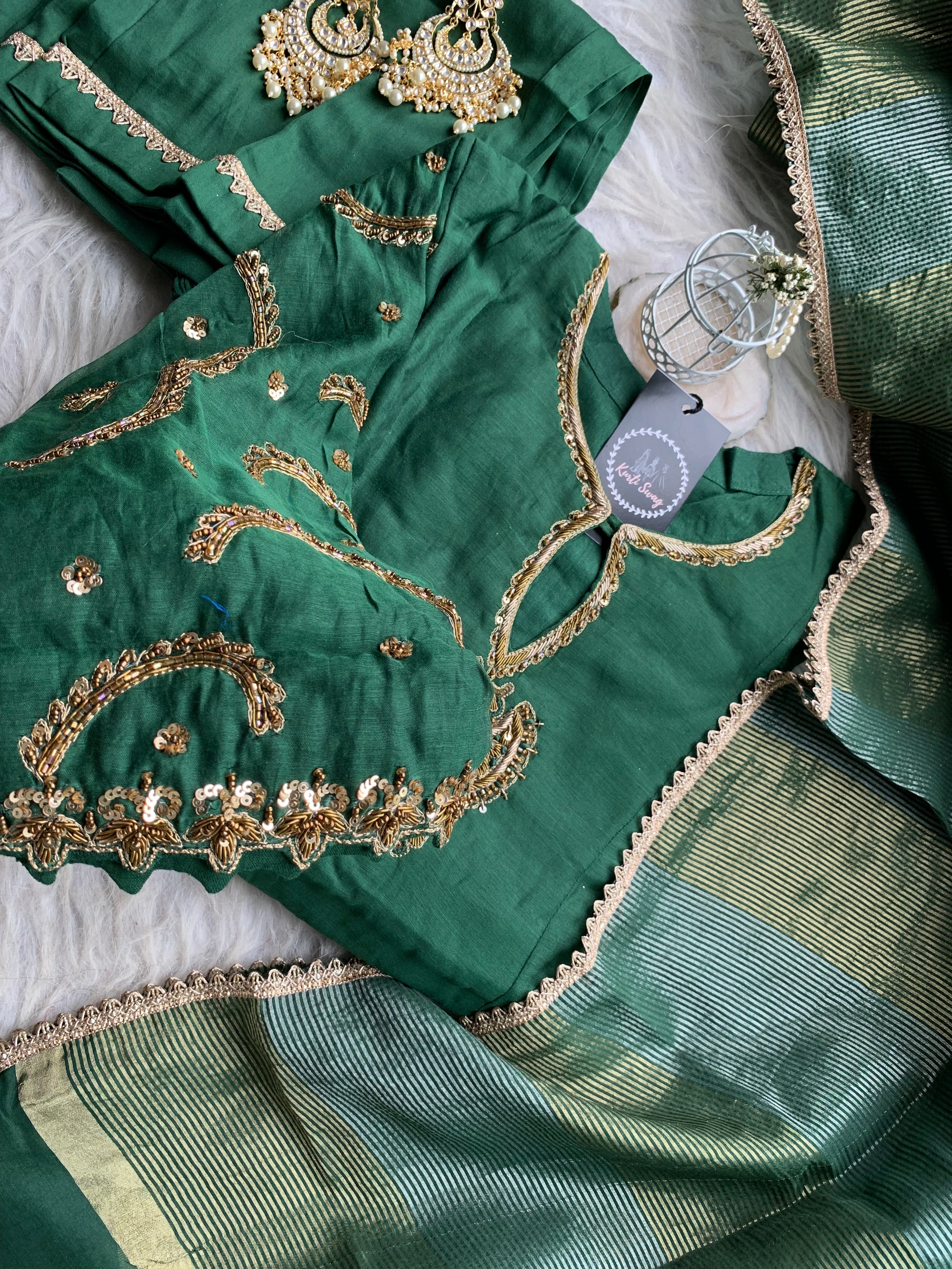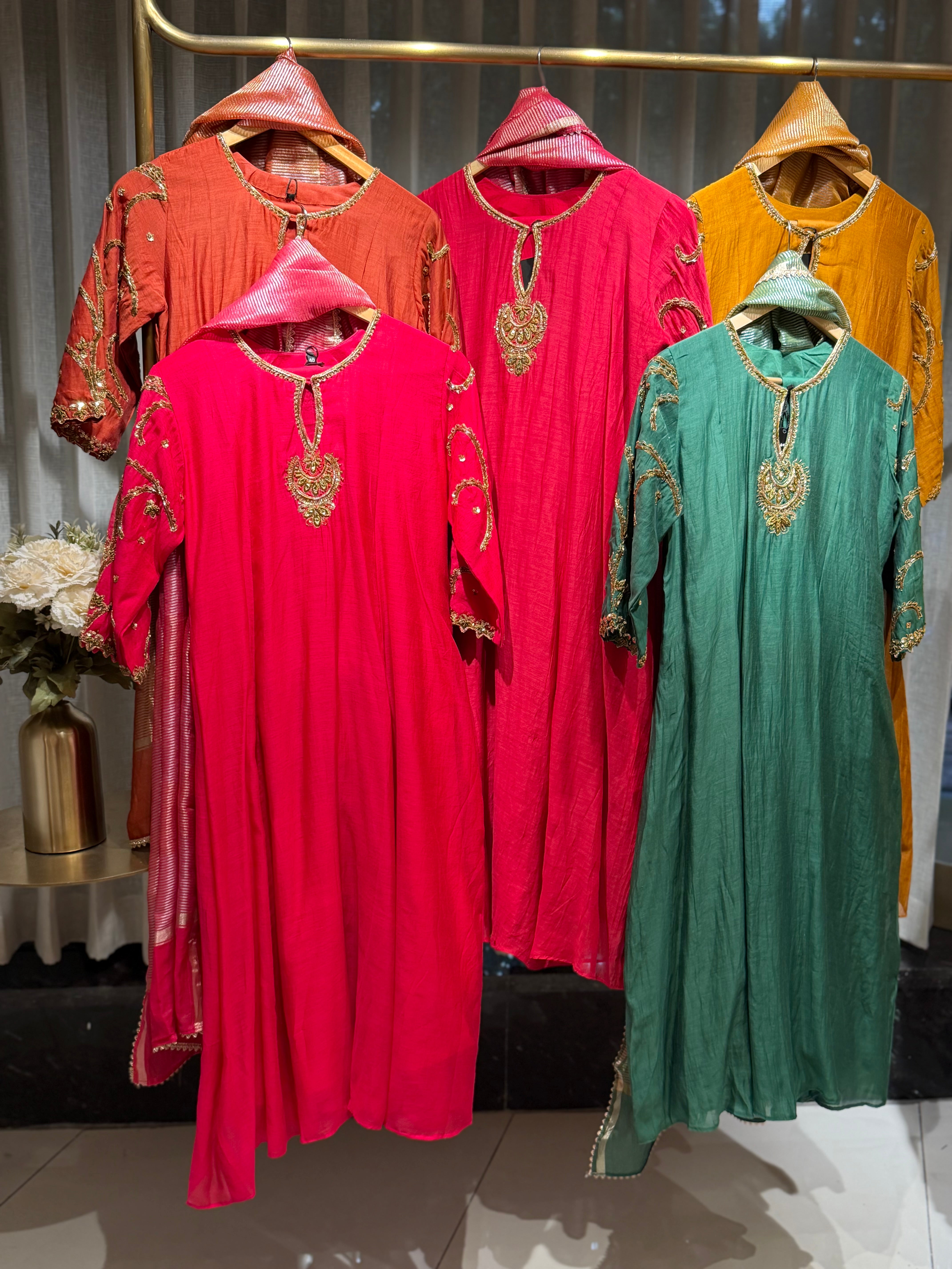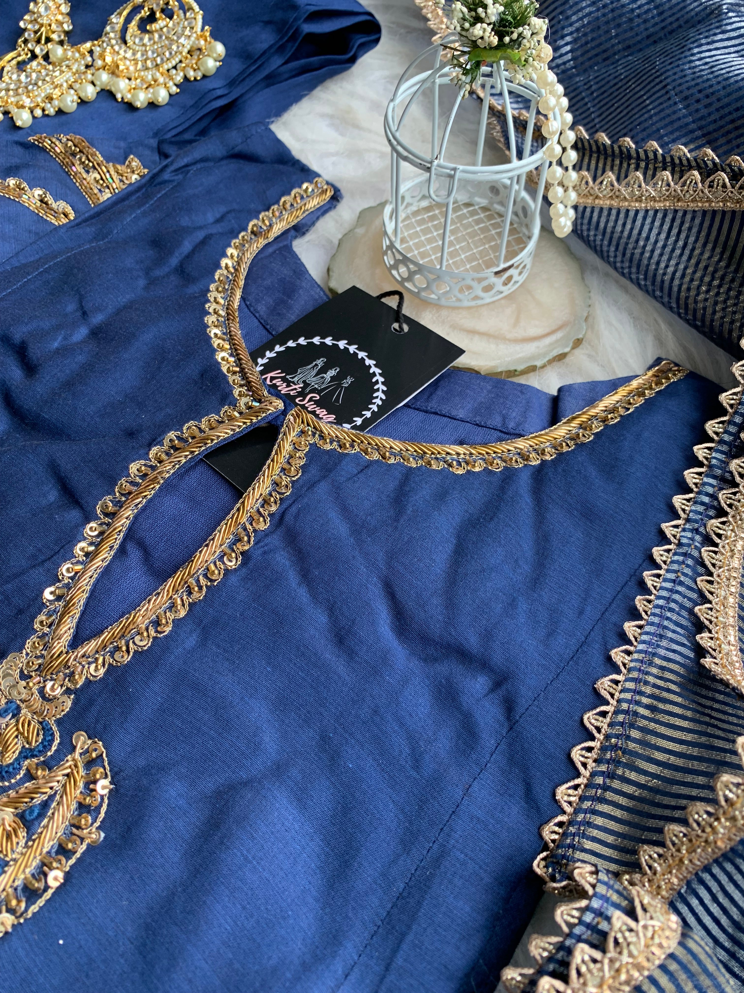✅ Premium Mul Chanderi Kurti With Zardosi, Dabka Amd Sequins HandWork On The Neckline Of The Kurti