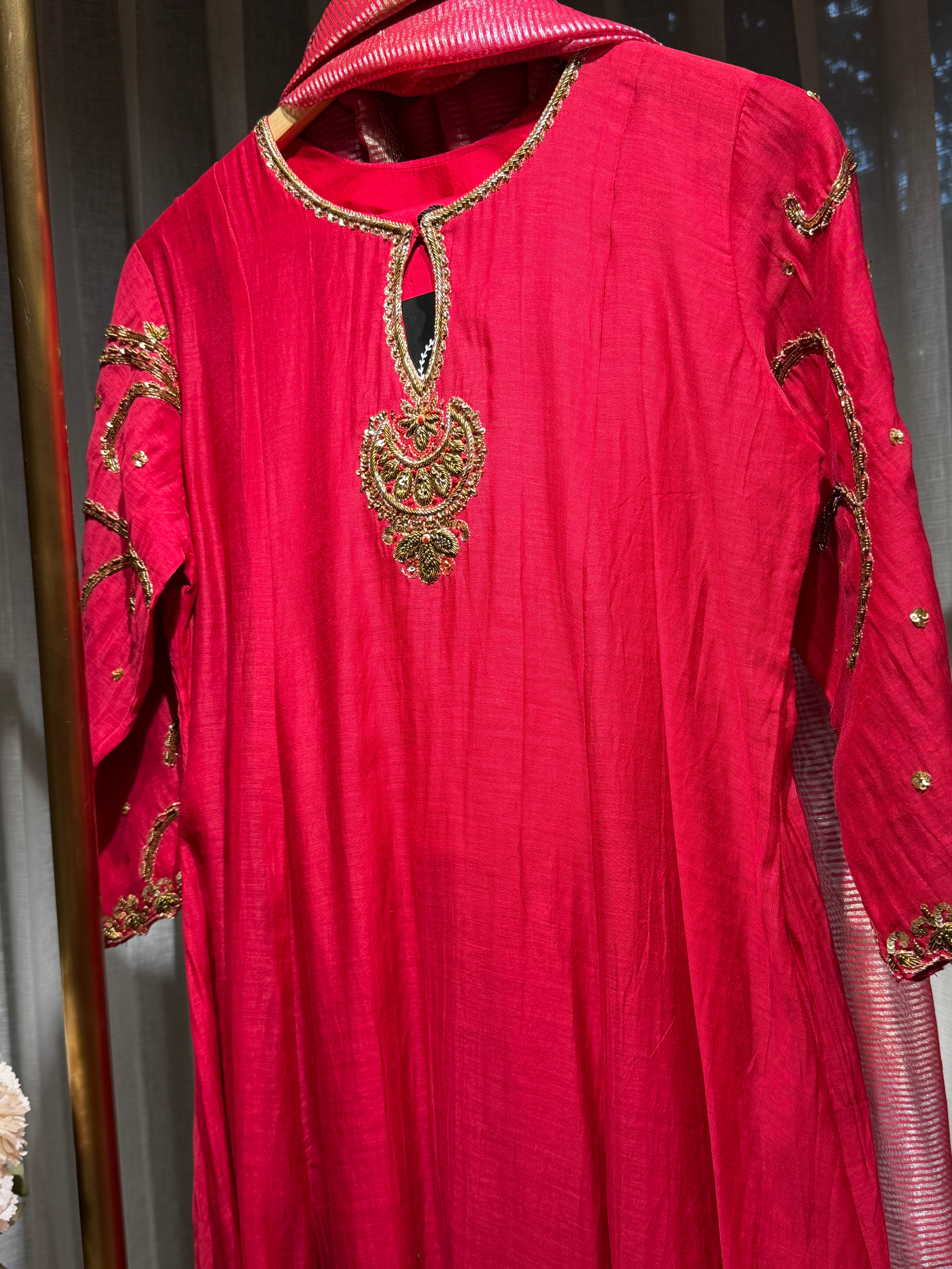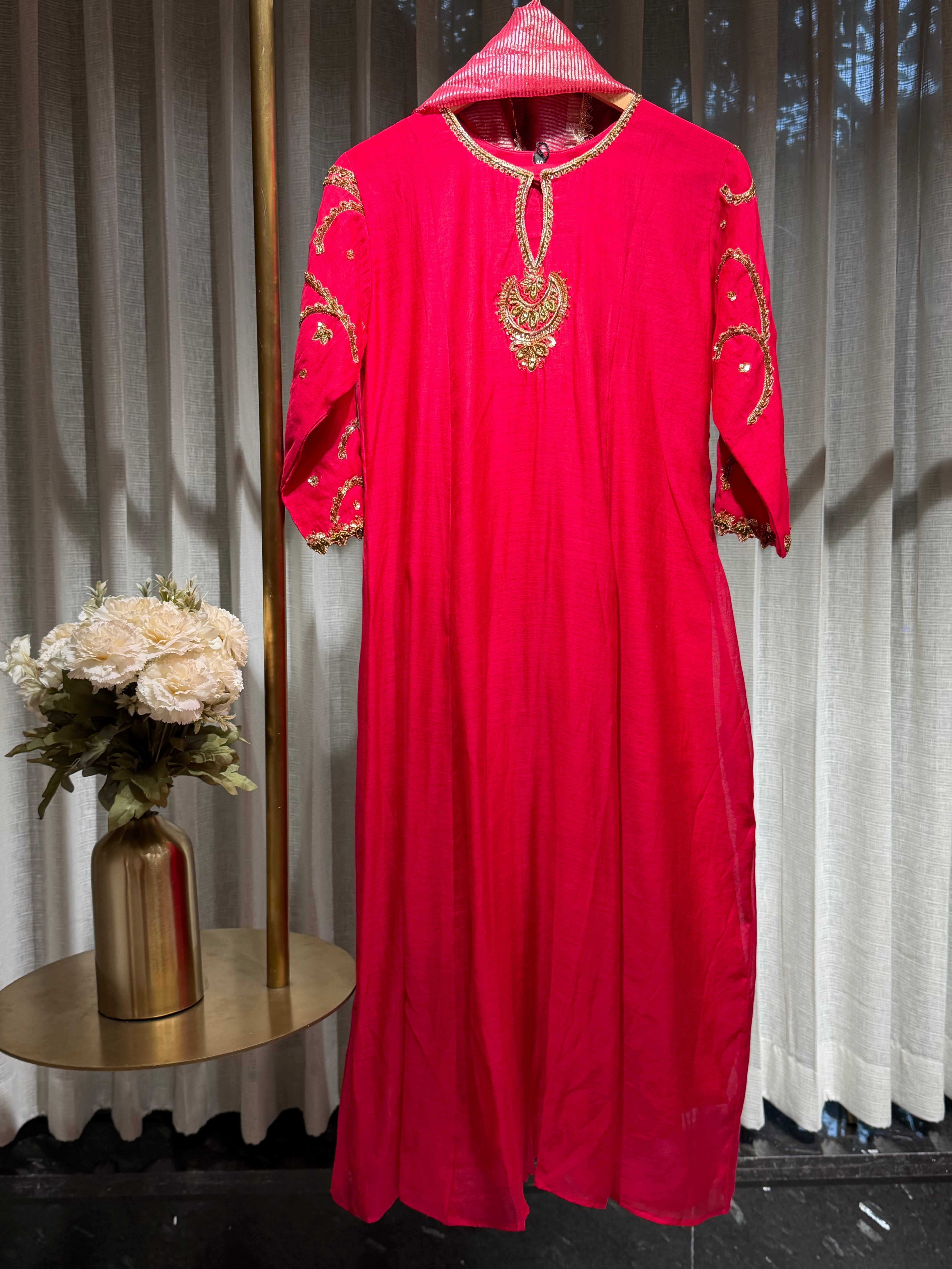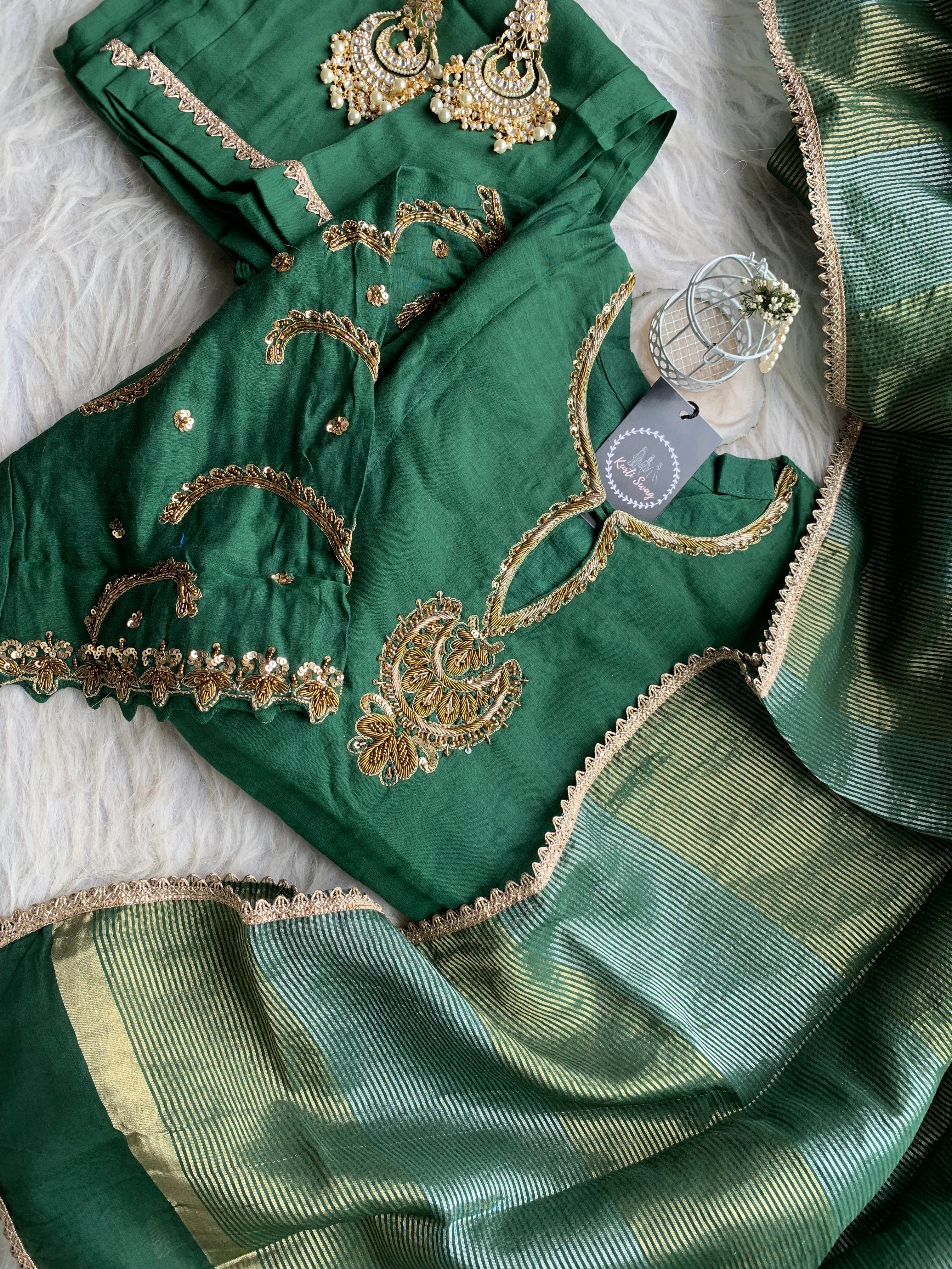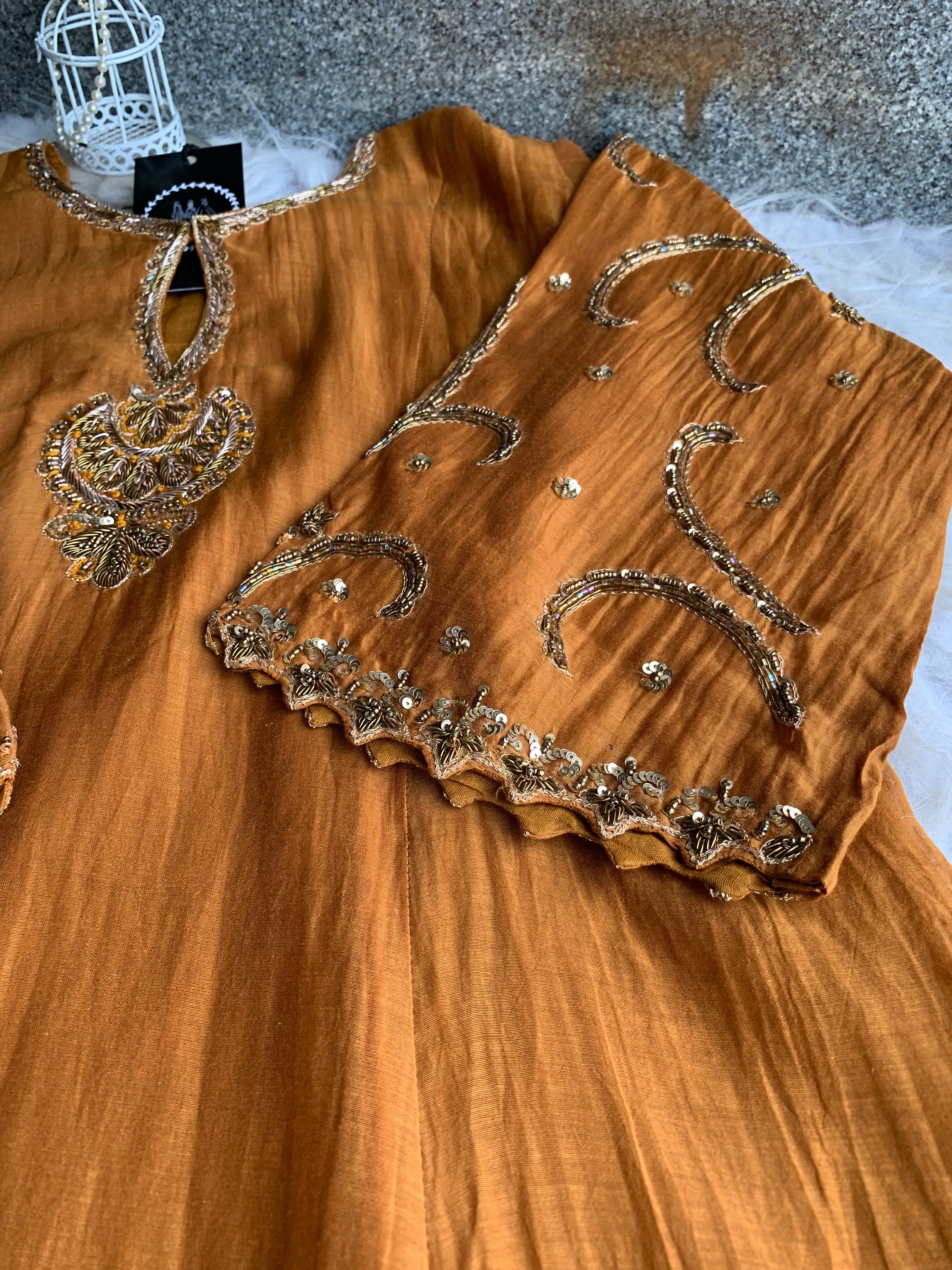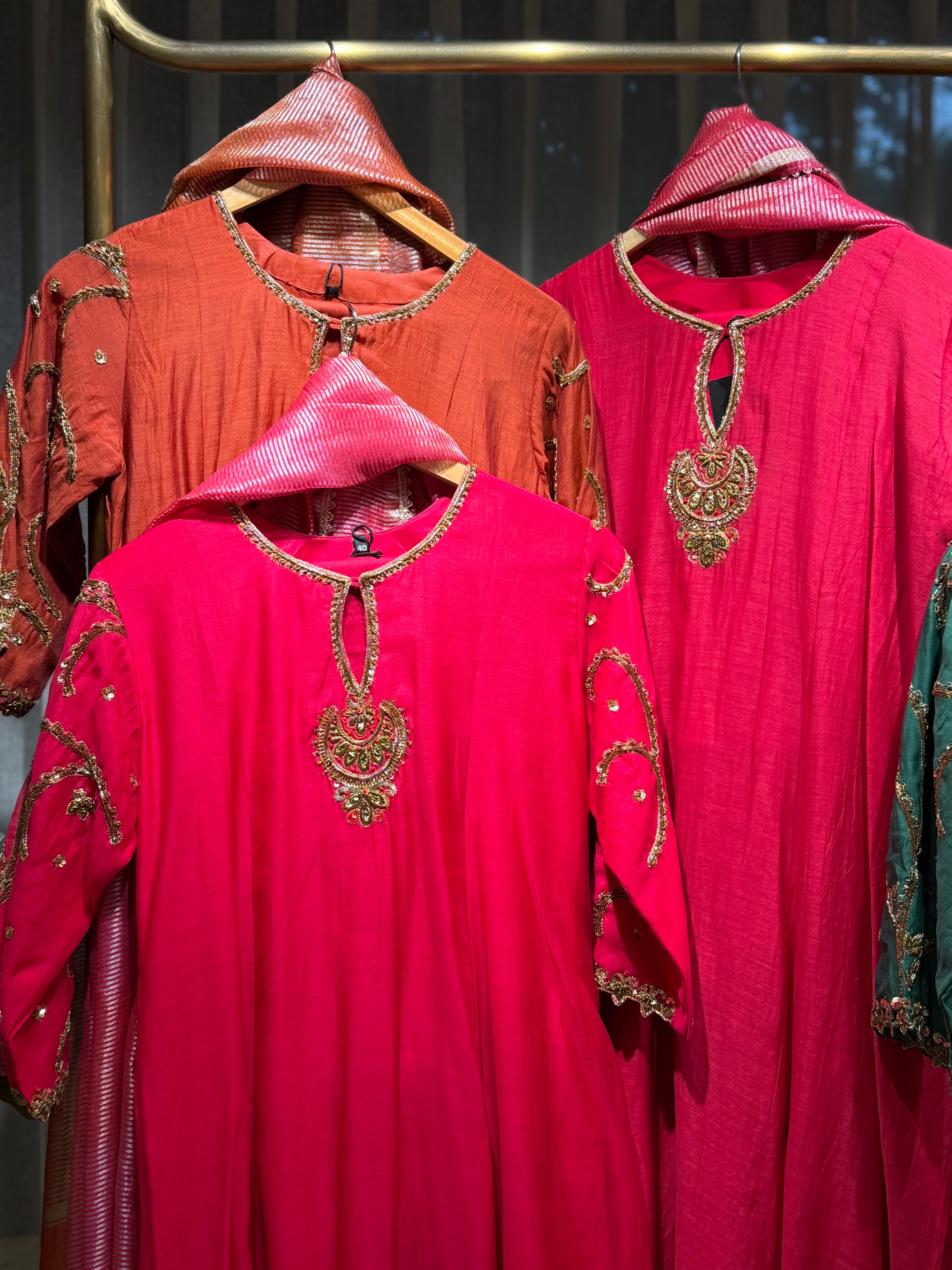 ✅ Premium Mul Chanderi Kurti With Zardosi, Dabka Amd Sequins HandWork On The Neckline Of The Kurti